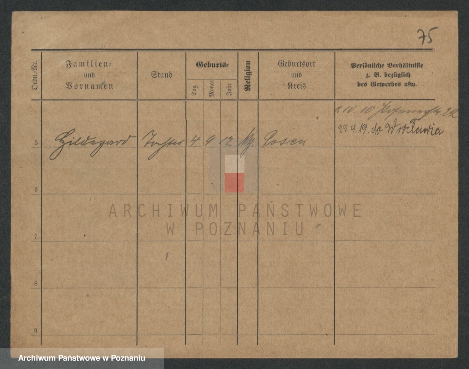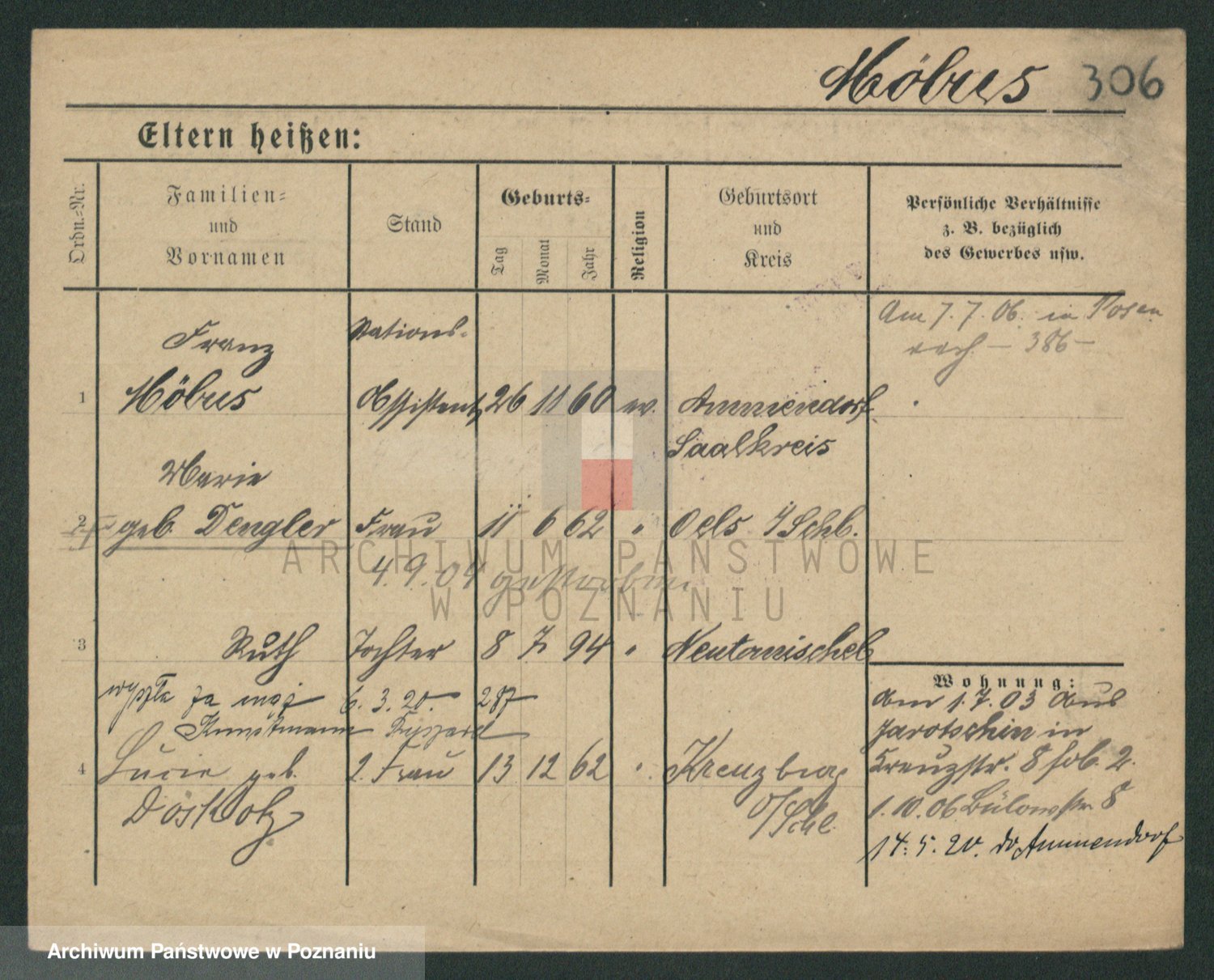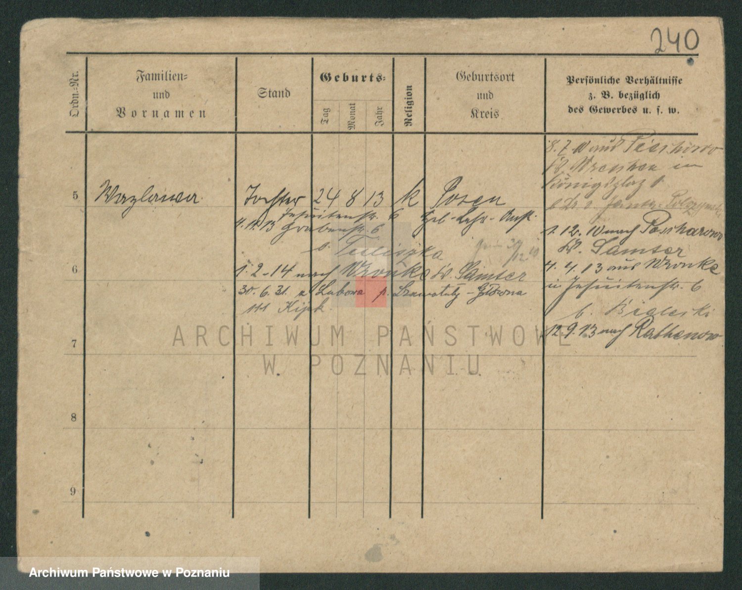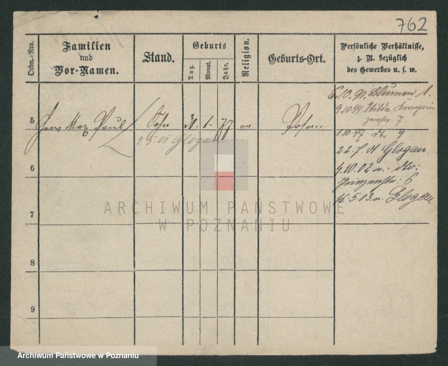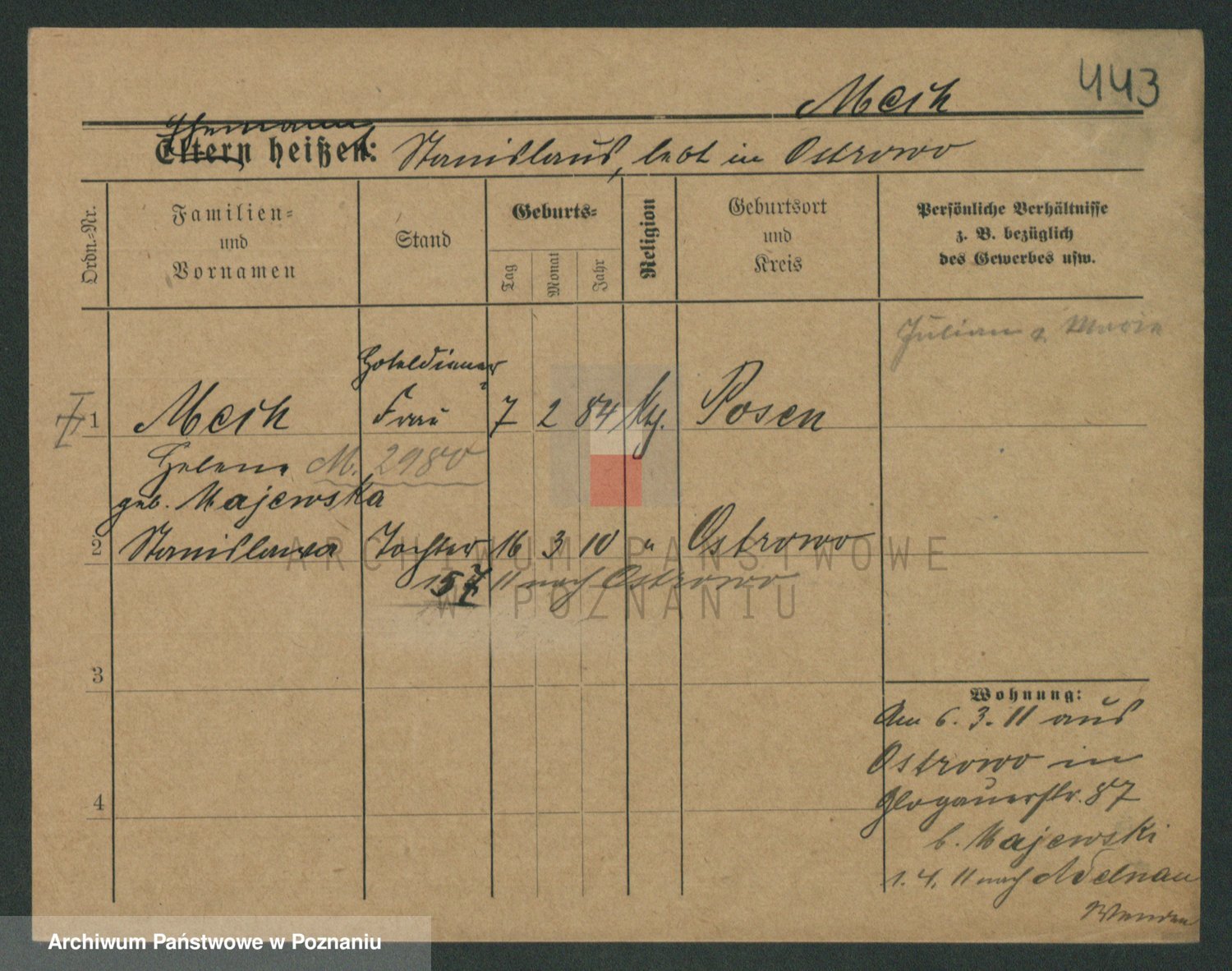 Podgląd karty osobowej dostępny jest po kliknięciu na nazwisko lub ikonkę karty. Można dokonywać powiększenia (ikony na górze) lub przechodzić między kolejnymi skanami (strzałki po bokach).