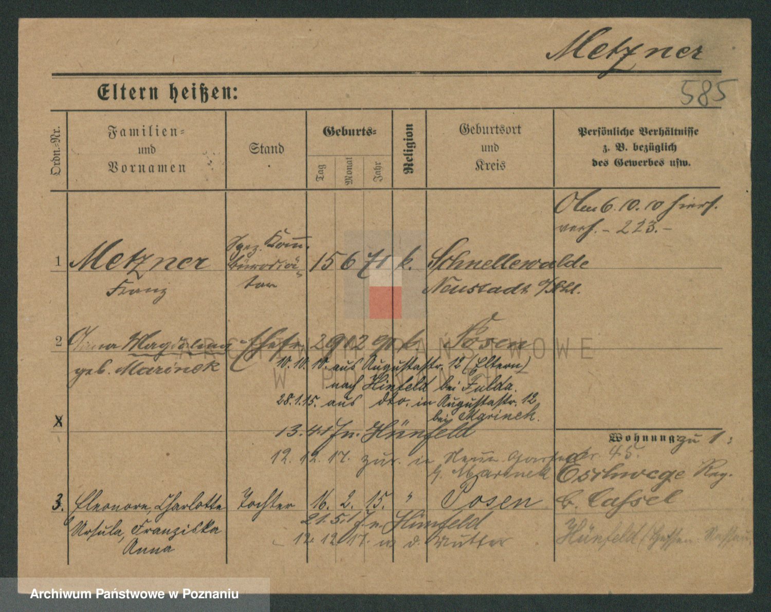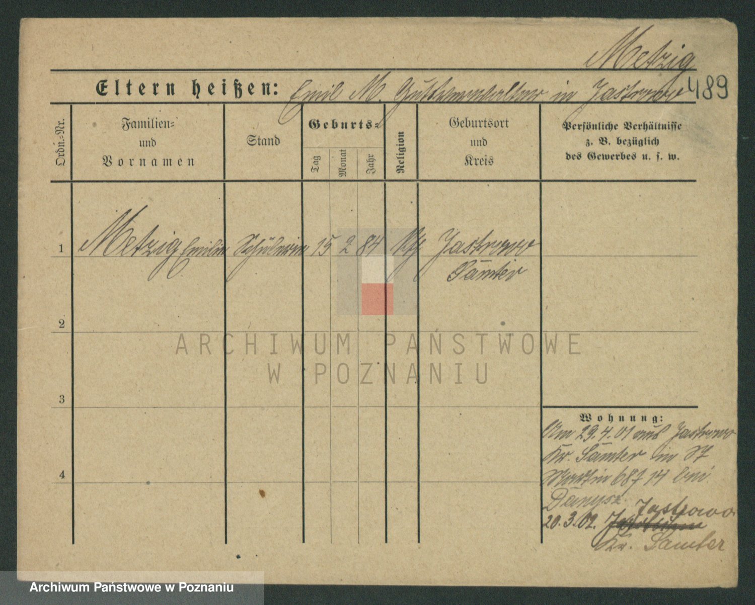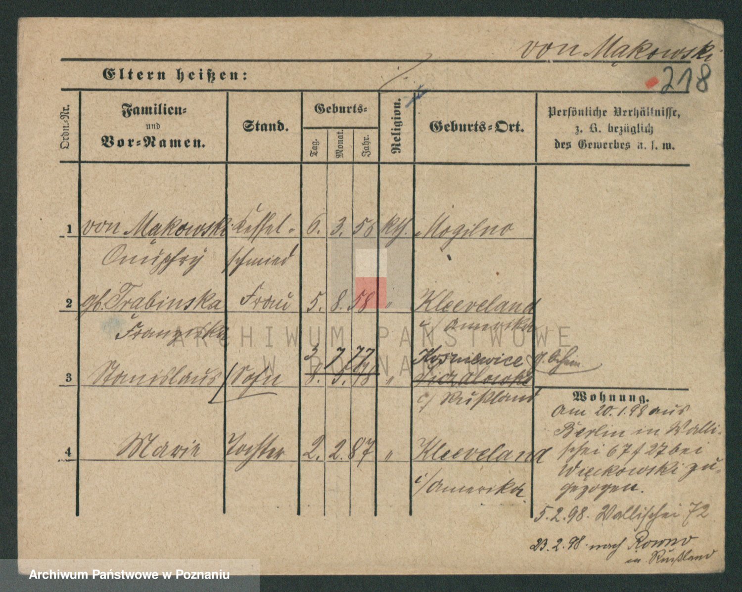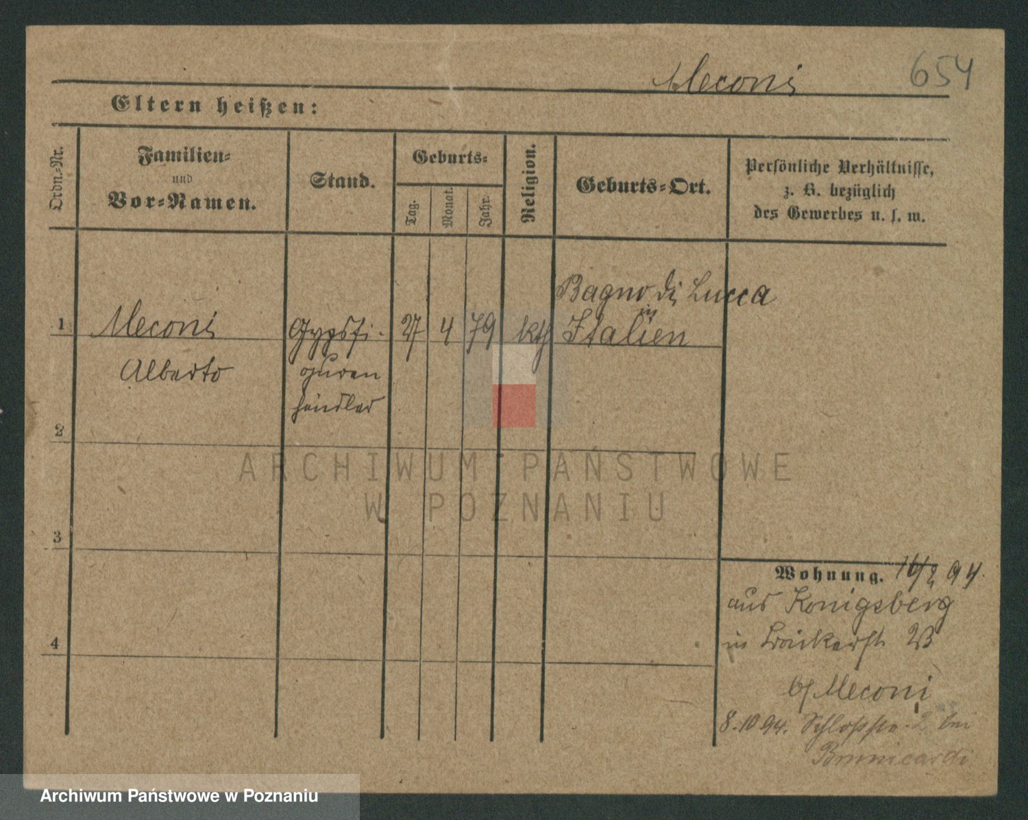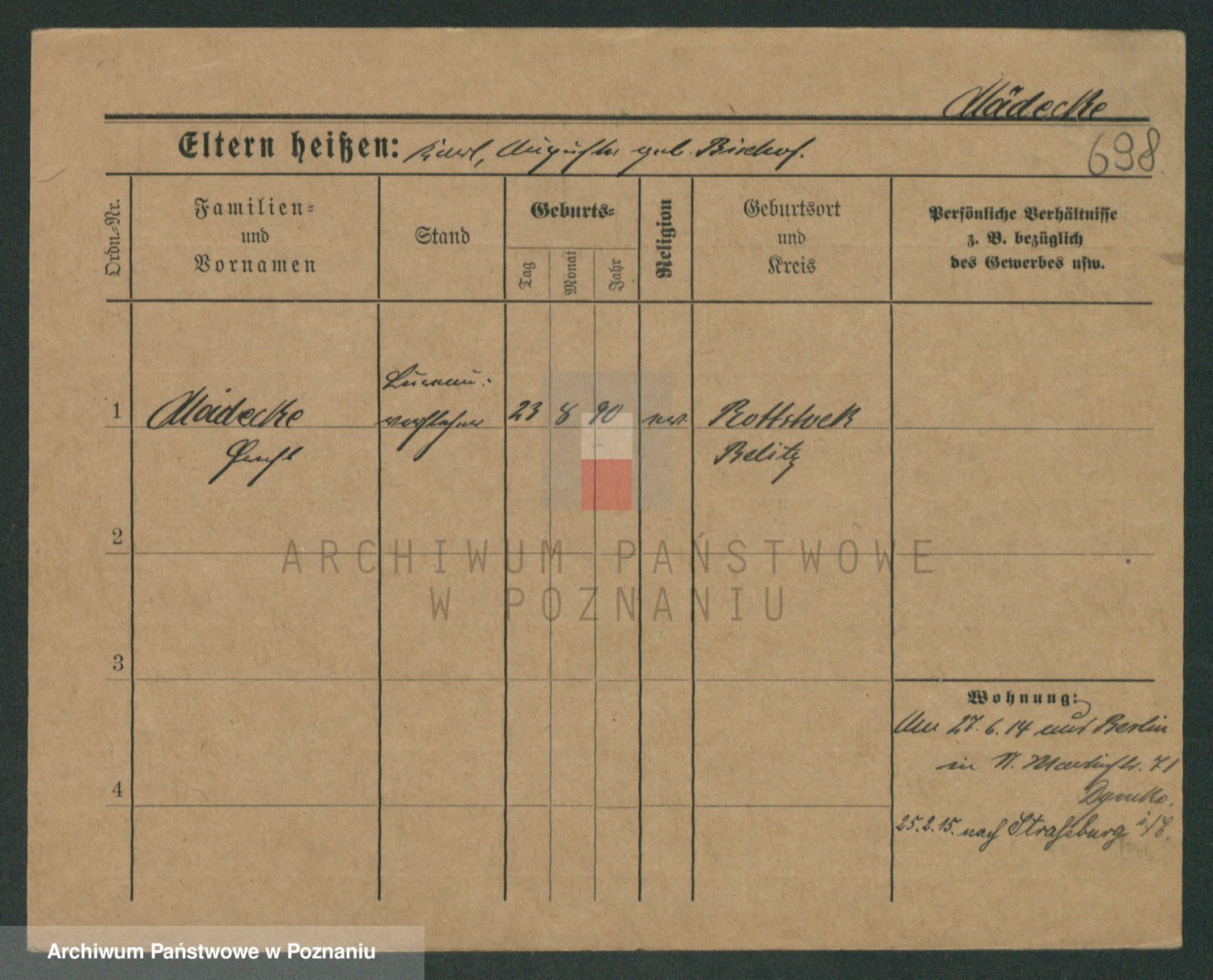 Podgląd karty osobowej dostępny jest po kliknięciu na nazwisko lub ikonkę karty. Można dokonywać powiększenia (ikony na górze) lub przechodzić między kolejnymi skanami (strzałki po bokach).