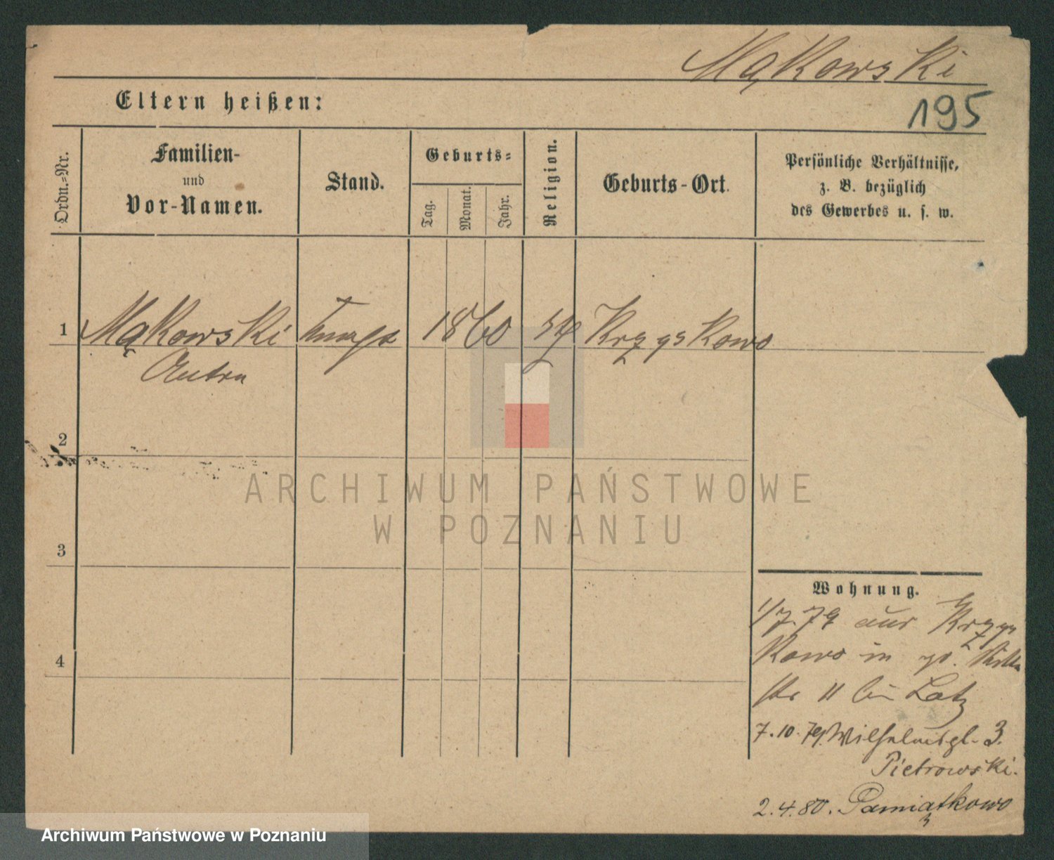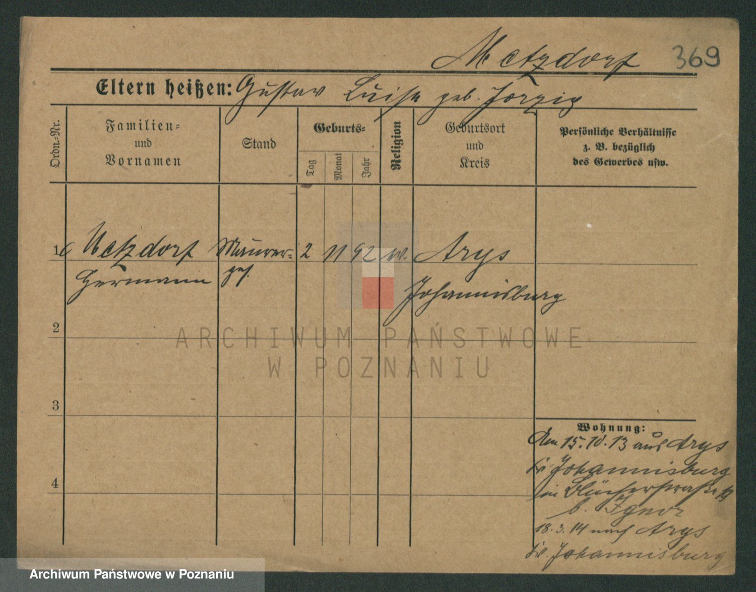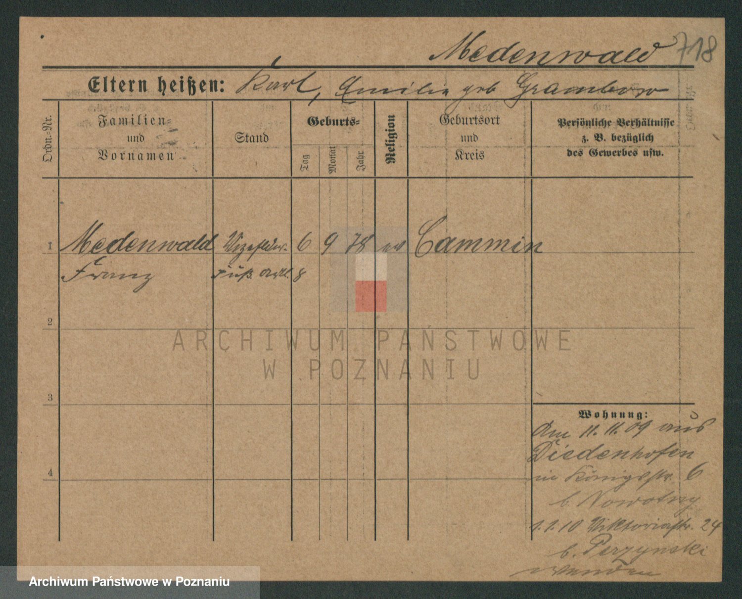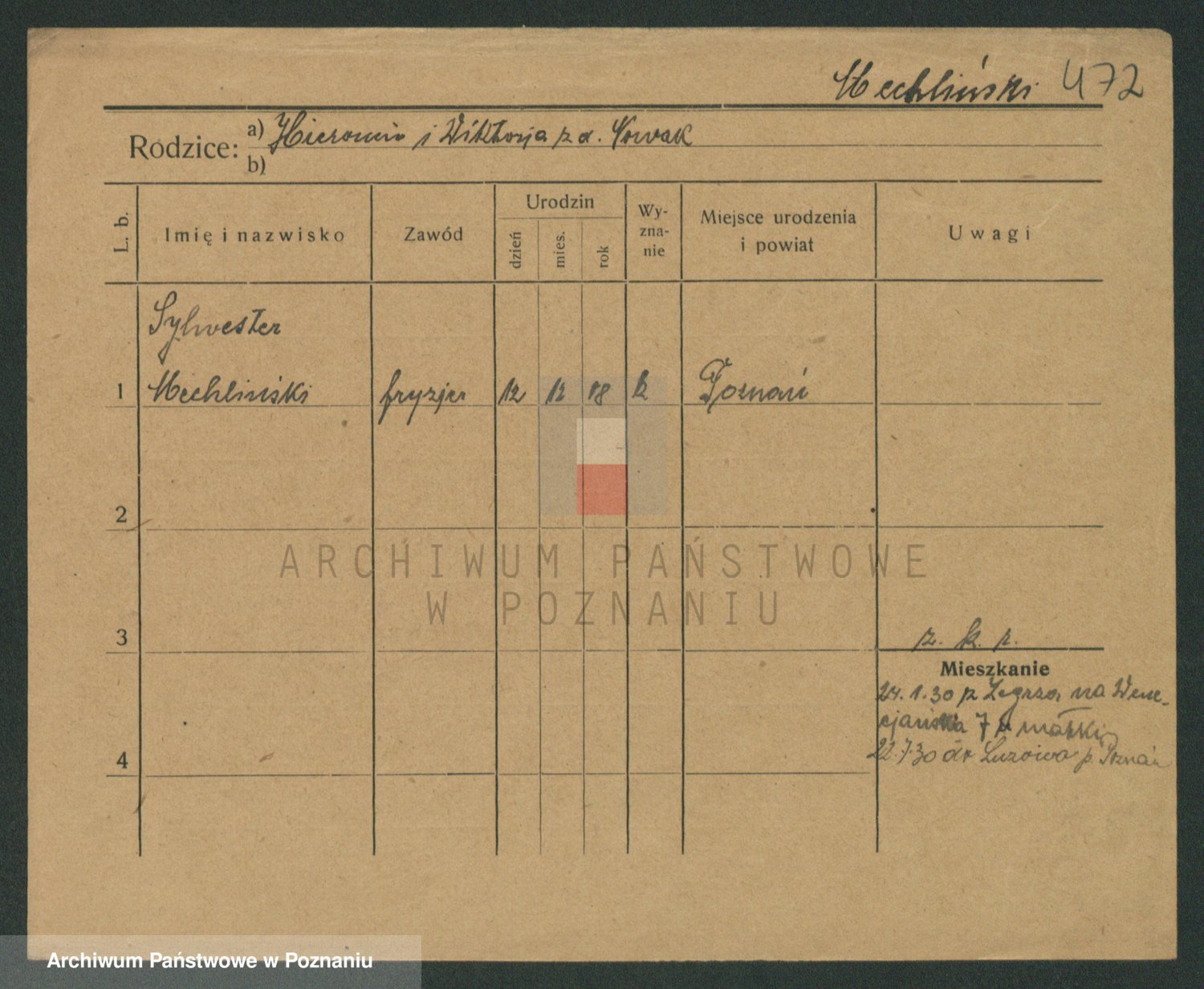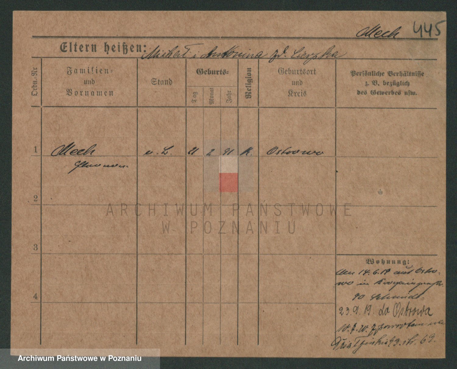 Podgląd karty osobowej dostępny jest po kliknięciu na nazwisko lub ikonkę karty. Można dokonywać powiększenia (ikony na górze) lub przechodzić między kolejnymi skanami (strzałki po bokach).