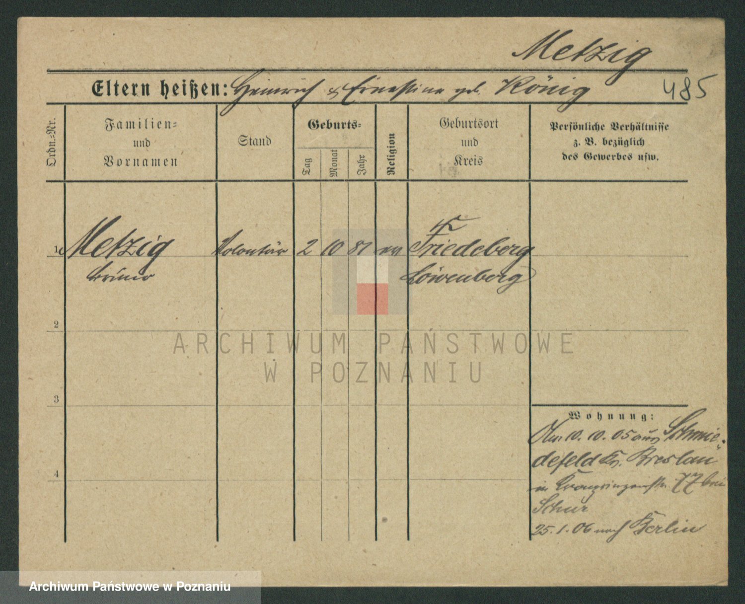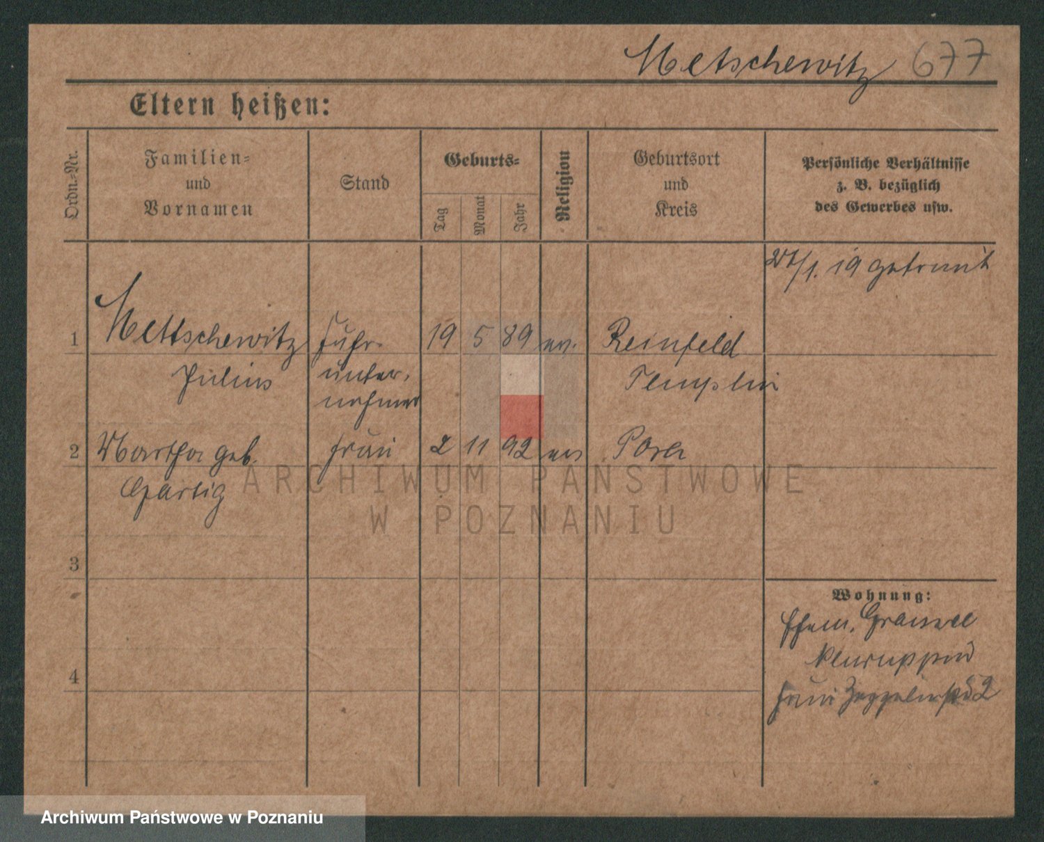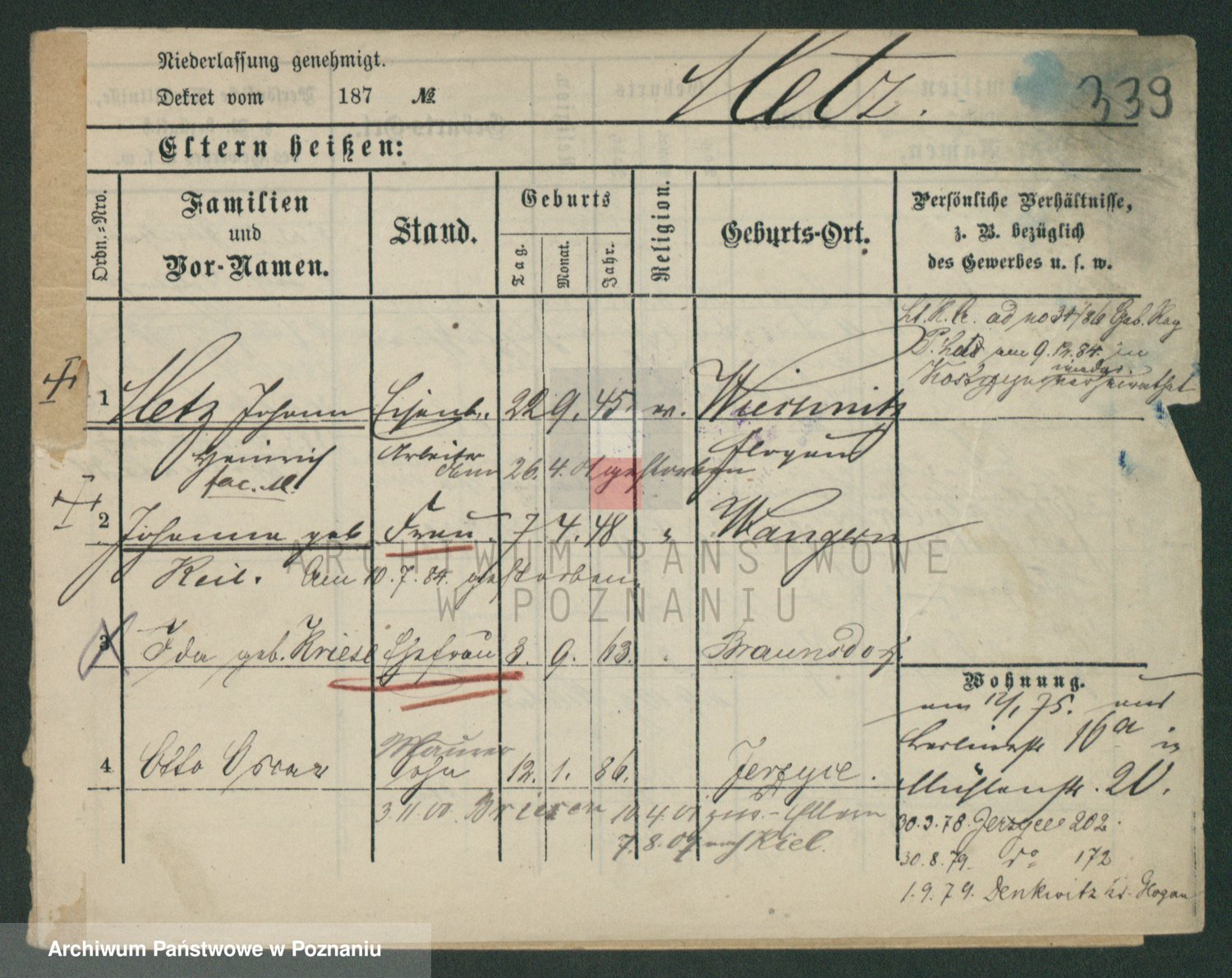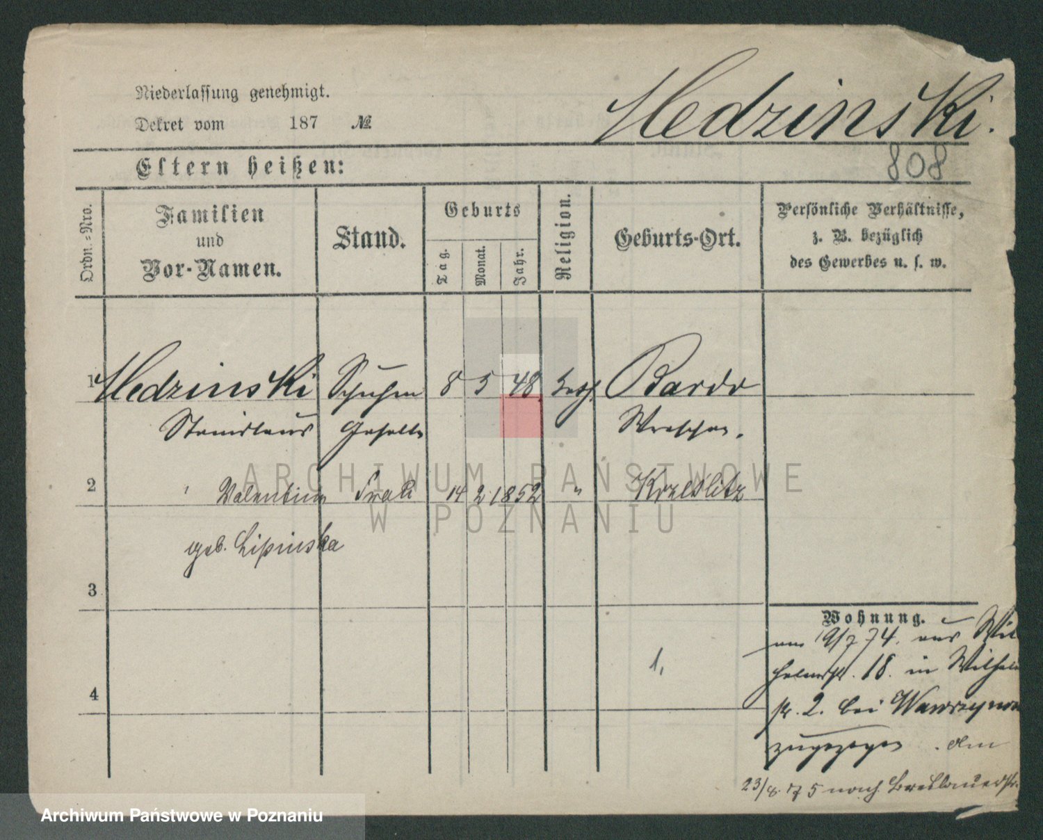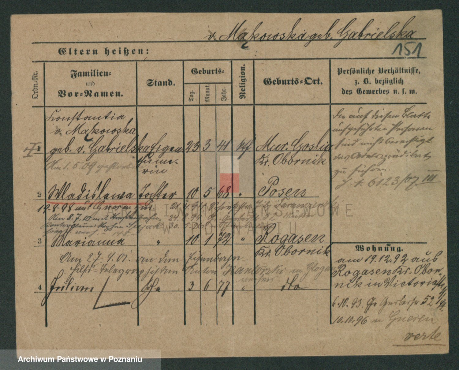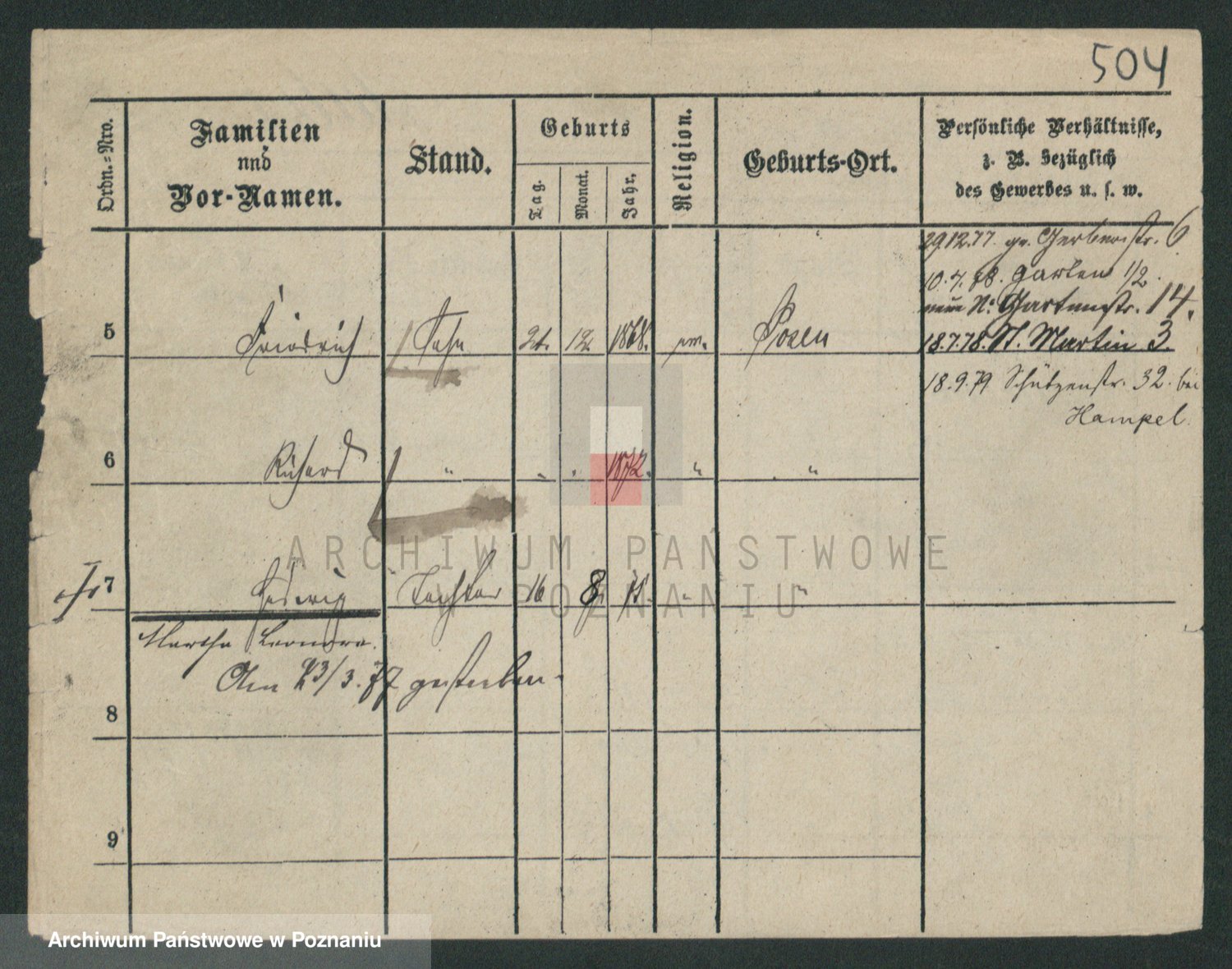 Podgląd karty osobowej dostępny jest po kliknięciu na nazwisko lub ikonkę karty. Można dokonywać powiększenia (ikony na górze) lub przechodzić między kolejnymi skanami (strzałki po bokach).