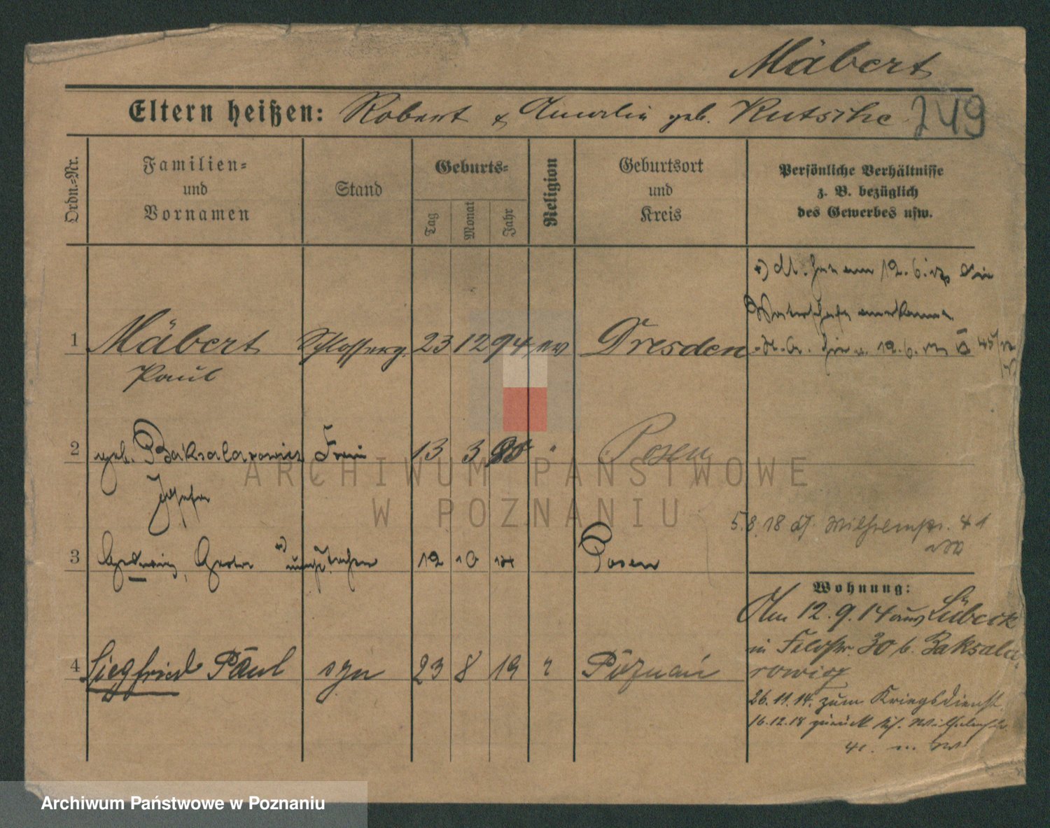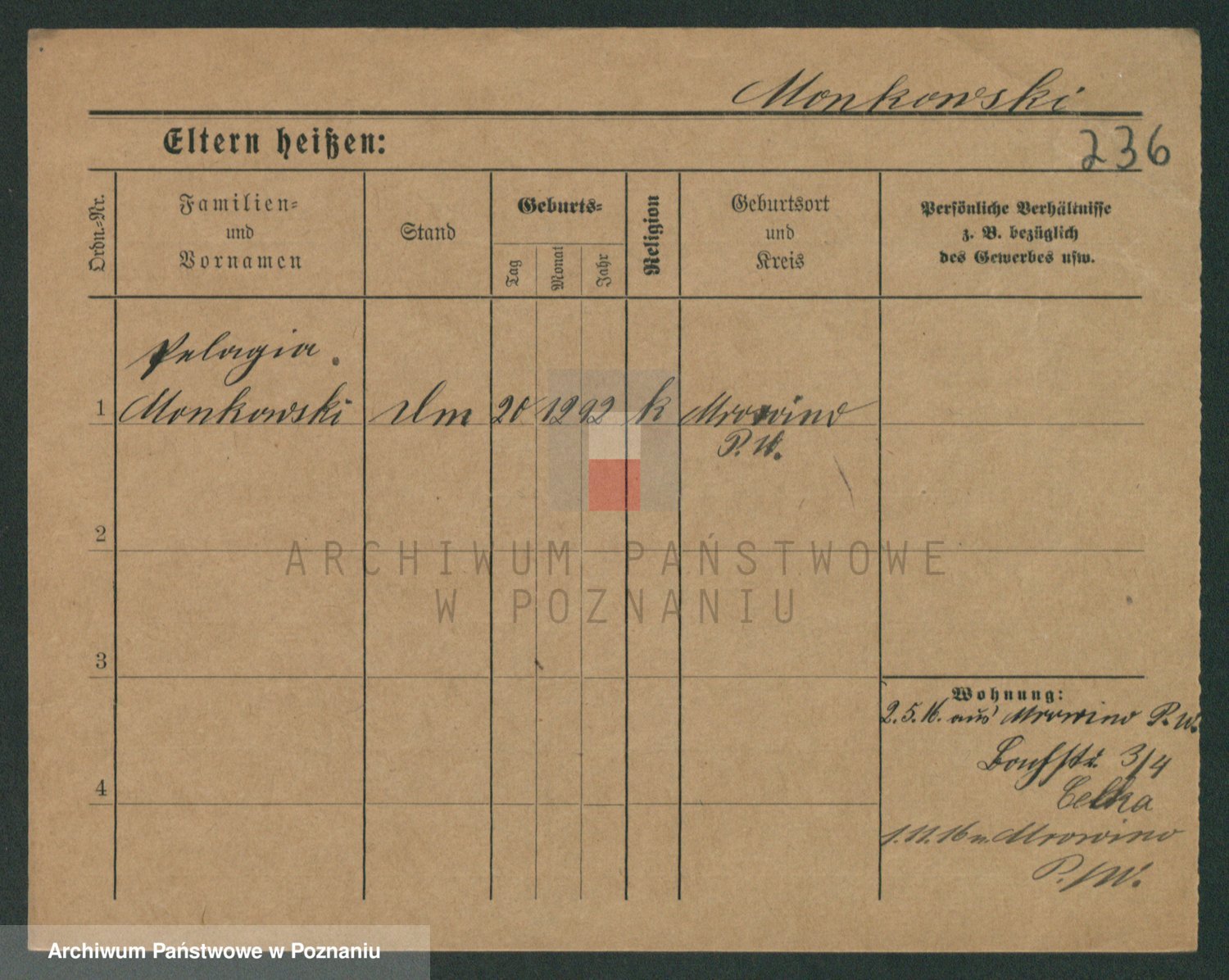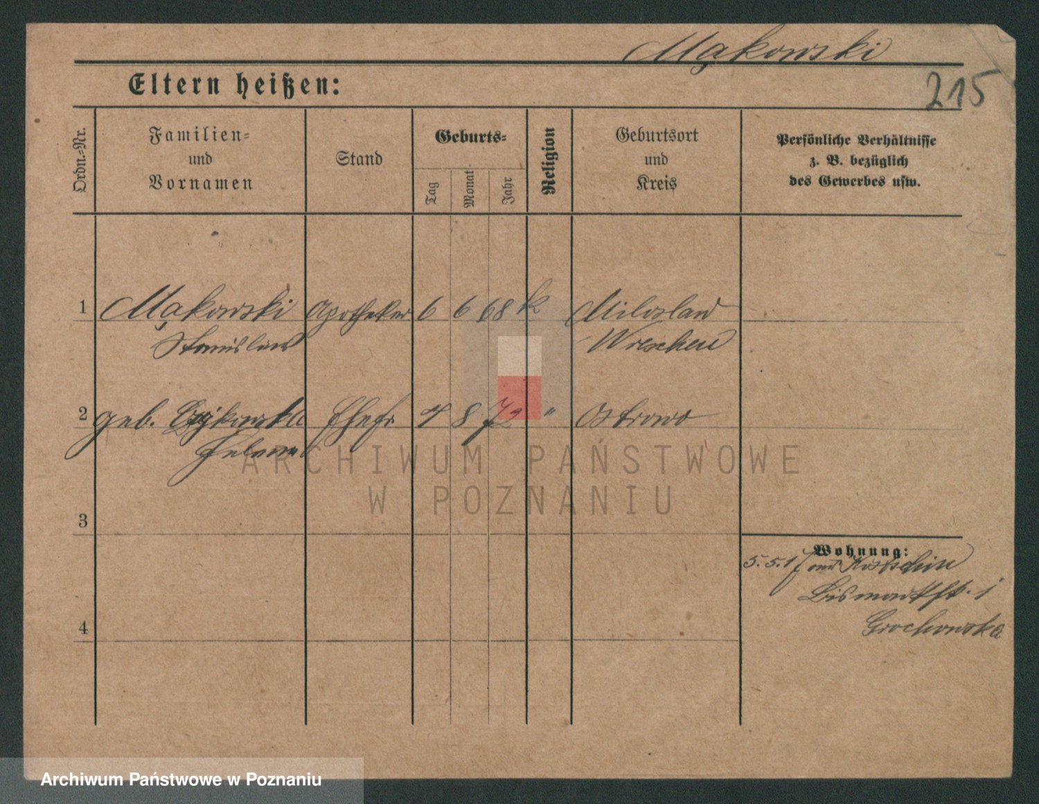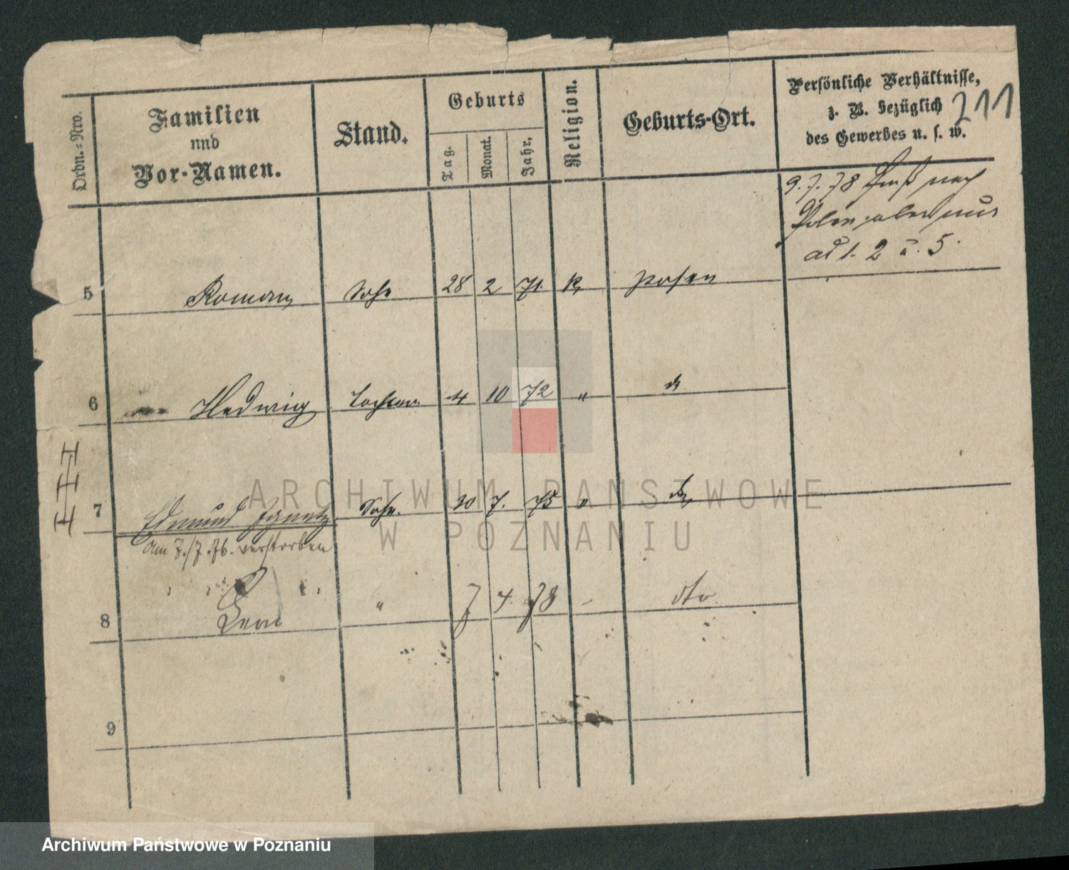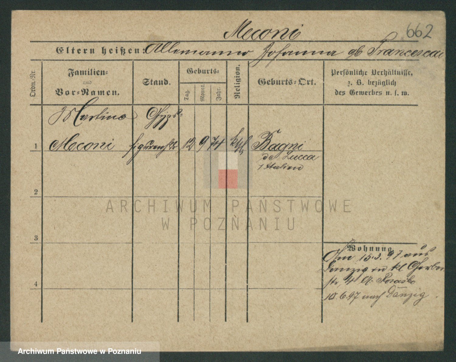 Podgląd karty osobowej dostępny jest po kliknięciu na nazwisko lub ikonkę karty. Można dokonywać powiększenia (ikony na górze) lub przechodzić między kolejnymi skanami (strzałki po bokach).