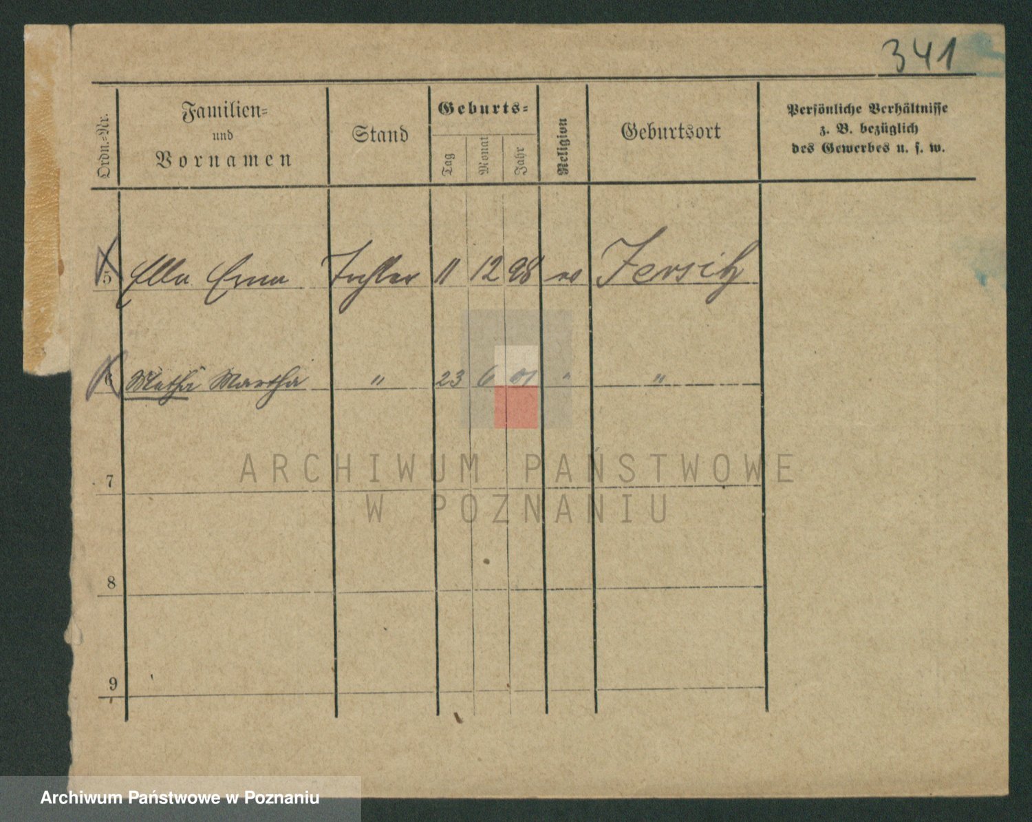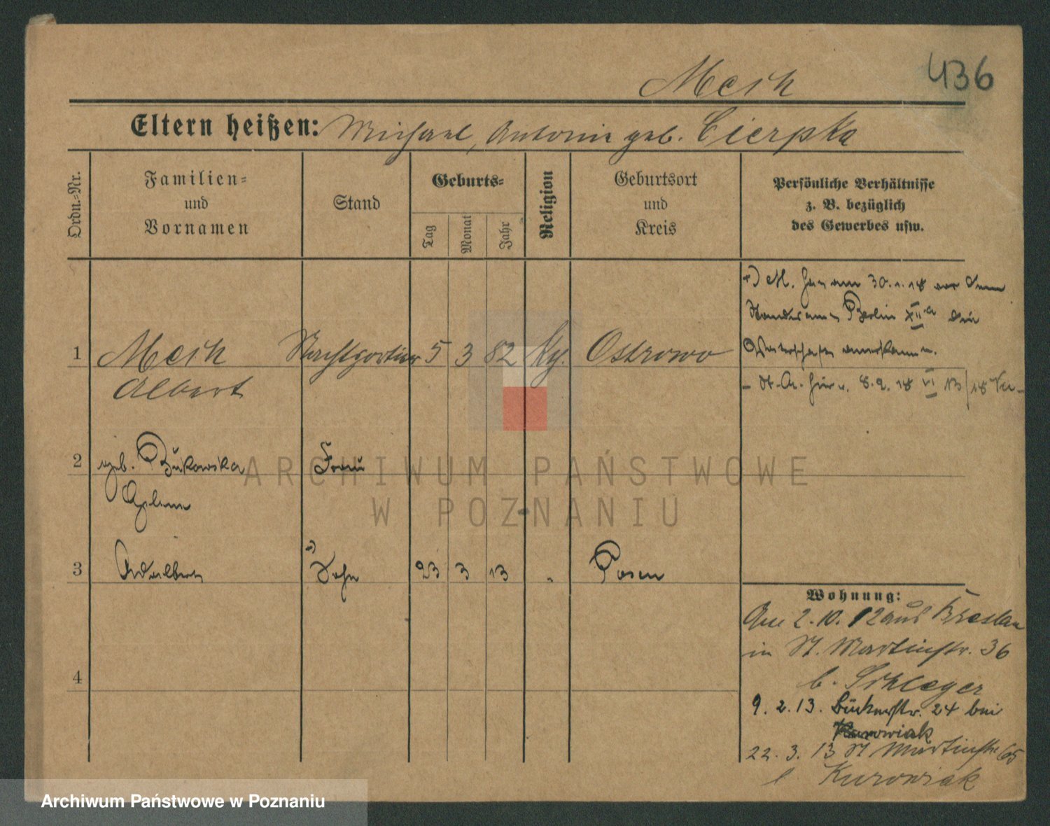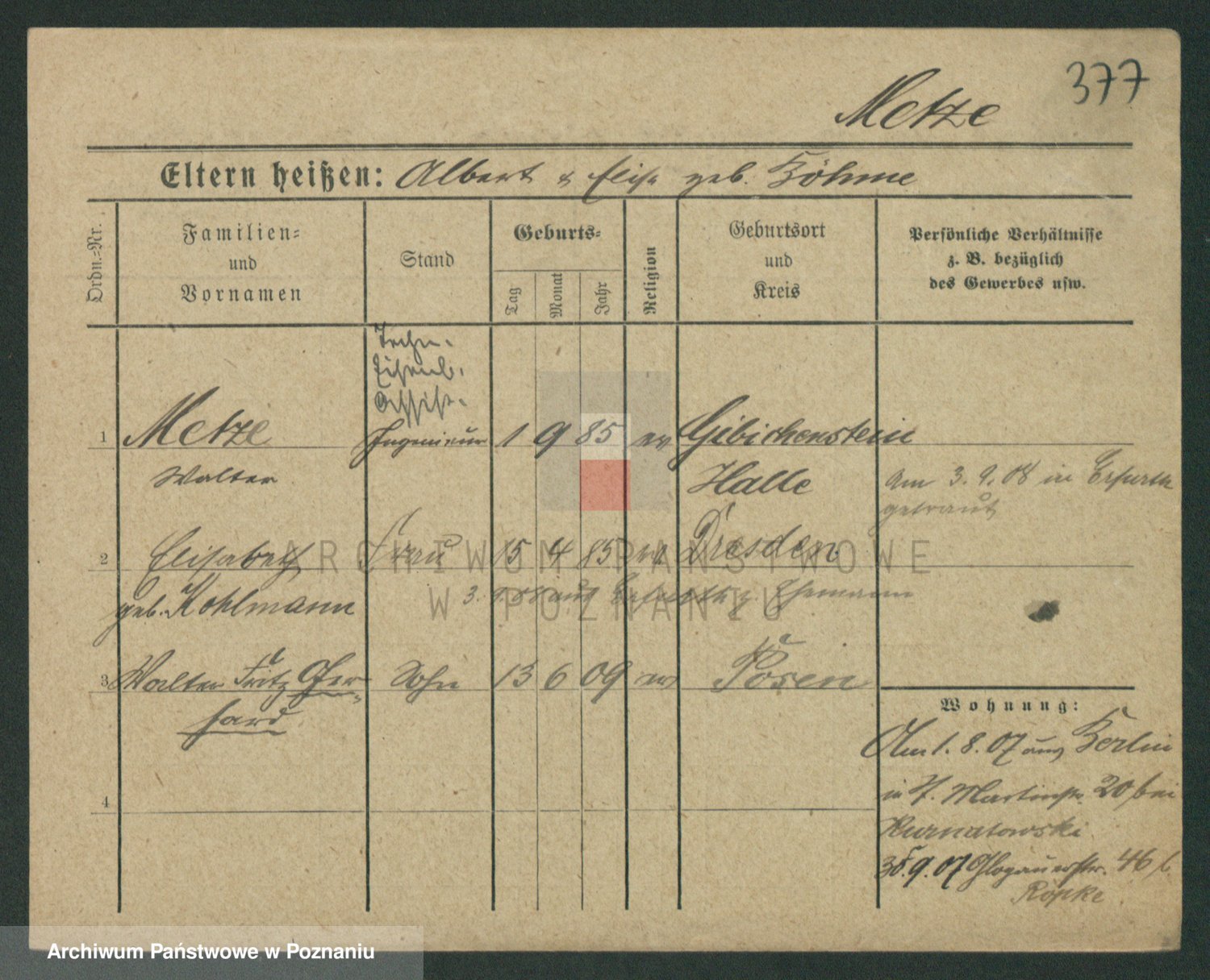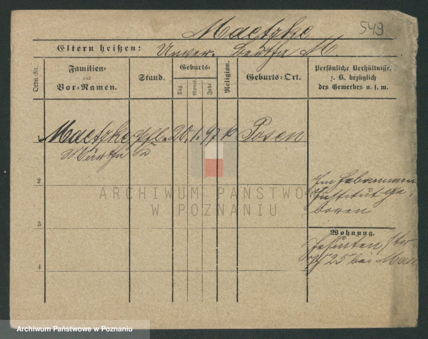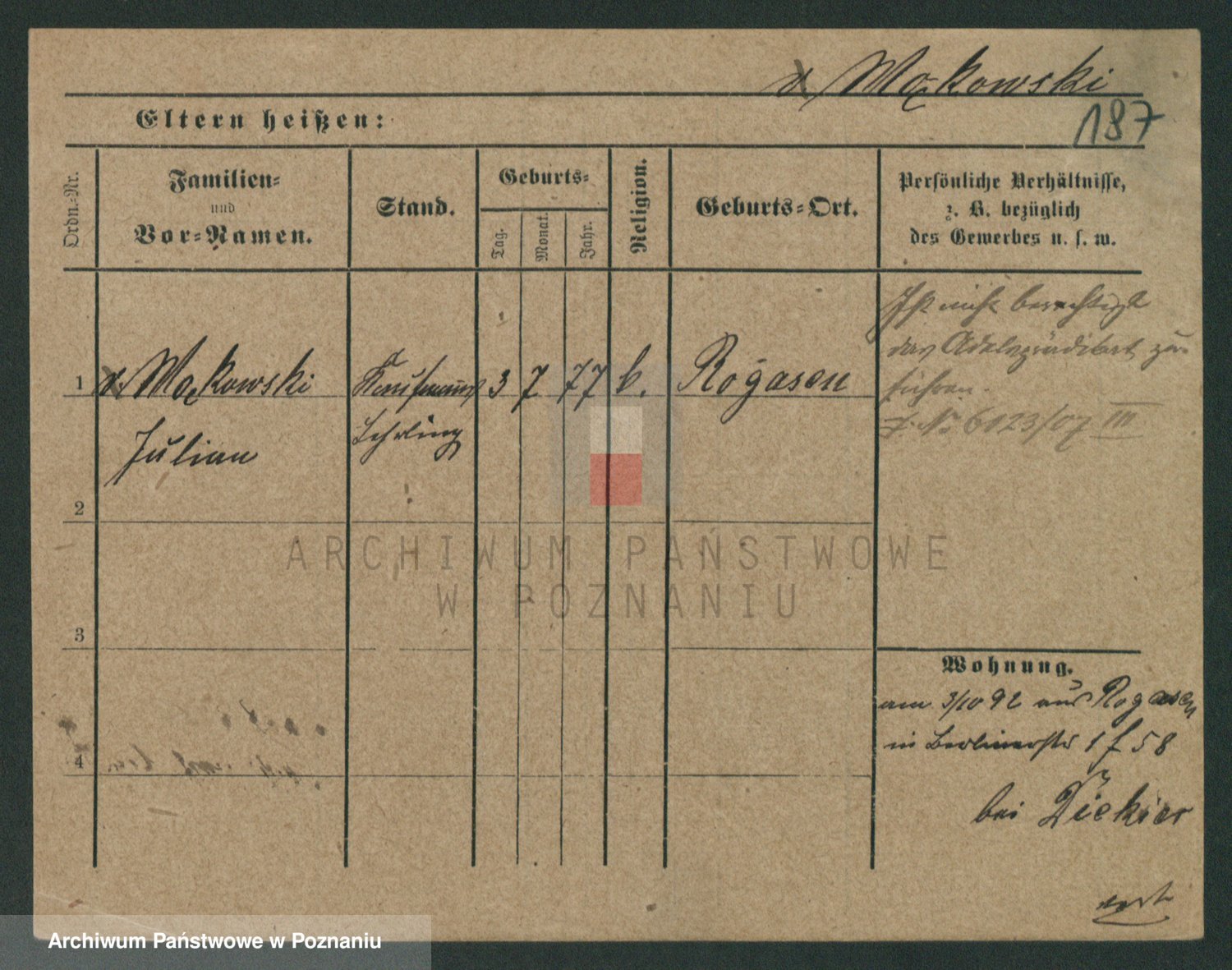 Podgląd karty osobowej dostępny jest po kliknięciu na nazwisko lub ikonkę karty. Można dokonywać powiększenia (ikony na górze) lub przechodzić między kolejnymi skanami (strzałki po bokach).
