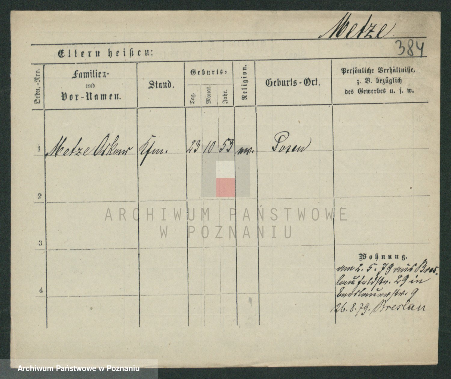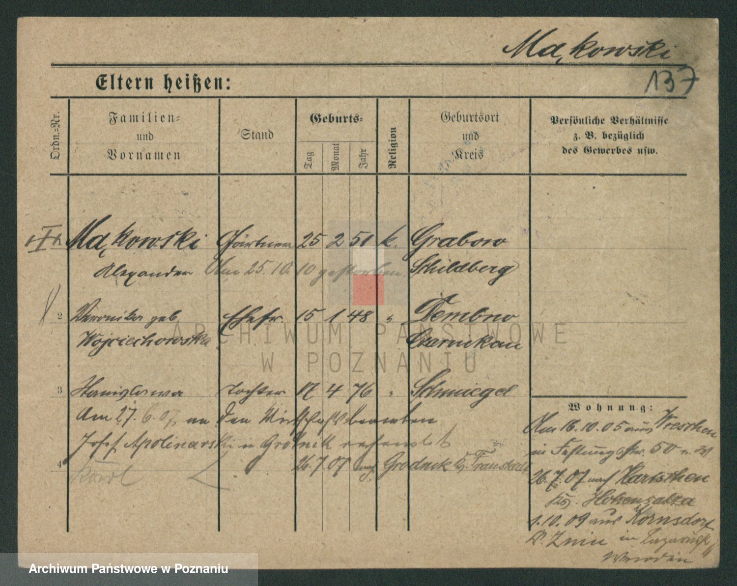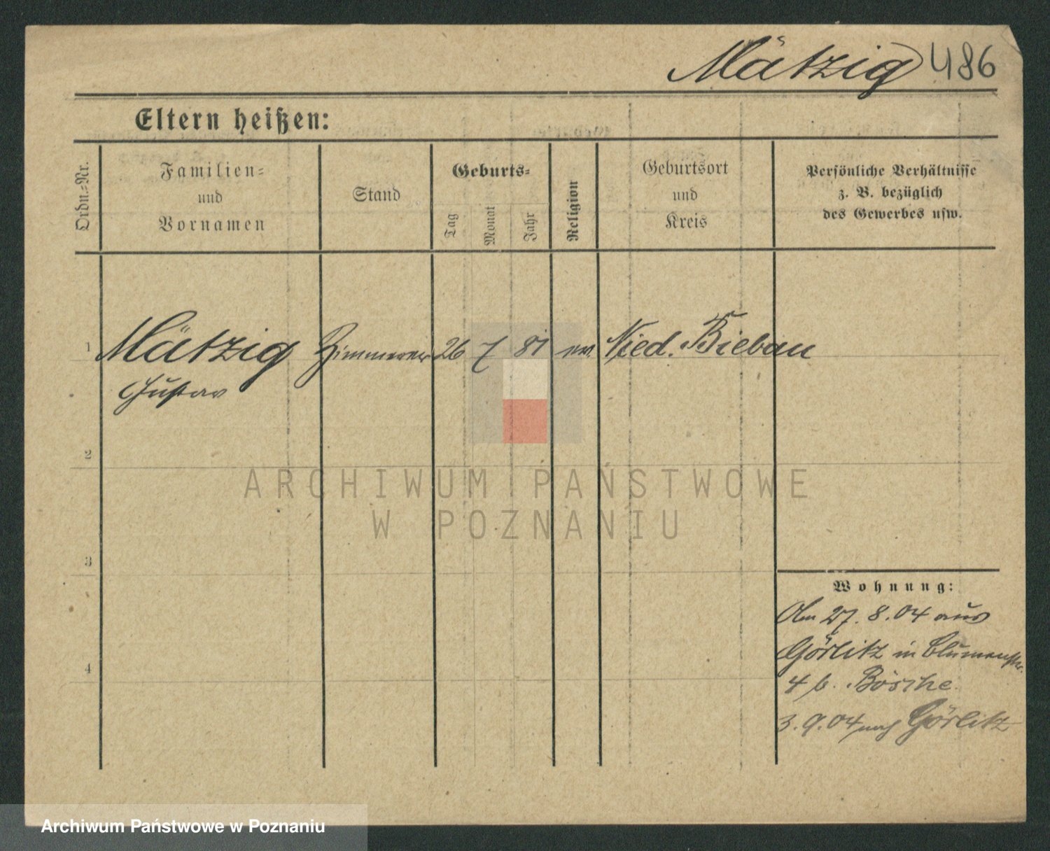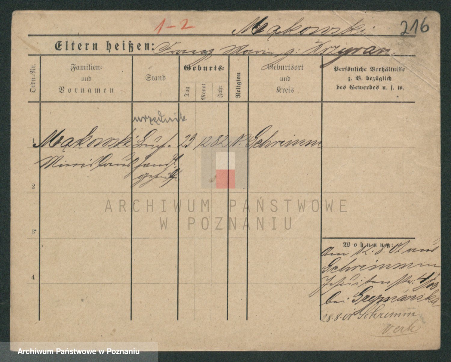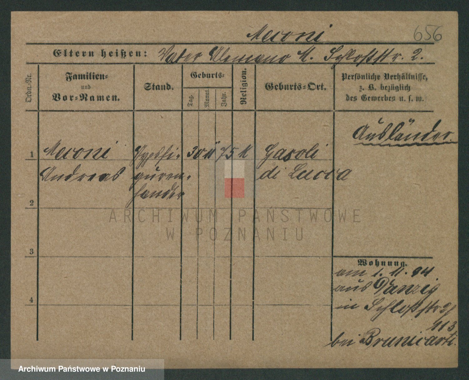 Podgląd karty osobowej dostępny jest po kliknięciu na nazwisko lub ikonkę karty. Można dokonywać powiększenia (ikony na górze) lub przechodzić między kolejnymi skanami (strzałki po bokach).