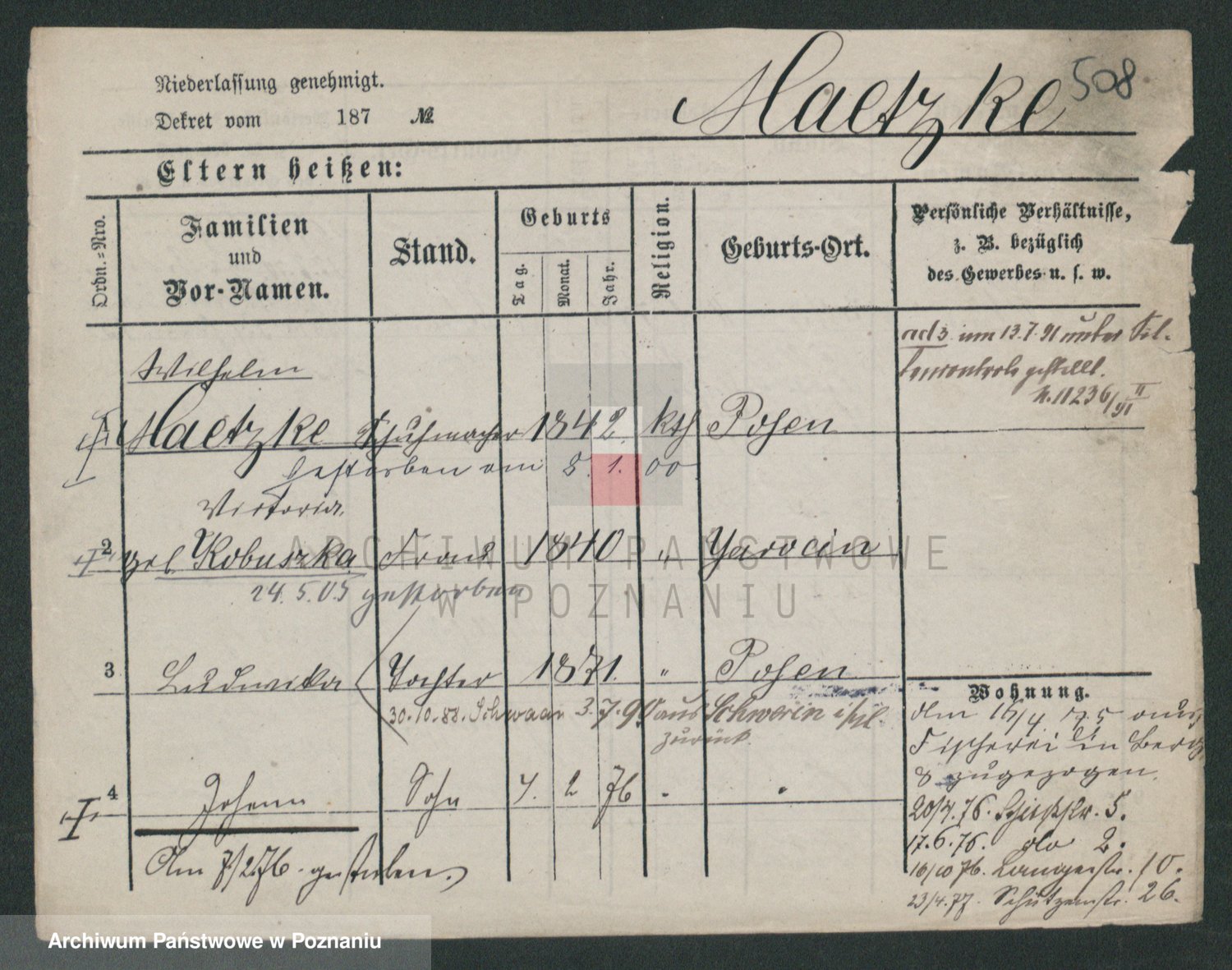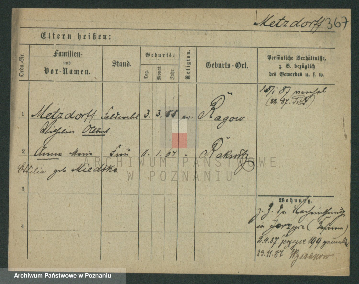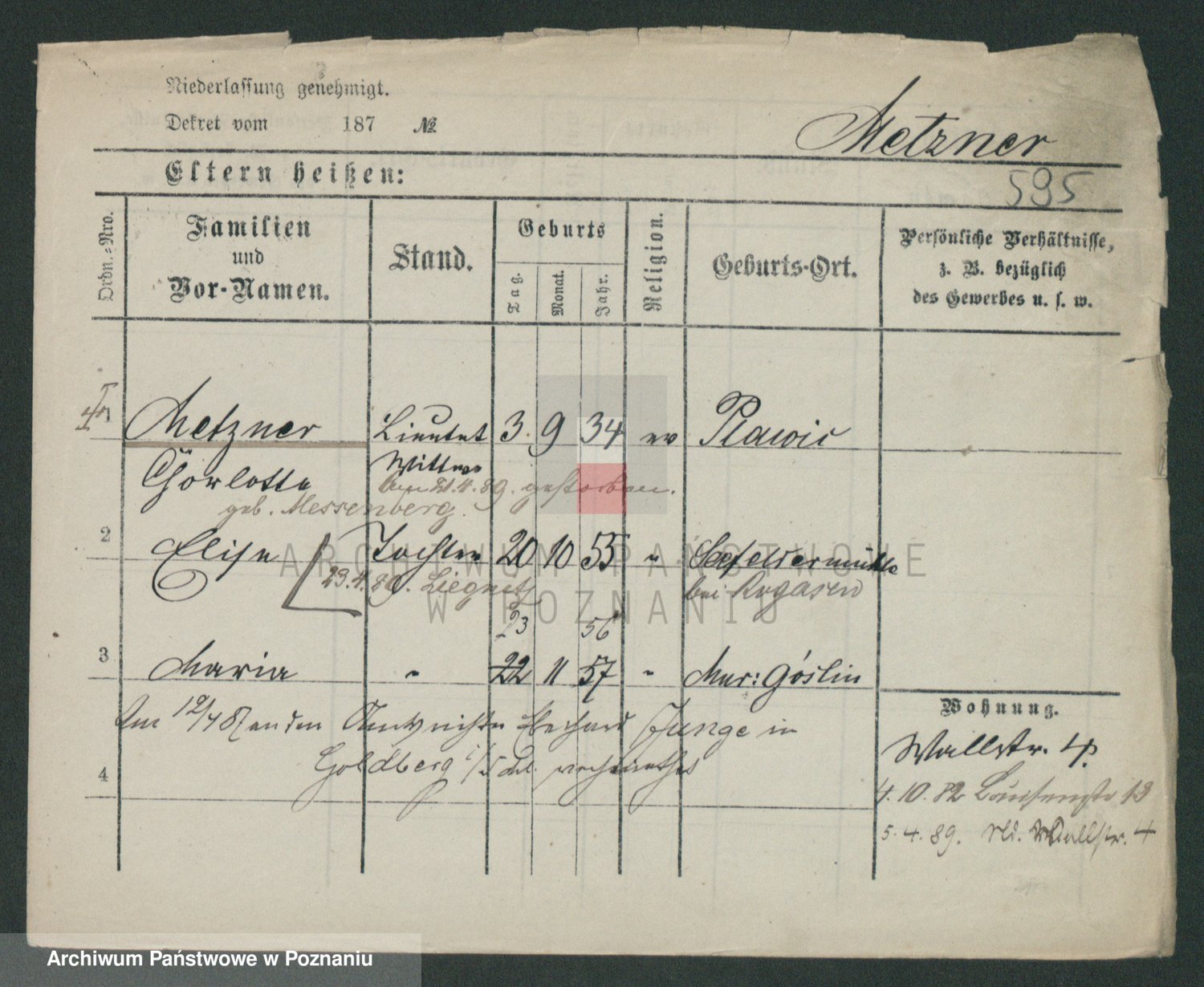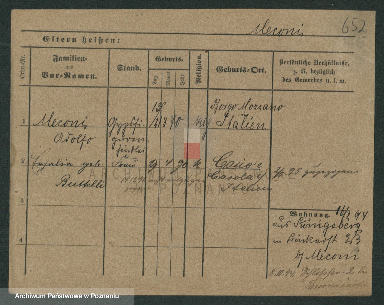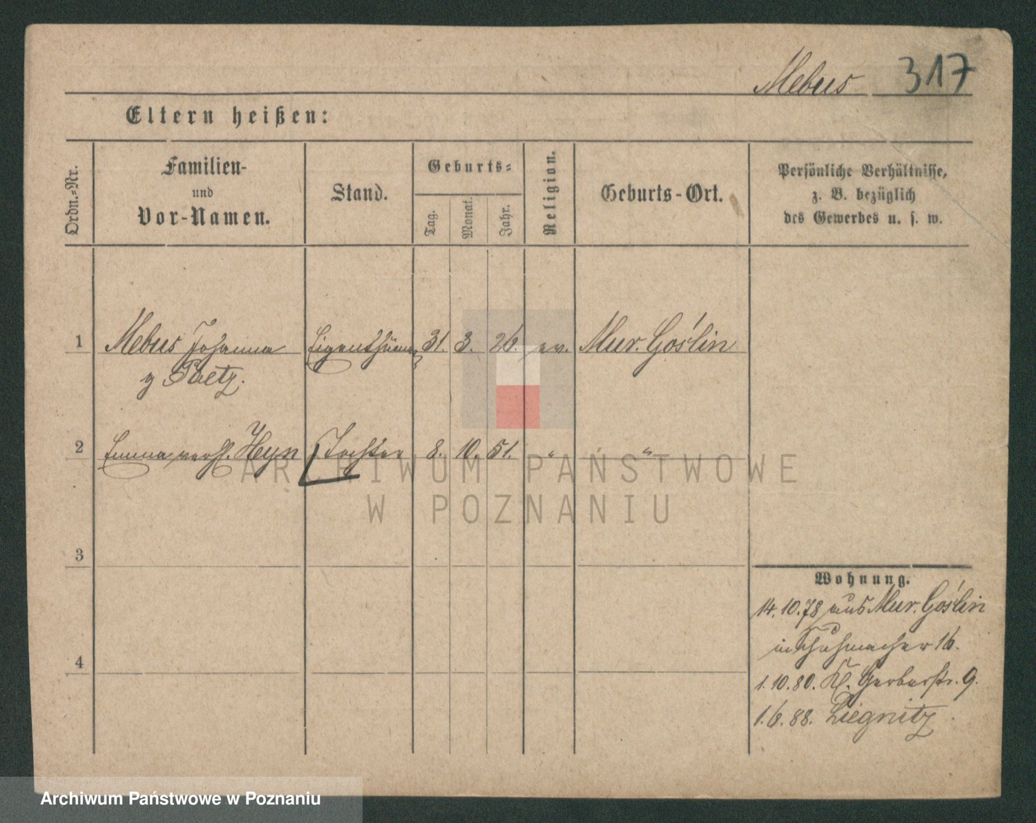 Podgląd karty osobowej dostępny jest po kliknięciu na nazwisko lub ikonkę karty. Można dokonywać powiększenia (ikony na górze) lub przechodzić między kolejnymi skanami (strzałki po bokach).
