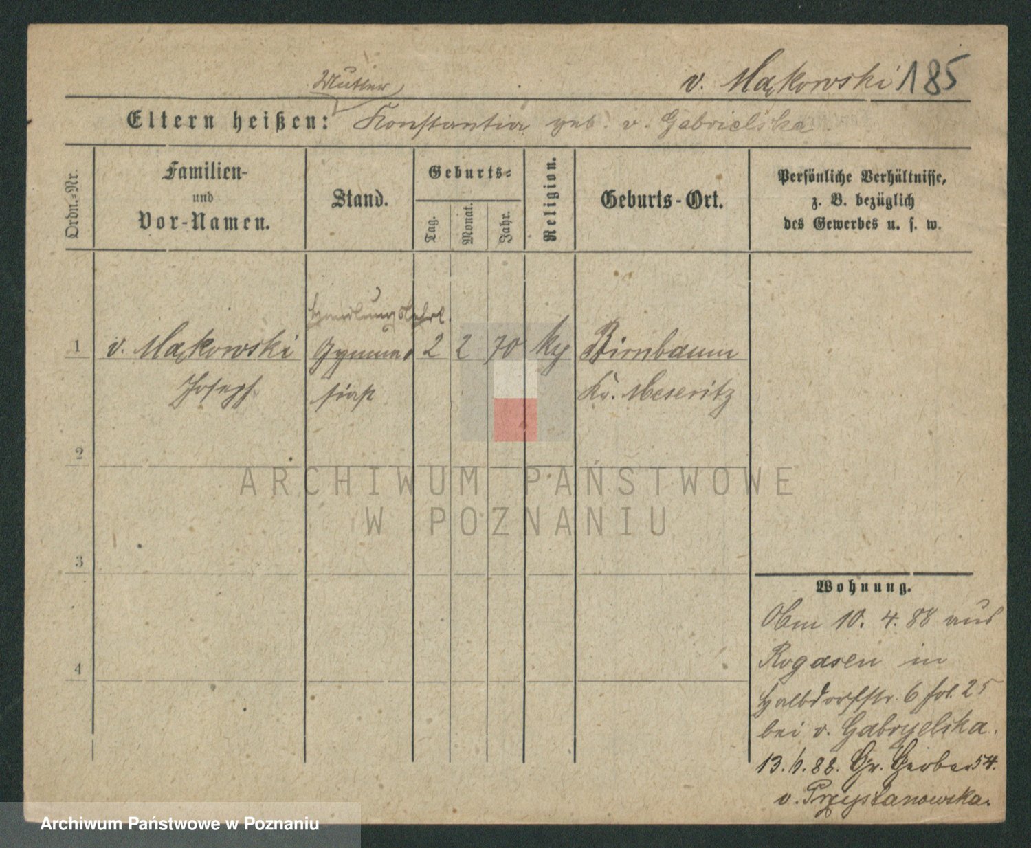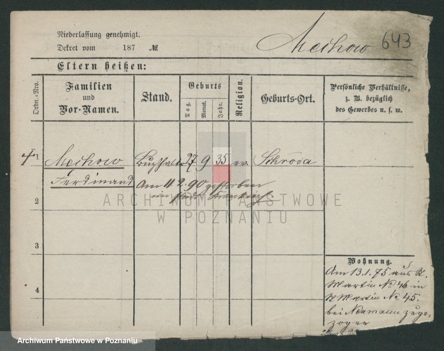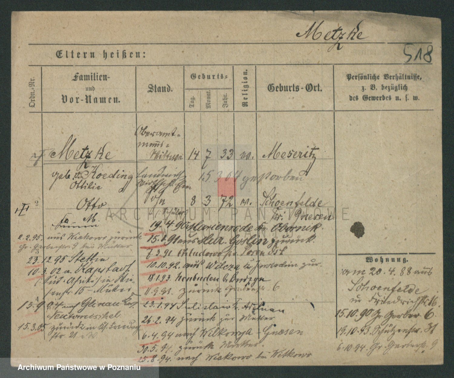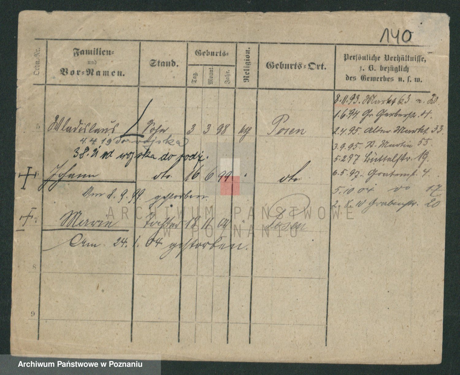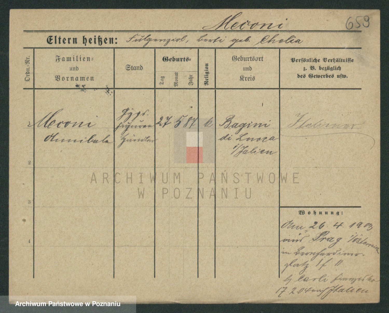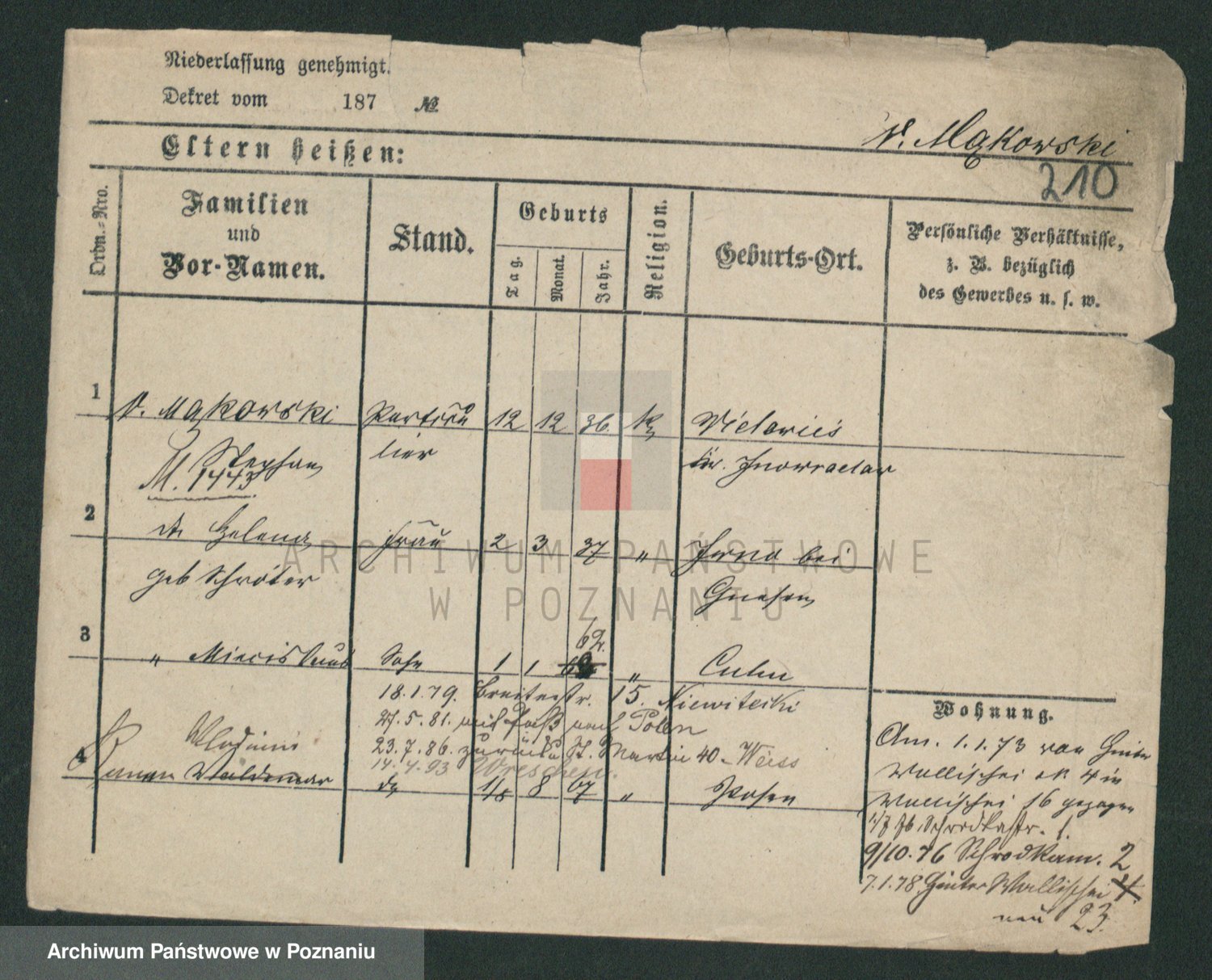 Podgląd karty osobowej dostępny jest po kliknięciu na nazwisko lub ikonkę karty. Można dokonywać powiększenia (ikony na górze) lub przechodzić między kolejnymi skanami (strzałki po bokach).