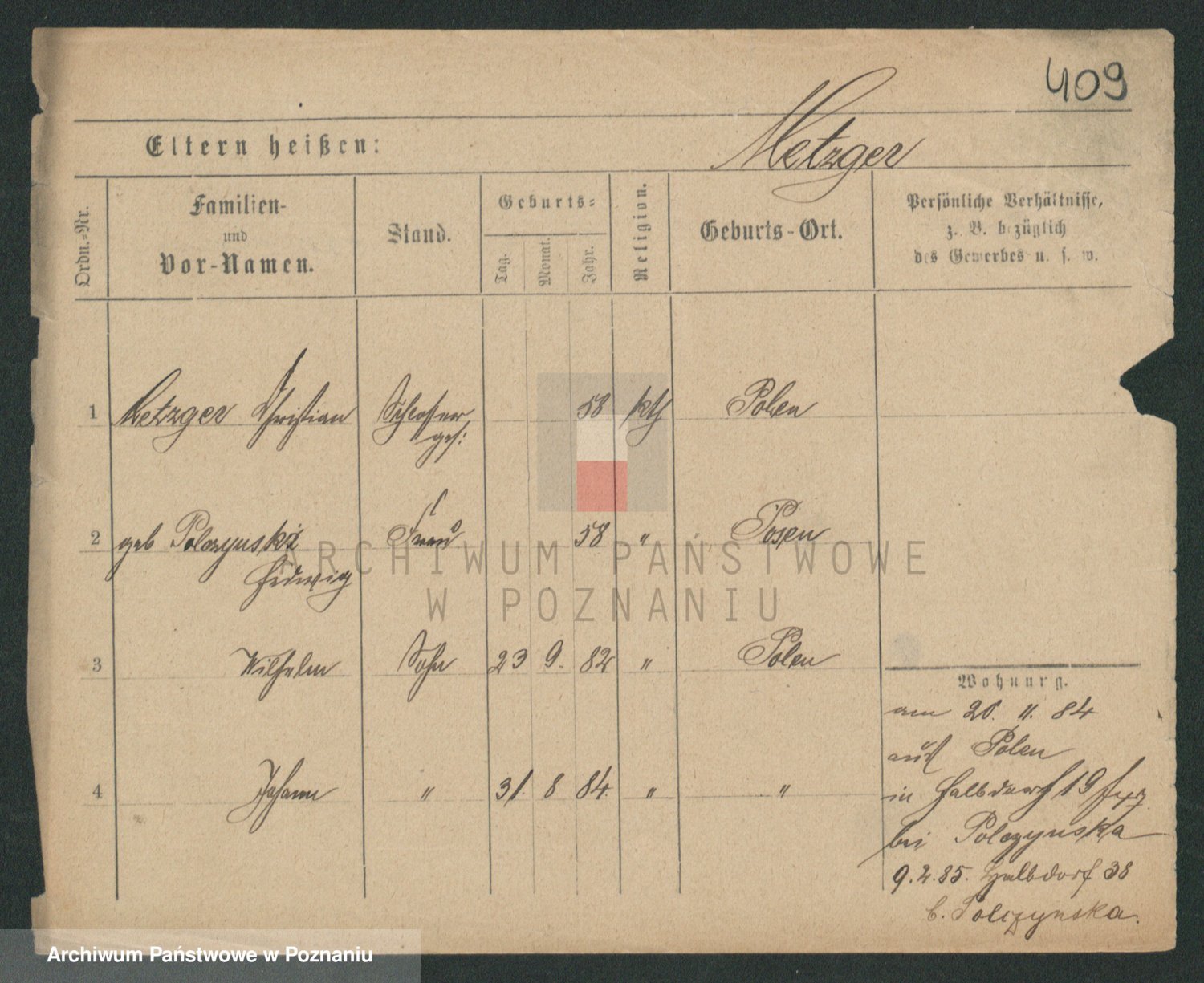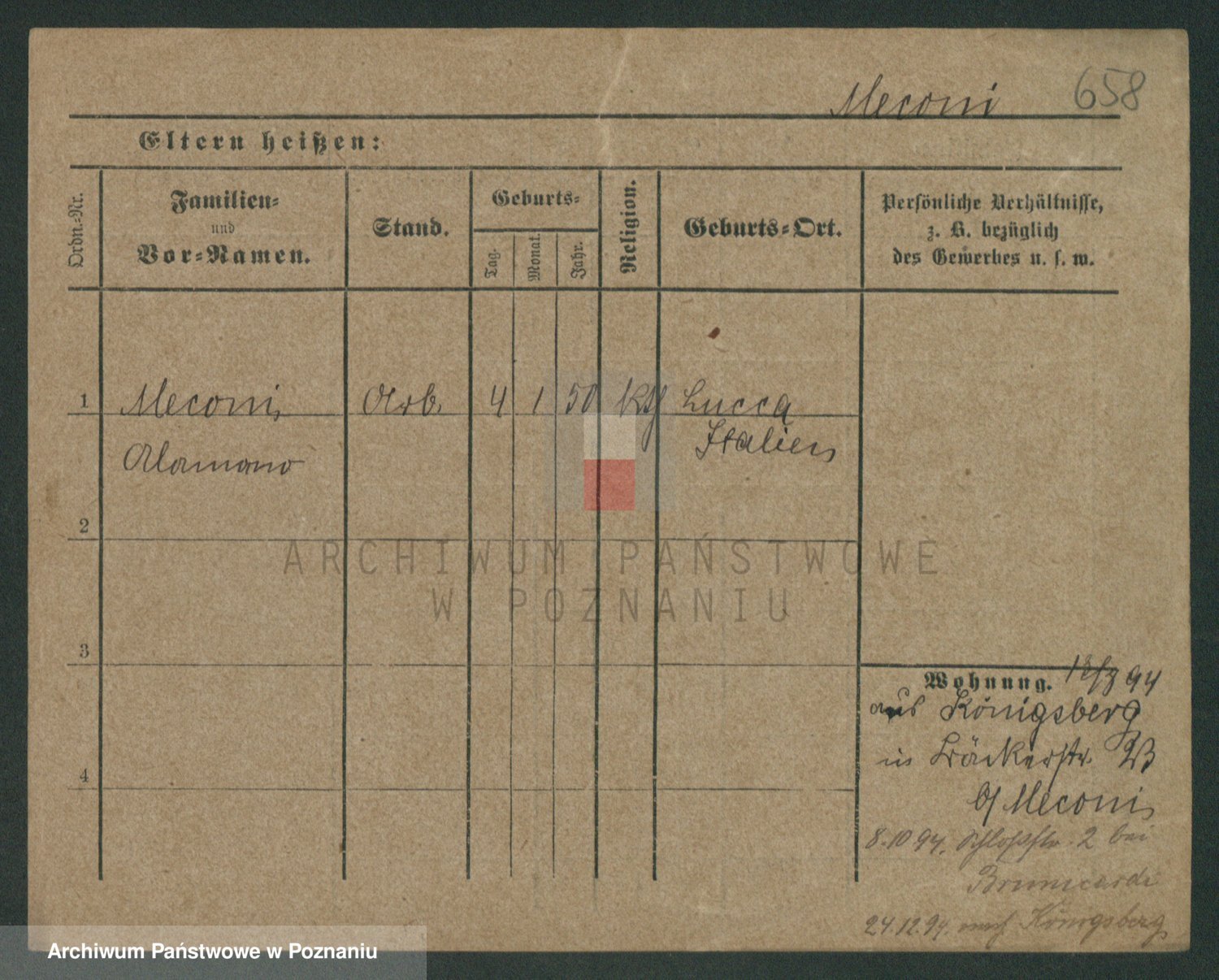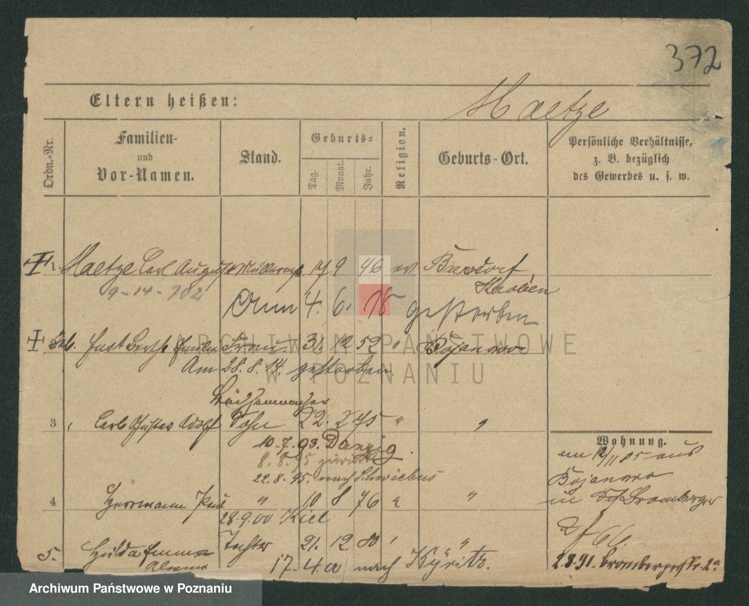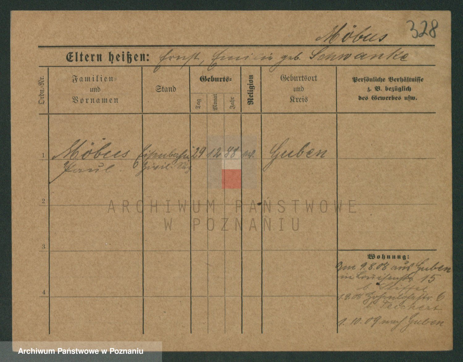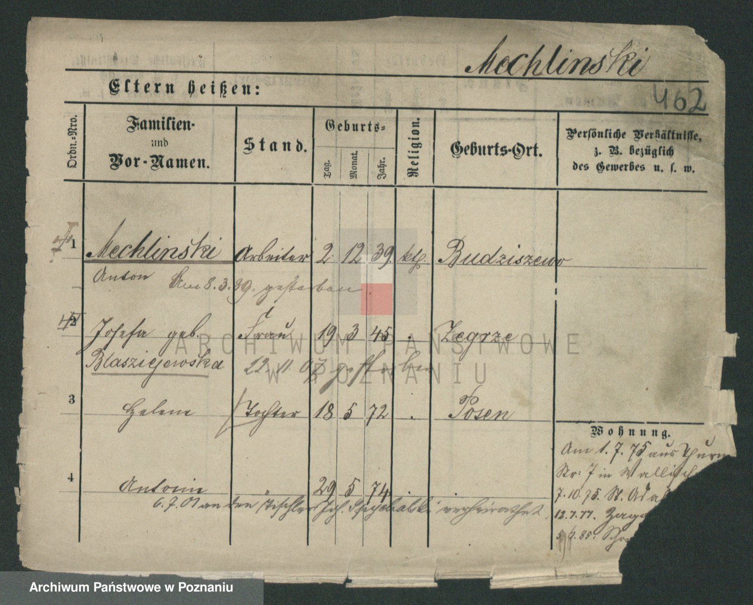 Podgląd karty osobowej dostępny jest po kliknięciu na nazwisko lub ikonkę karty. Można dokonywać powiększenia (ikony na górze) lub przechodzić między kolejnymi skanami (strzałki po bokach).