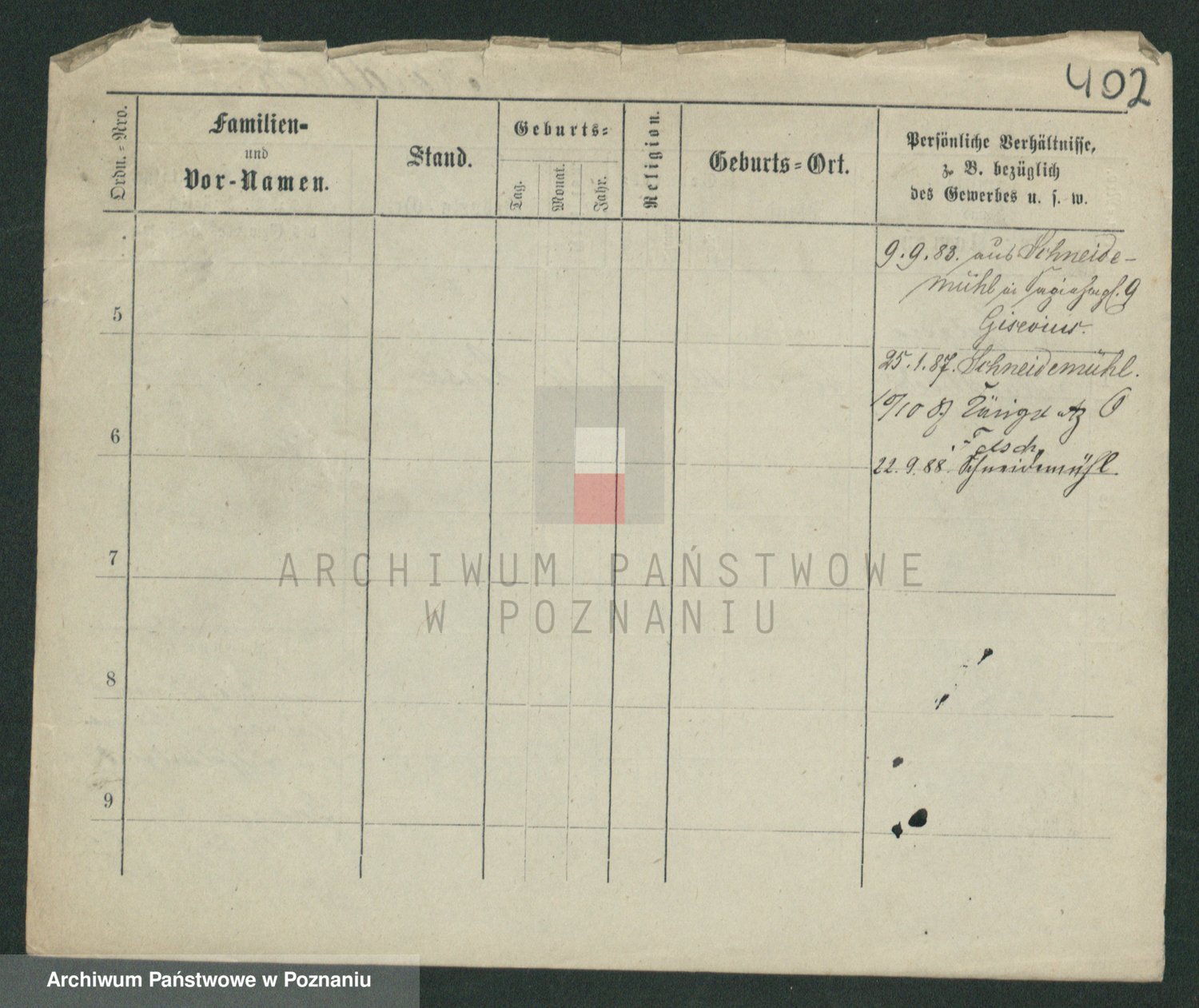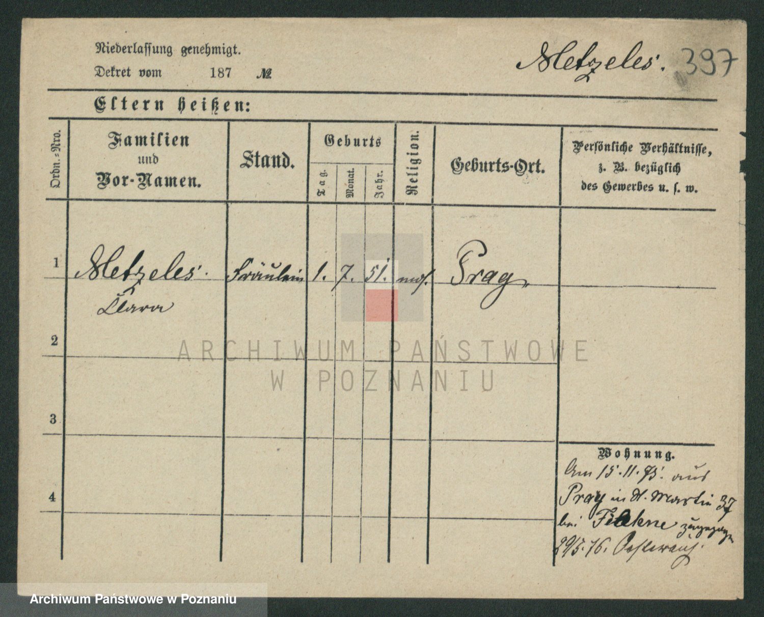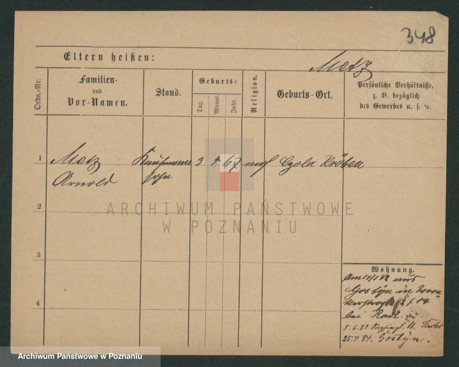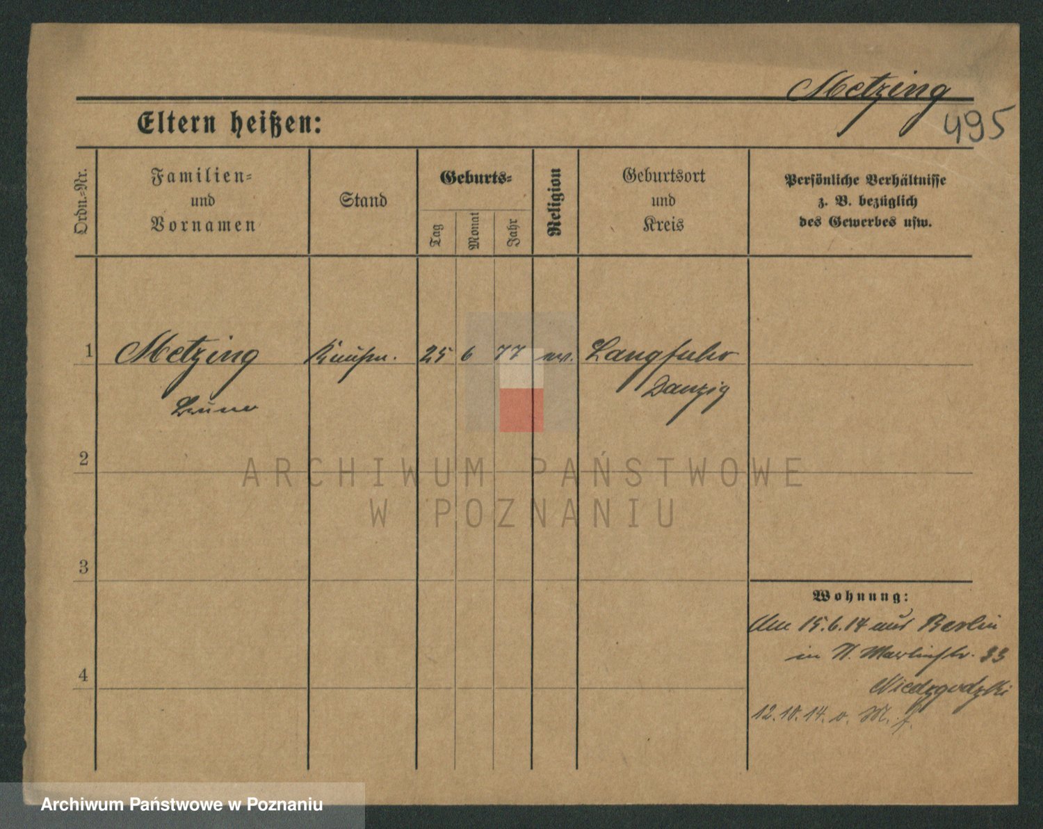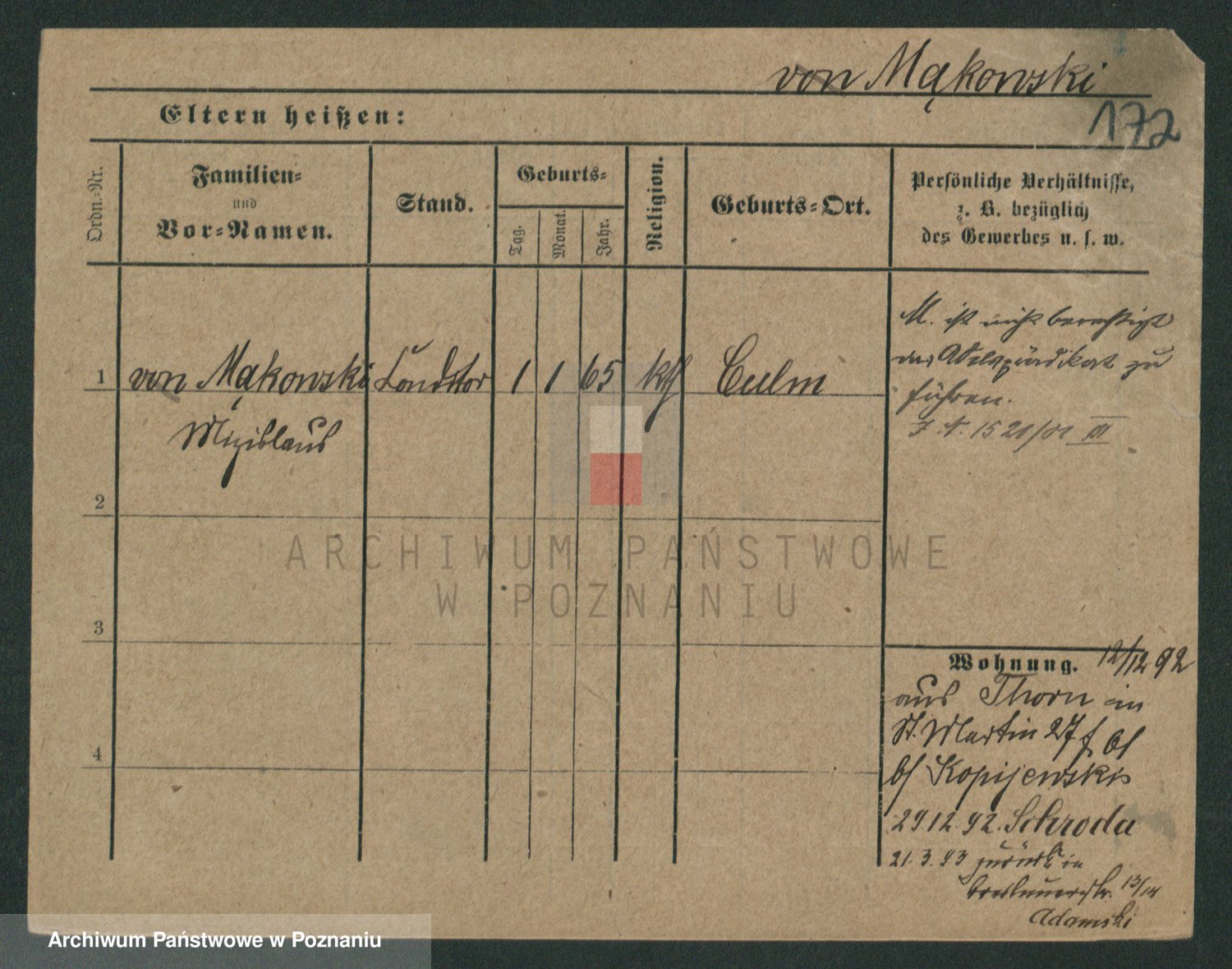 Podgląd karty osobowej dostępny jest po kliknięciu na nazwisko lub ikonkę karty. Można dokonywać powiększenia (ikony na górze) lub przechodzić między kolejnymi skanami (strzałki po bokach).