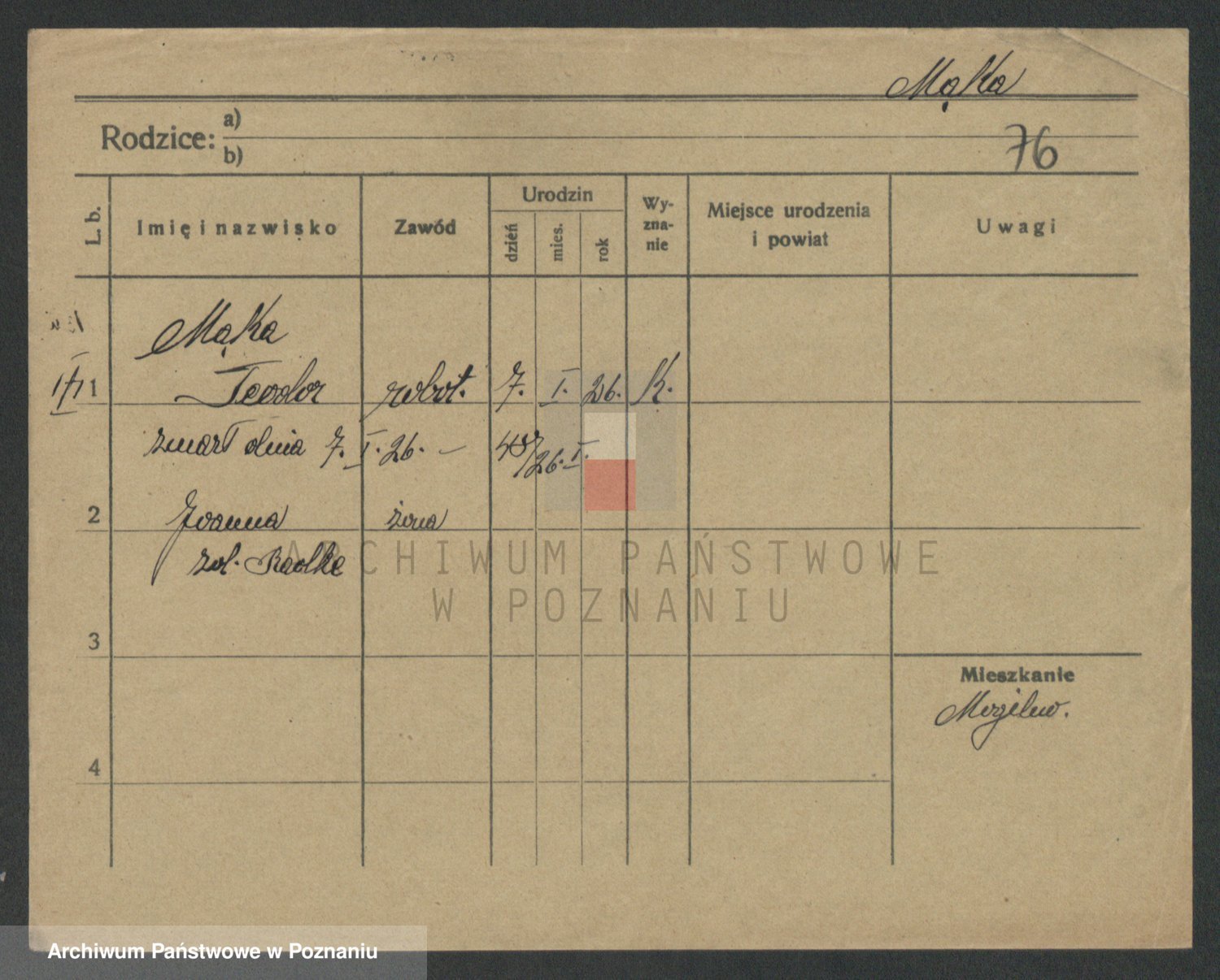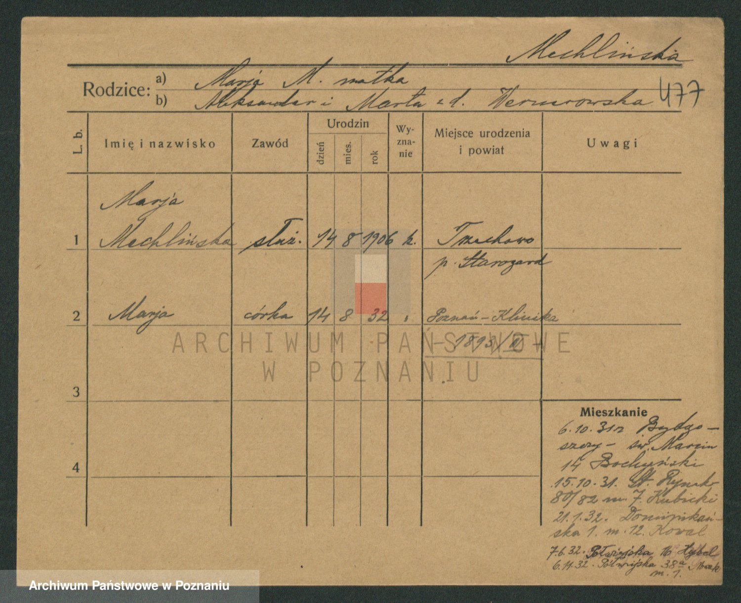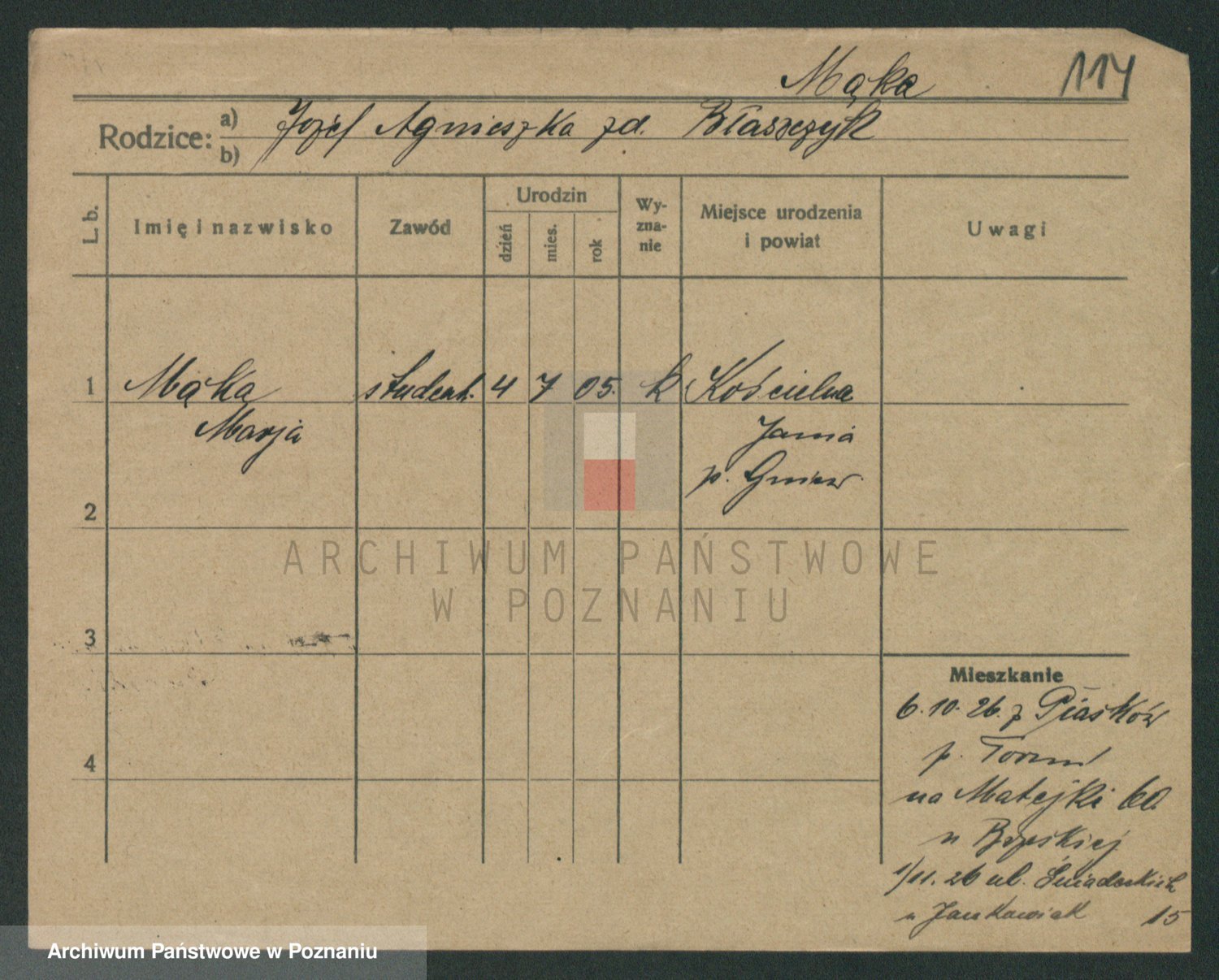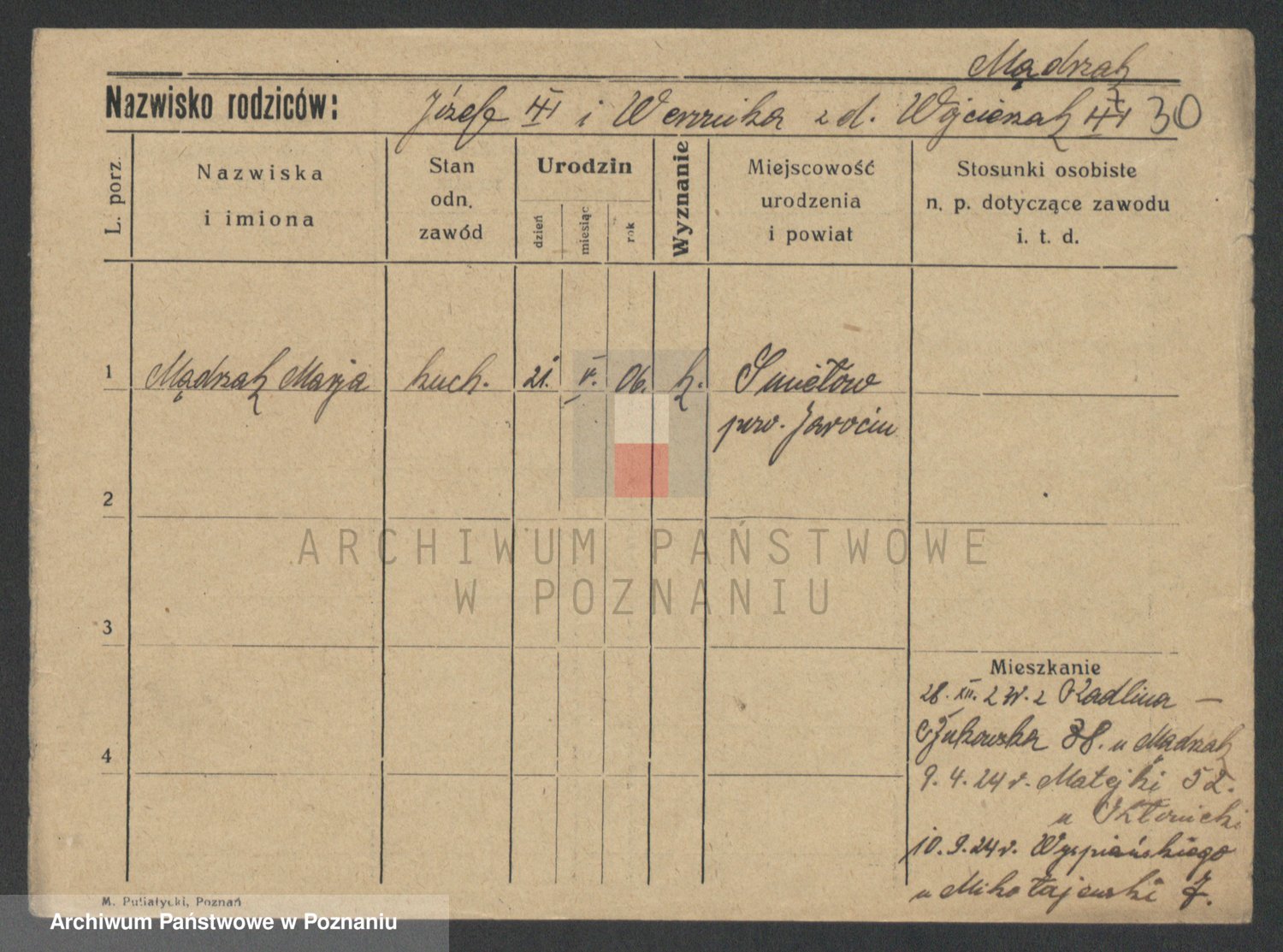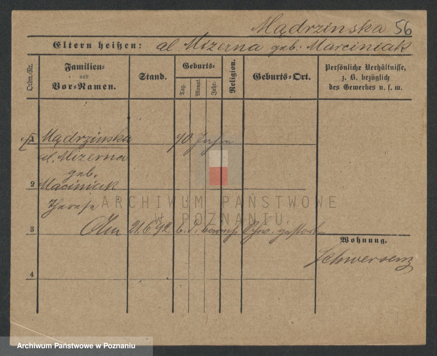 Mądrzinska alias Mizerna zd. Maciniak, Theresa