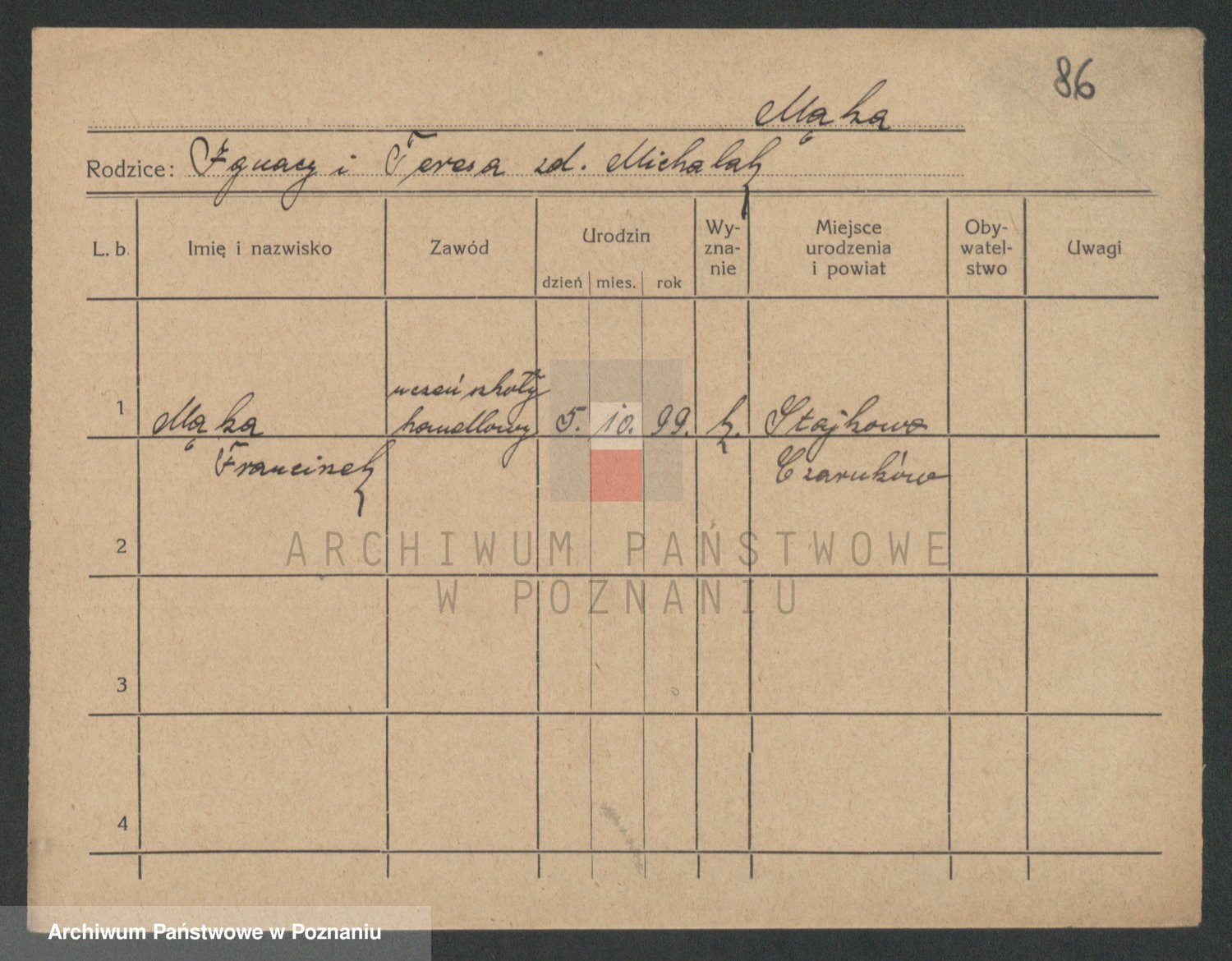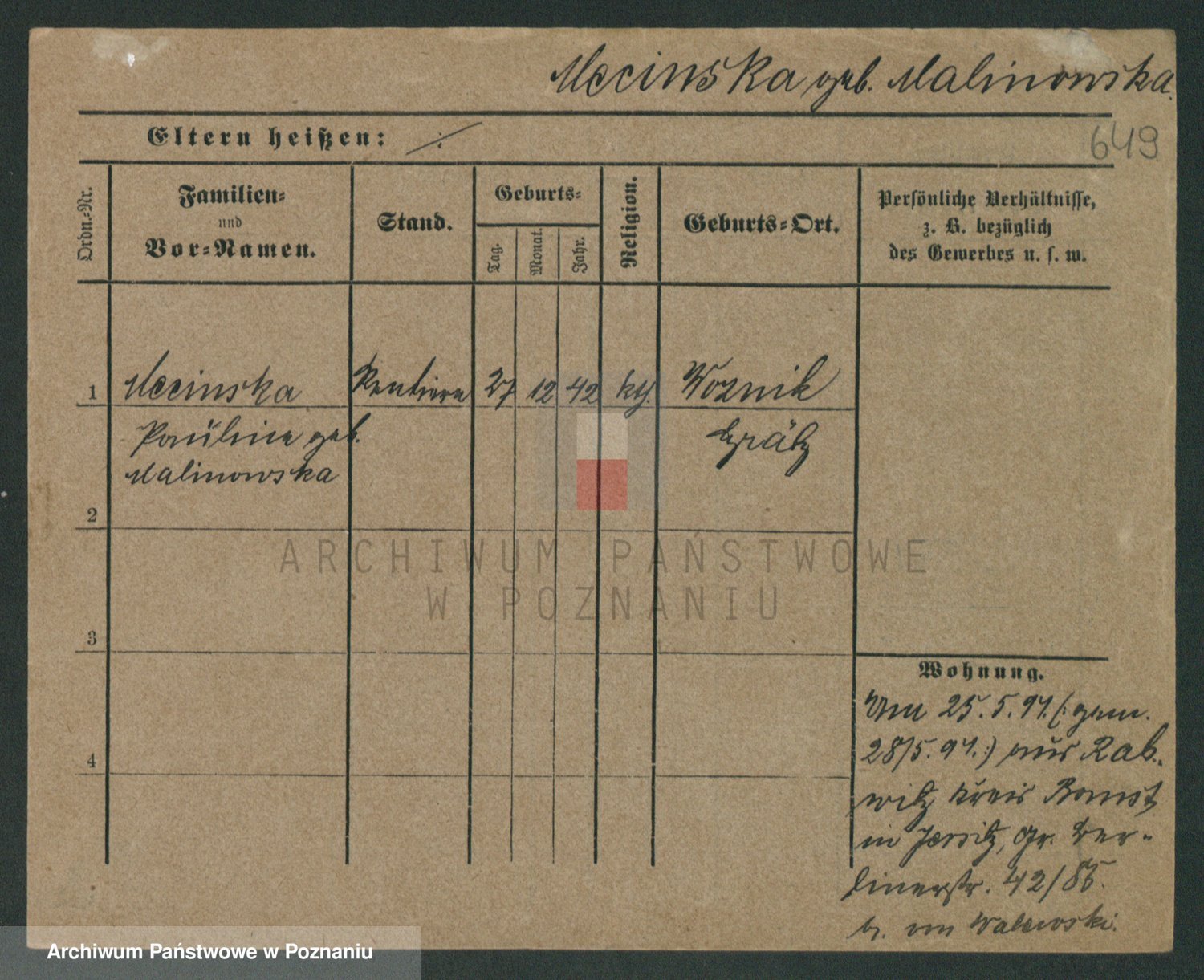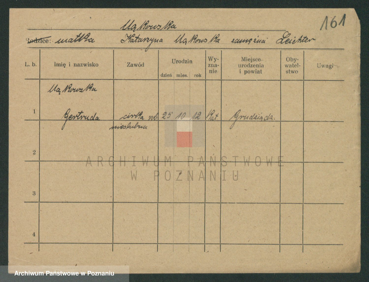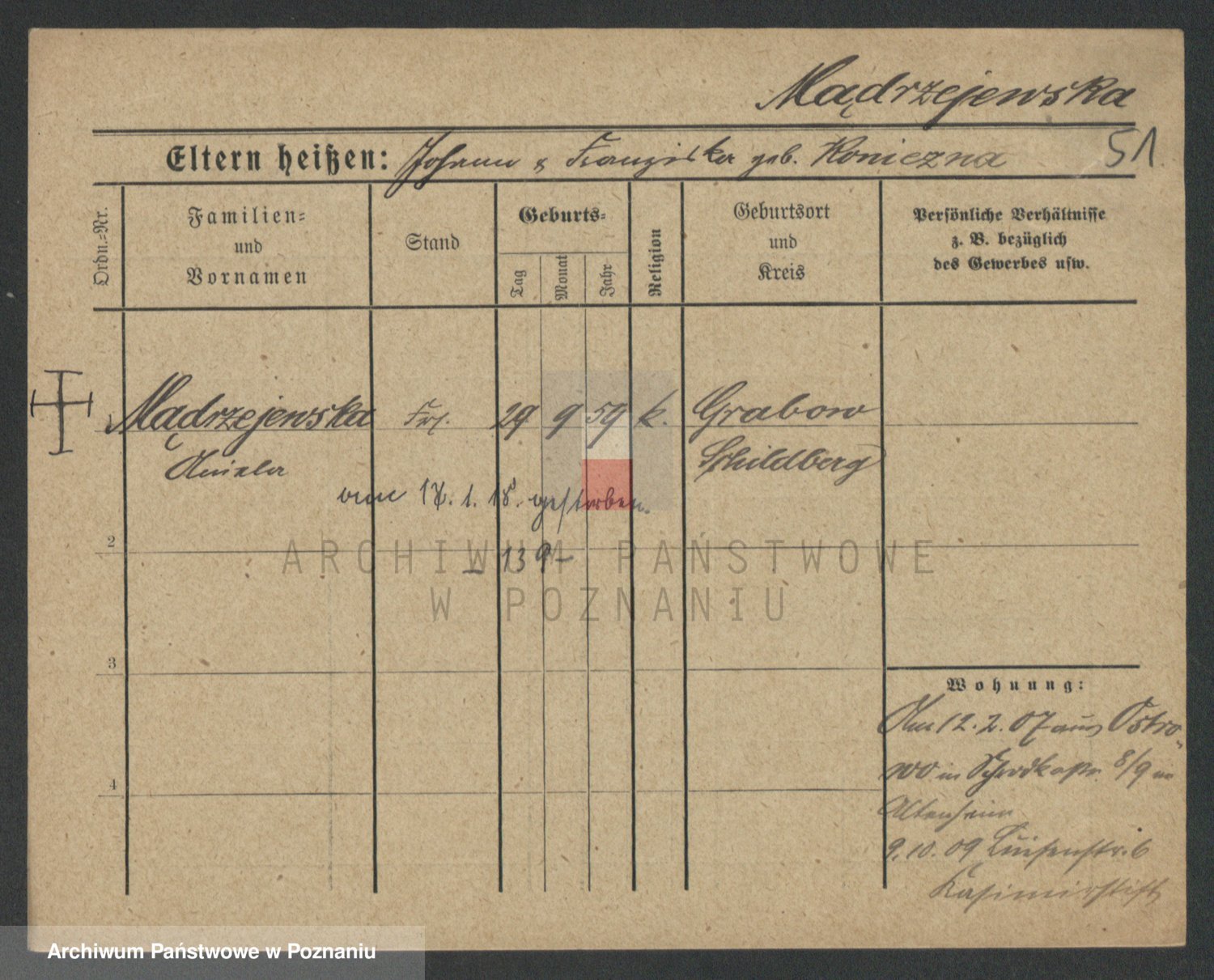 Mądrzinska alias Mizerna zd. Maciniak, Theresa
