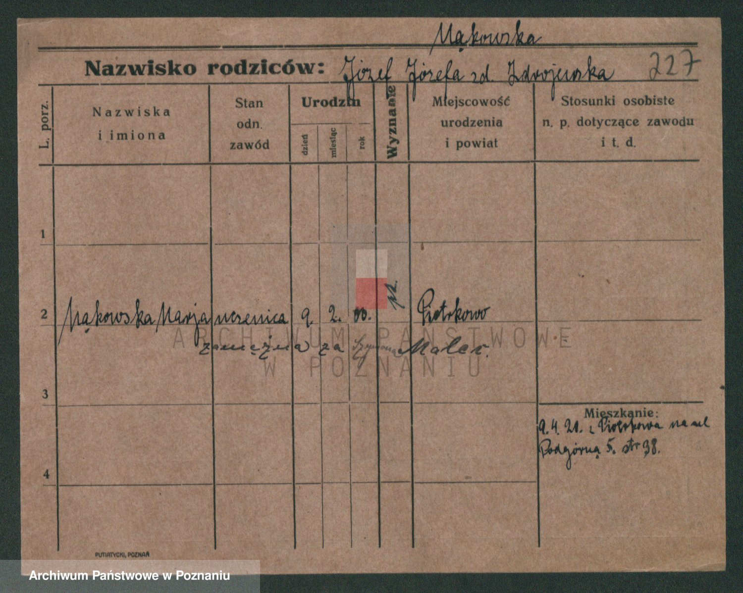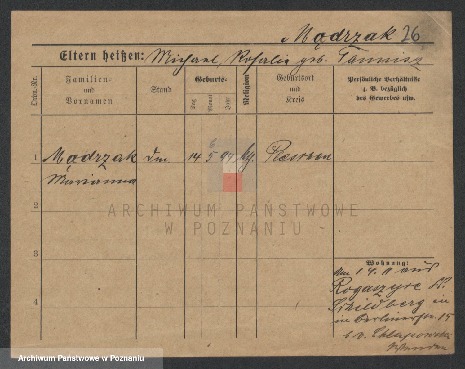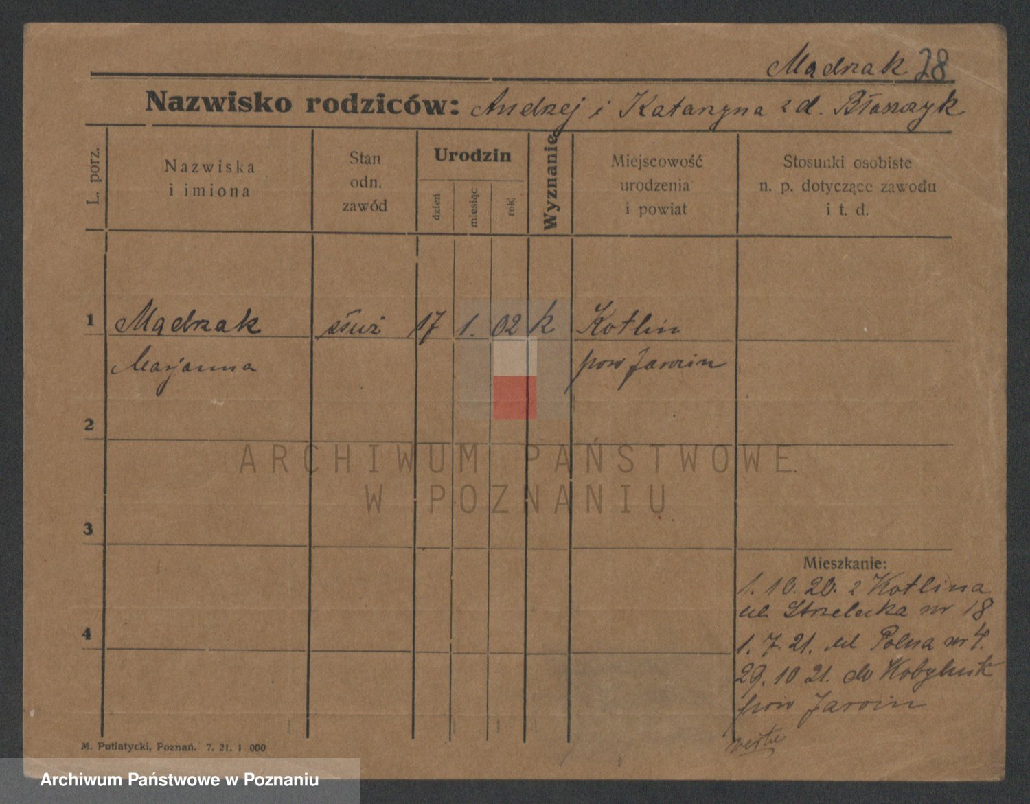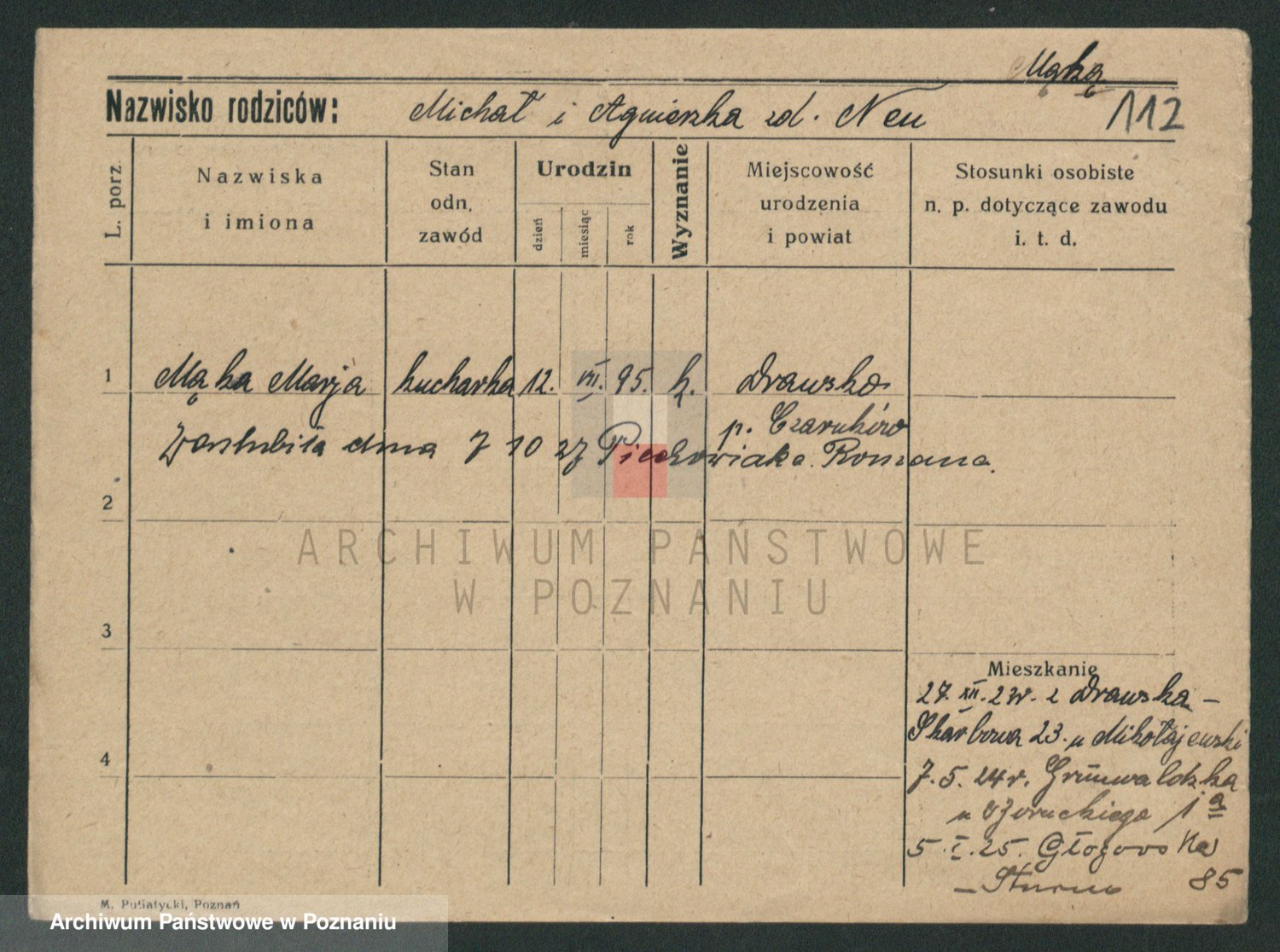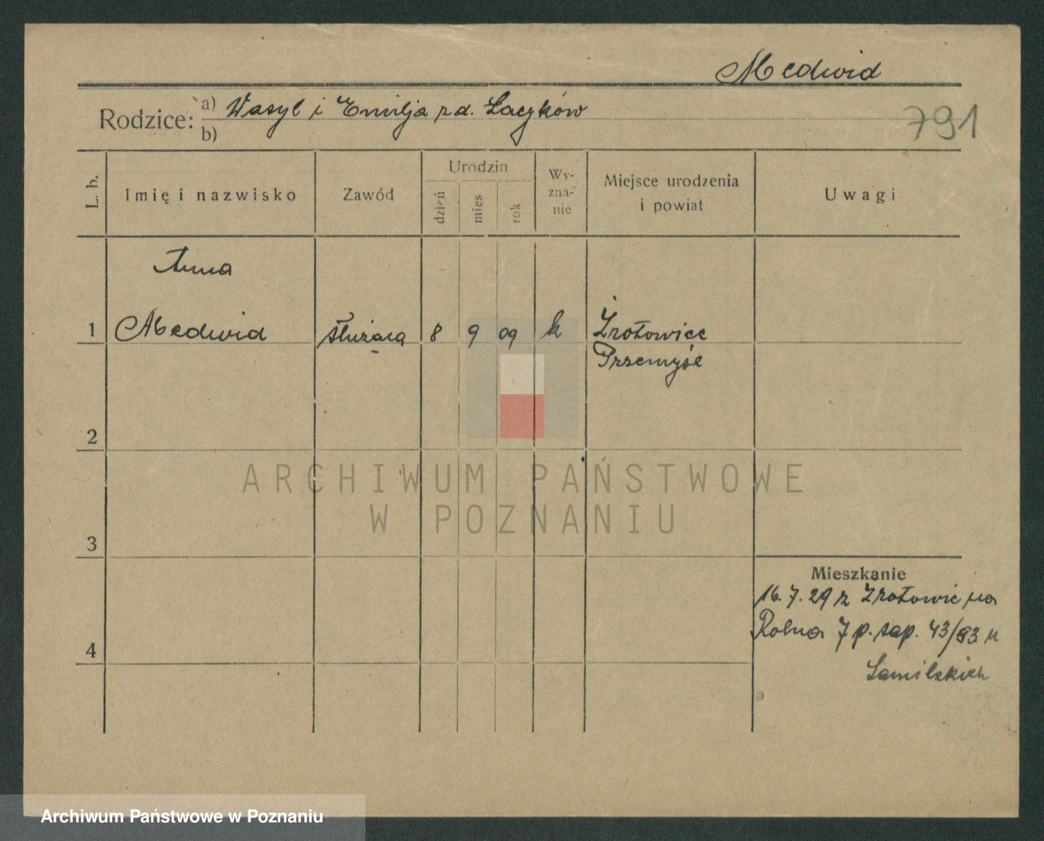 Mądrzinska alias Mizerna zd. Maciniak, Theresa
