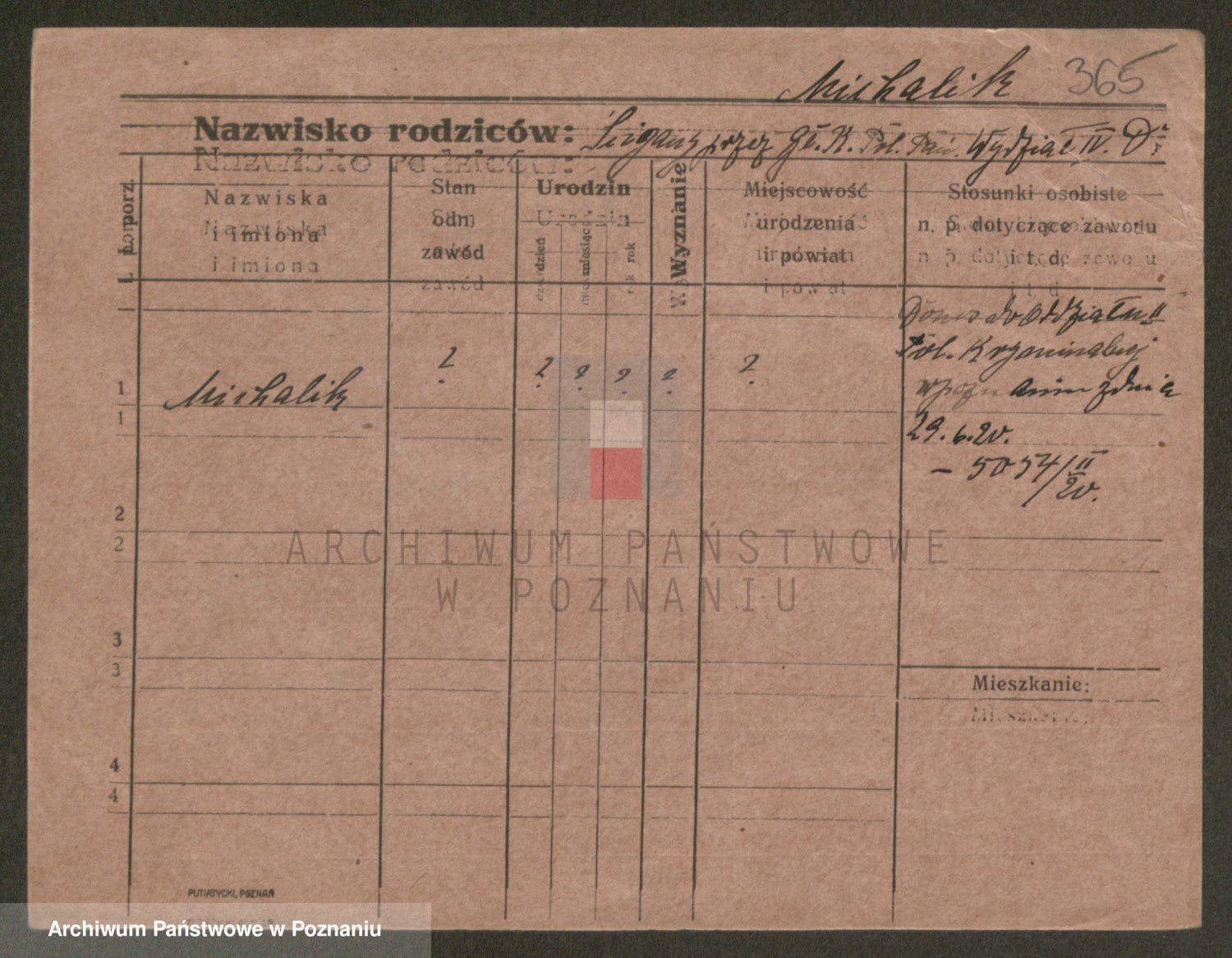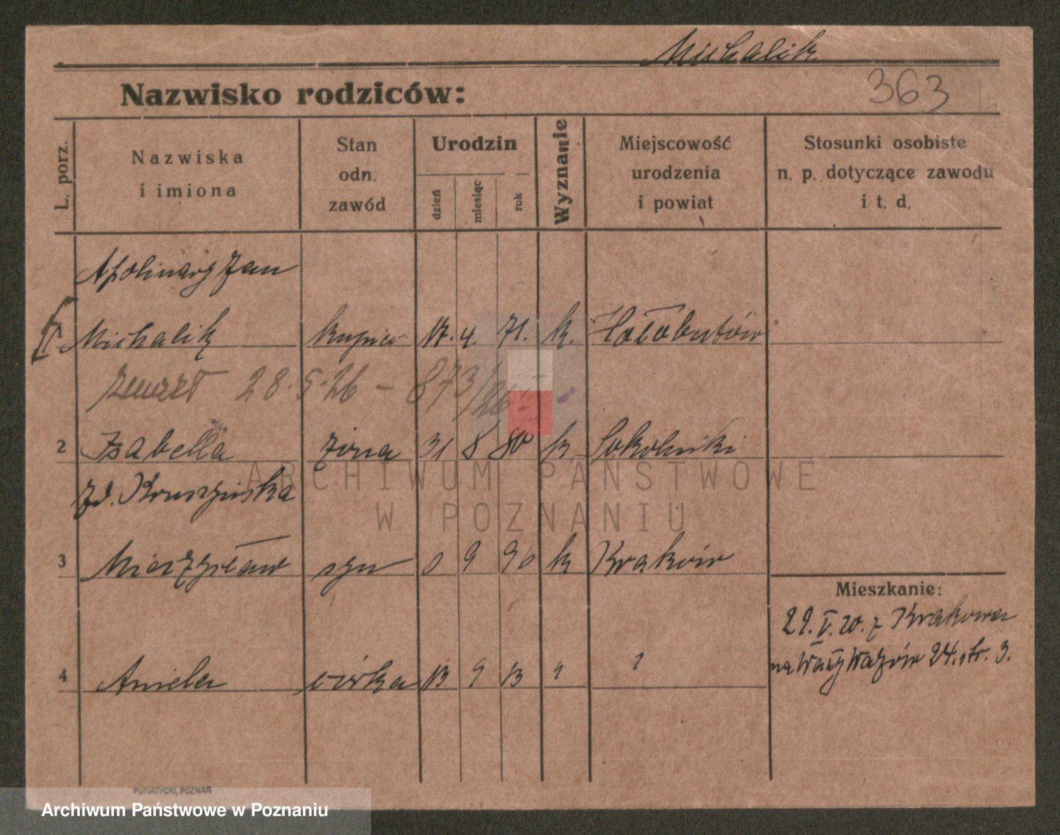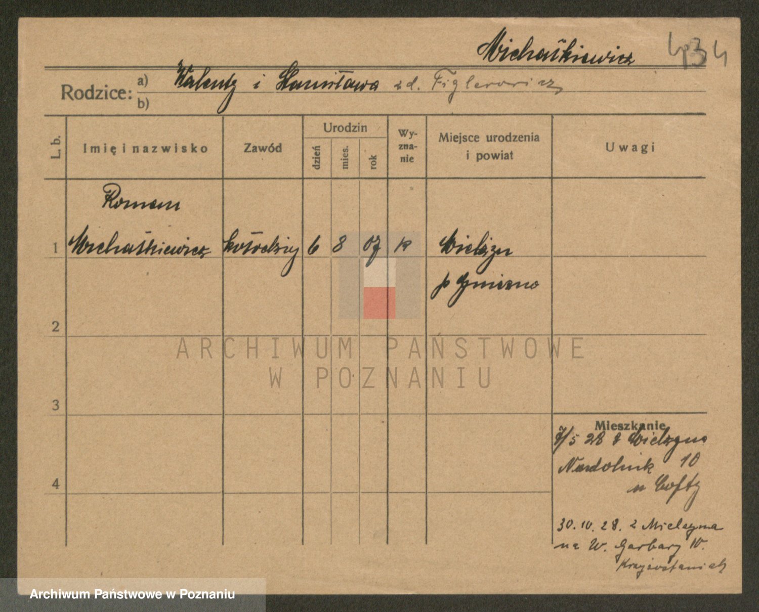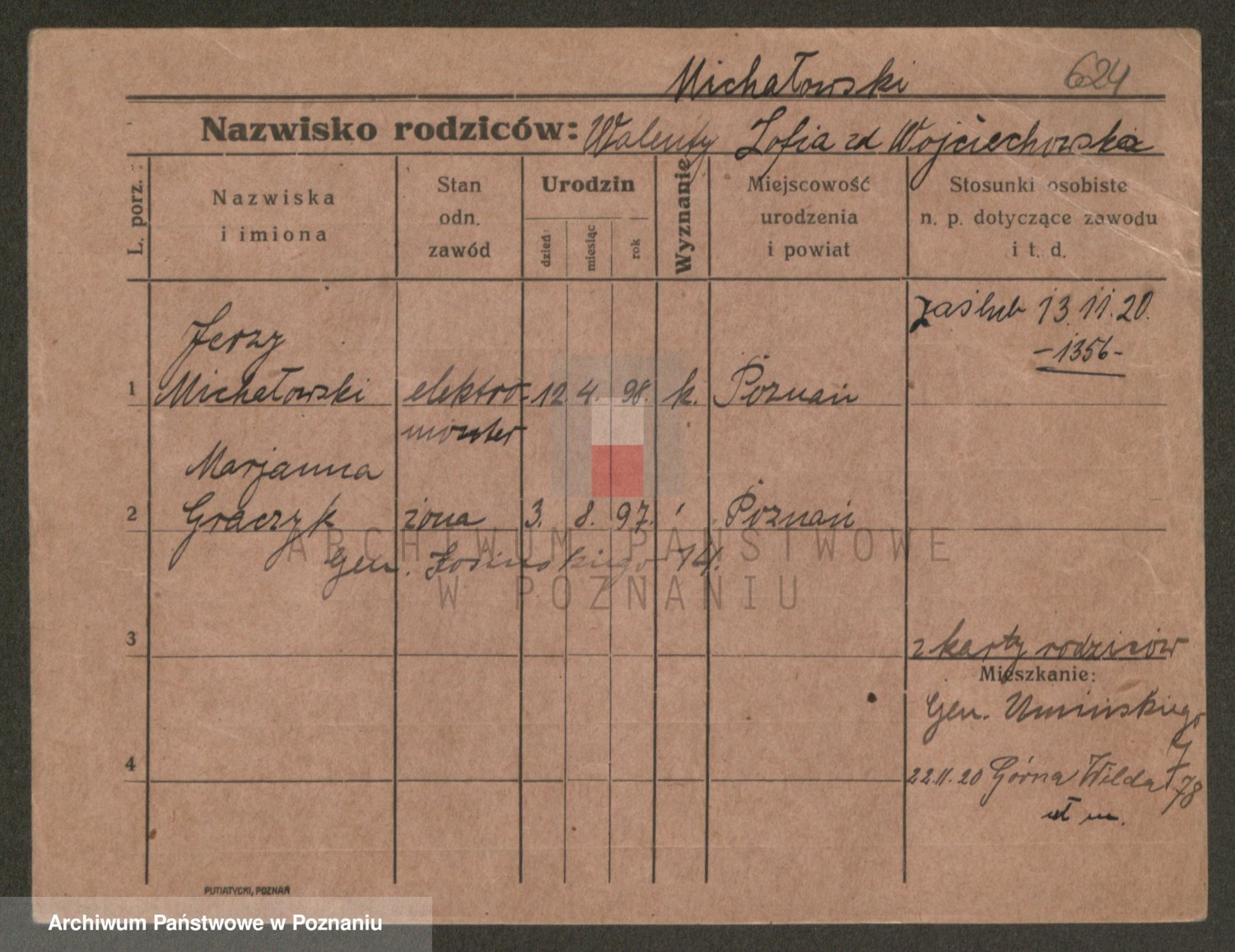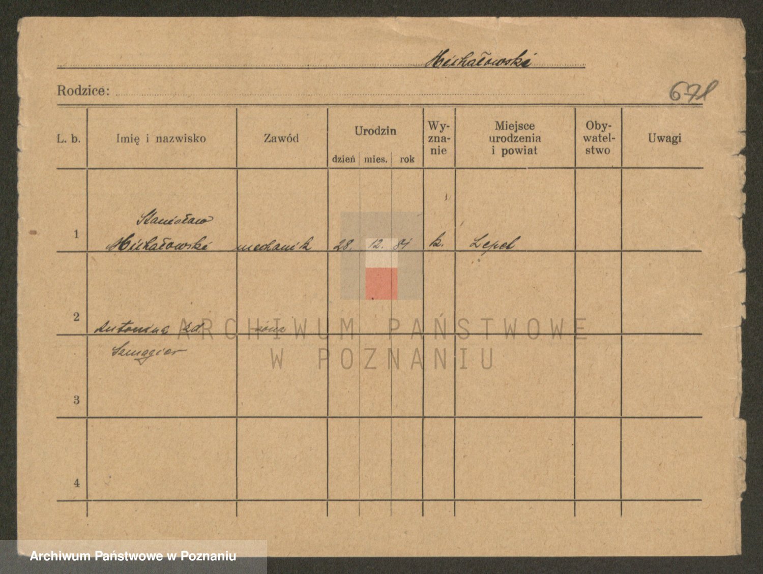 Podgląd karty osobowej dostępny jest po kliknięciu na nazwisko lub ikonkę karty. Można dokonywać powiększenia (ikony na górze) lub przechodzić między kolejnymi skanami (strzałki po bokach).