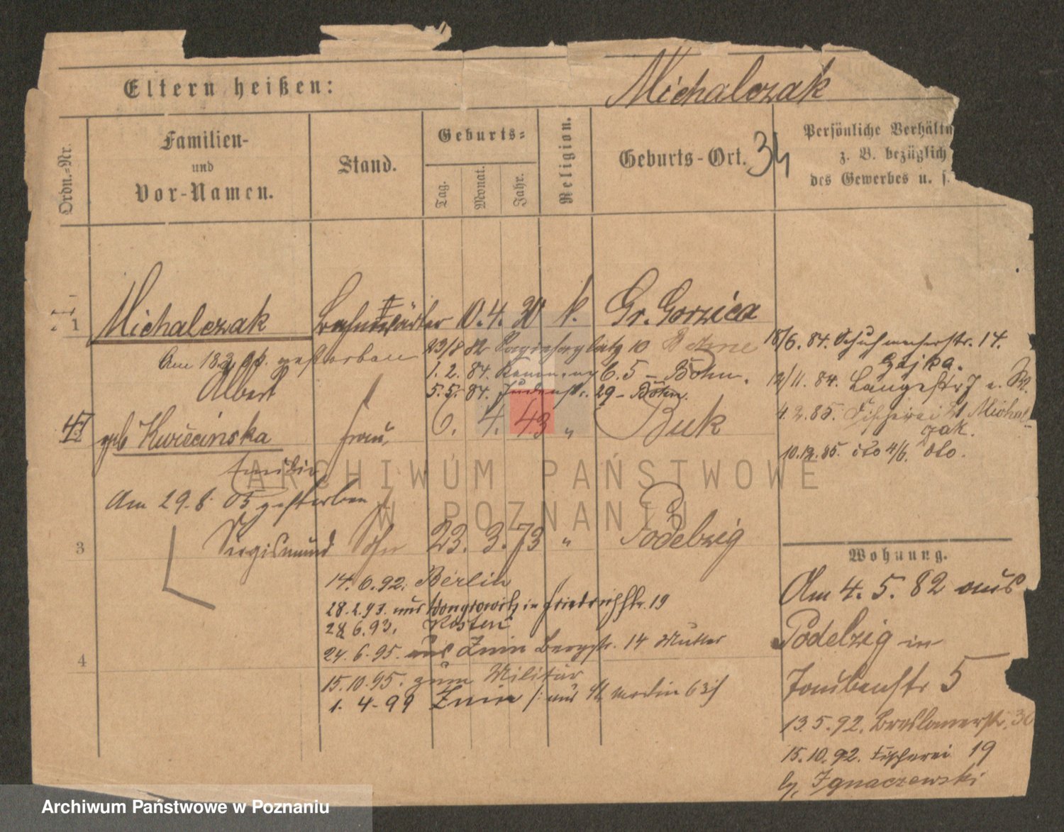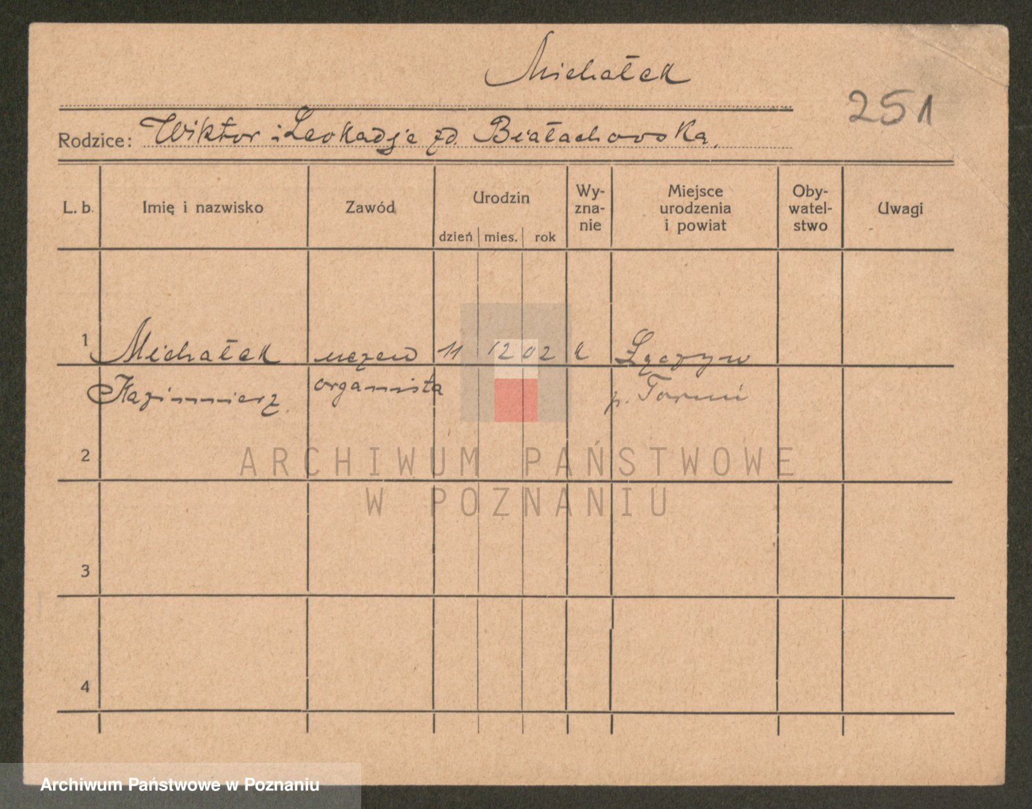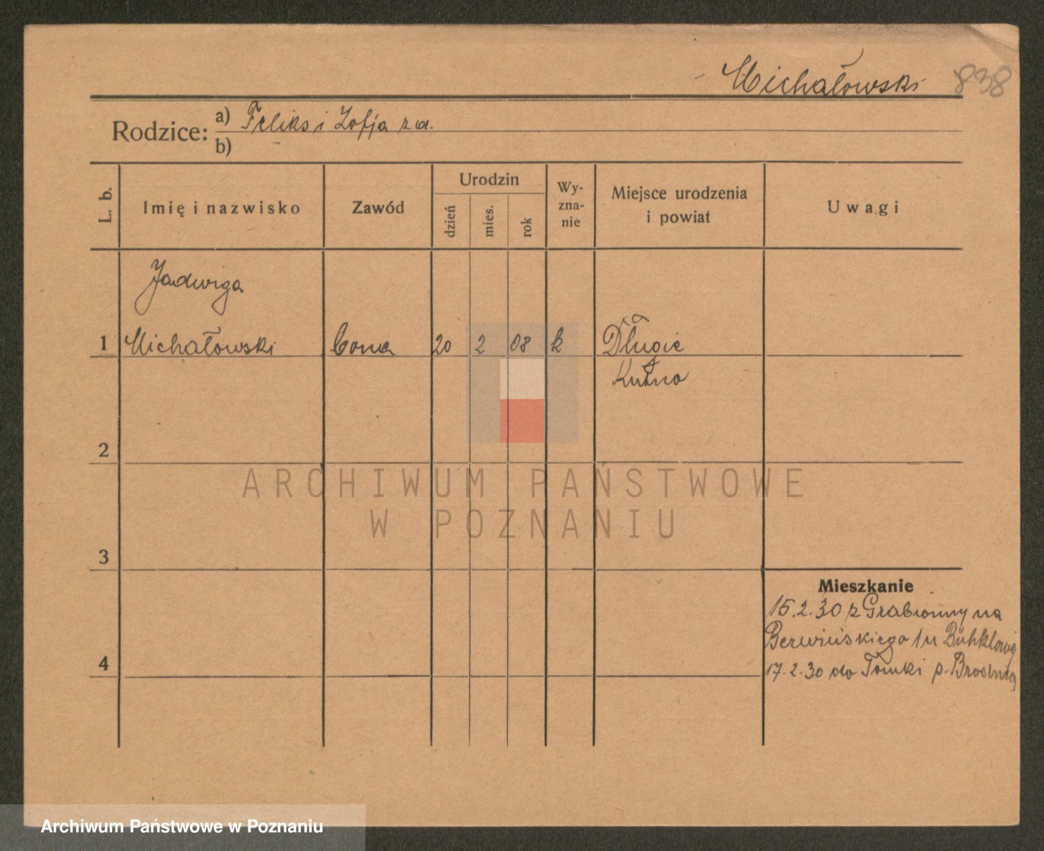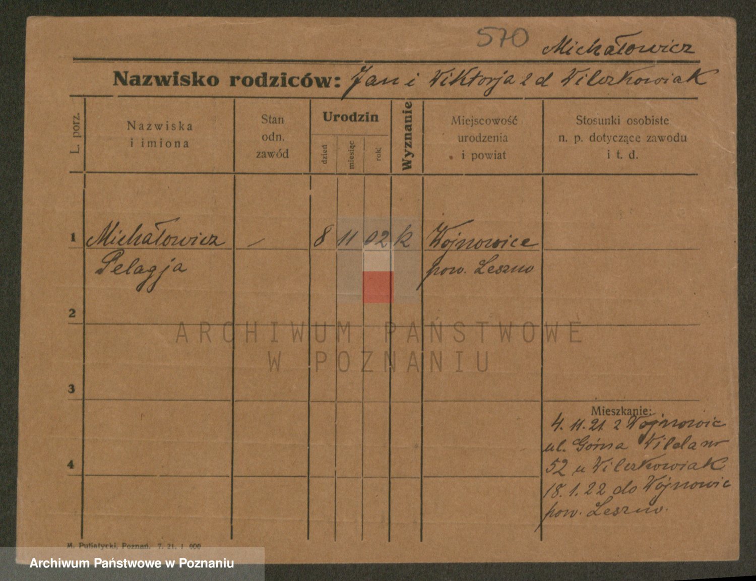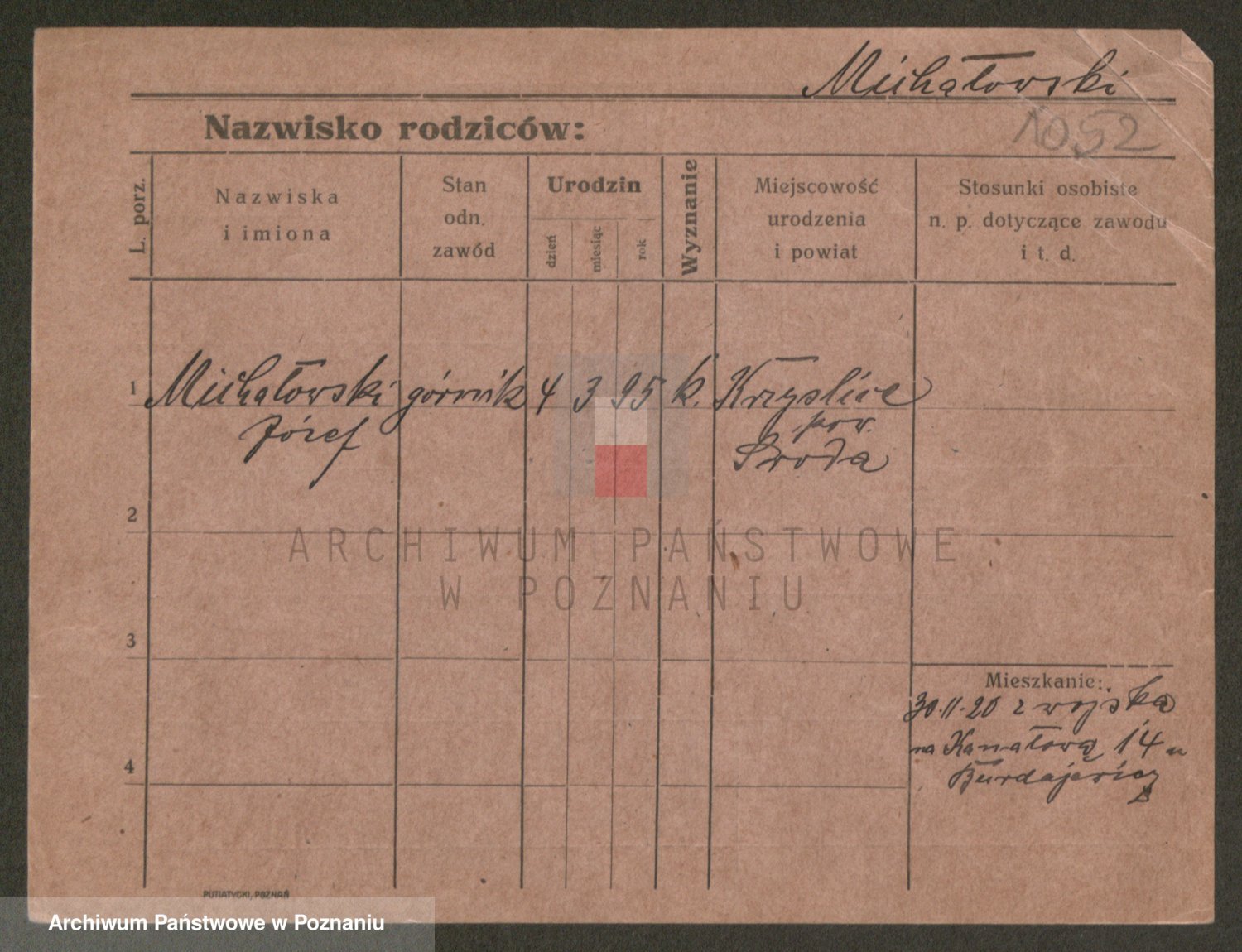 Podgląd karty osobowej dostępny jest po kliknięciu na nazwisko lub ikonkę karty. Można dokonywać powiększenia (ikony na górze) lub przechodzić między kolejnymi skanami (strzałki po bokach).
