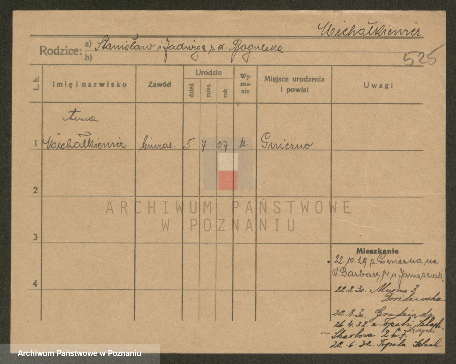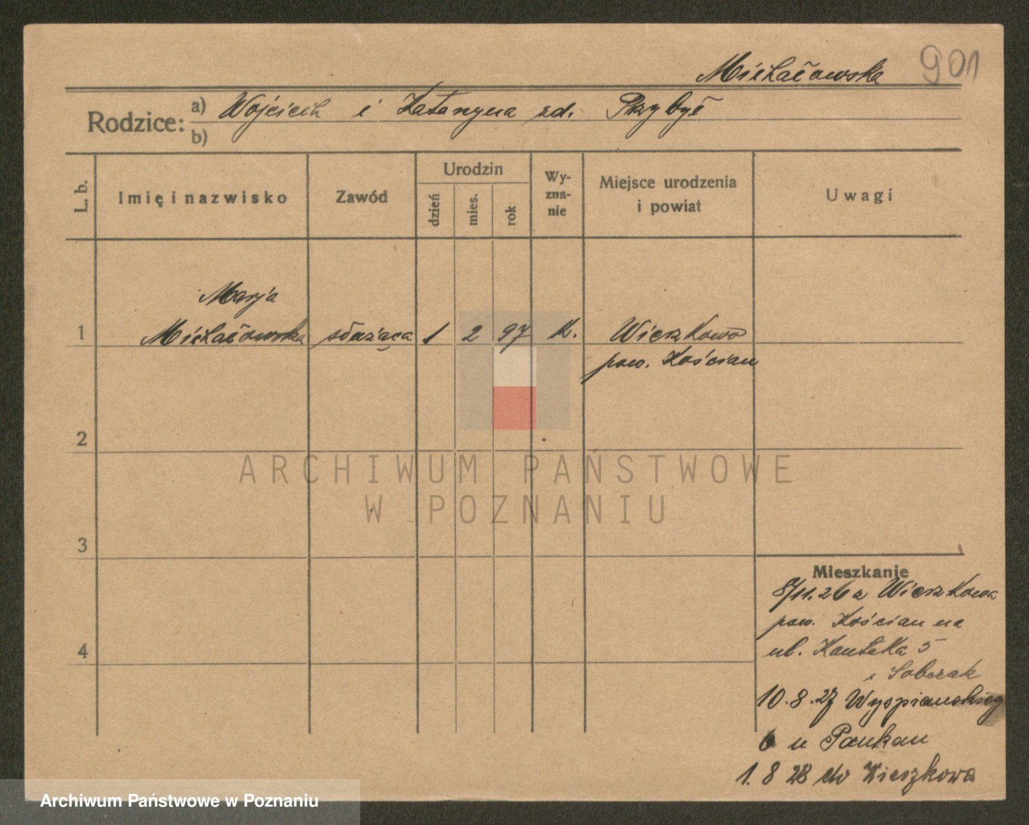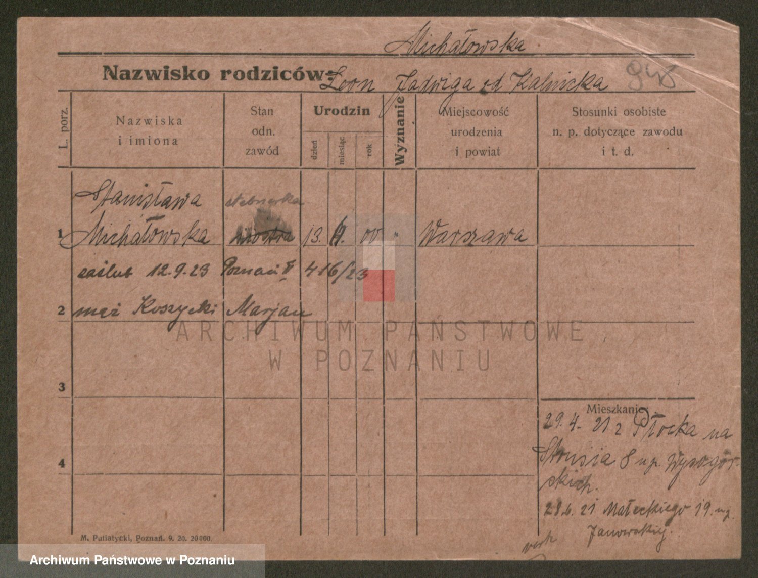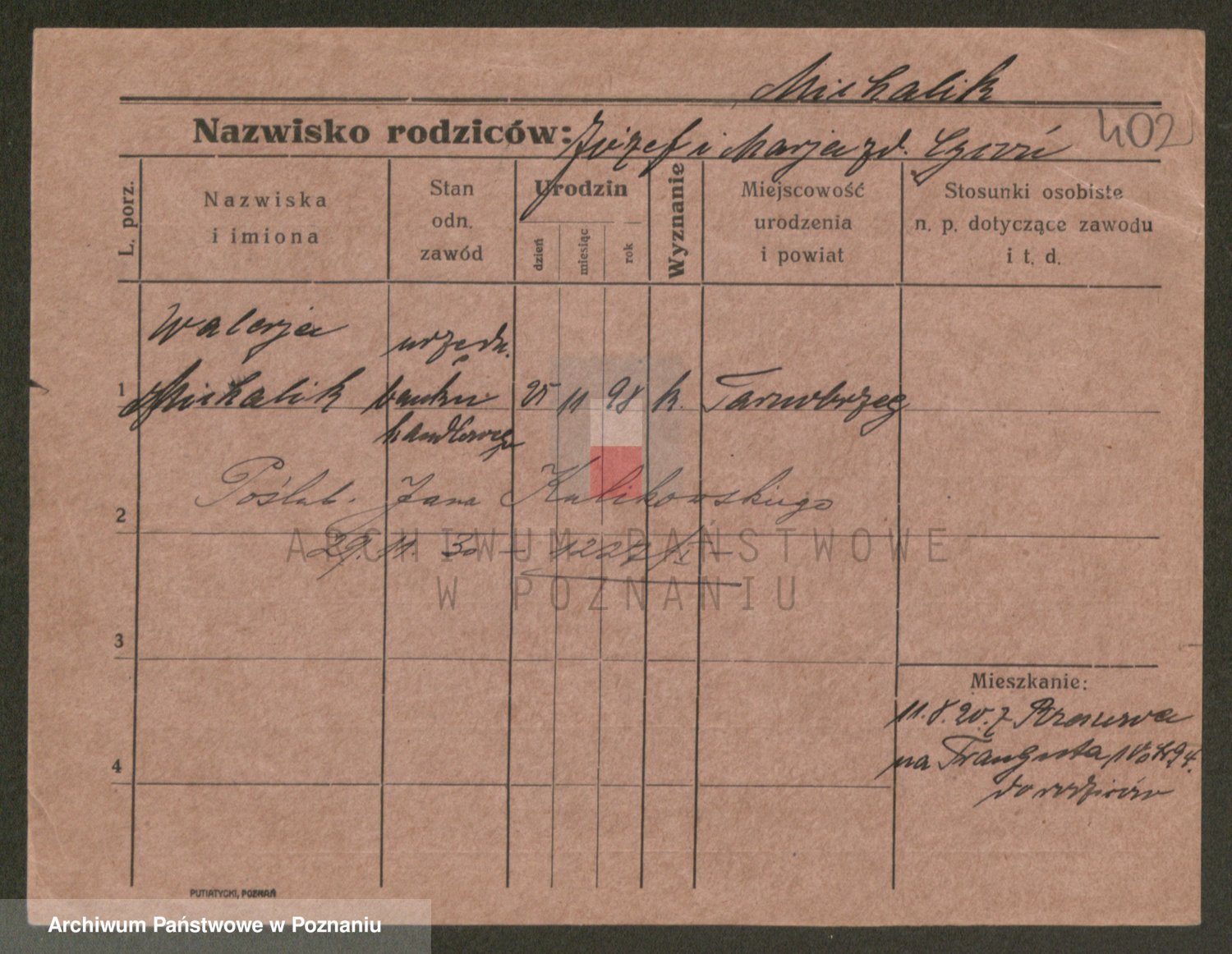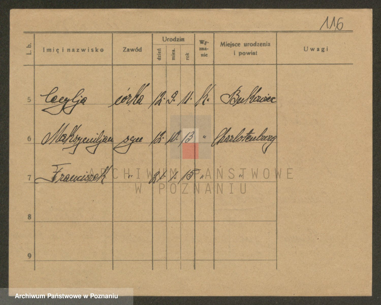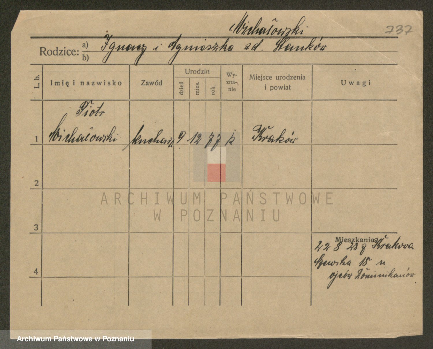 Podgląd karty osobowej dostępny jest po kliknięciu na nazwisko lub ikonkę karty. Można dokonywać powiększenia (ikony na górze) lub przechodzić między kolejnymi skanami (strzałki po bokach).