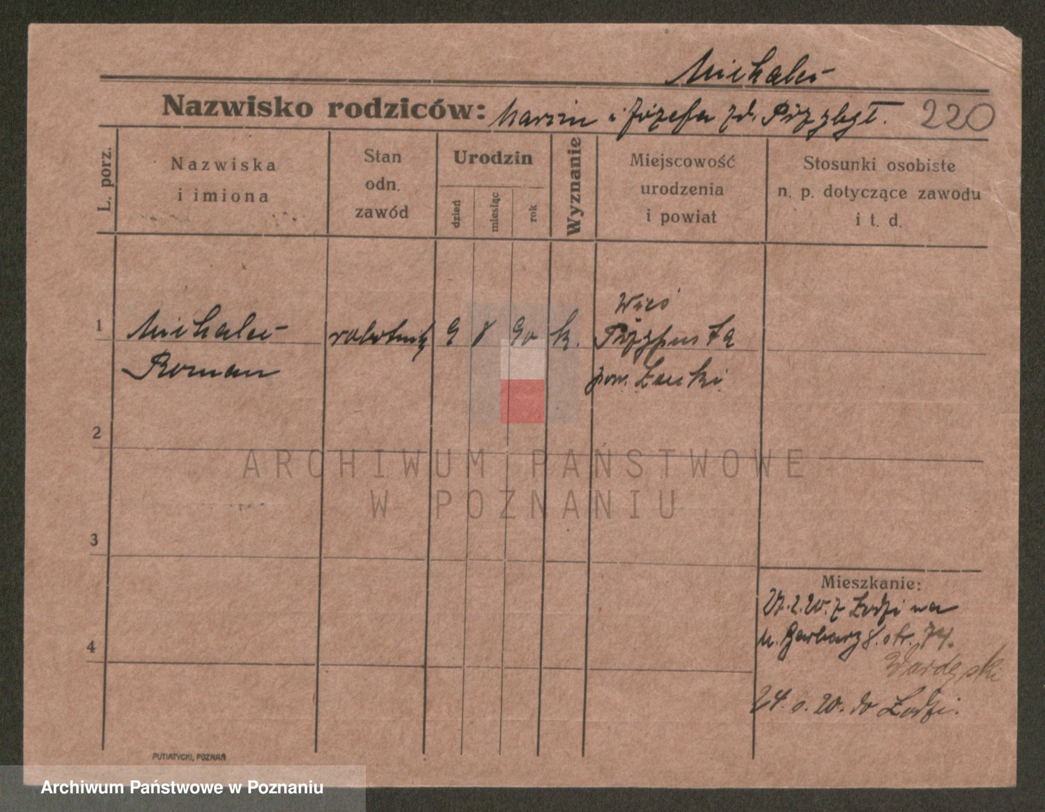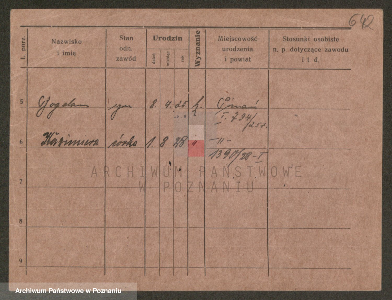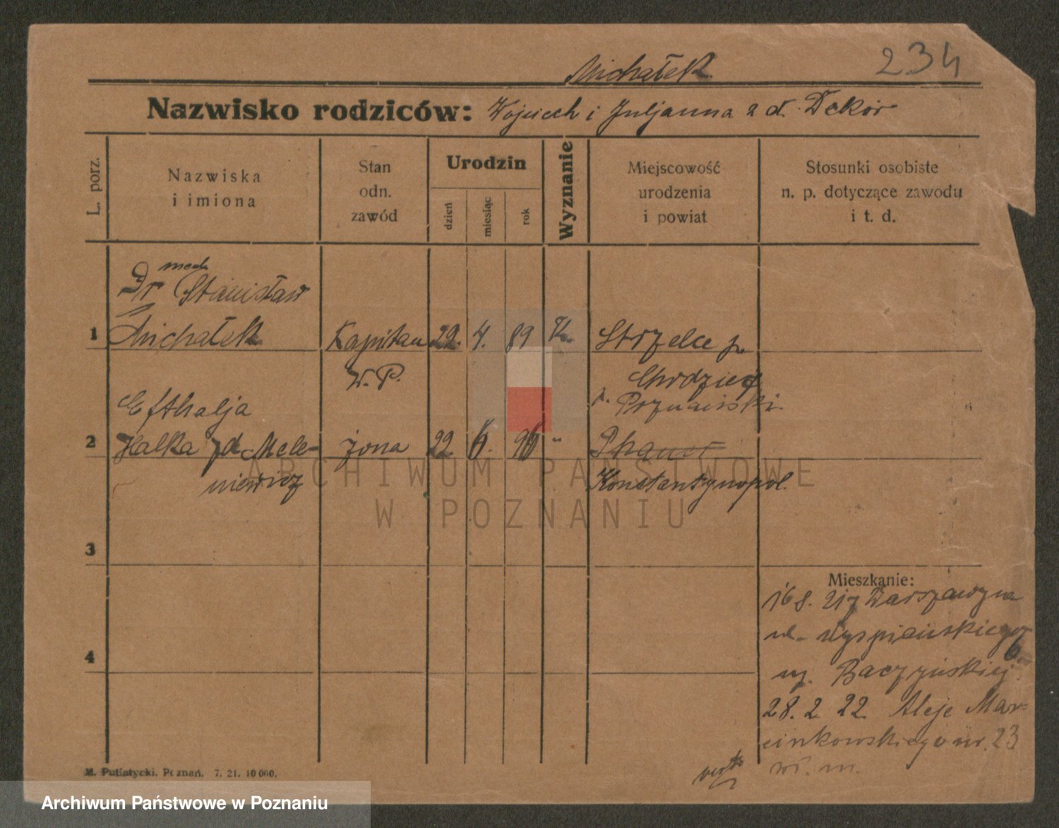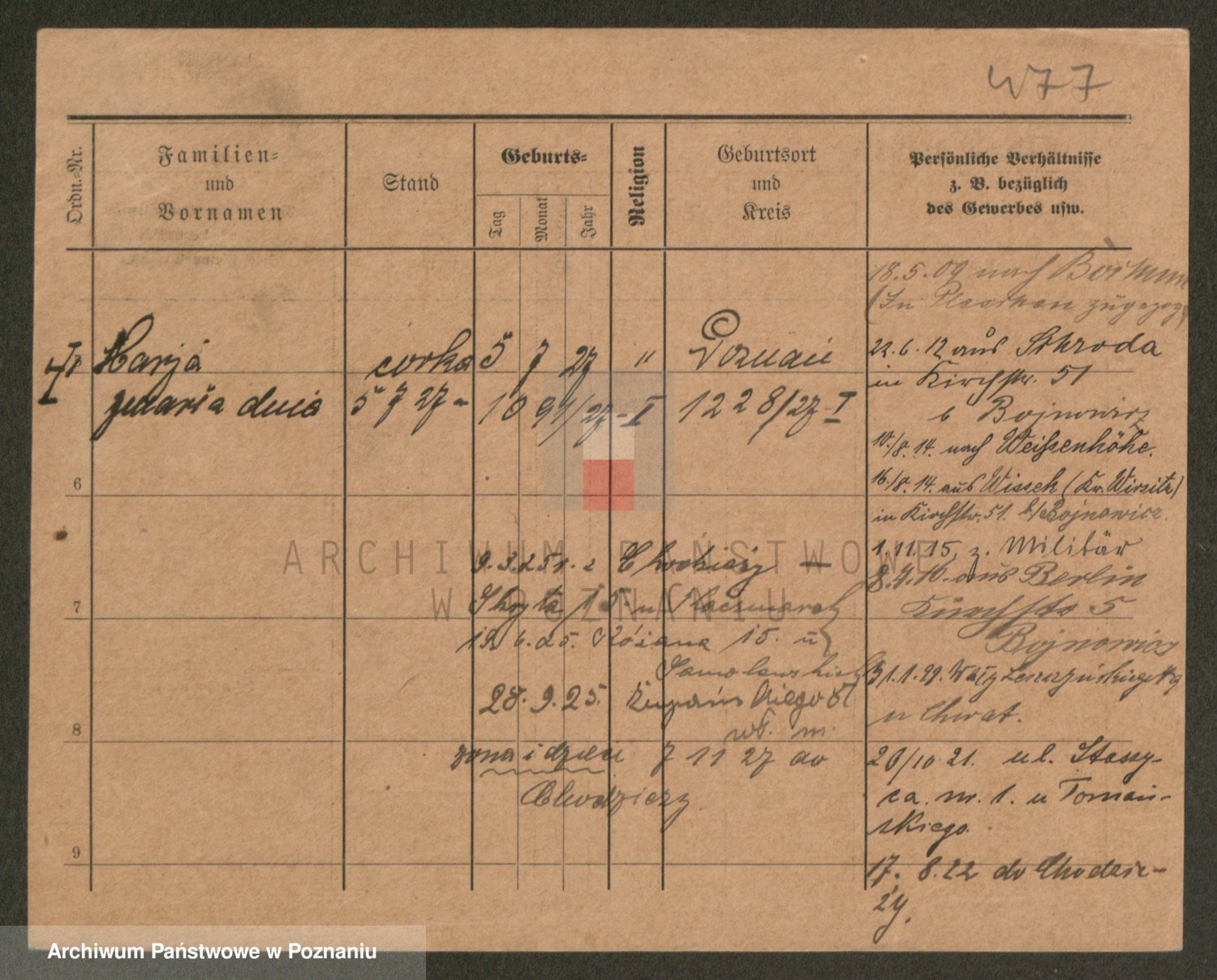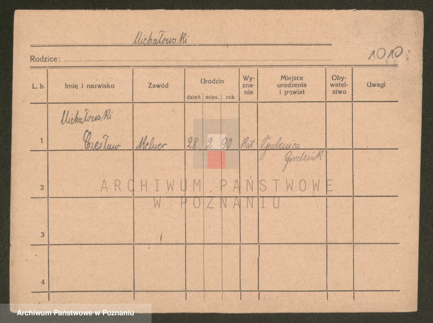 Podgląd karty osobowej dostępny jest po kliknięciu na nazwisko lub ikonkę karty. Można dokonywać powiększenia (ikony na górze) lub przechodzić między kolejnymi skanami (strzałki po bokach).