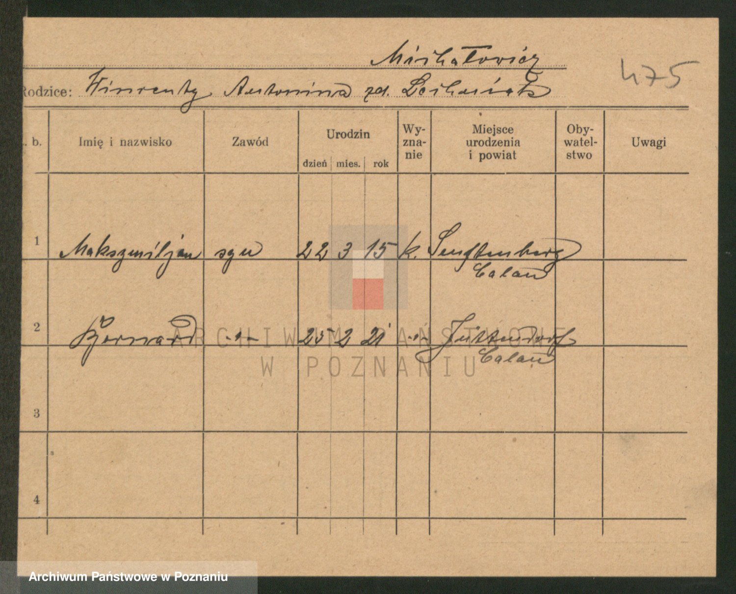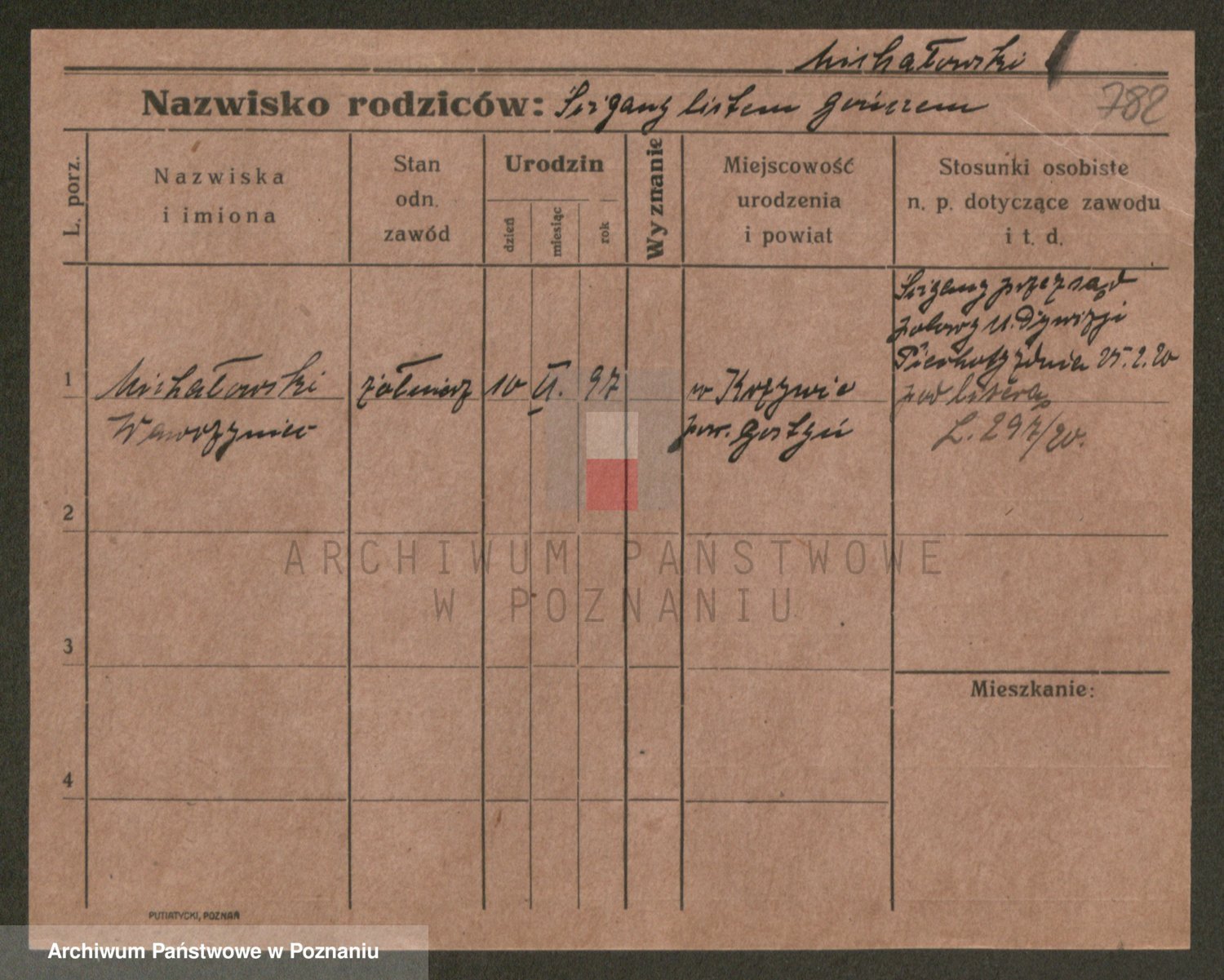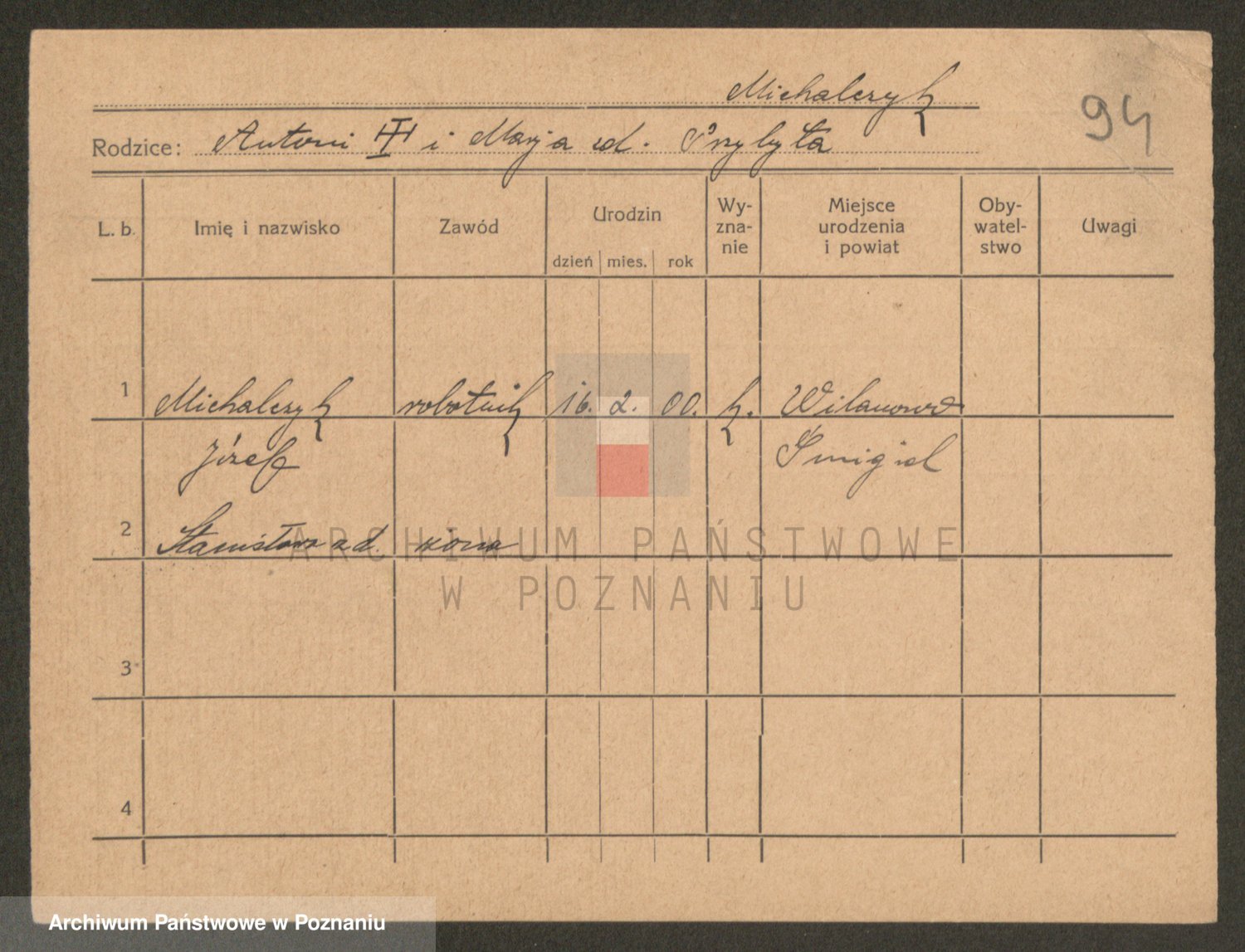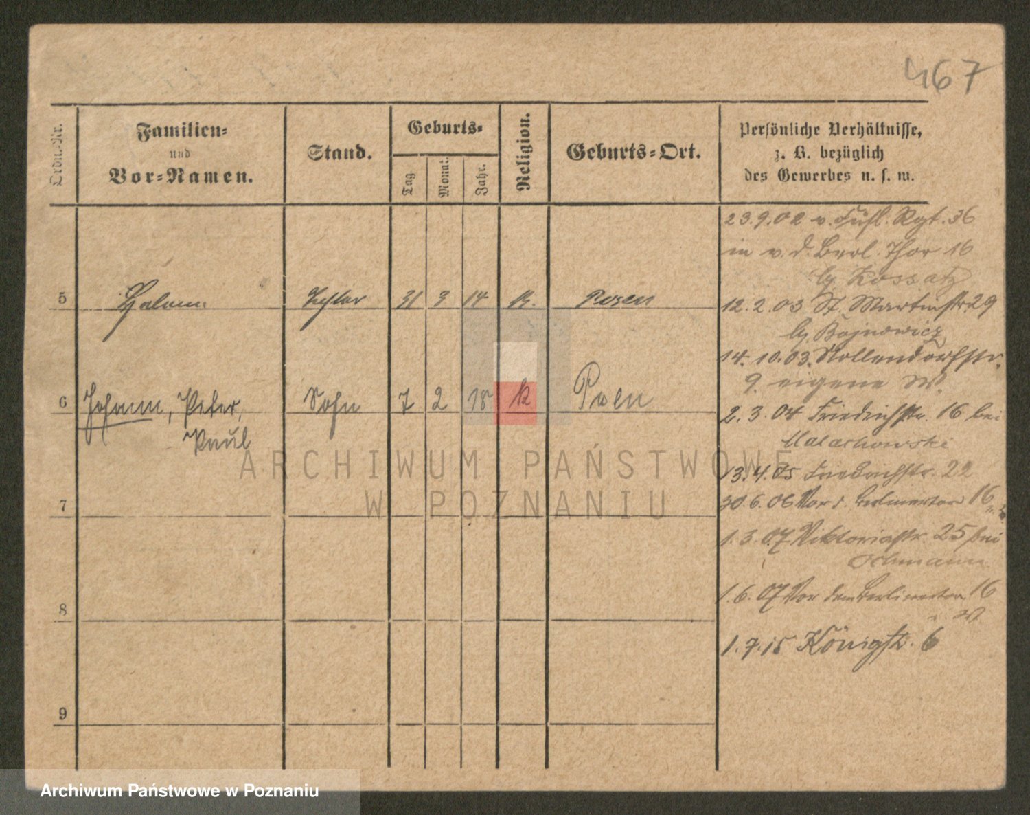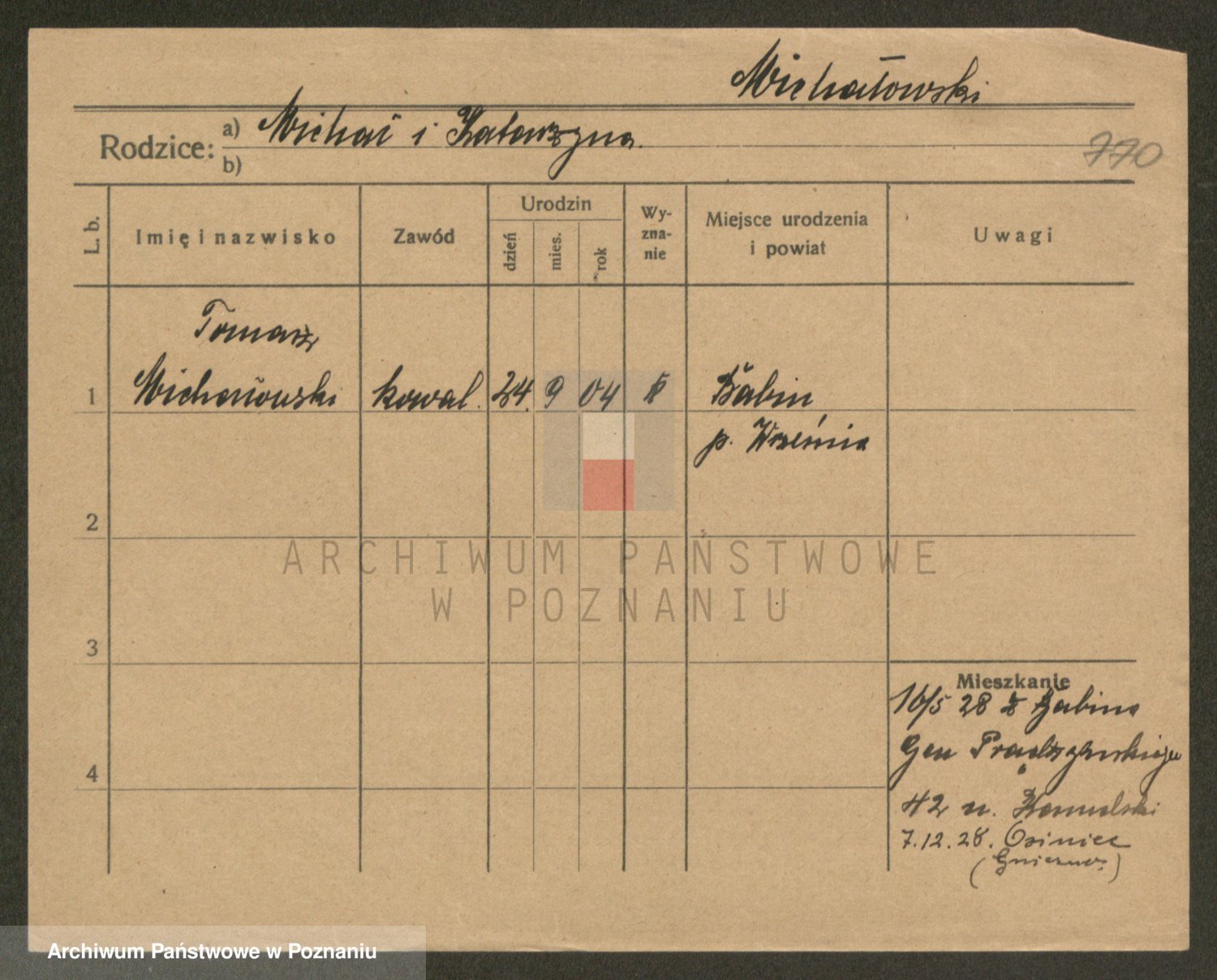 Podgląd karty osobowej dostępny jest po kliknięciu na nazwisko lub ikonkę karty. Można dokonywać powiększenia (ikony na górze) lub przechodzić między kolejnymi skanami (strzałki po bokach).
