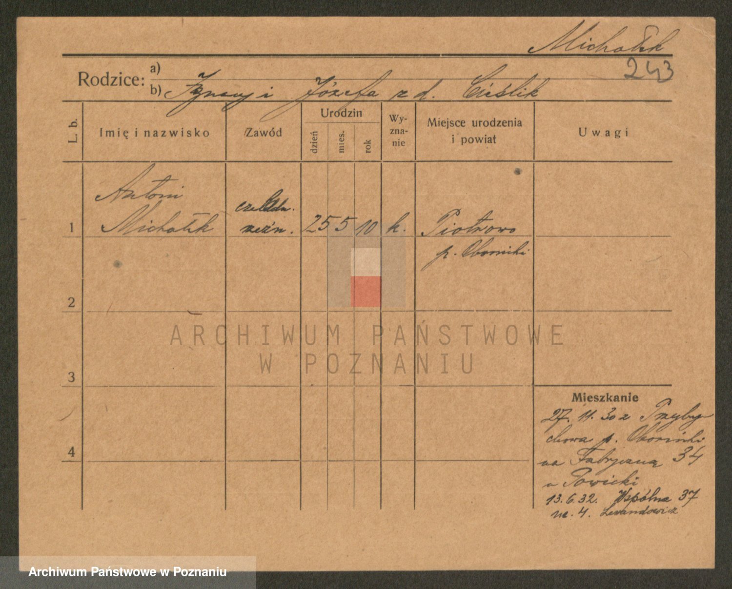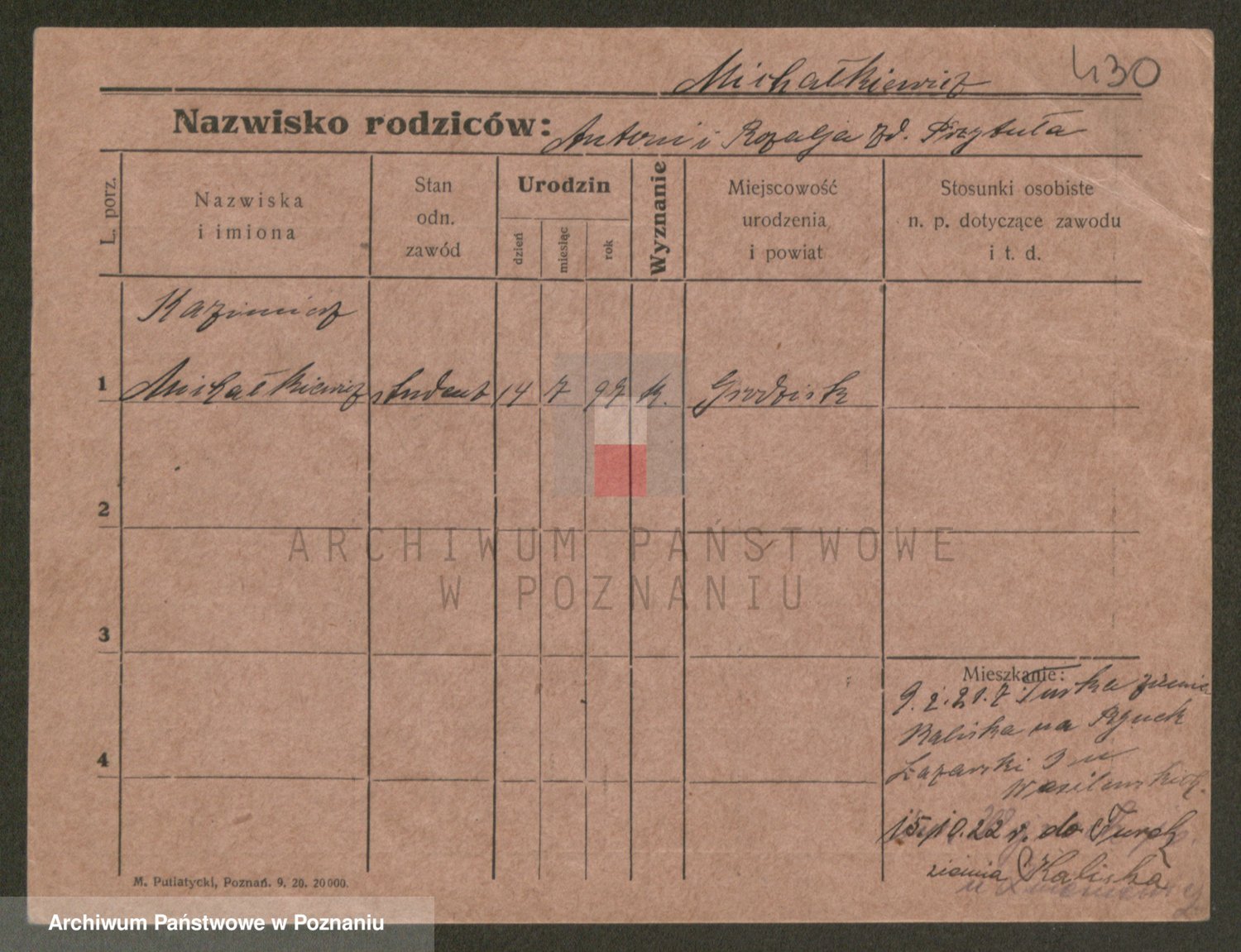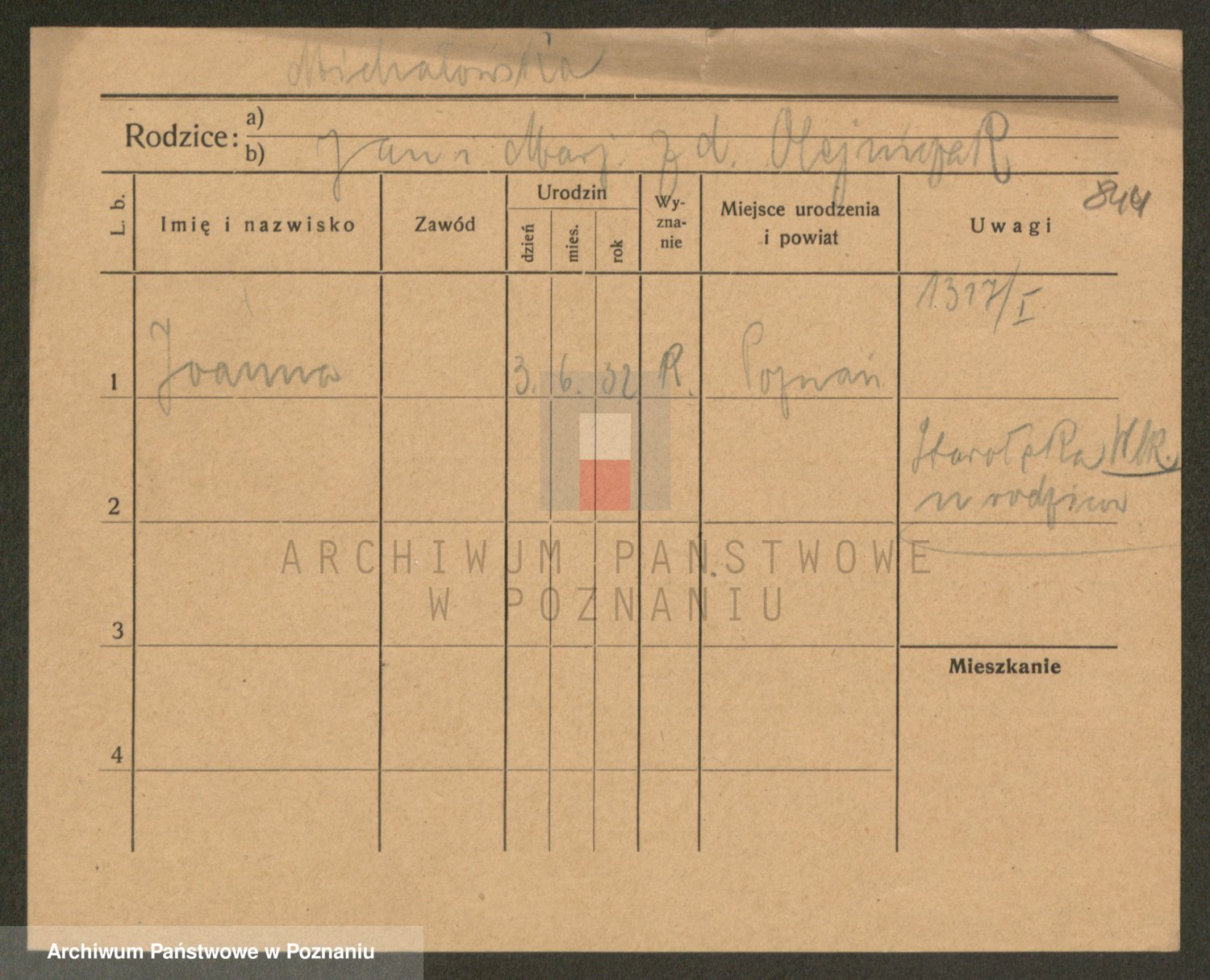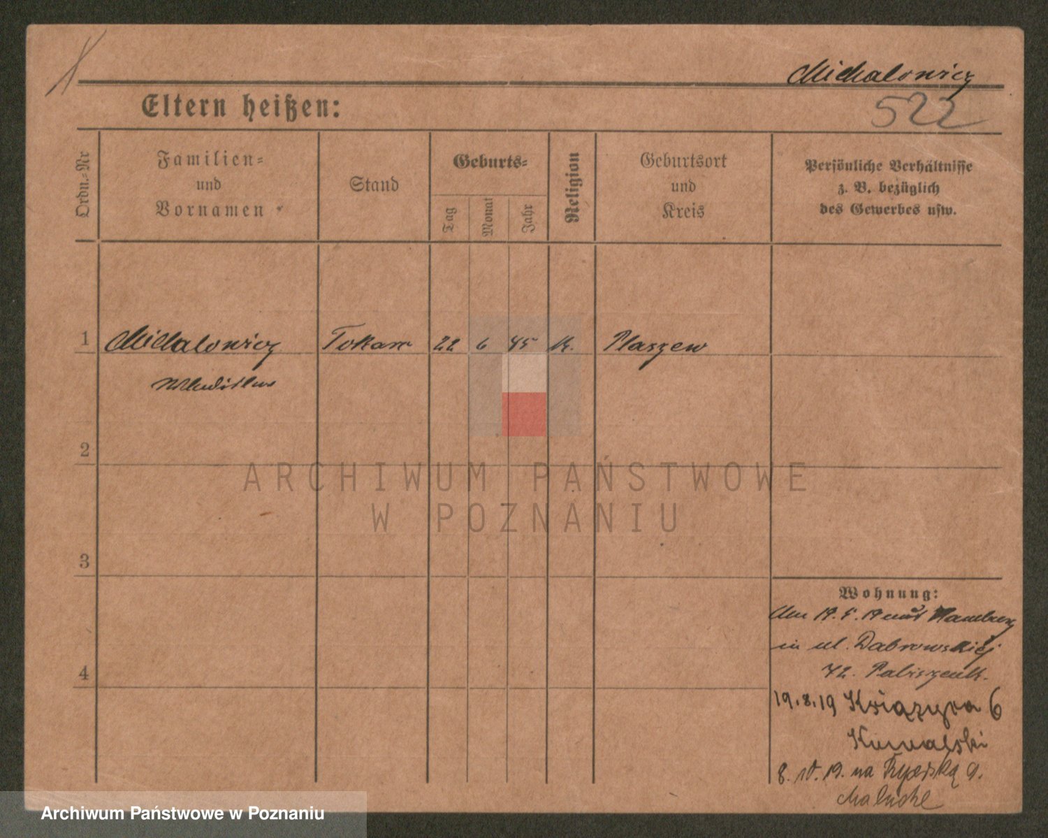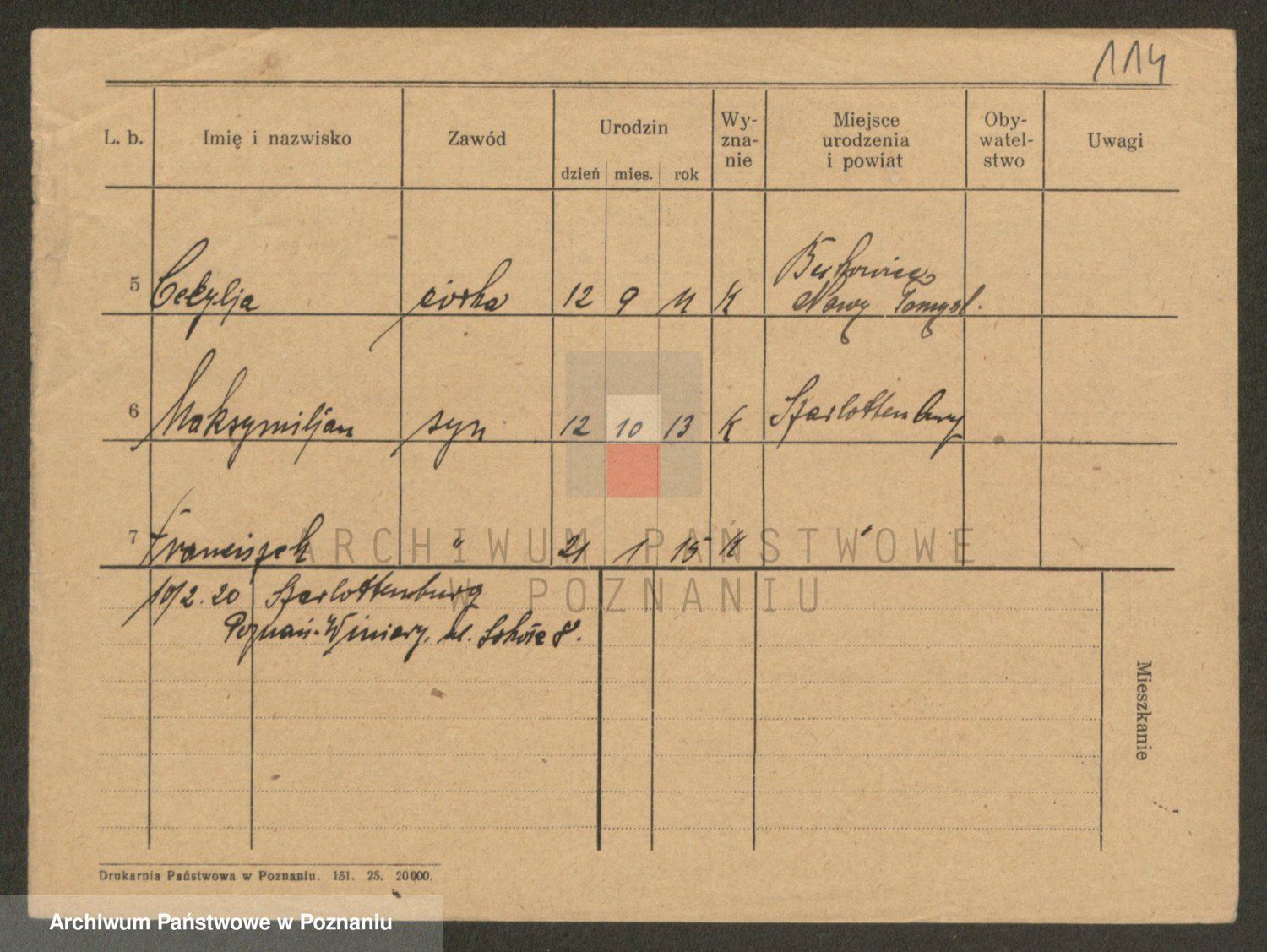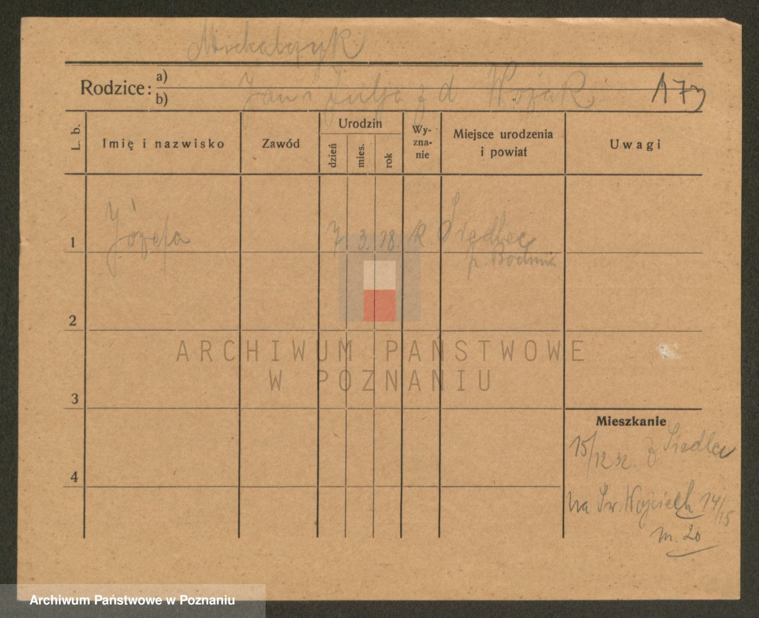 Podgląd karty osobowej dostępny jest po kliknięciu na nazwisko lub ikonkę karty. Można dokonywać powiększenia (ikony na górze) lub przechodzić między kolejnymi skanami (strzałki po bokach).