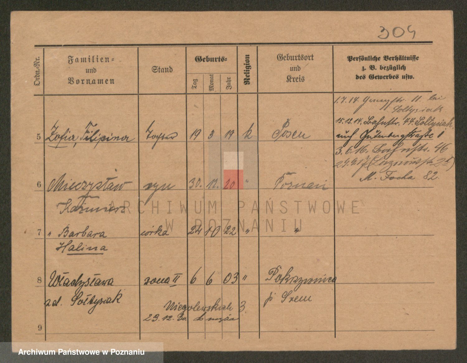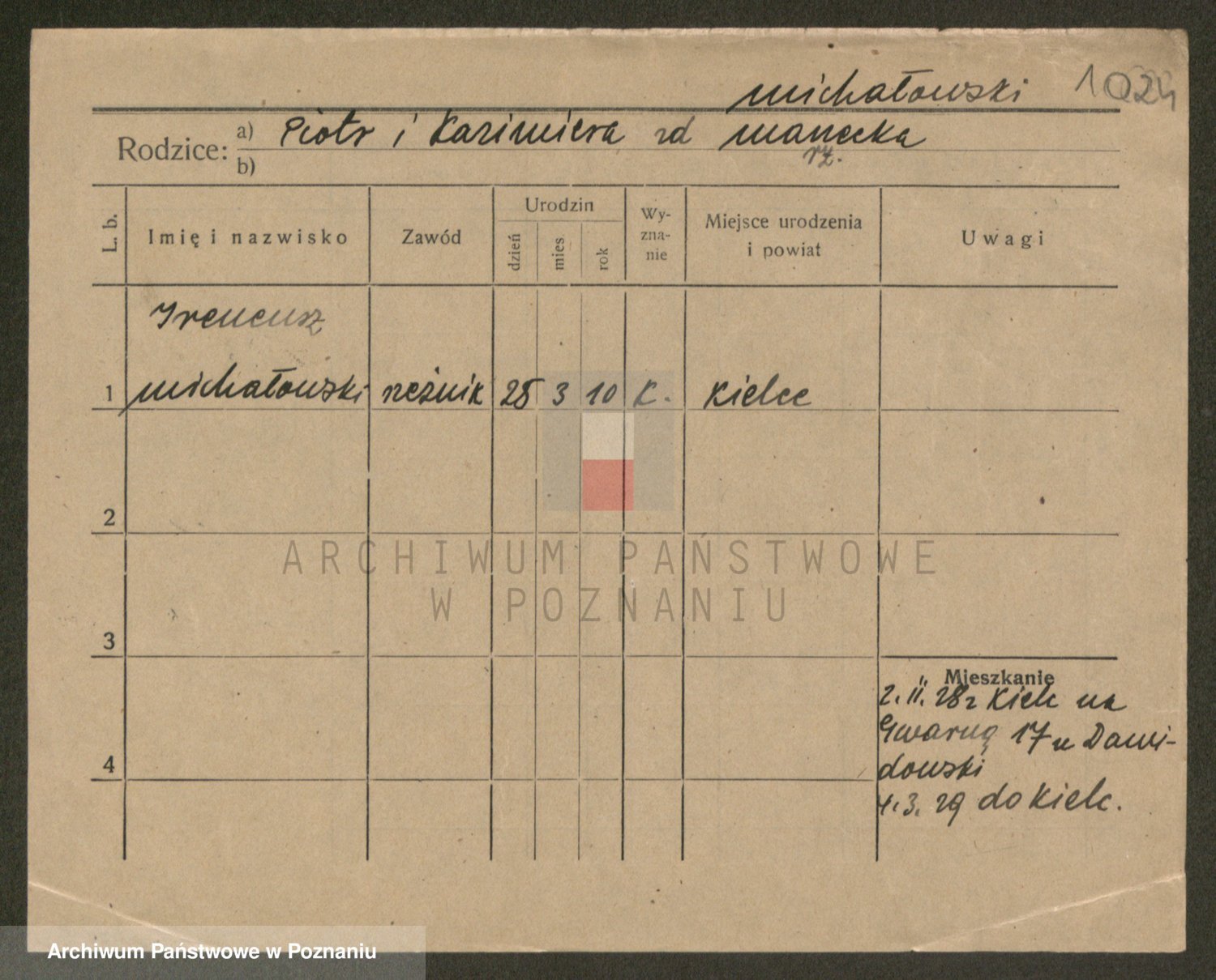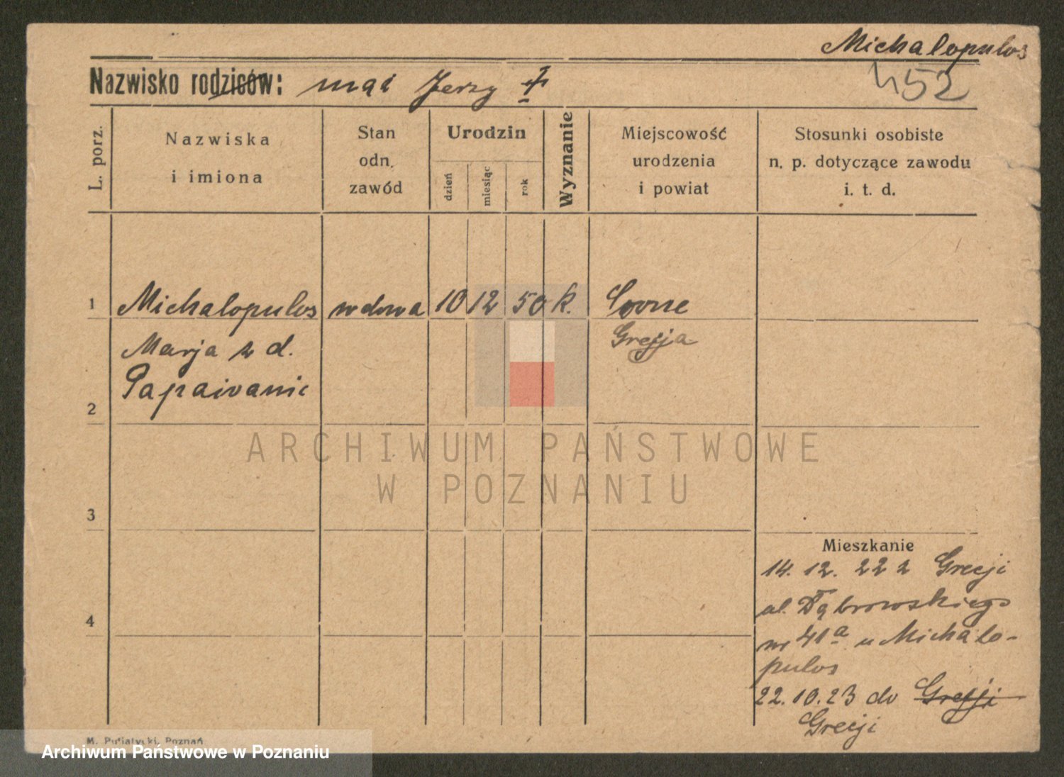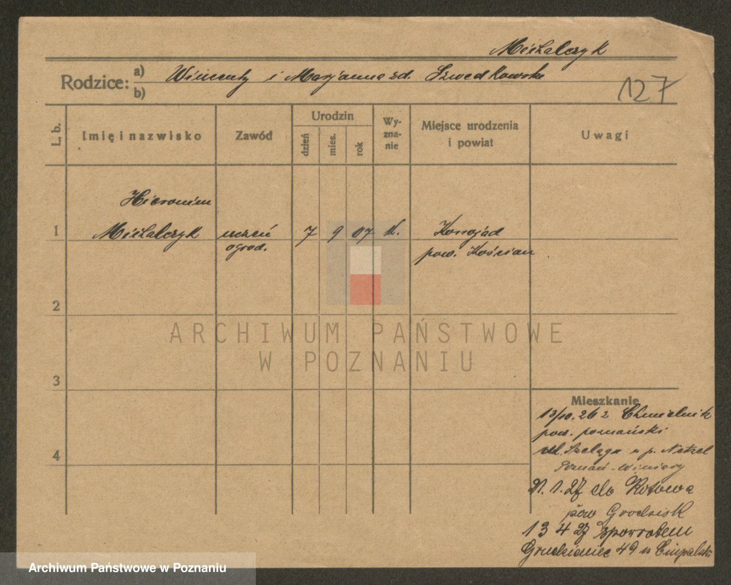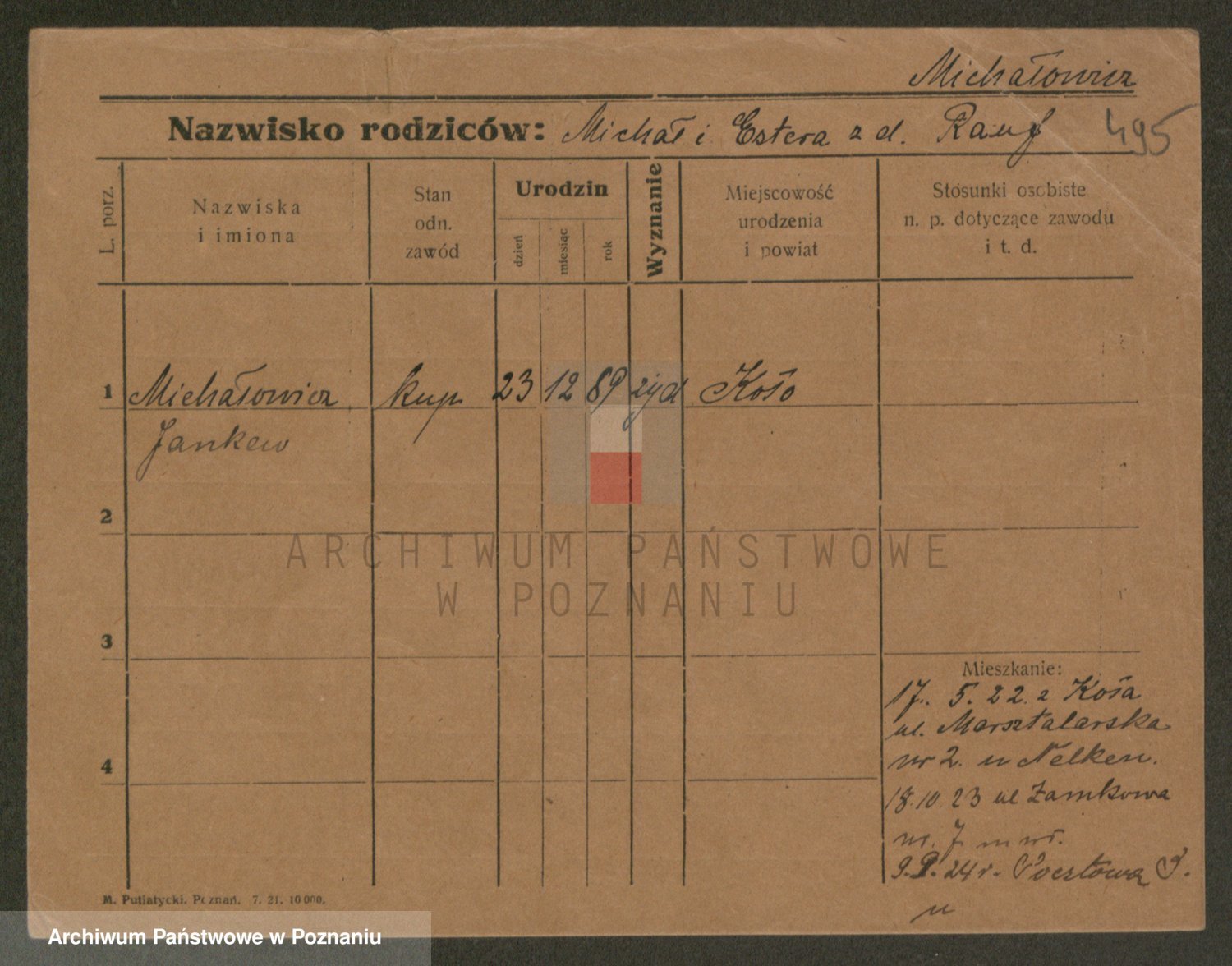 Podgląd karty osobowej dostępny jest po kliknięciu na nazwisko lub ikonkę karty. Można dokonywać powiększenia (ikony na górze) lub przechodzić między kolejnymi skanami (strzałki po bokach).