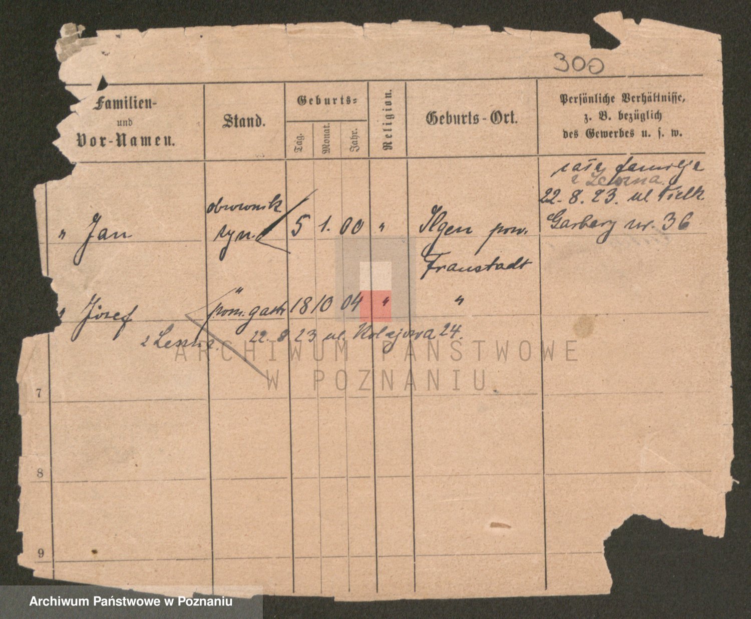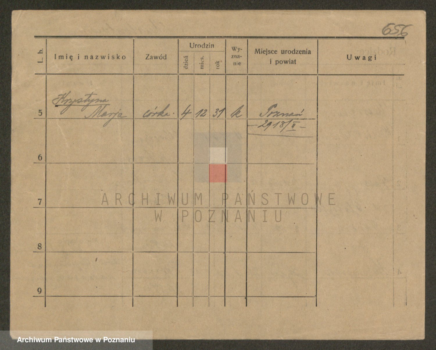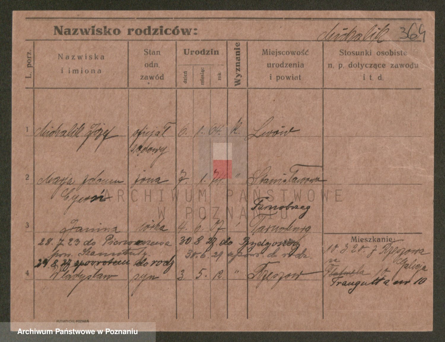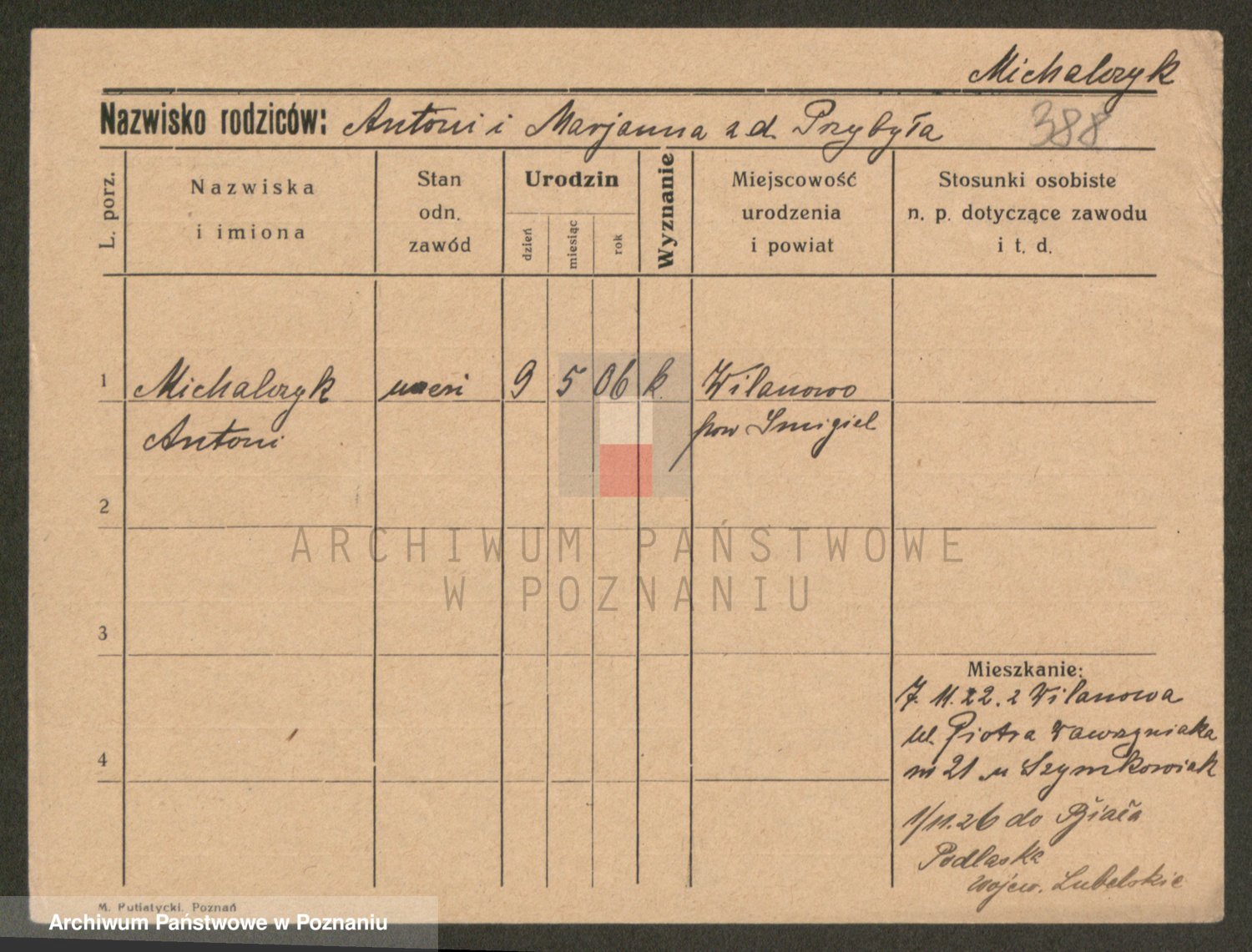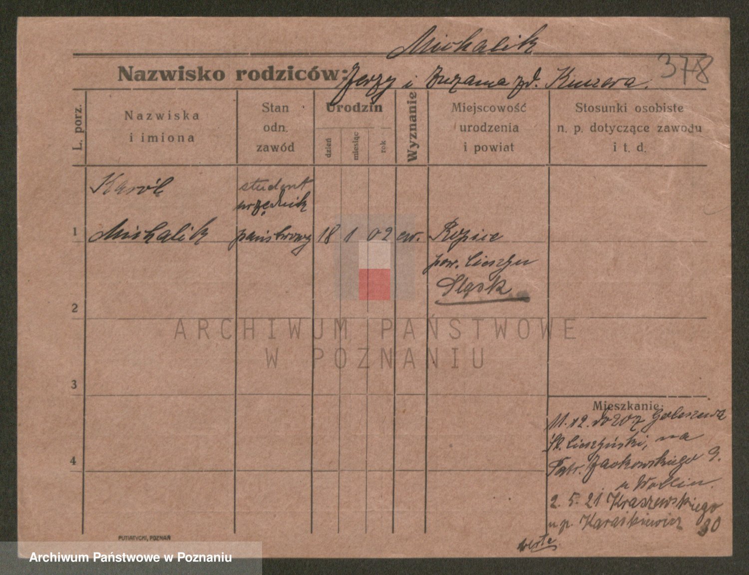 Podgląd karty osobowej dostępny jest po kliknięciu na nazwisko lub ikonkę karty. Można dokonywać powiększenia (ikony na górze) lub przechodzić między kolejnymi skanami (strzałki po bokach).