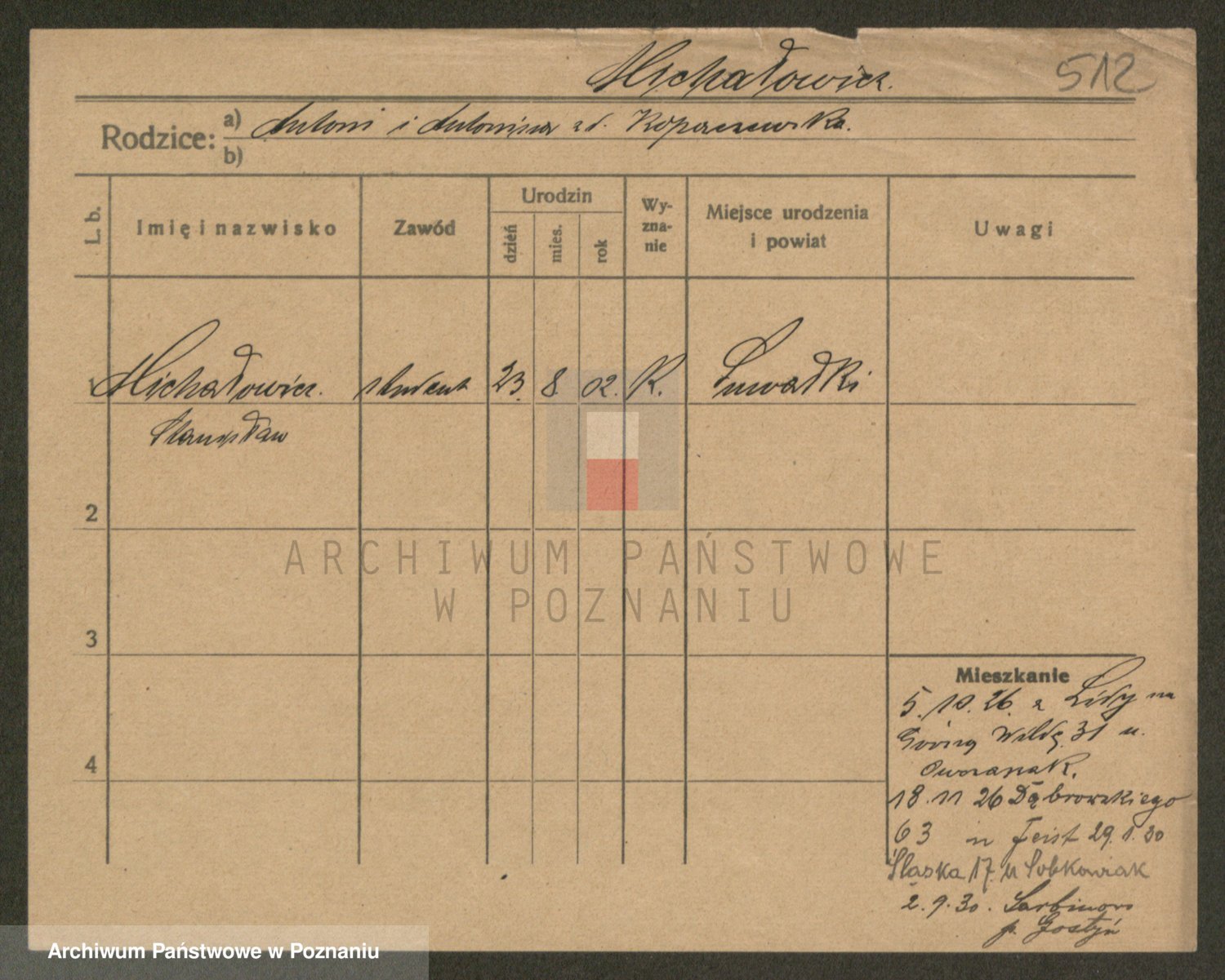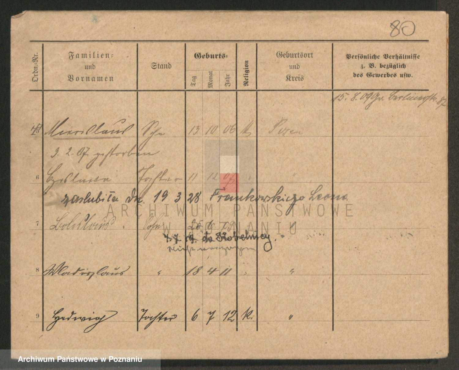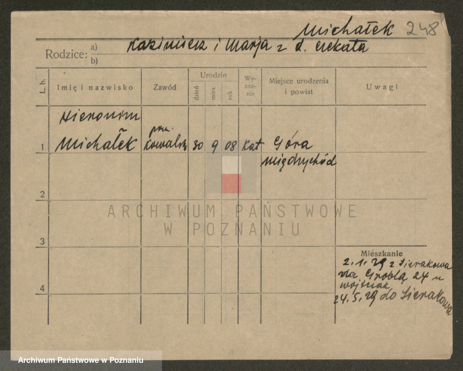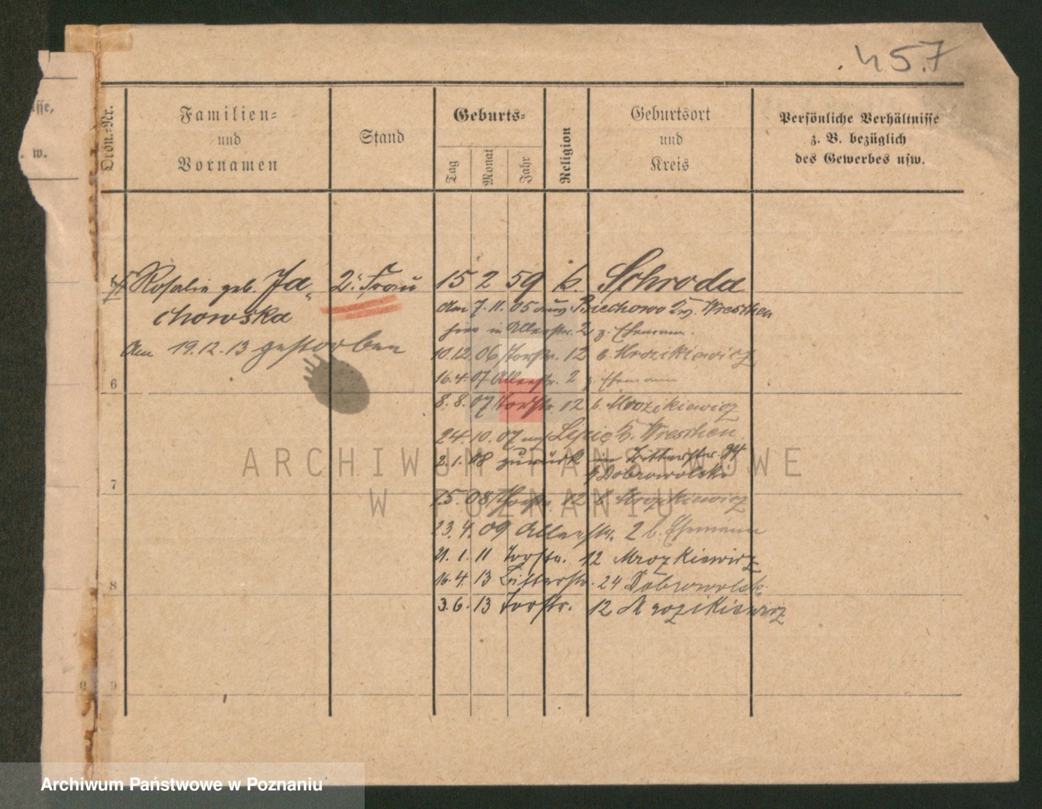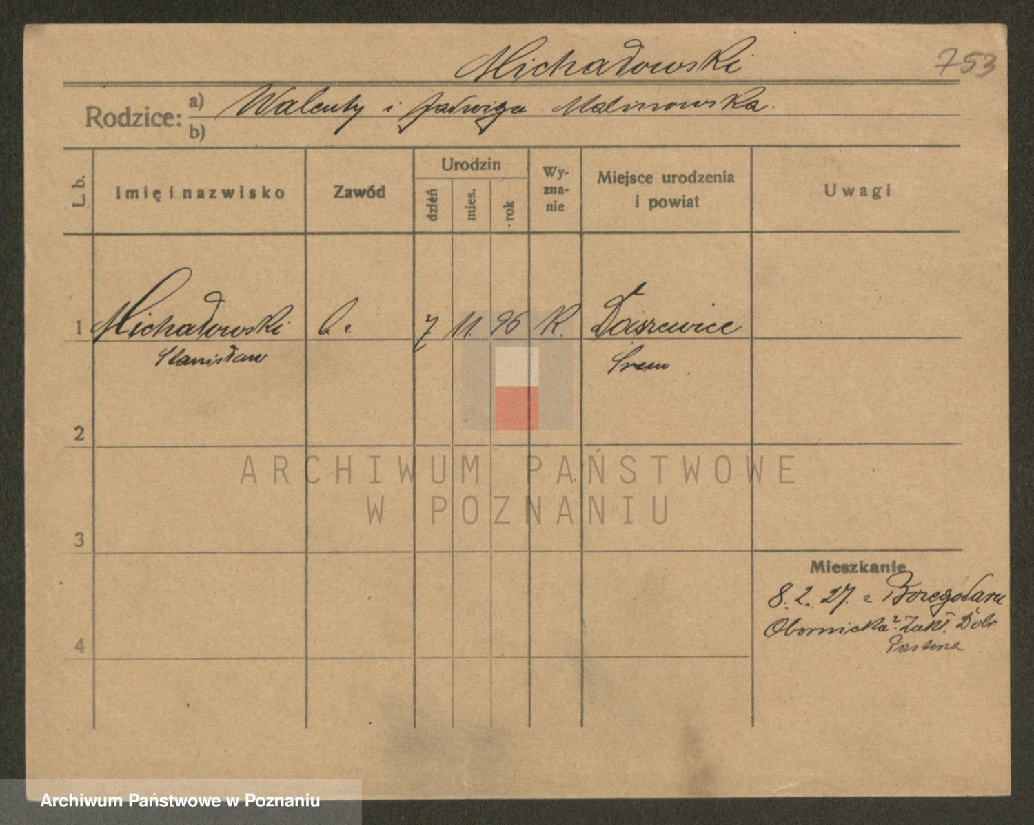 Podgląd karty osobowej dostępny jest po kliknięciu na nazwisko lub ikonkę karty. Można dokonywać powiększenia (ikony na górze) lub przechodzić między kolejnymi skanami (strzałki po bokach).