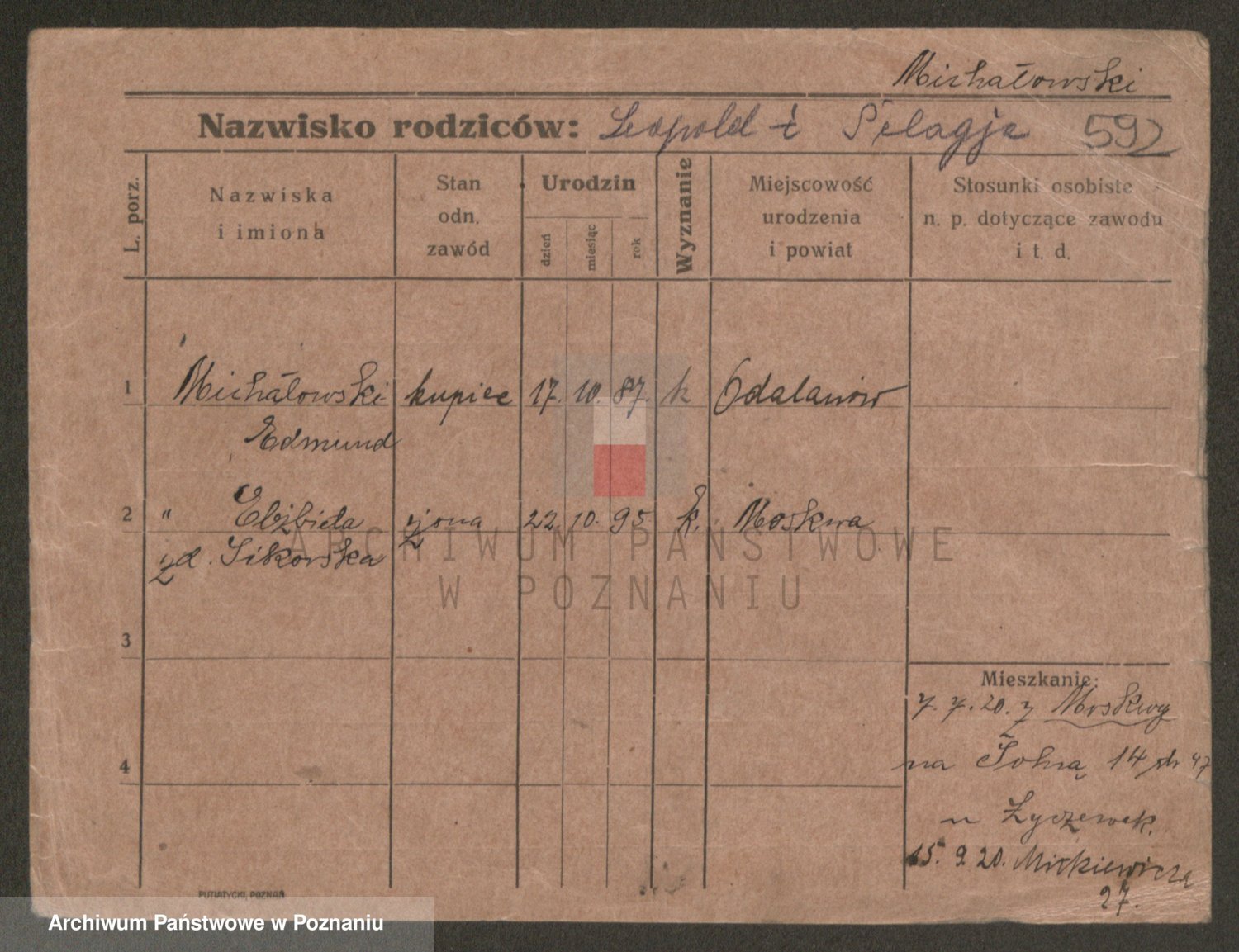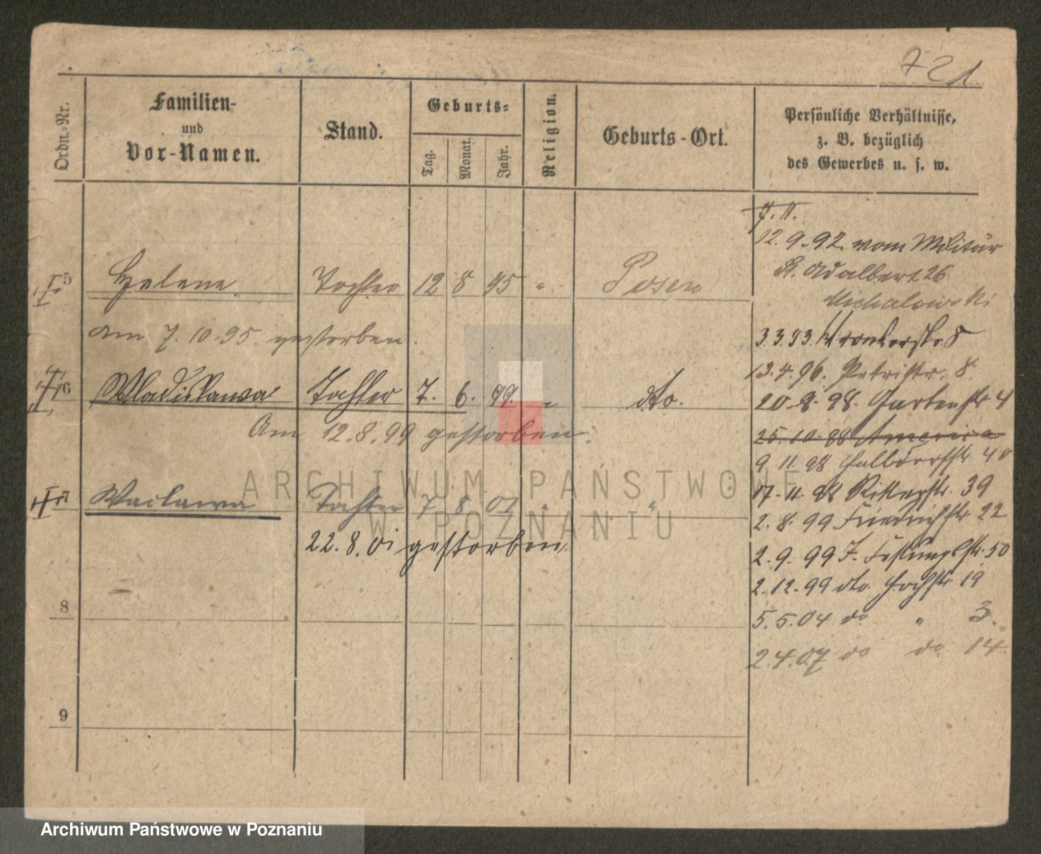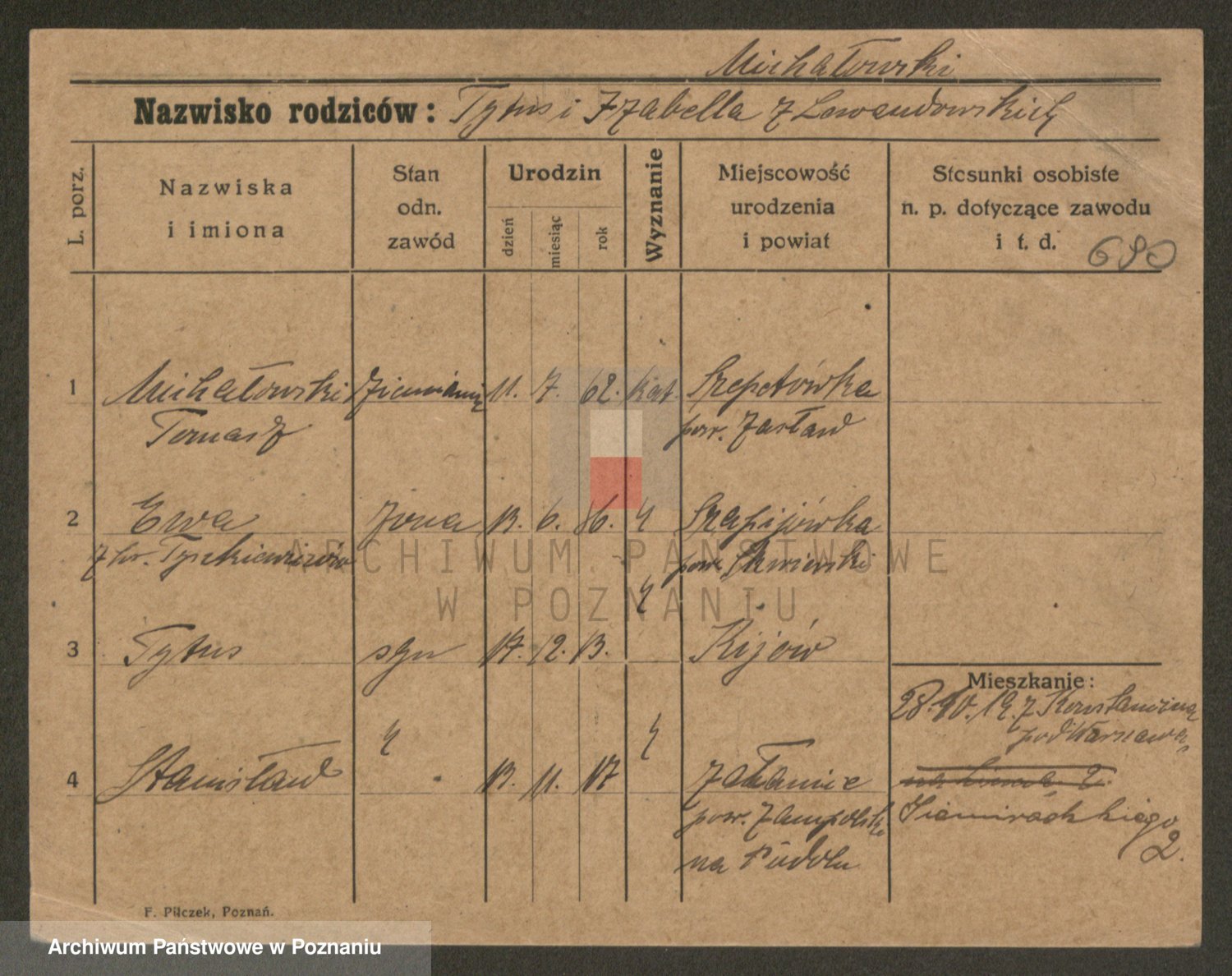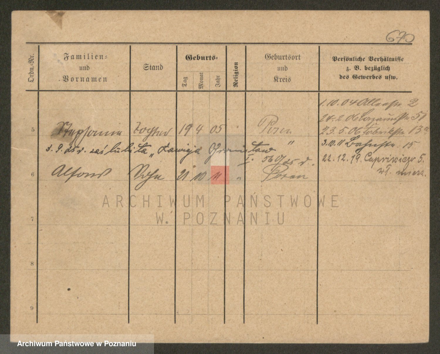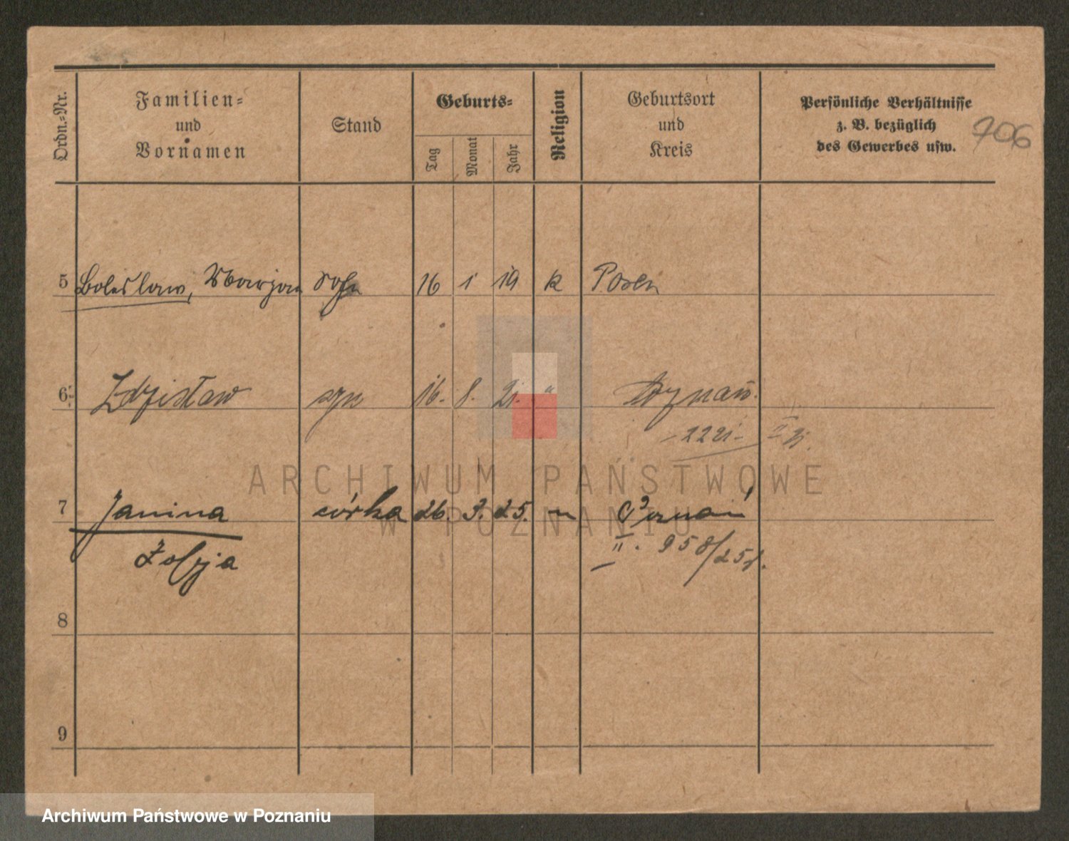 Podgląd karty osobowej dostępny jest po kliknięciu na nazwisko lub ikonkę karty. Można dokonywać powiększenia (ikony na górze) lub przechodzić między kolejnymi skanami (strzałki po bokach).