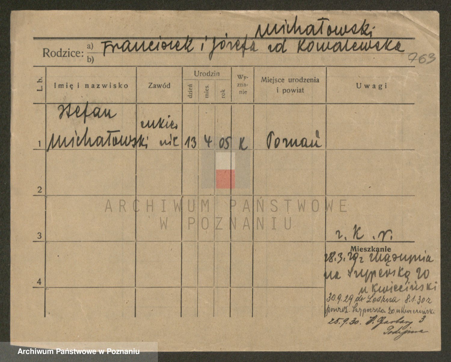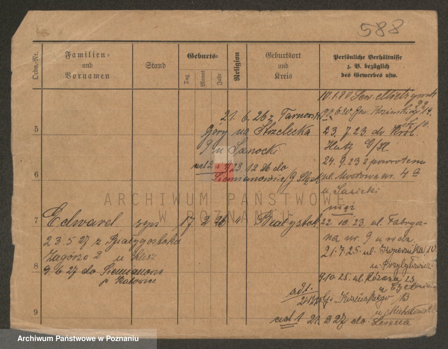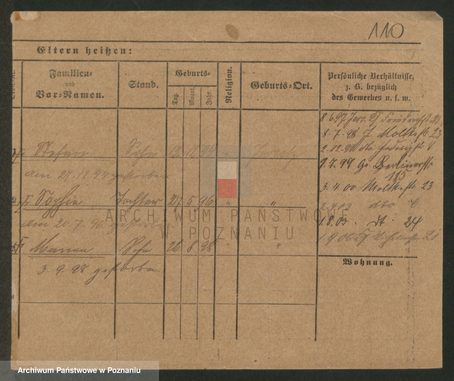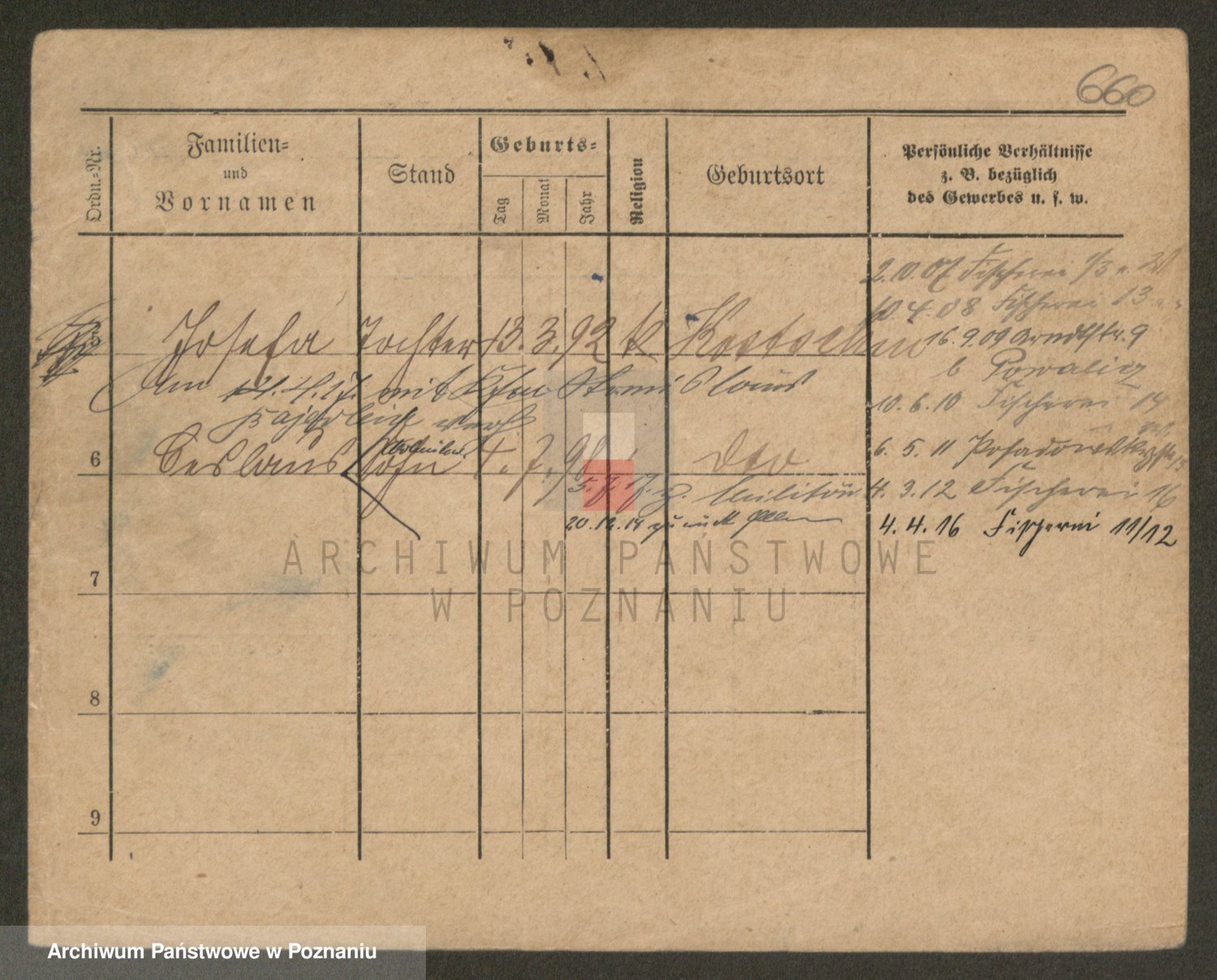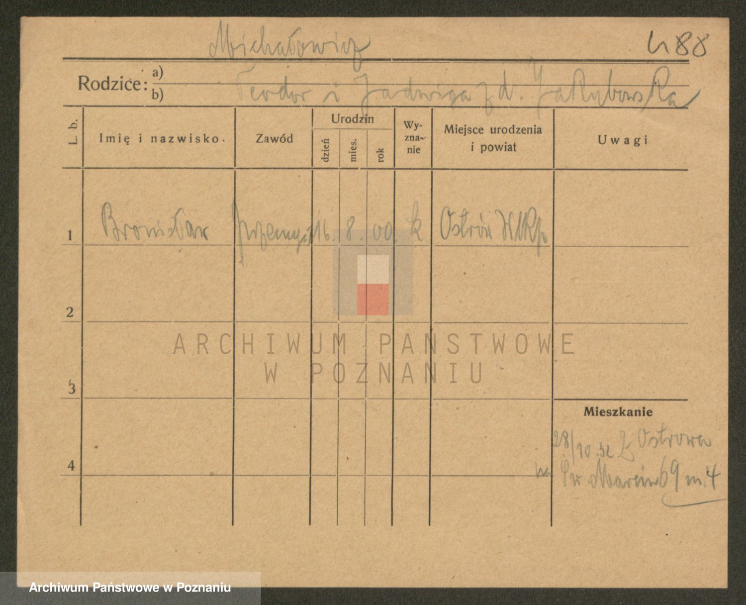 Podgląd karty osobowej dostępny jest po kliknięciu na nazwisko lub ikonkę karty. Można dokonywać powiększenia (ikony na górze) lub przechodzić między kolejnymi skanami (strzałki po bokach).