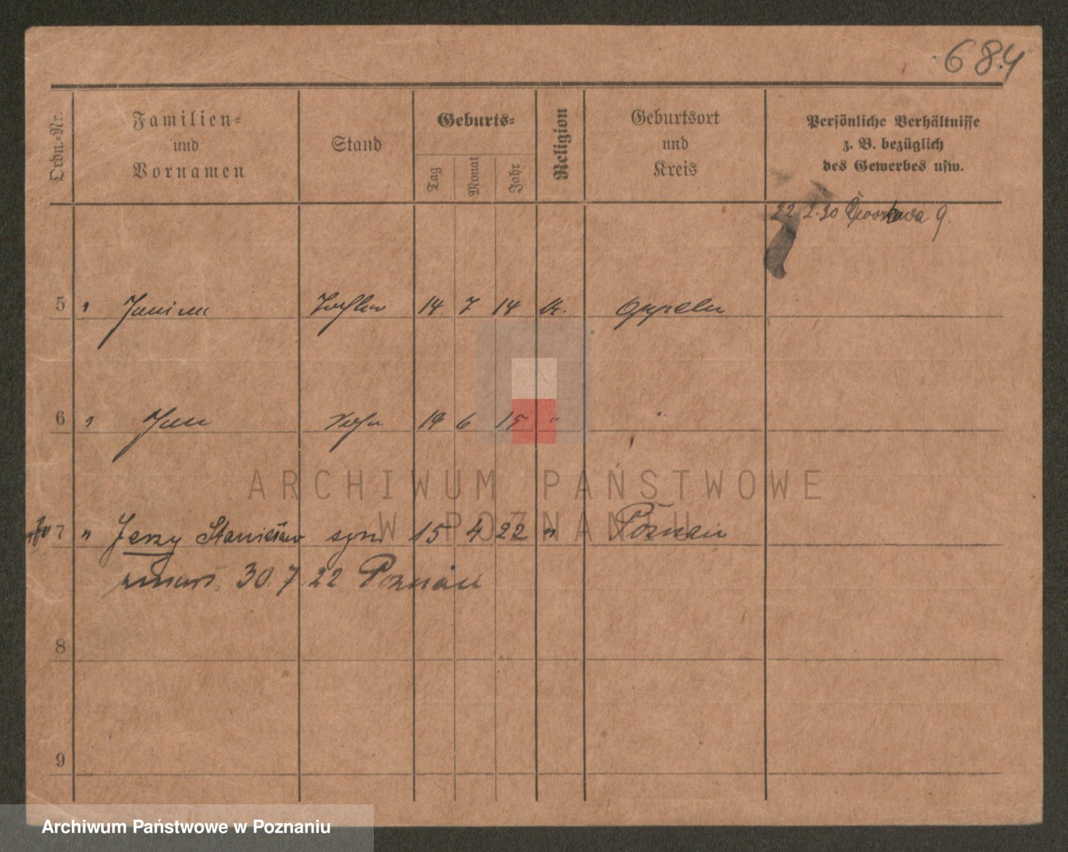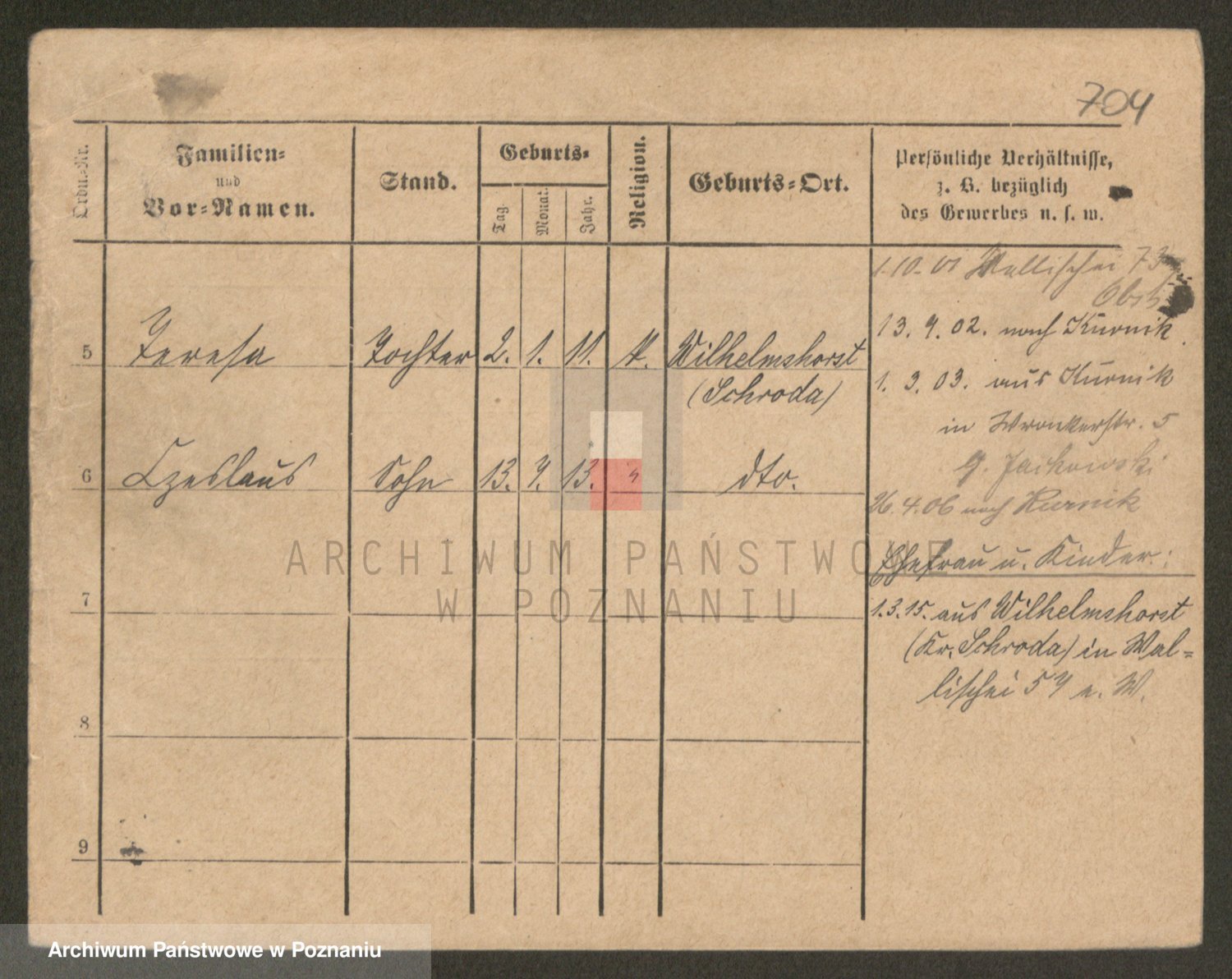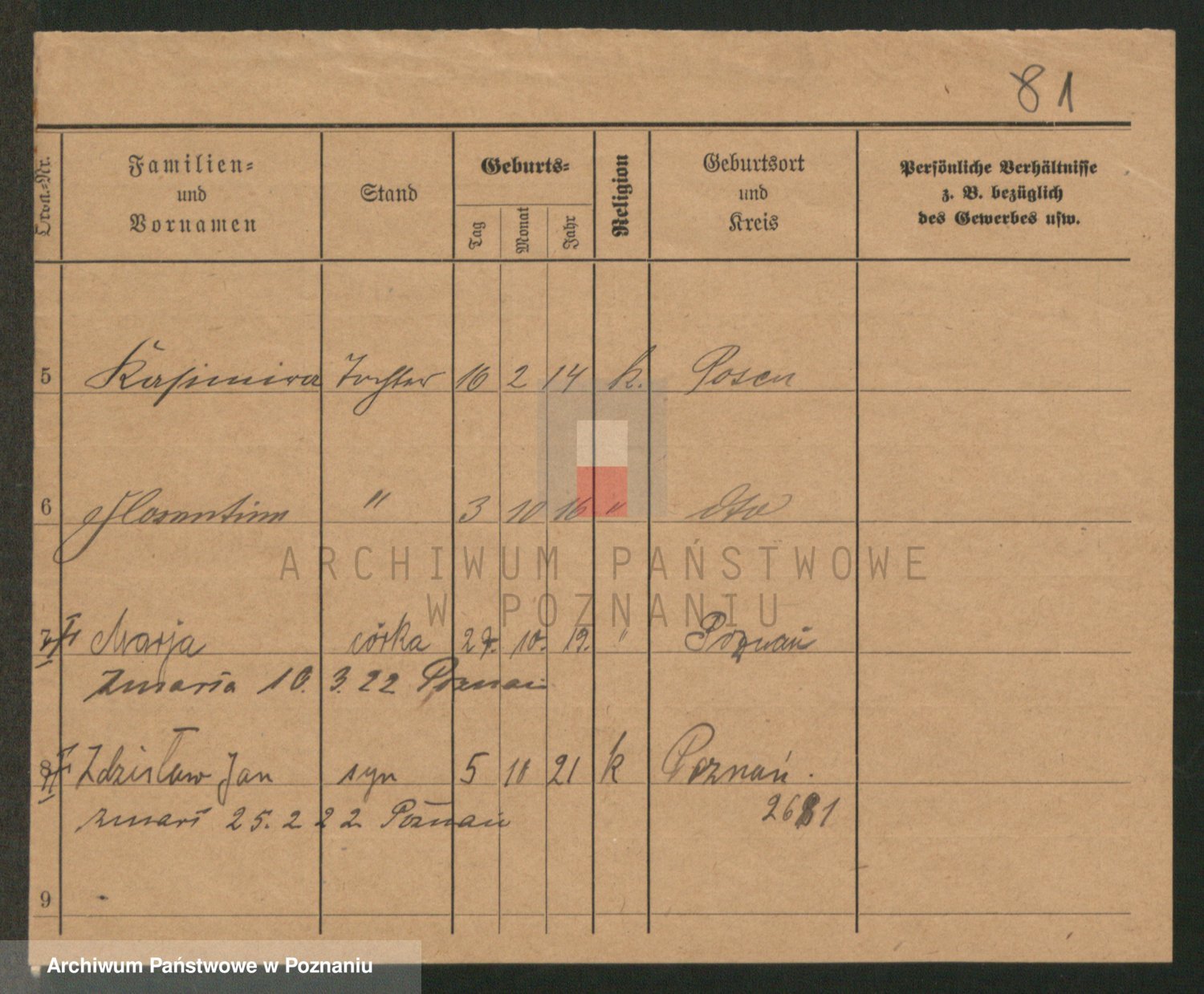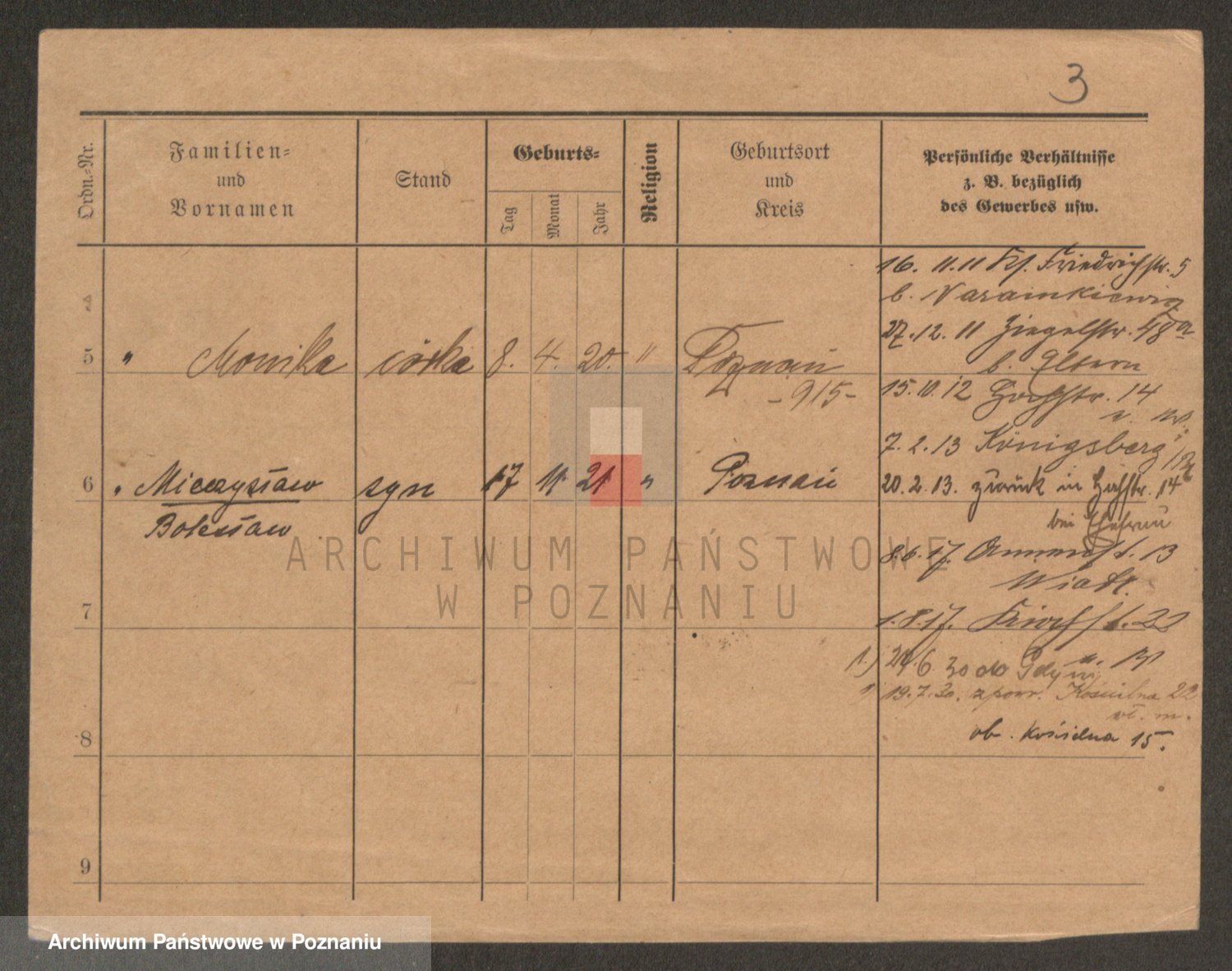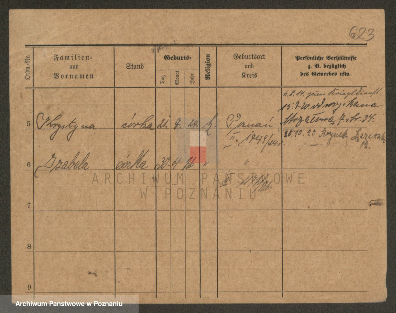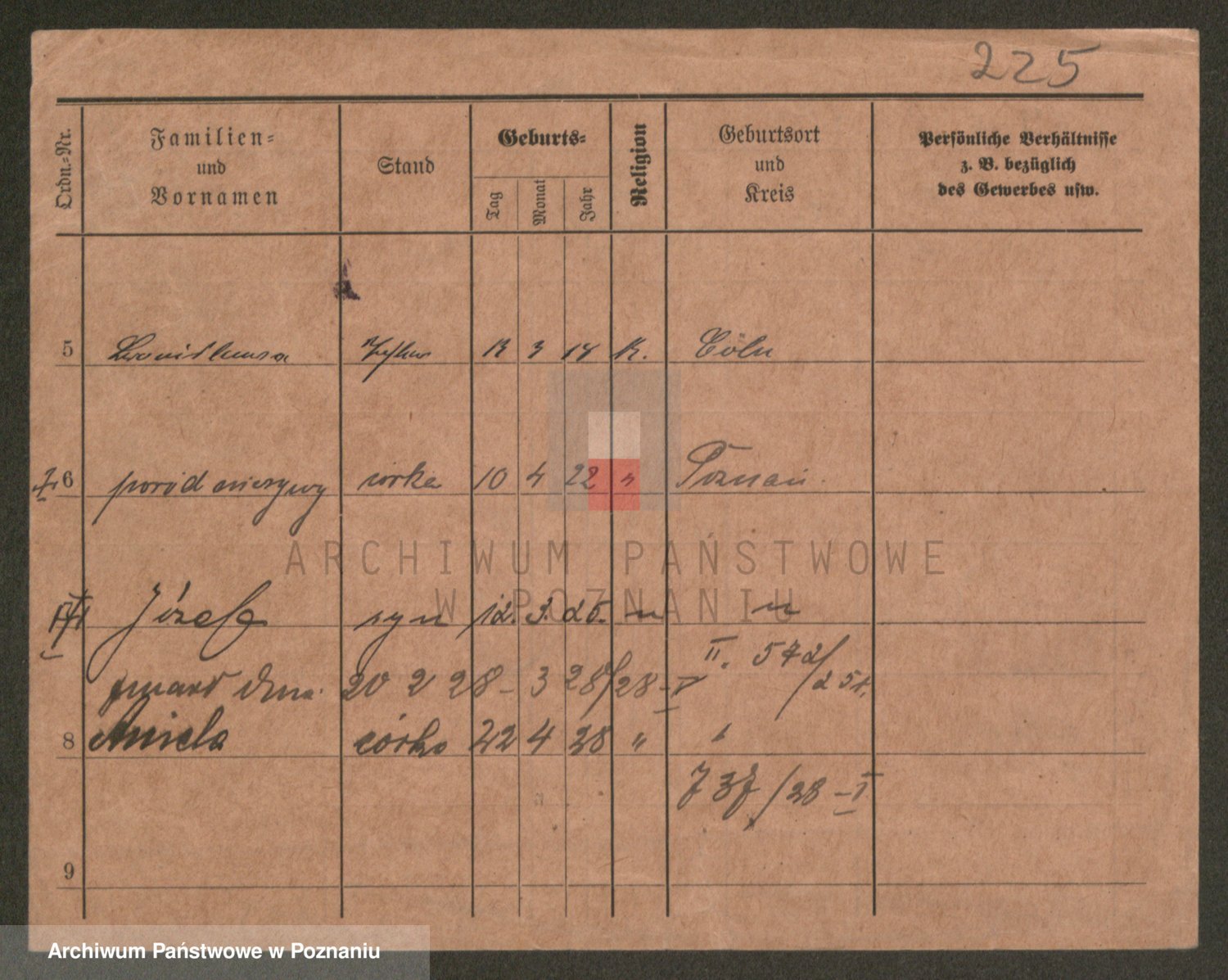 Podgląd karty osobowej dostępny jest po kliknięciu na nazwisko lub ikonkę karty. Można dokonywać powiększenia (ikony na górze) lub przechodzić między kolejnymi skanami (strzałki po bokach).