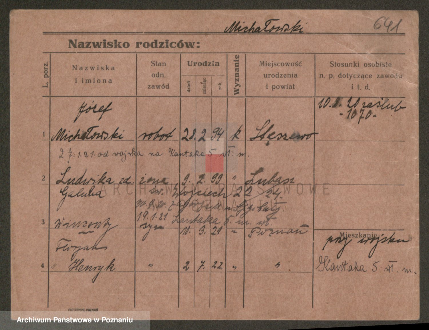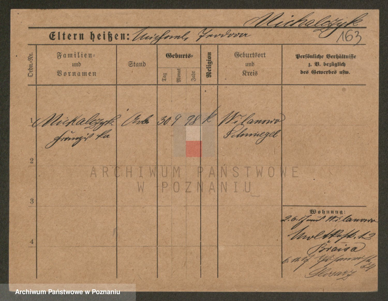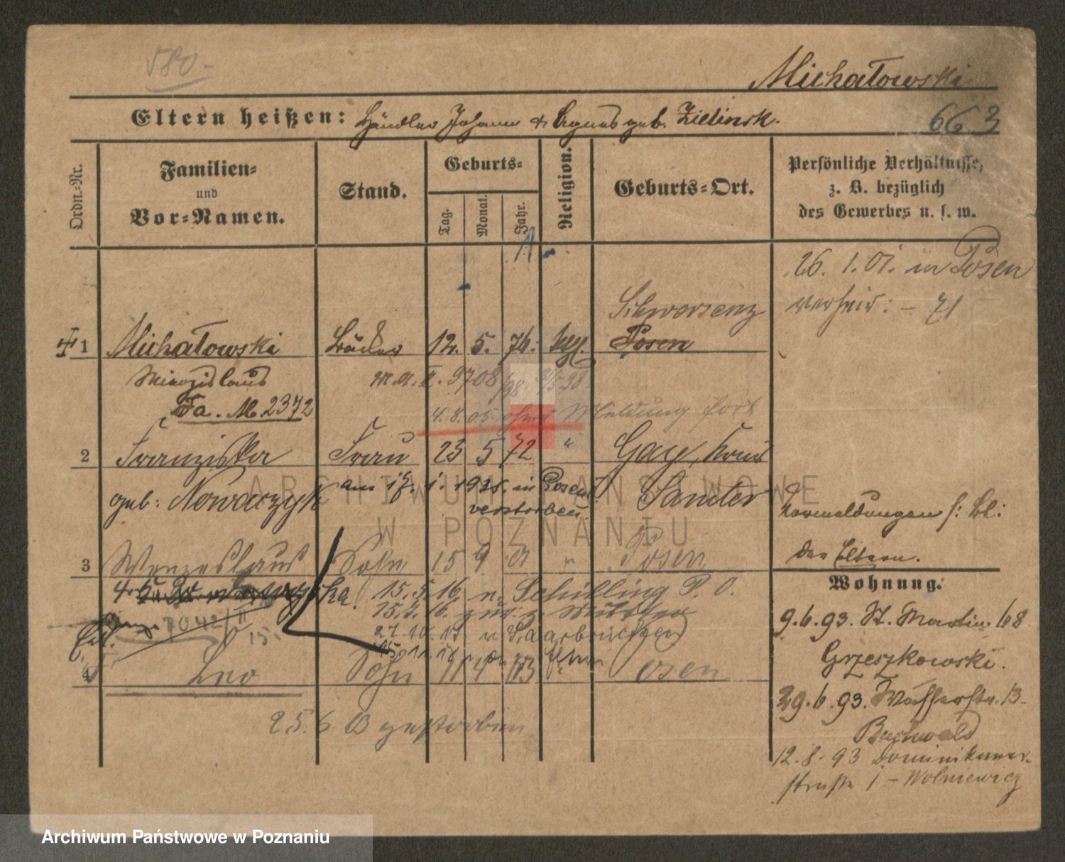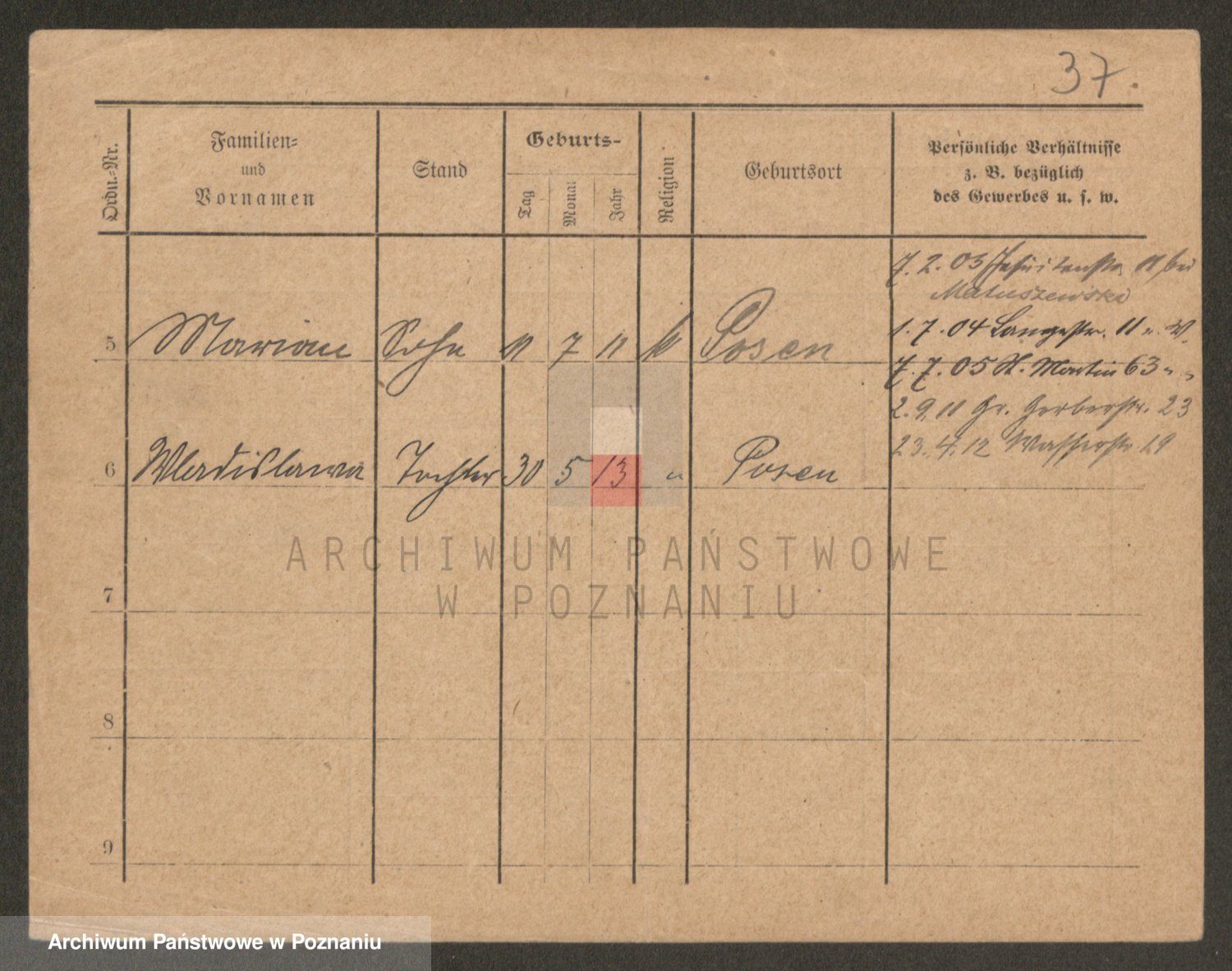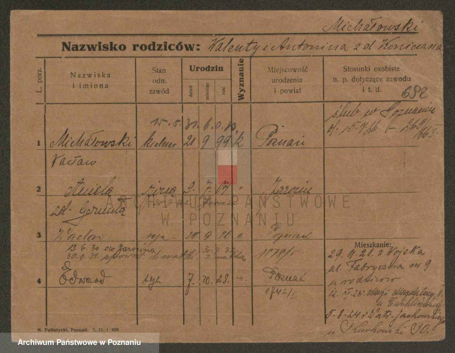 Podgląd karty osobowej dostępny jest po kliknięciu na nazwisko lub ikonkę karty. Można dokonywać powiększenia (ikony na górze) lub przechodzić między kolejnymi skanami (strzałki po bokach).