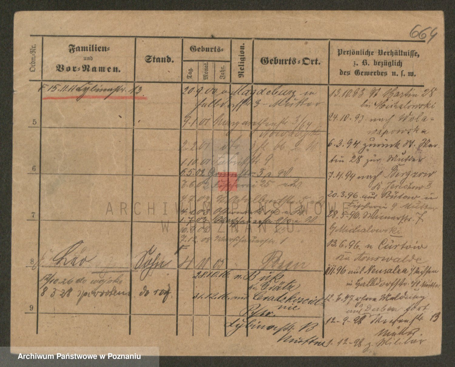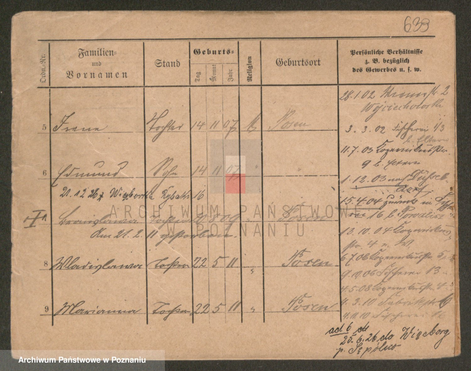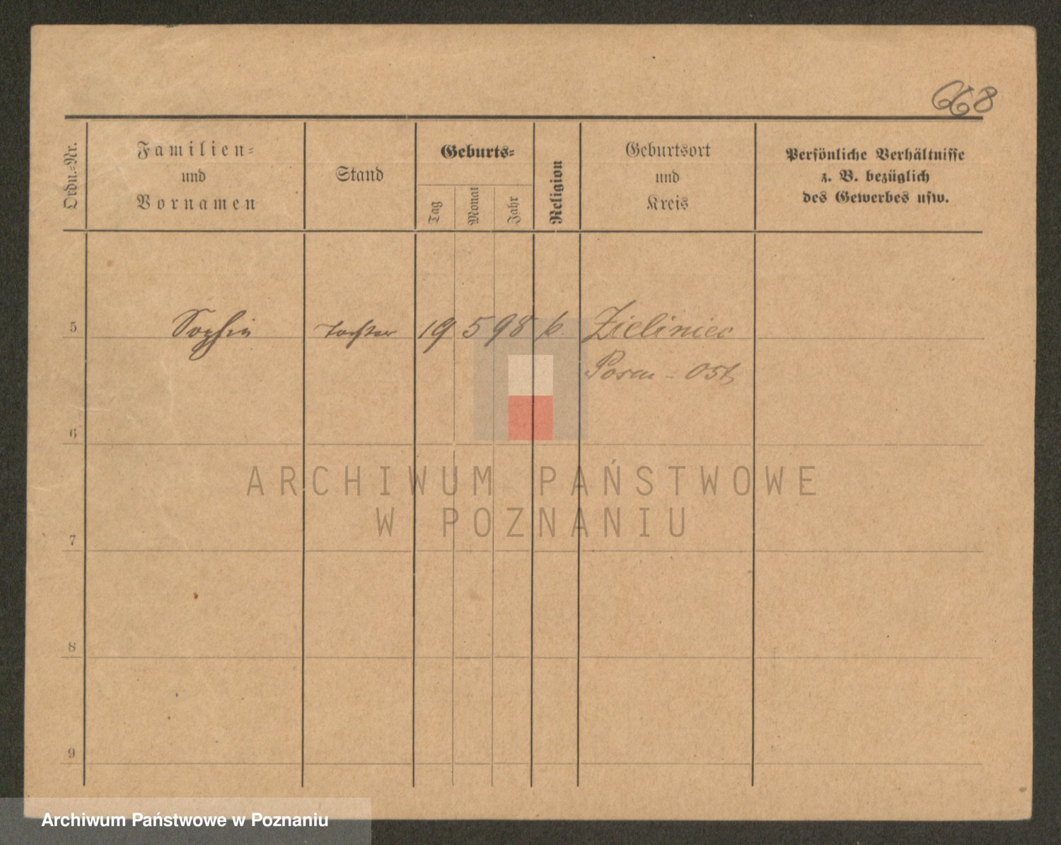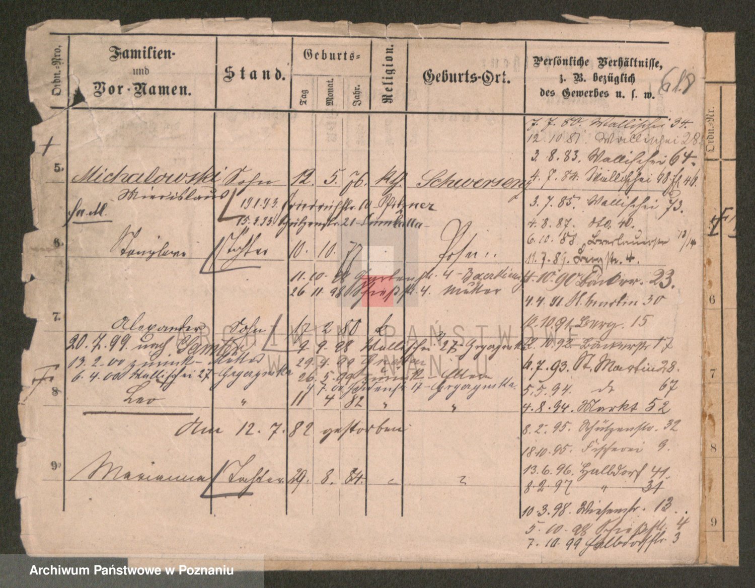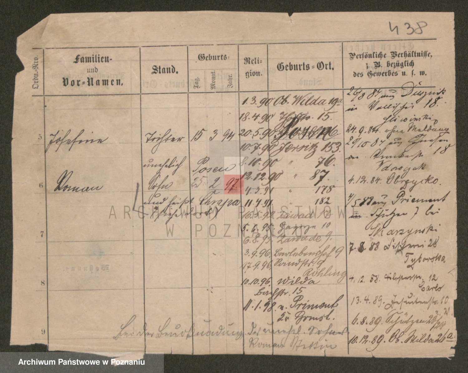 Podgląd karty osobowej dostępny jest po kliknięciu na nazwisko lub ikonkę karty. Można dokonywać powiększenia (ikony na górze) lub przechodzić między kolejnymi skanami (strzałki po bokach).
