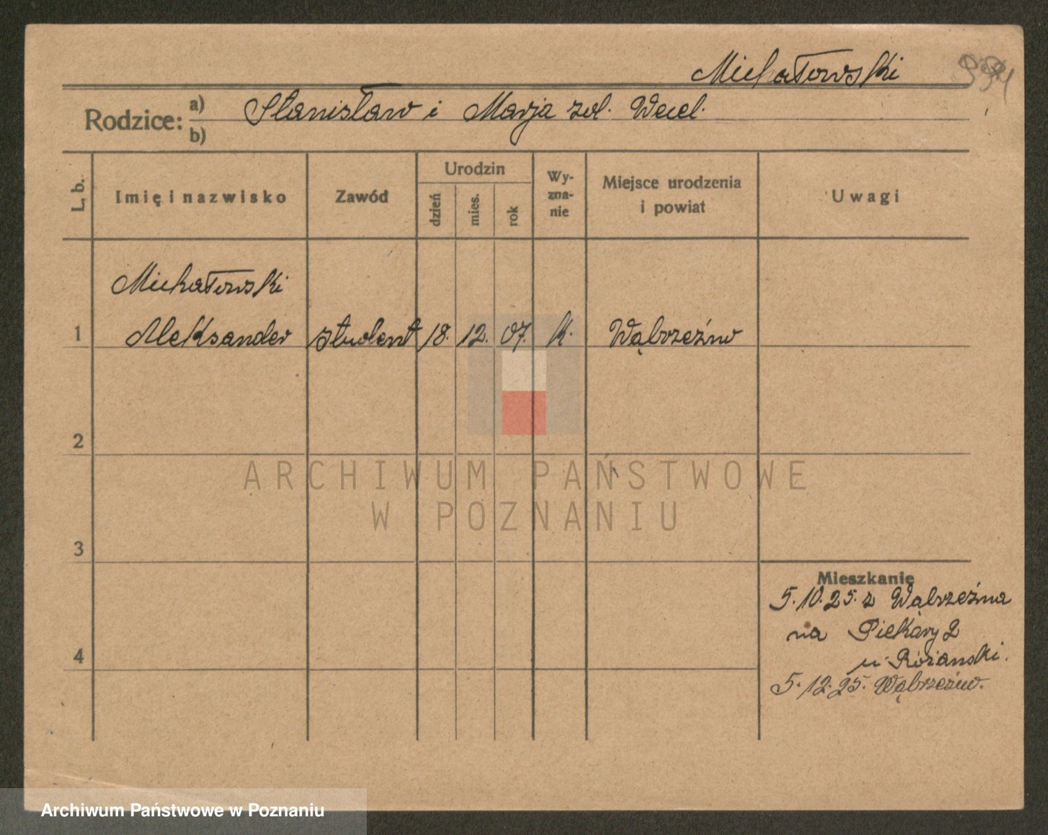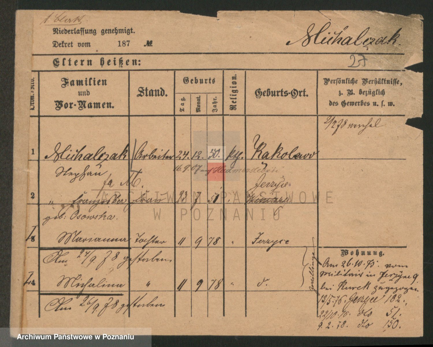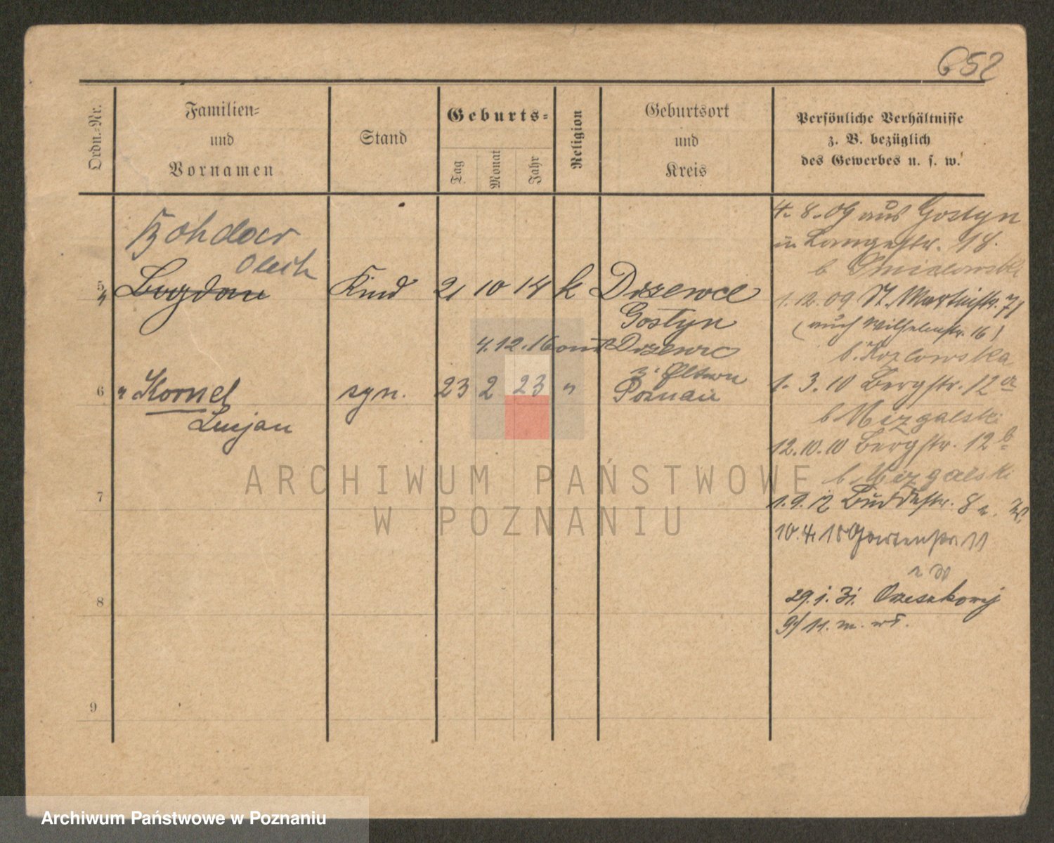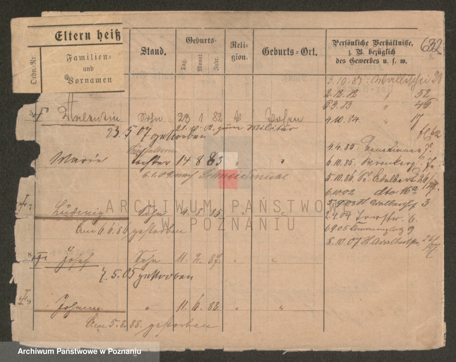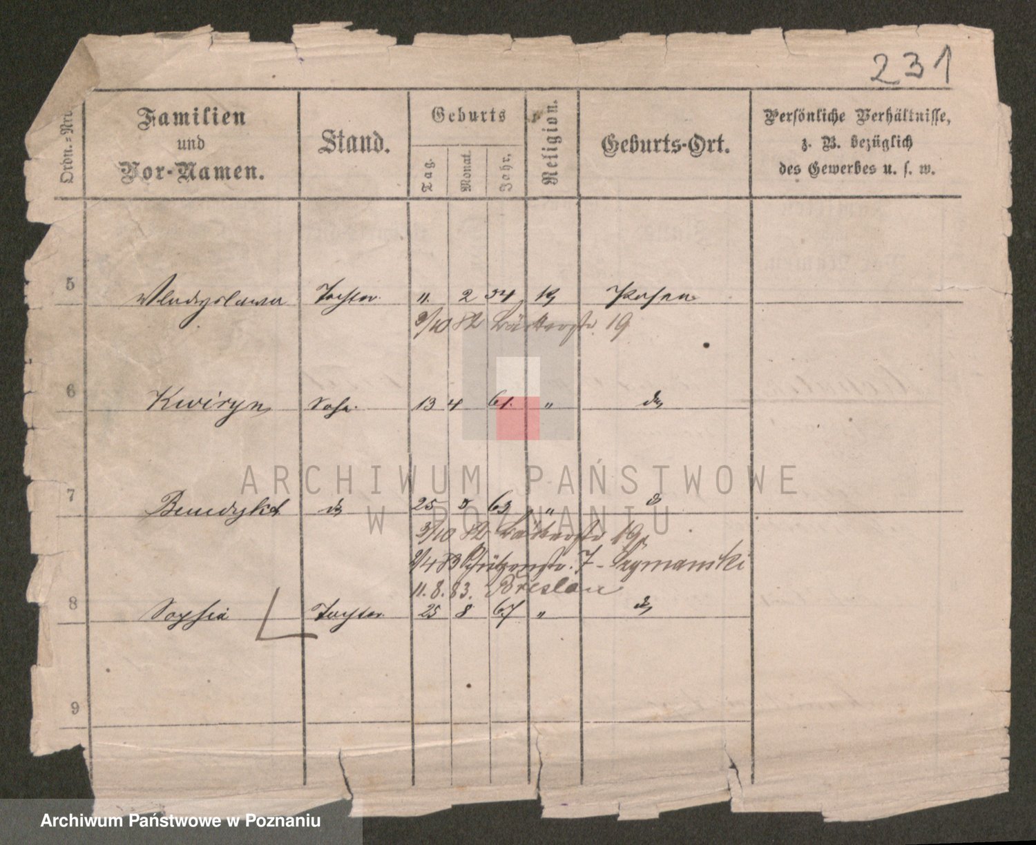 Podgląd karty osobowej dostępny jest po kliknięciu na nazwisko lub ikonkę karty. Można dokonywać powiększenia (ikony na górze) lub przechodzić między kolejnymi skanami (strzałki po bokach).