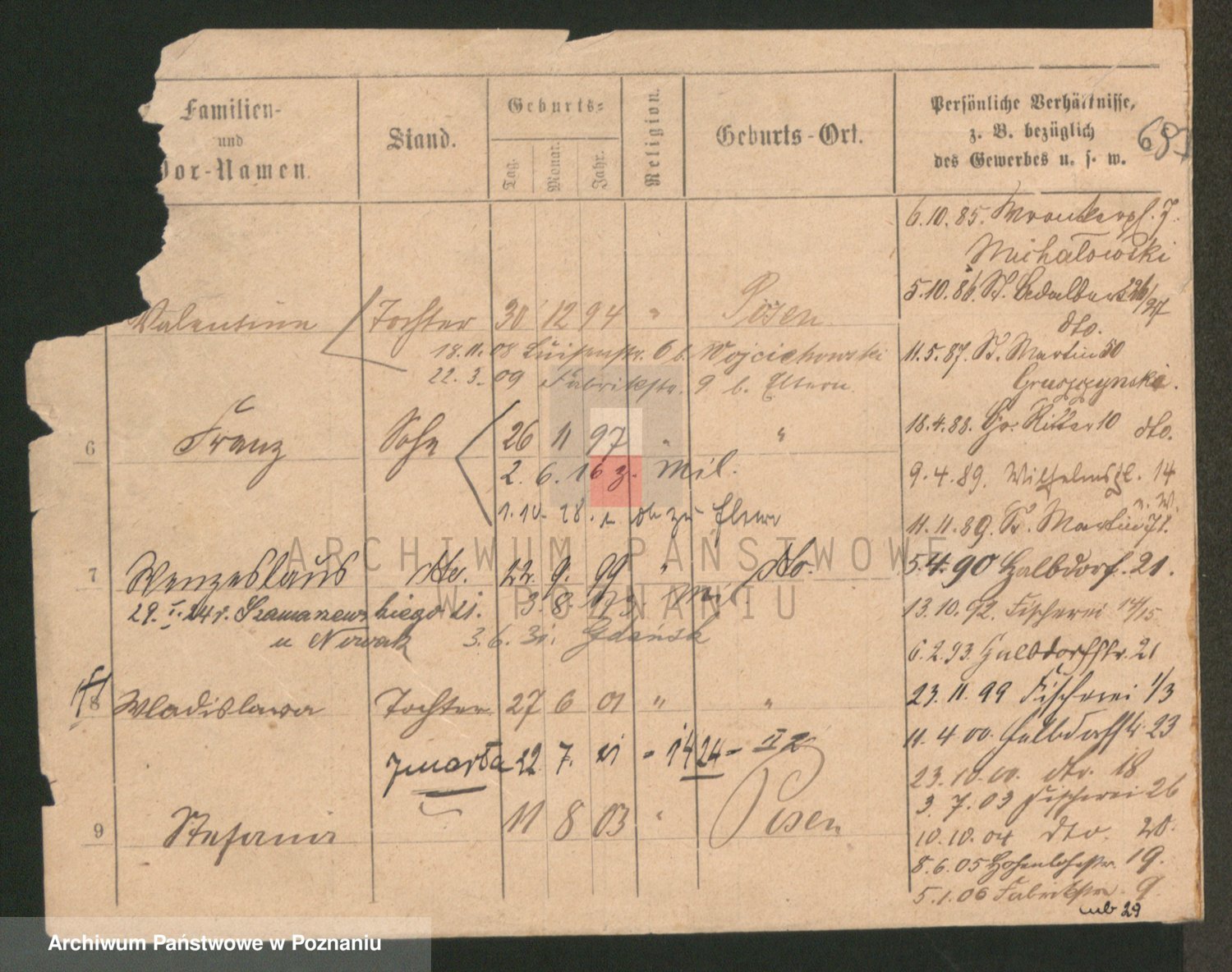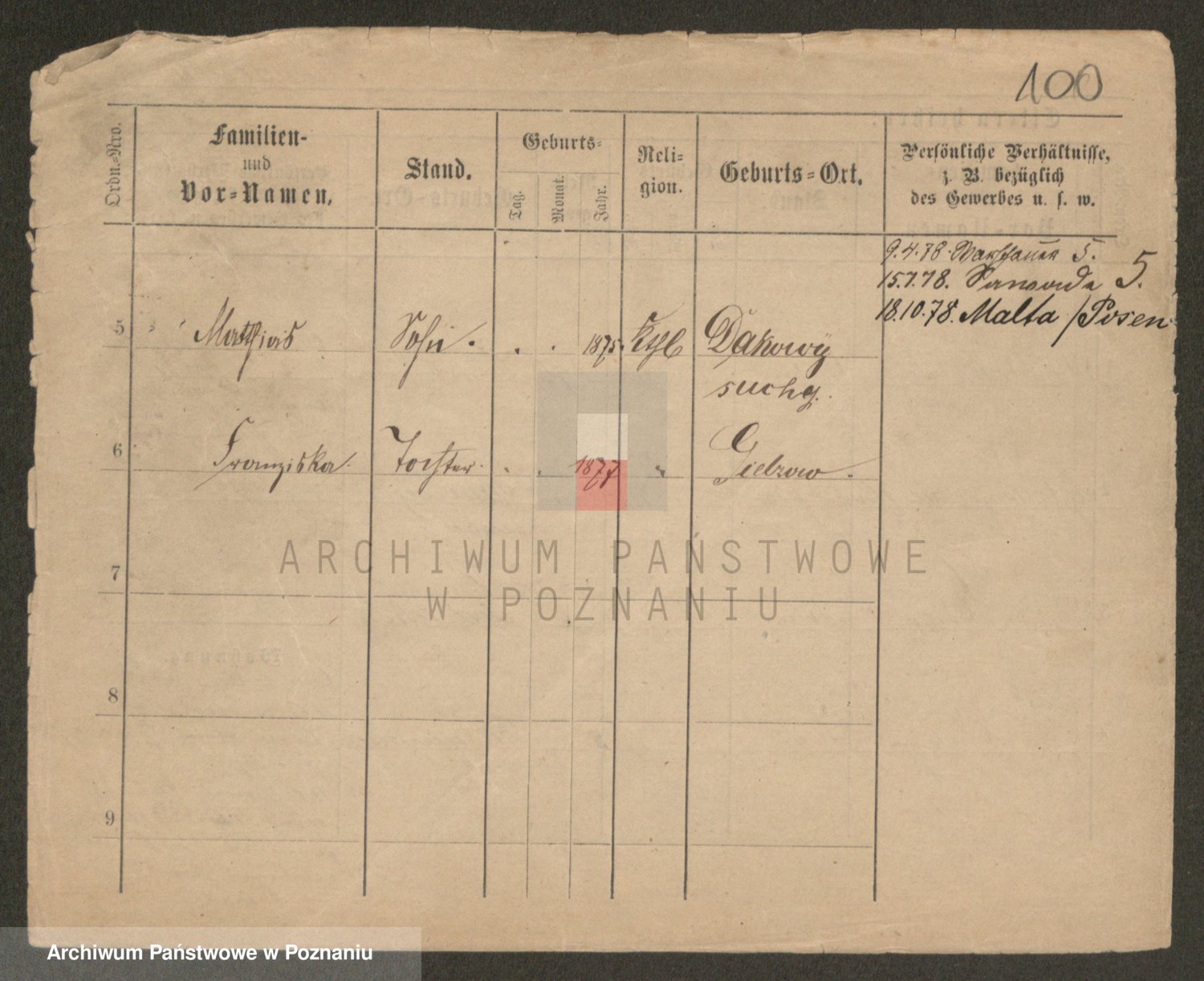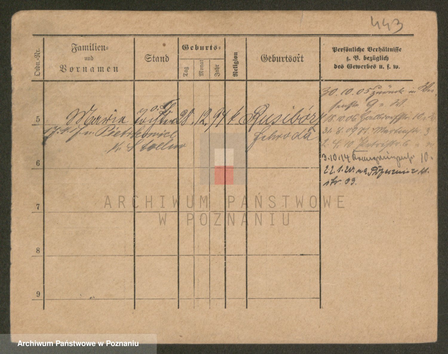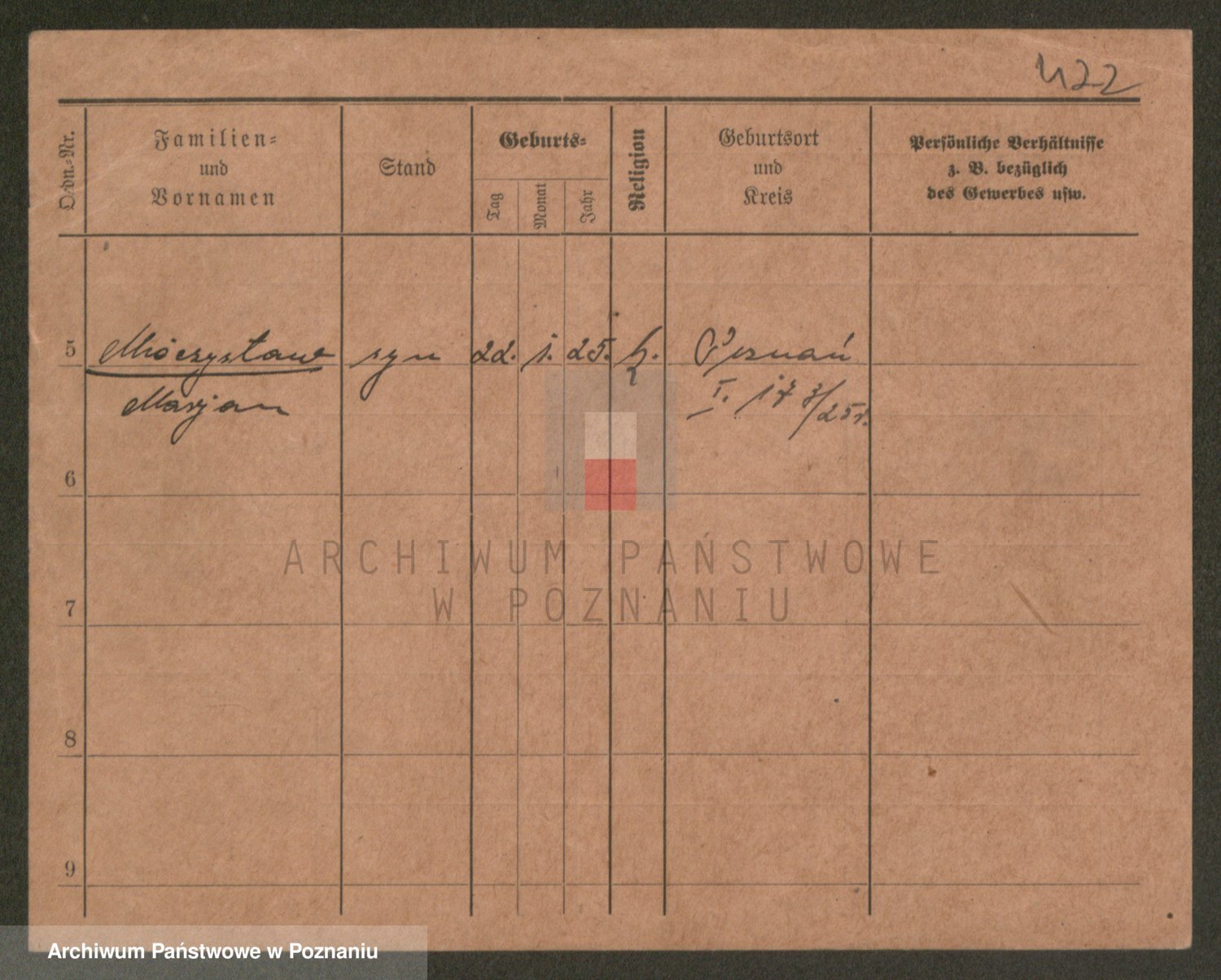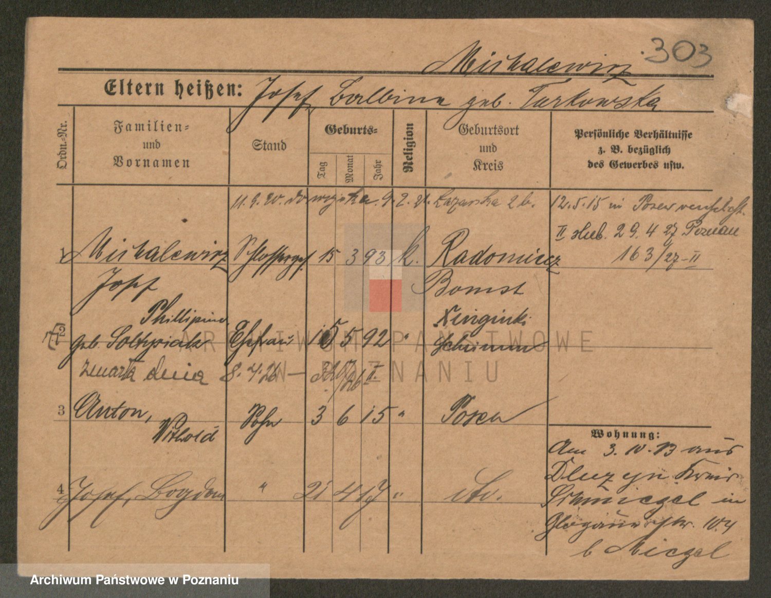 Podgląd karty osobowej dostępny jest po kliknięciu na nazwisko lub ikonkę karty. Można dokonywać powiększenia (ikony na górze) lub przechodzić między kolejnymi skanami (strzałki po bokach).