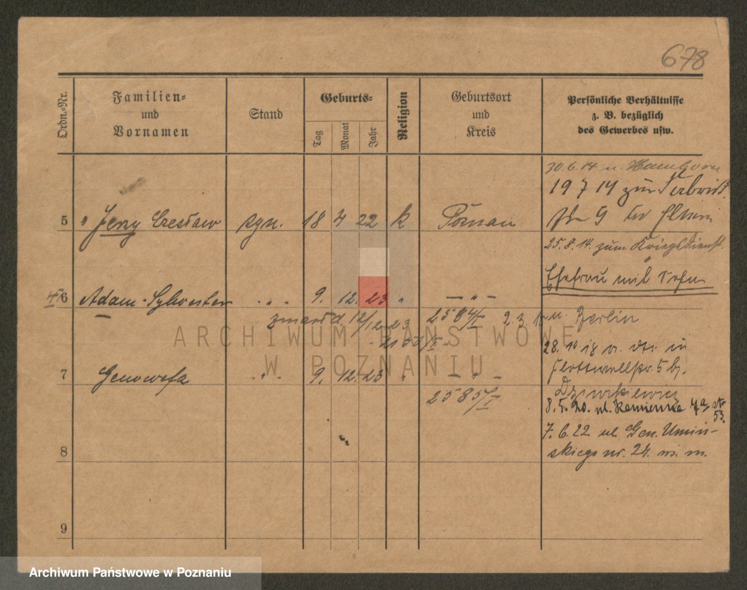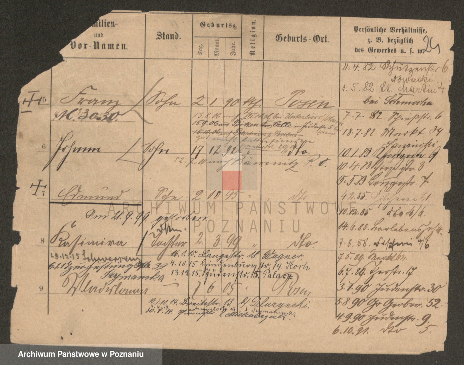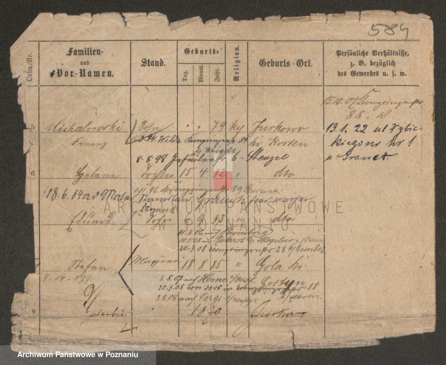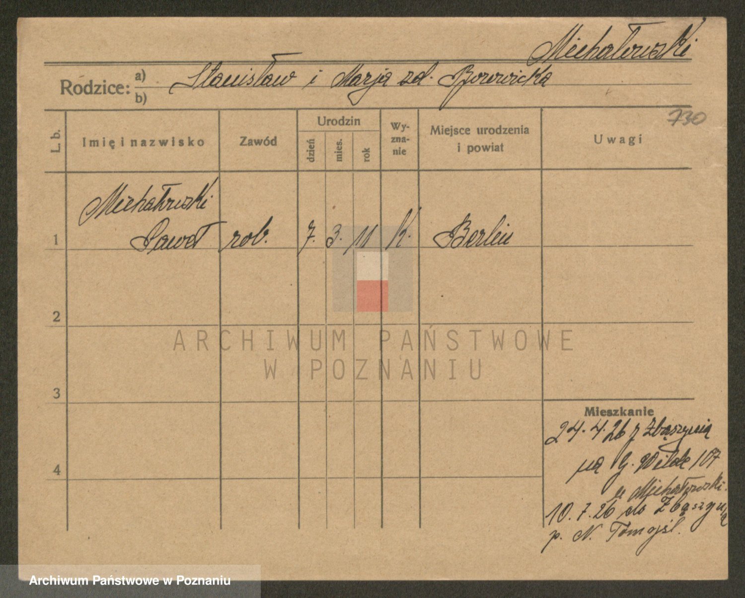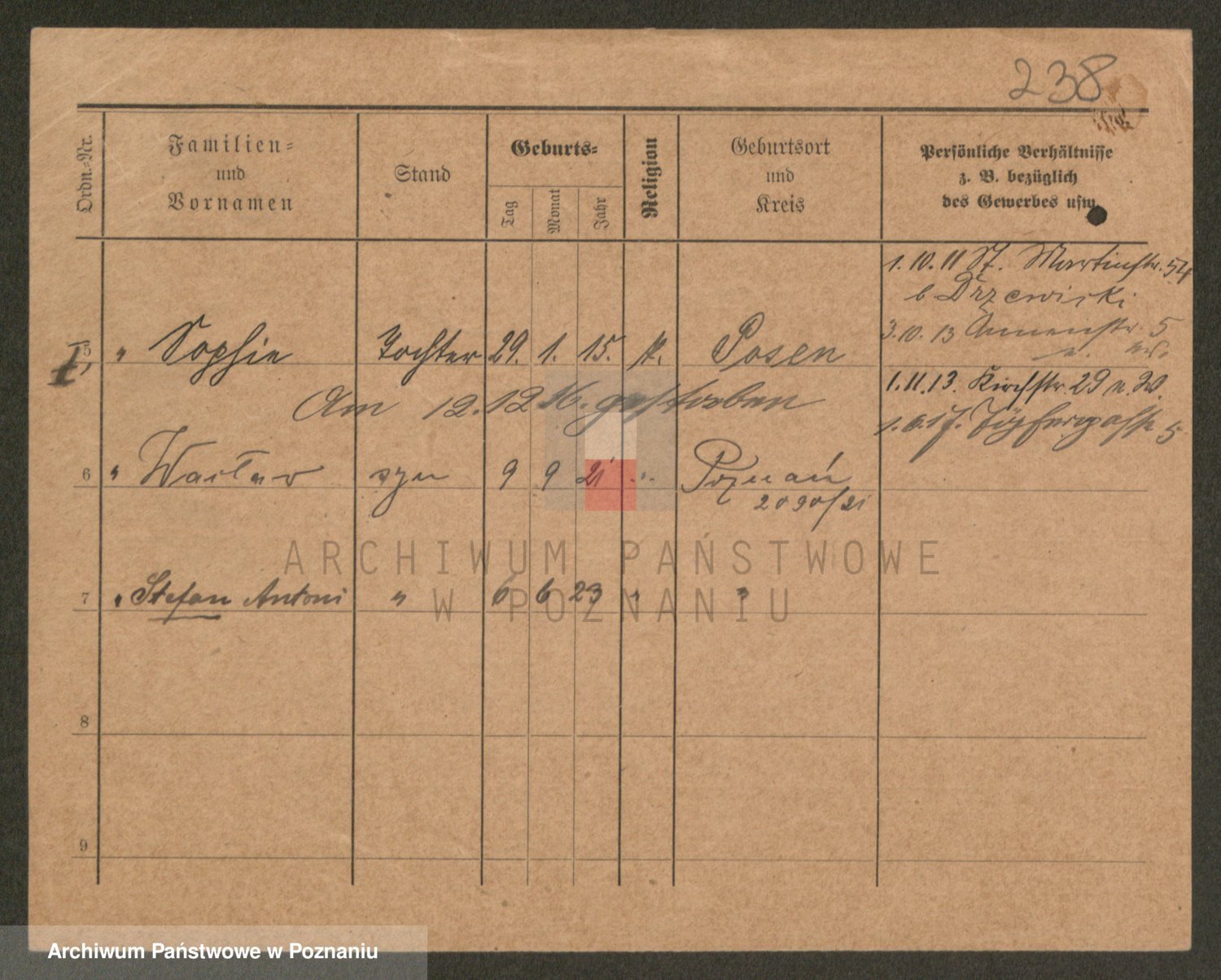 Podgląd karty osobowej dostępny jest po kliknięciu na nazwisko lub ikonkę karty. Można dokonywać powiększenia (ikony na górze) lub przechodzić między kolejnymi skanami (strzałki po bokach).
