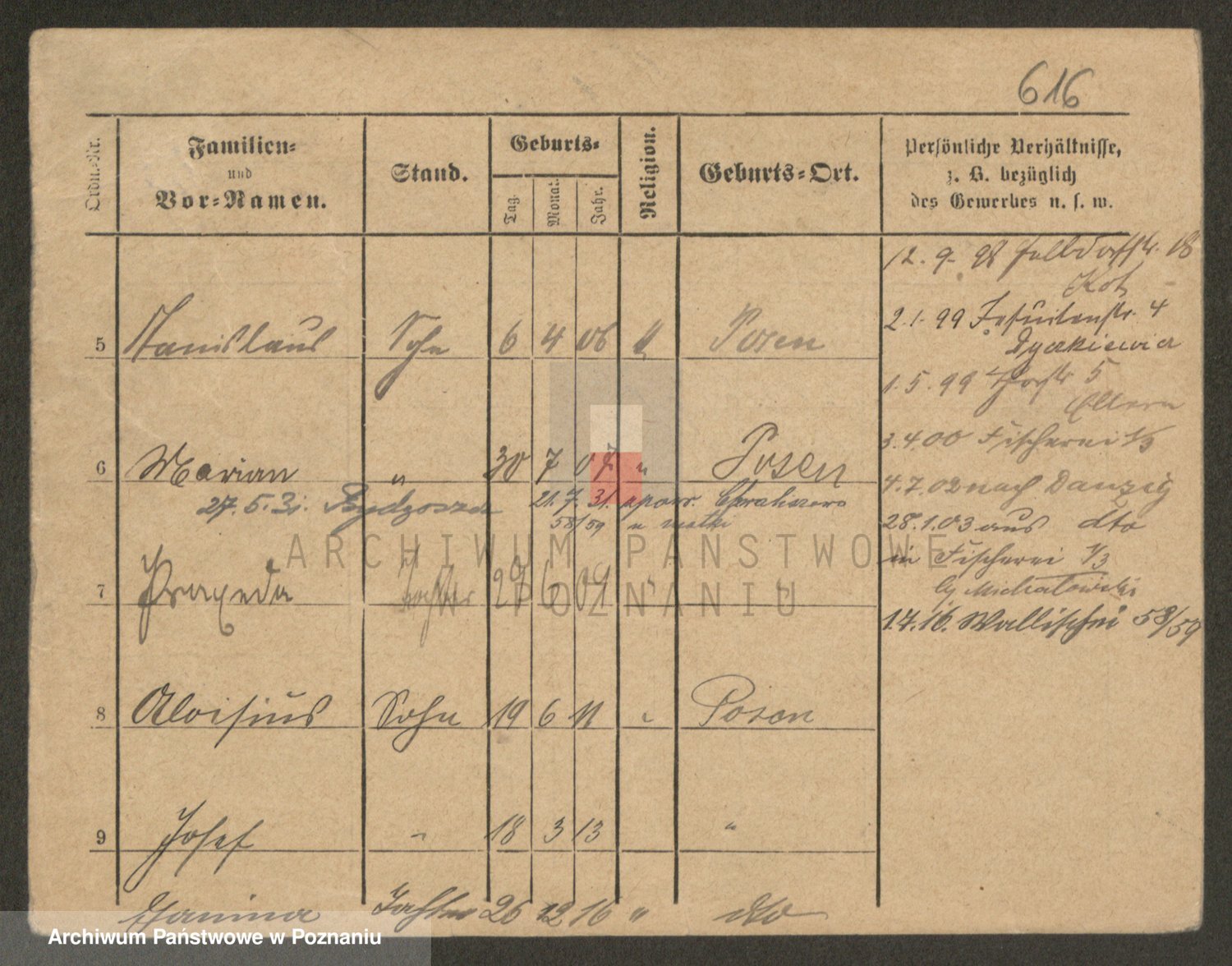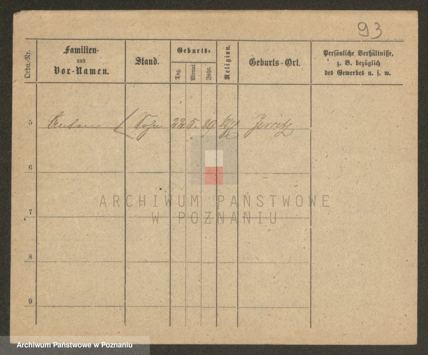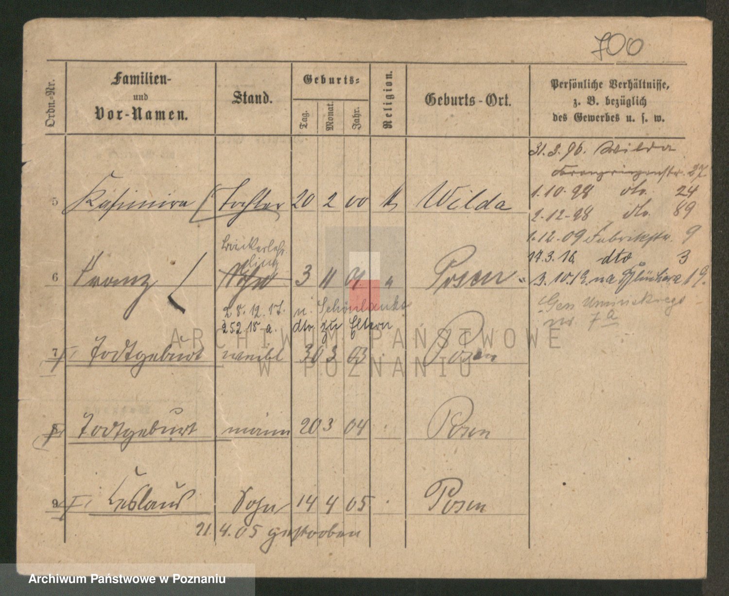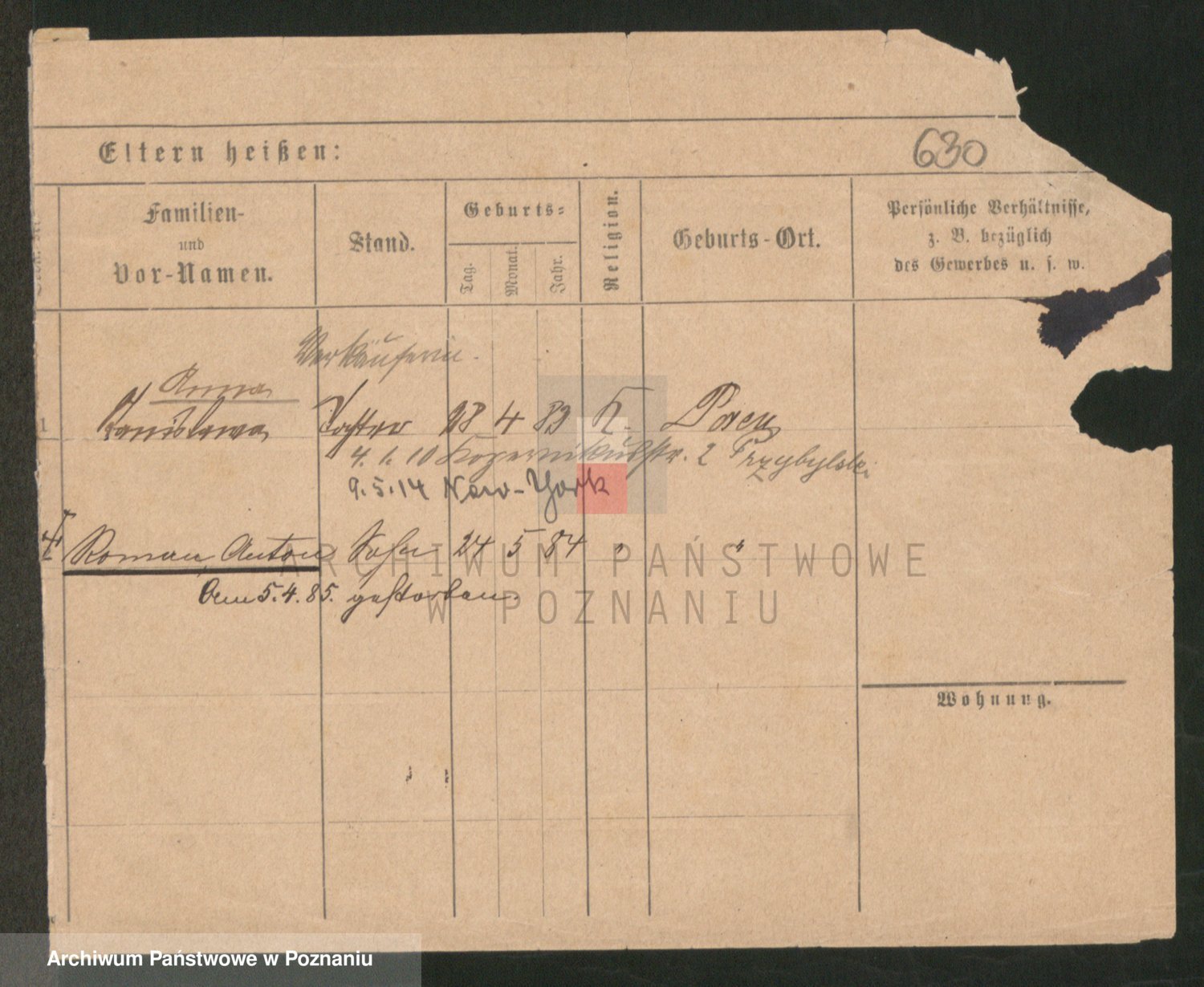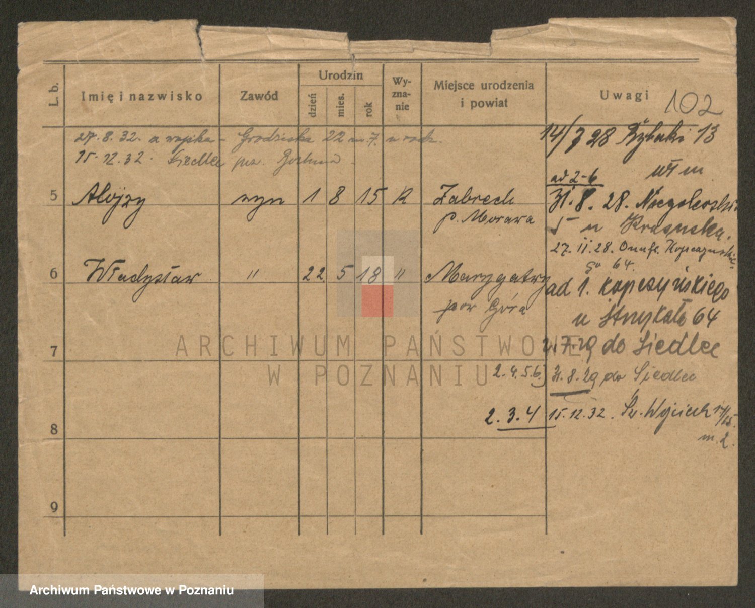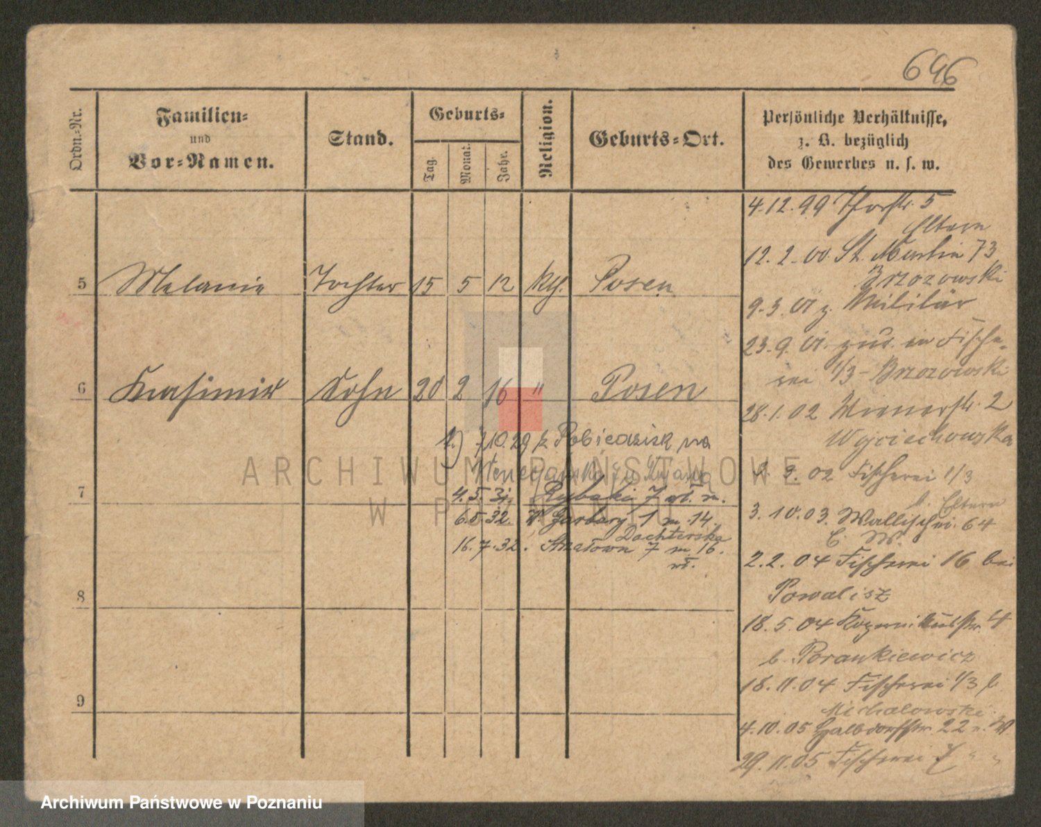 Podgląd karty osobowej dostępny jest po kliknięciu na nazwisko lub ikonkę karty. Można dokonywać powiększenia (ikony na górze) lub przechodzić między kolejnymi skanami (strzałki po bokach).