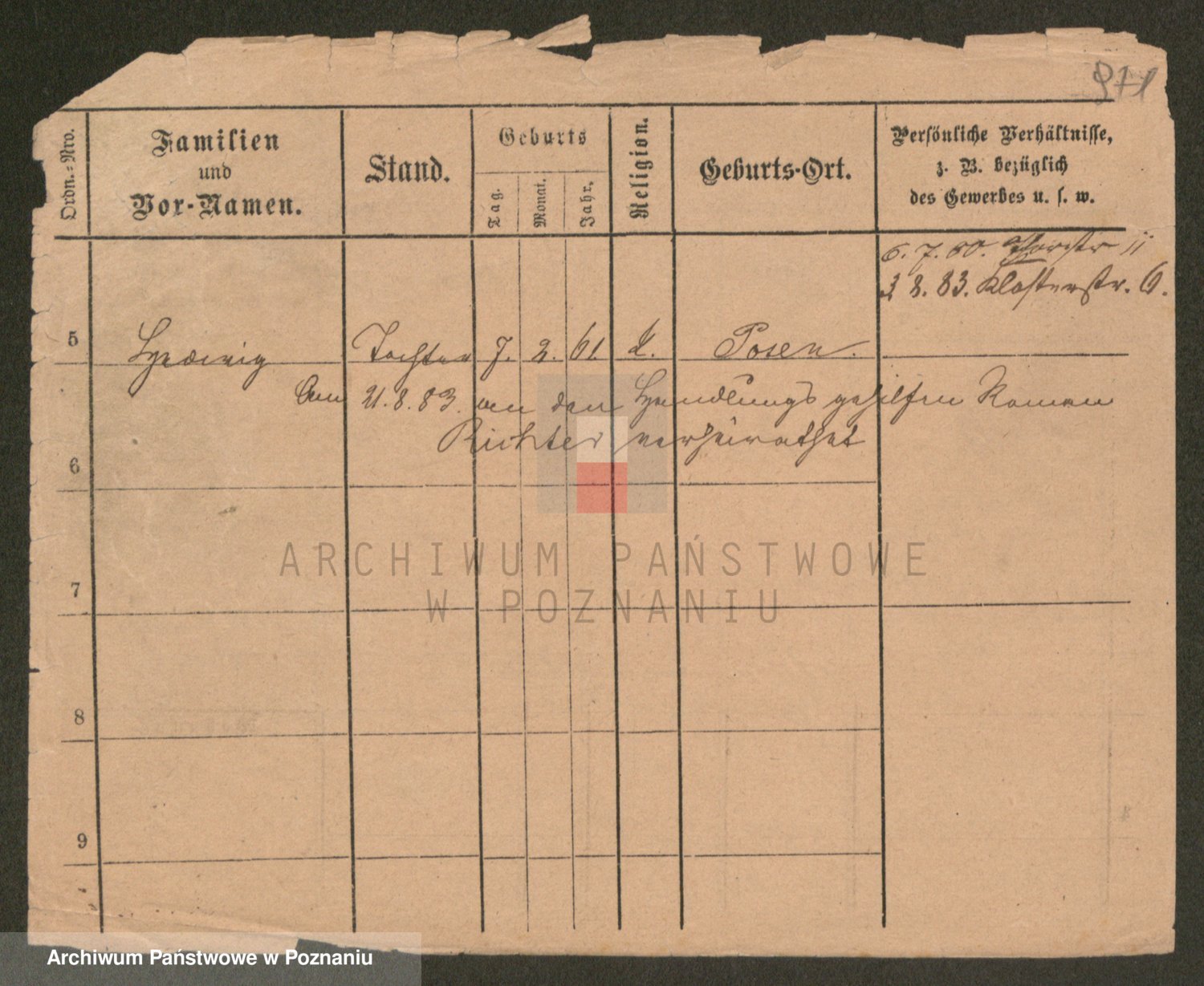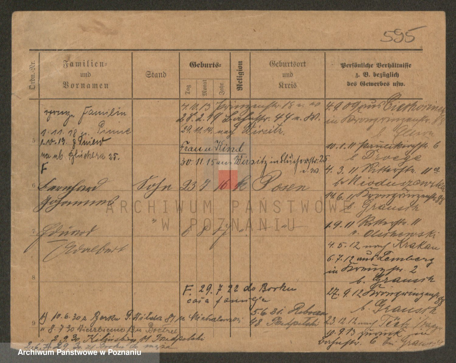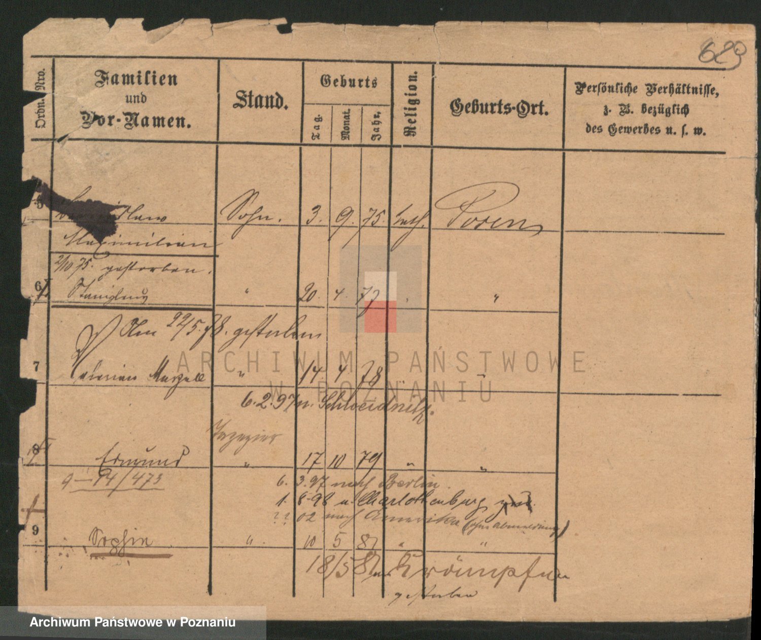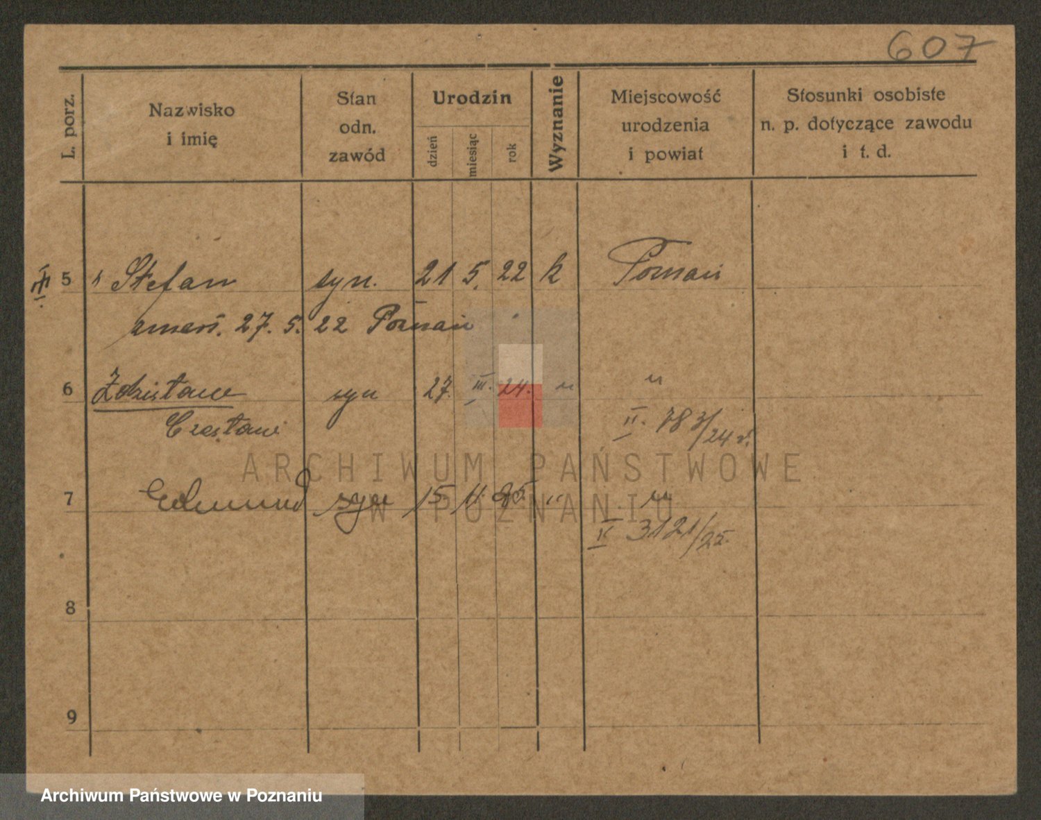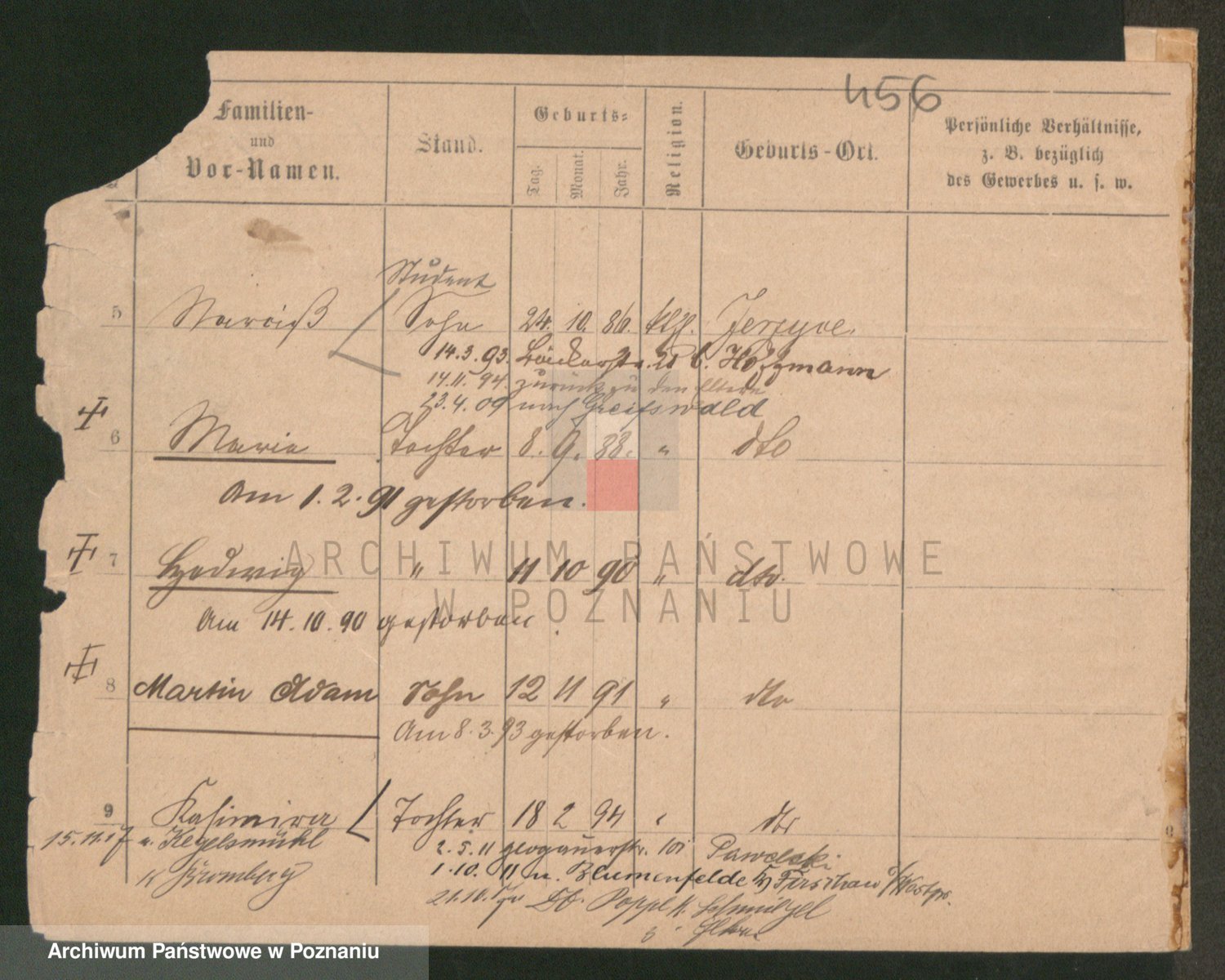 Podgląd karty osobowej dostępny jest po kliknięciu na nazwisko lub ikonkę karty. Można dokonywać powiększenia (ikony na górze) lub przechodzić między kolejnymi skanami (strzałki po bokach).