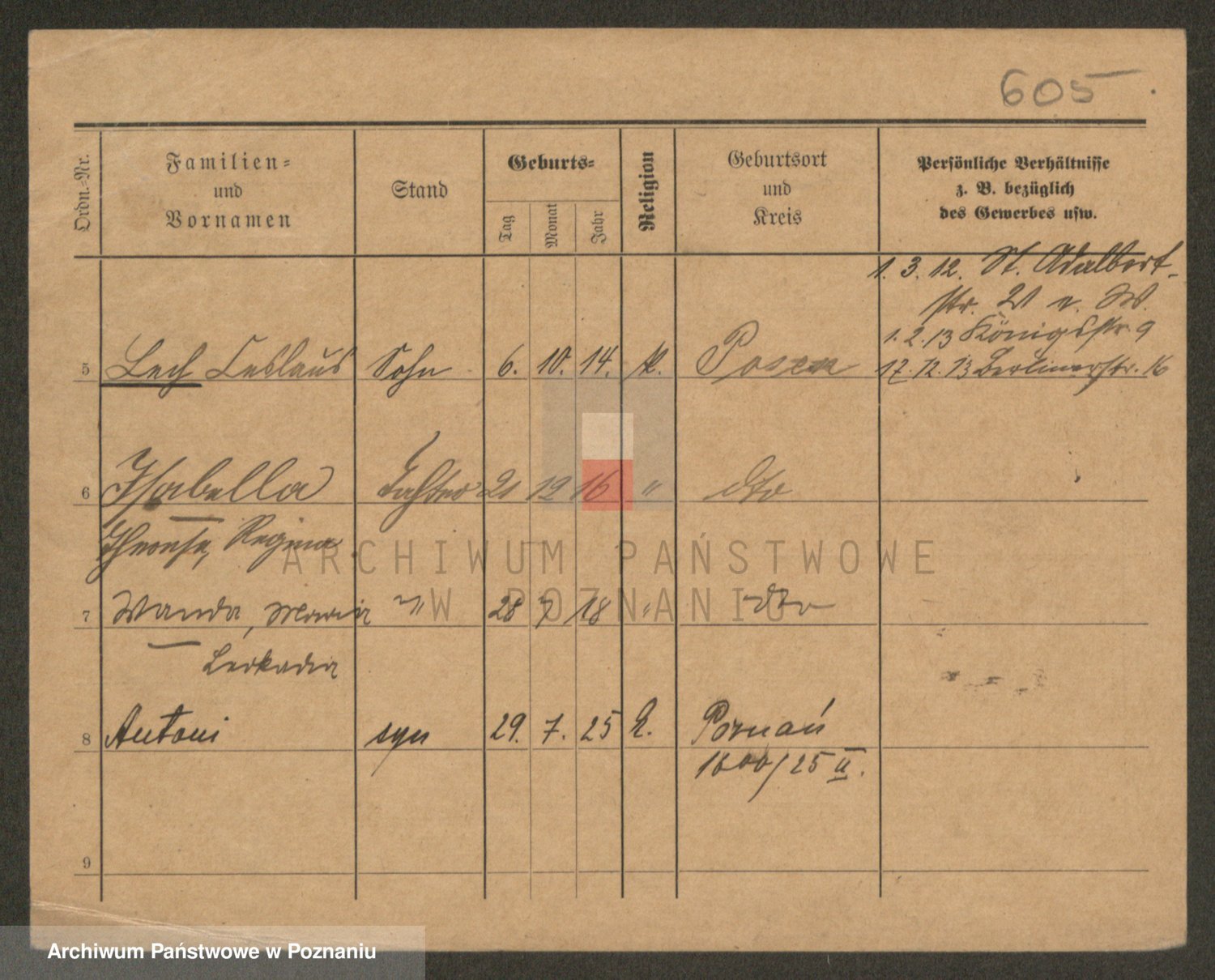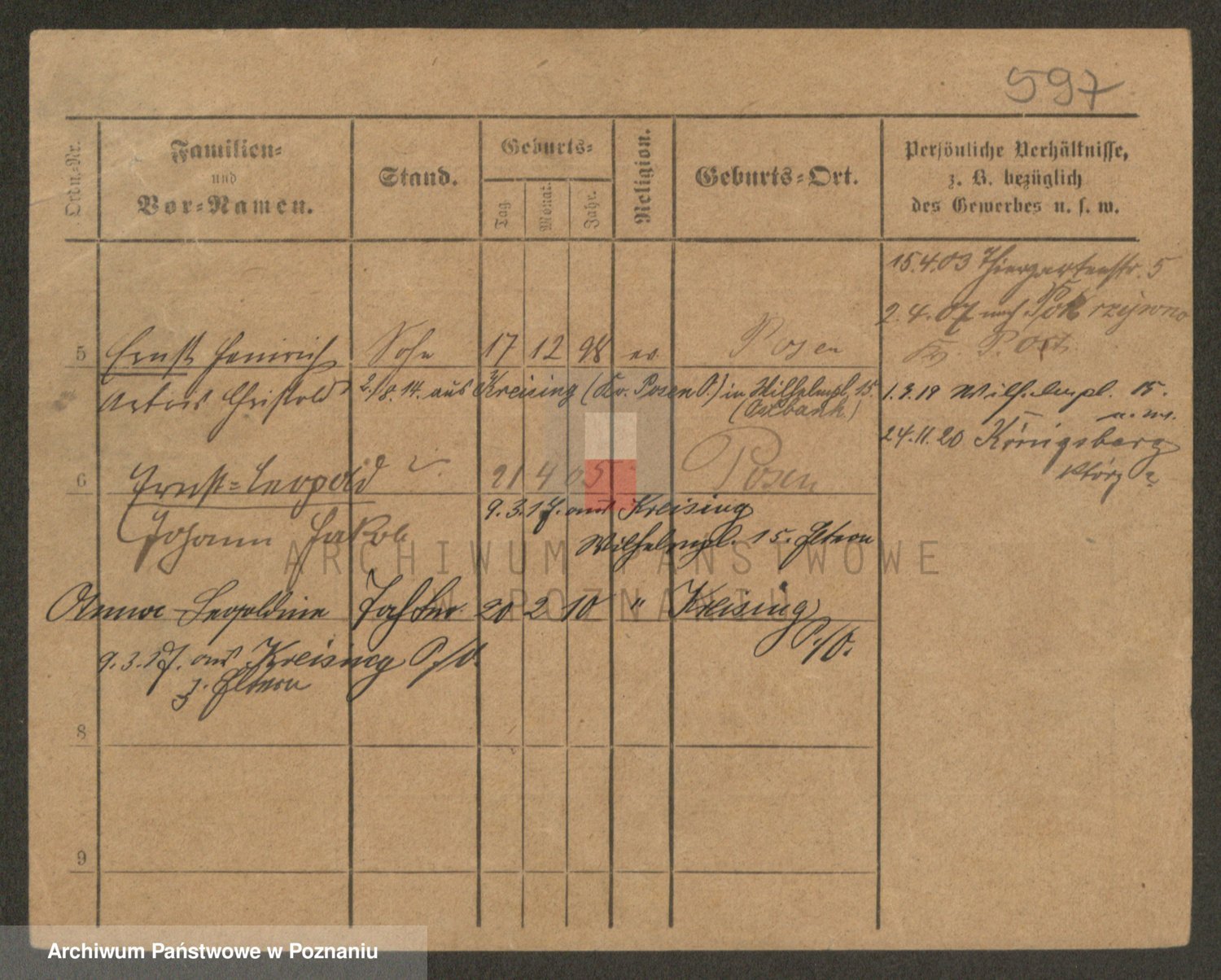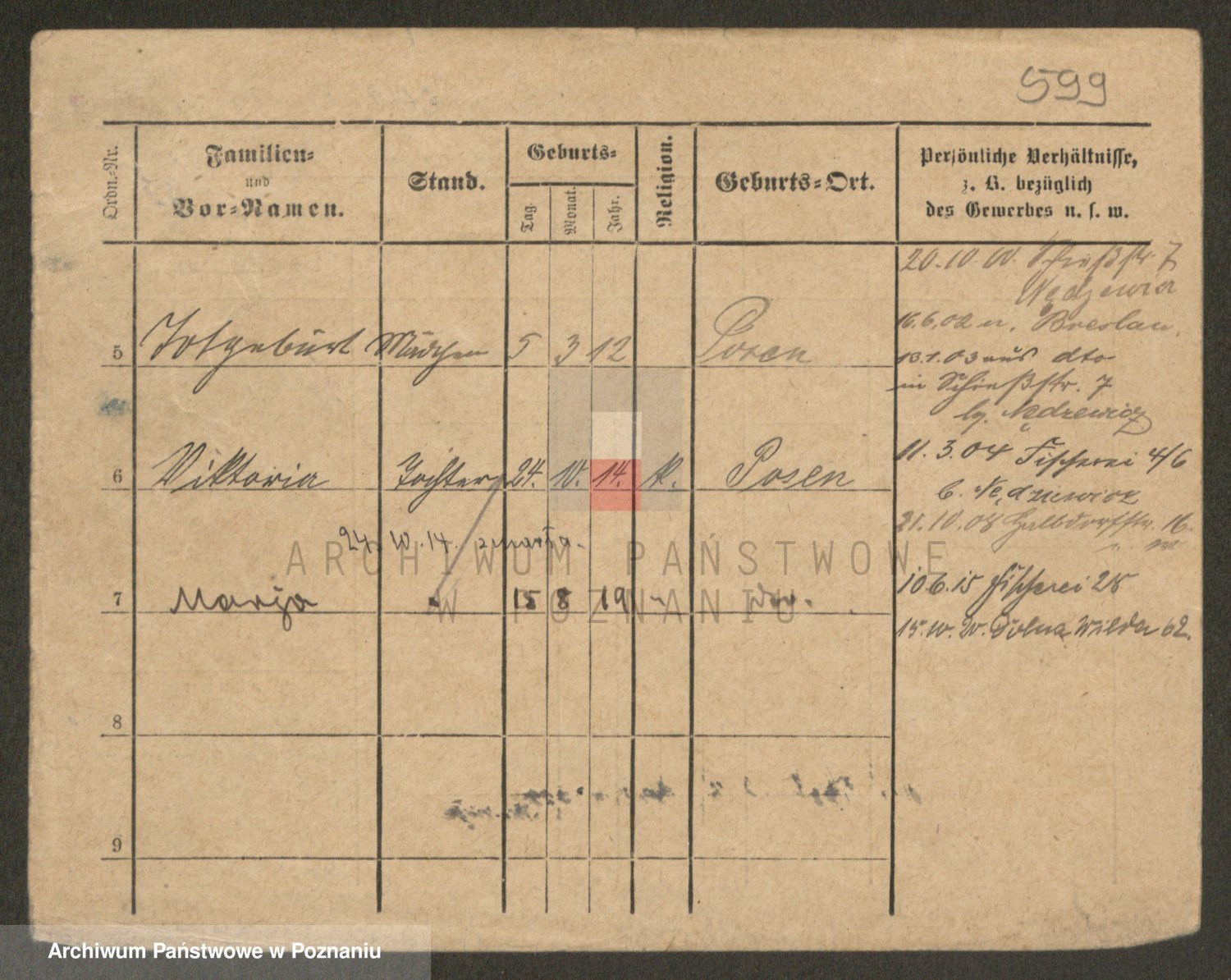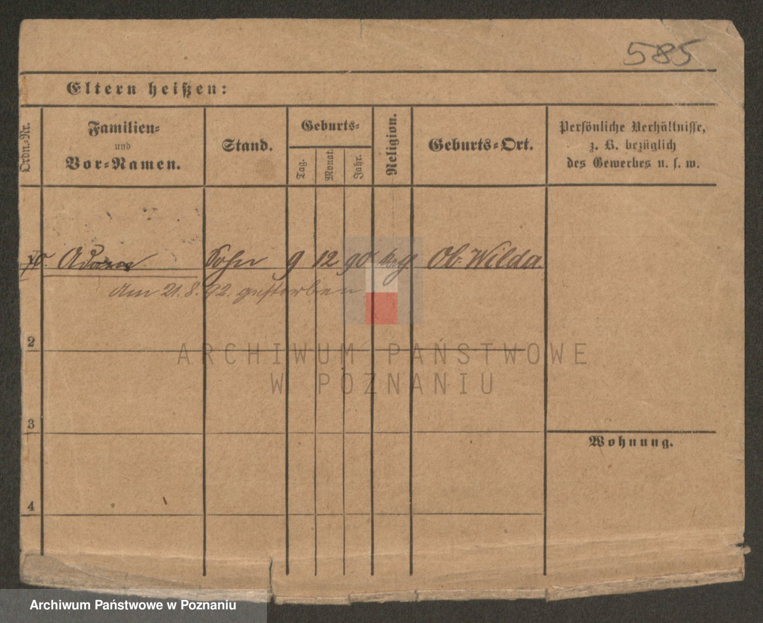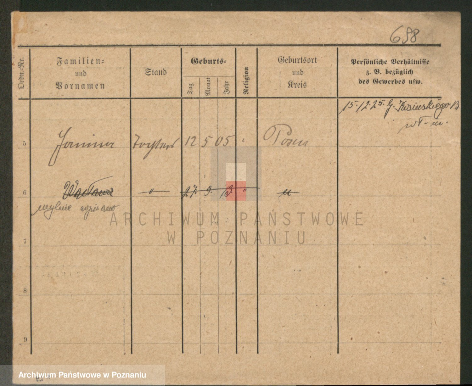 Podgląd karty osobowej dostępny jest po kliknięciu na nazwisko lub ikonkę karty. Można dokonywać powiększenia (ikony na górze) lub przechodzić między kolejnymi skanami (strzałki po bokach).
