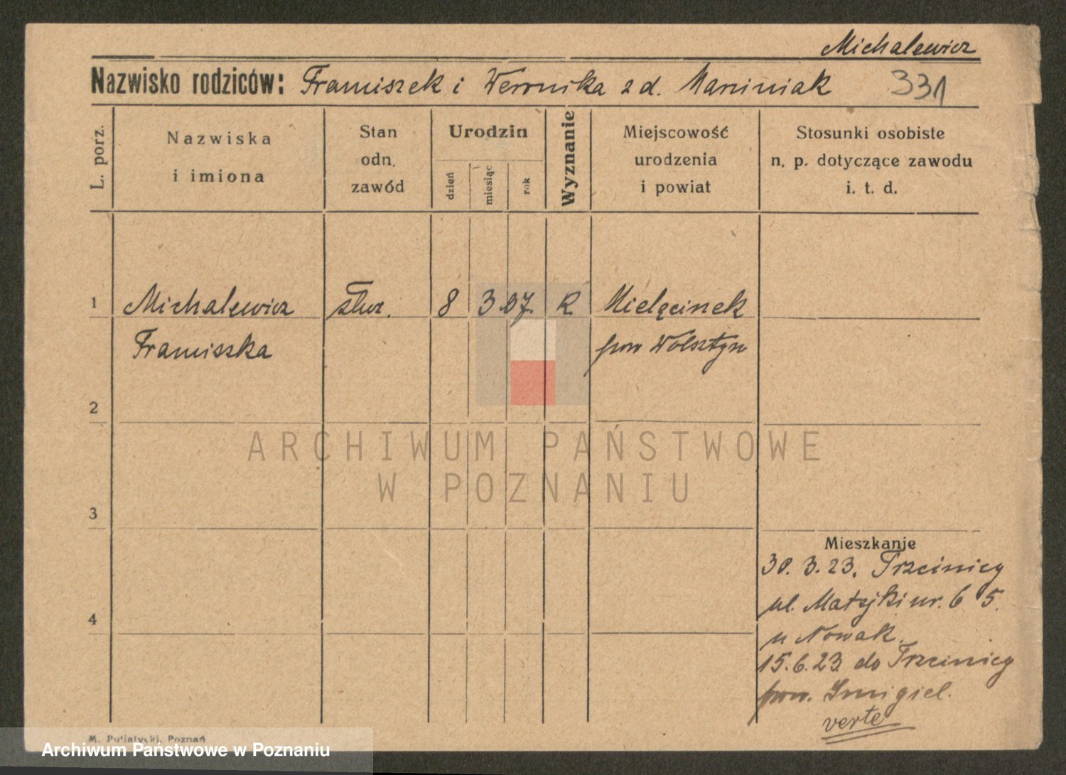 Michalczak zd. Sobkowiak, Franciszka