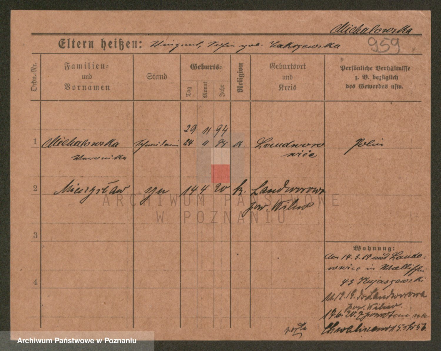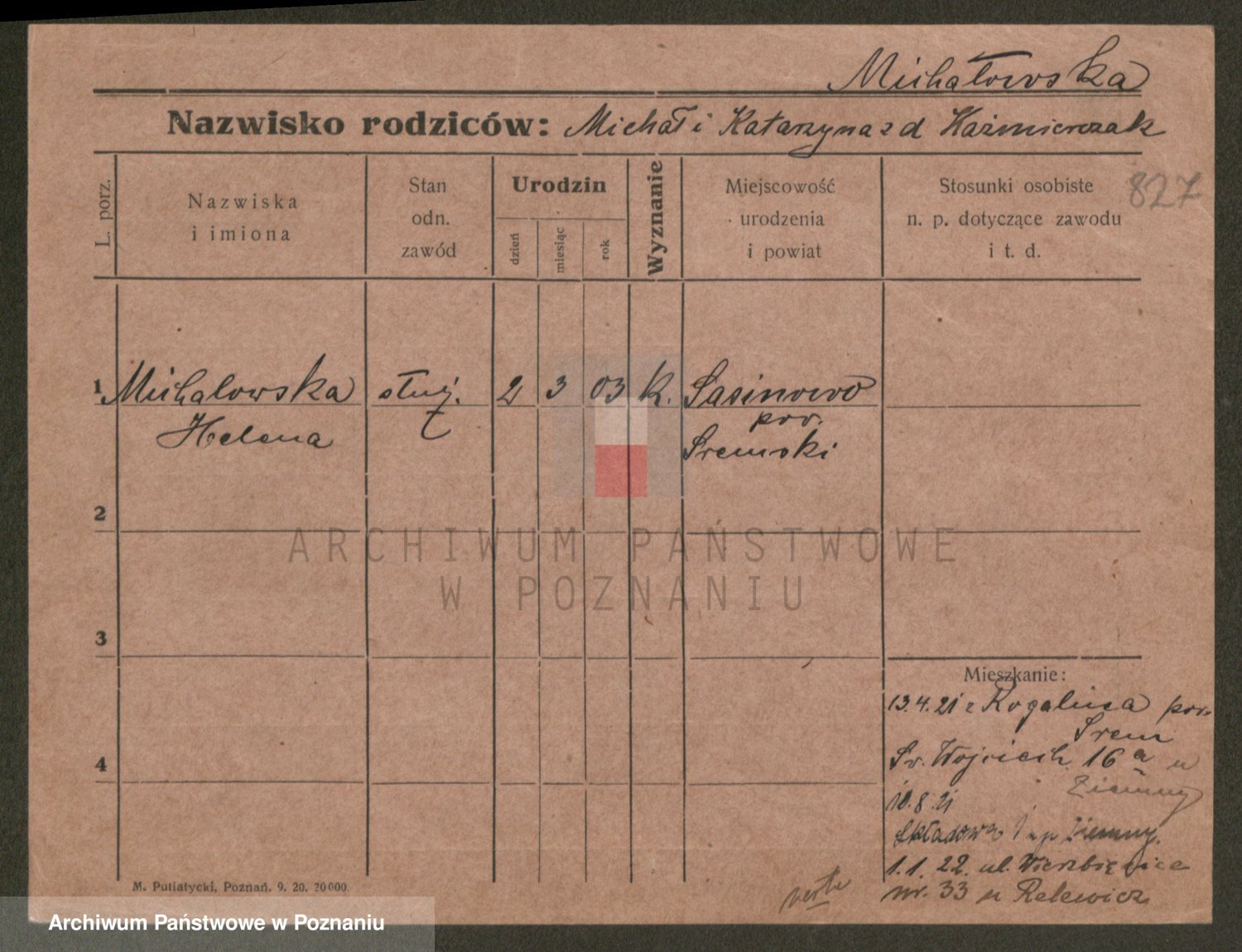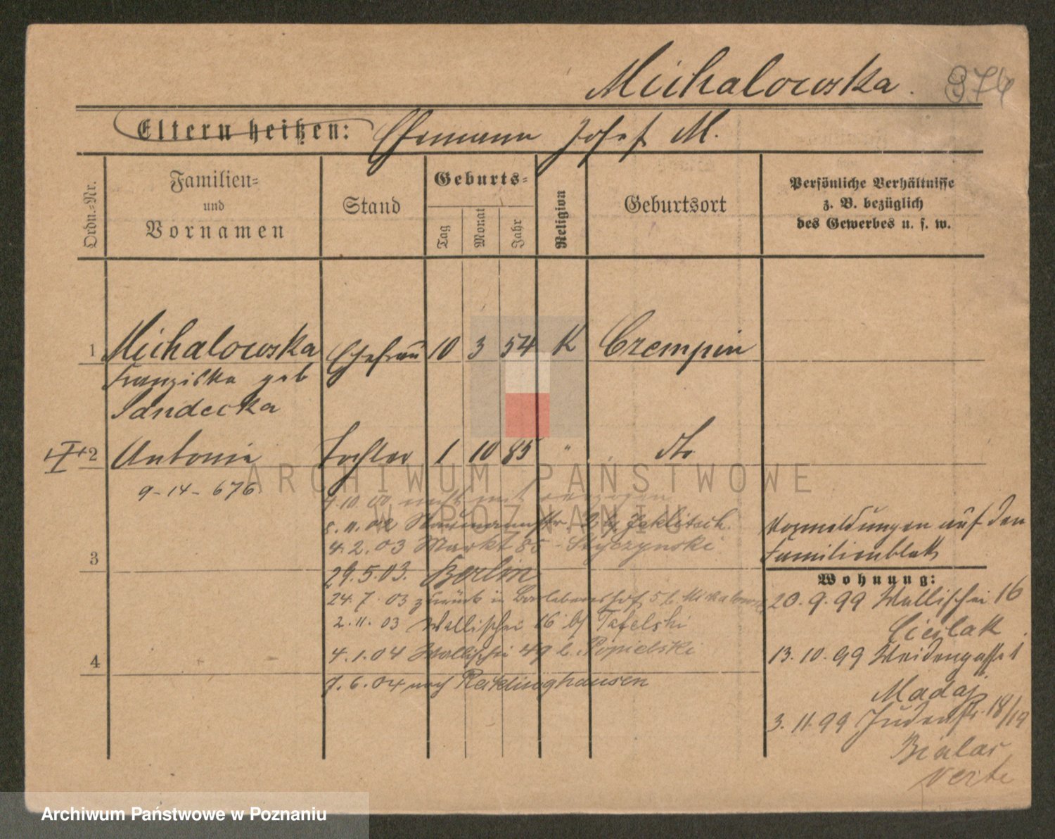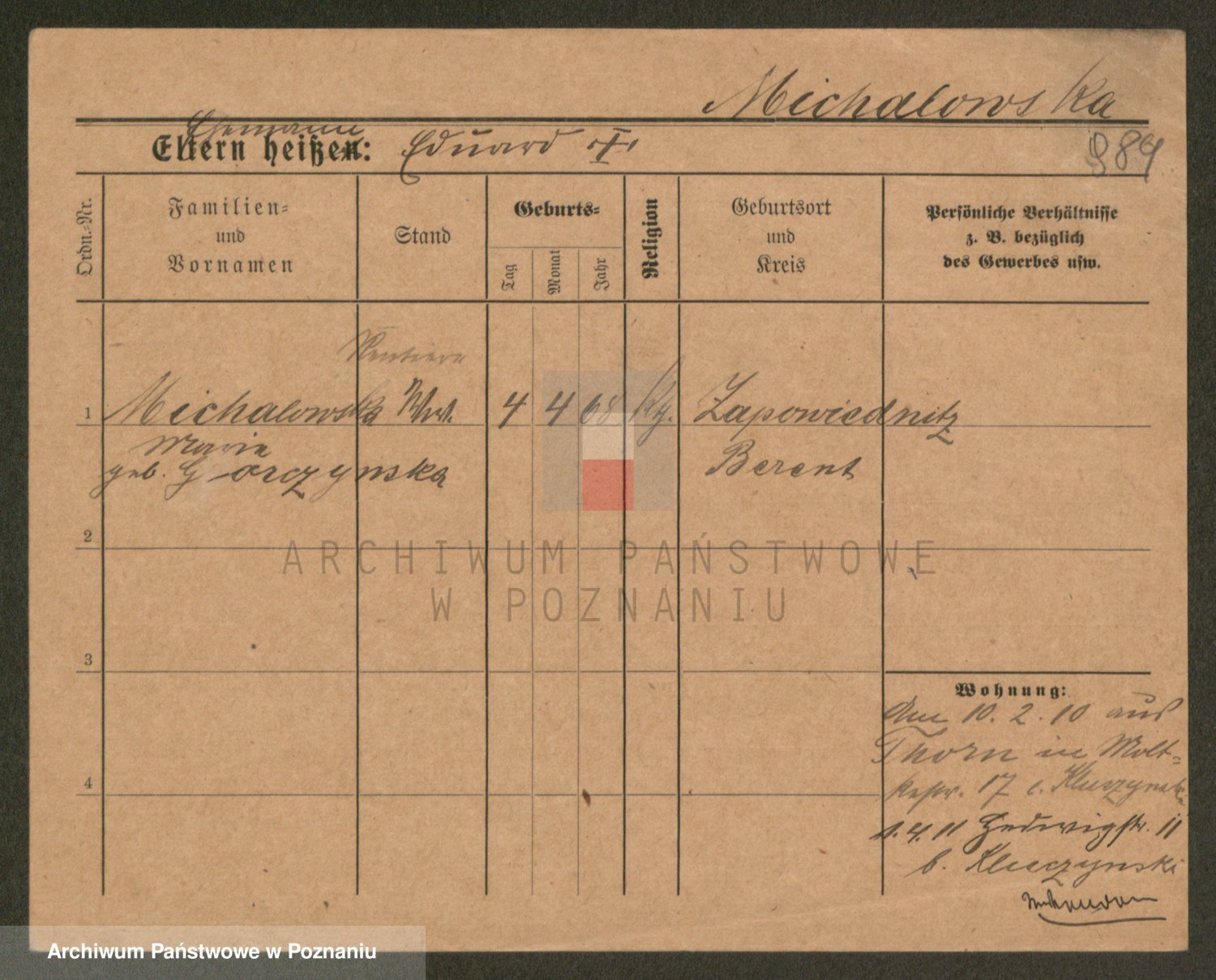 Michalowska zd. Budzyn, Katharina