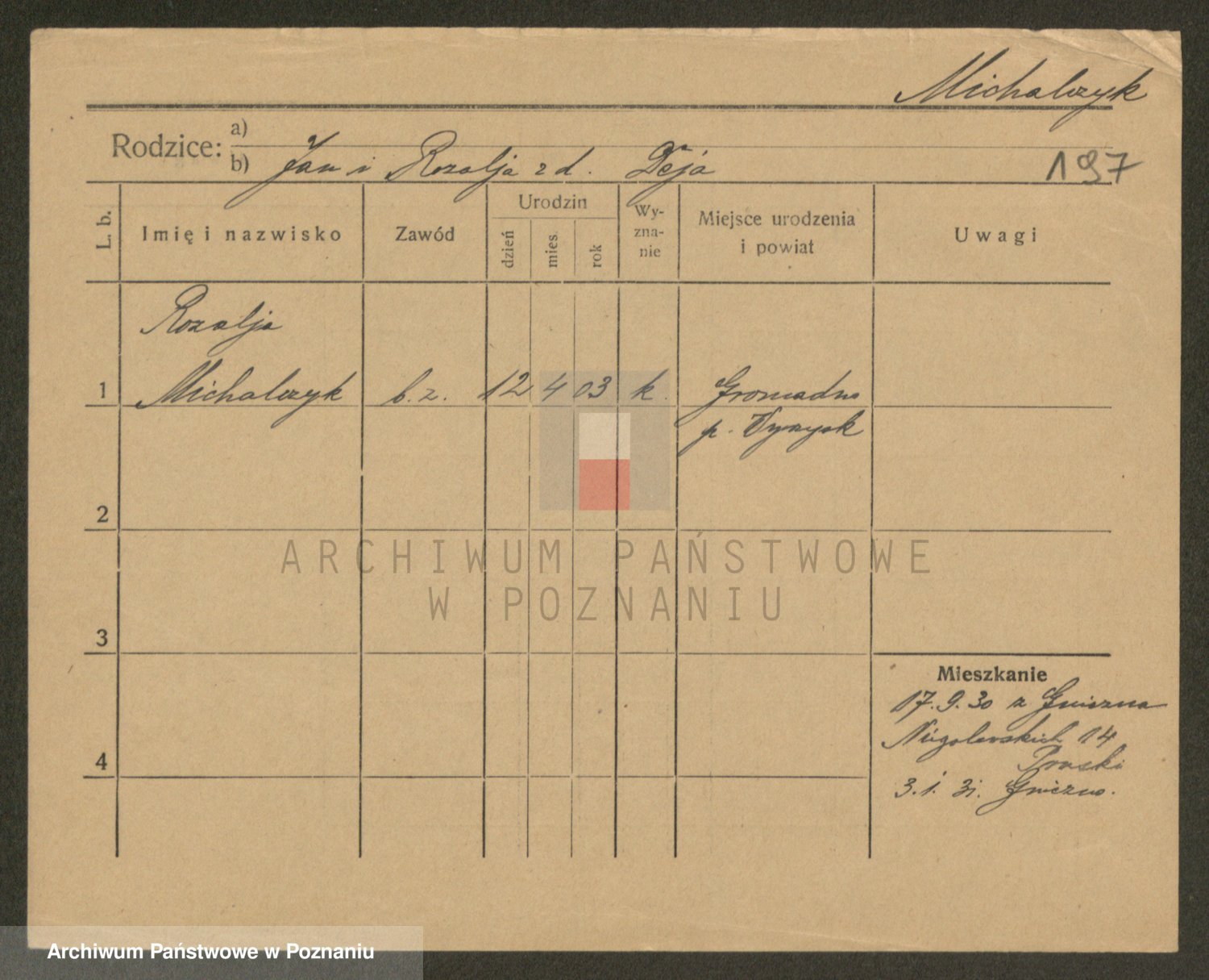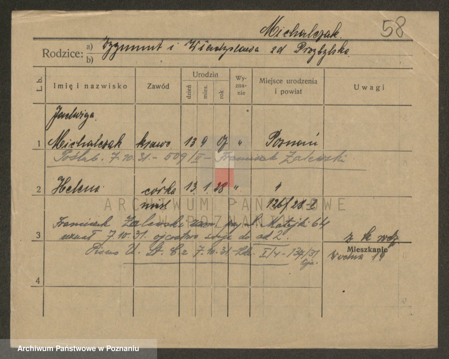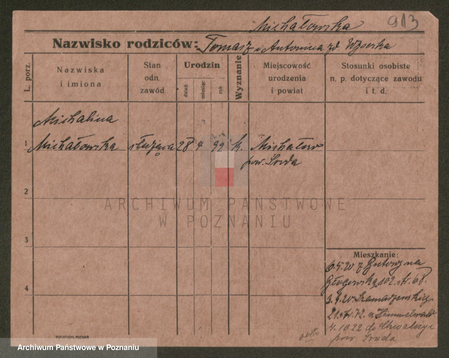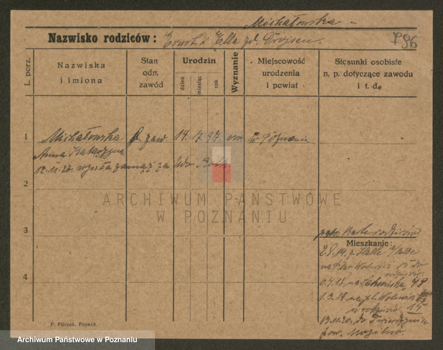 Michalczak zd. Dluzynska, Marie