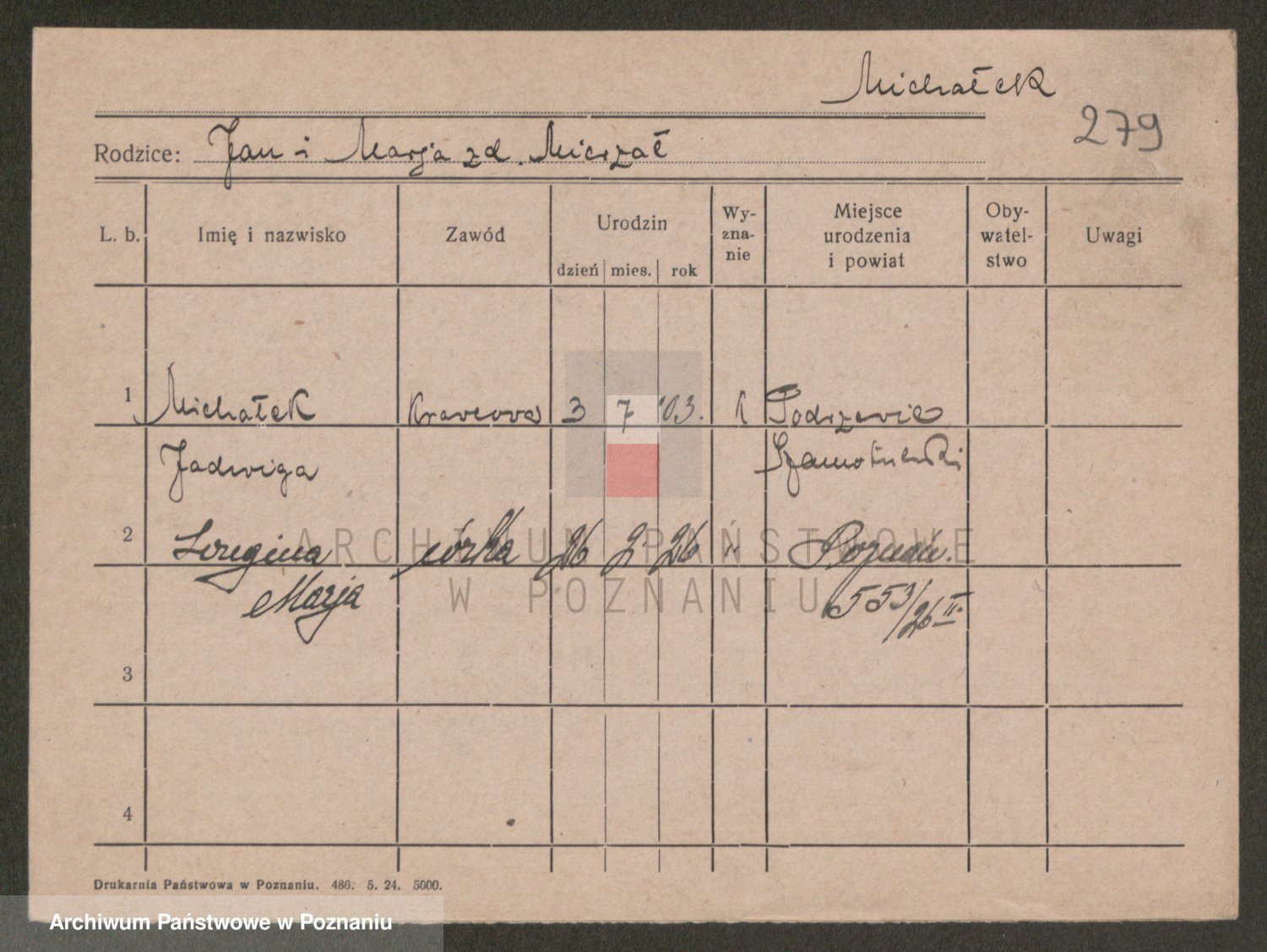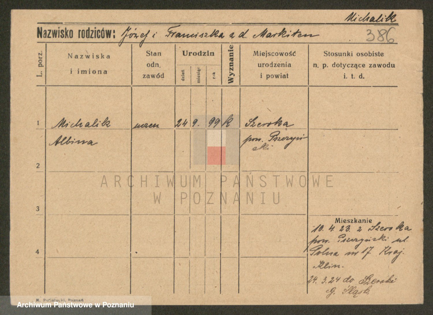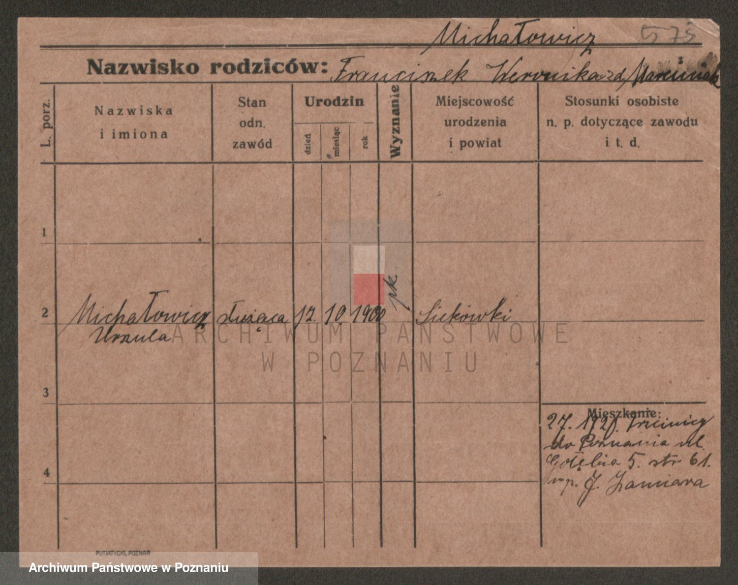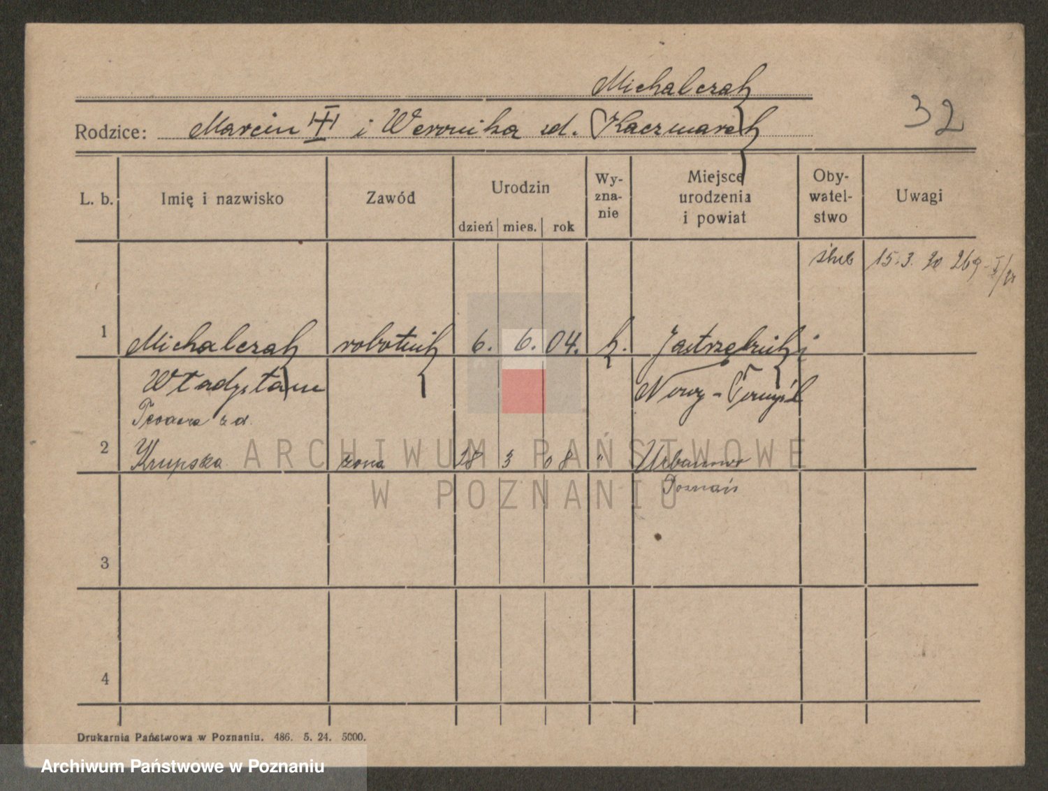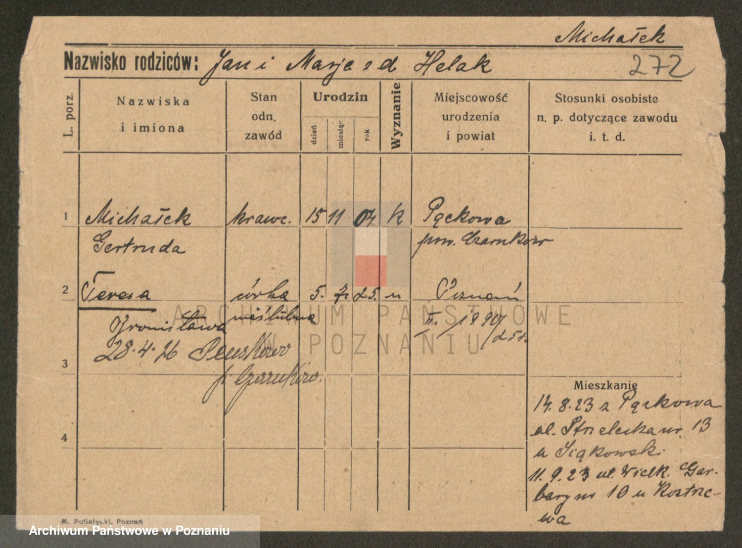 Michalczak zd. Dluzynska, Marie