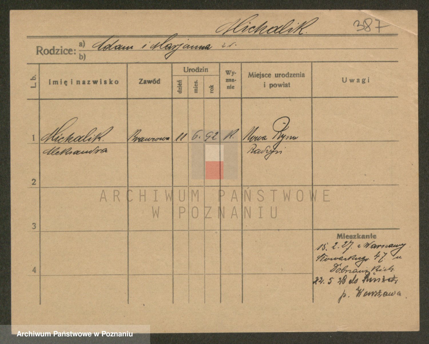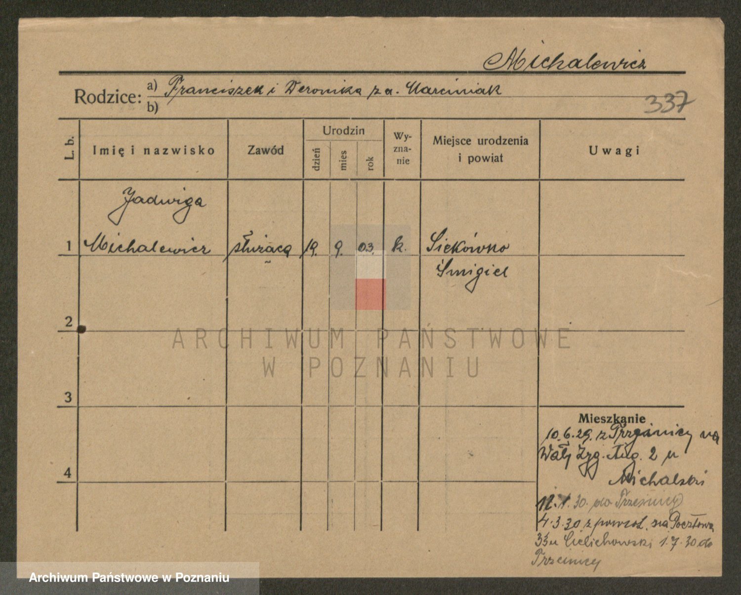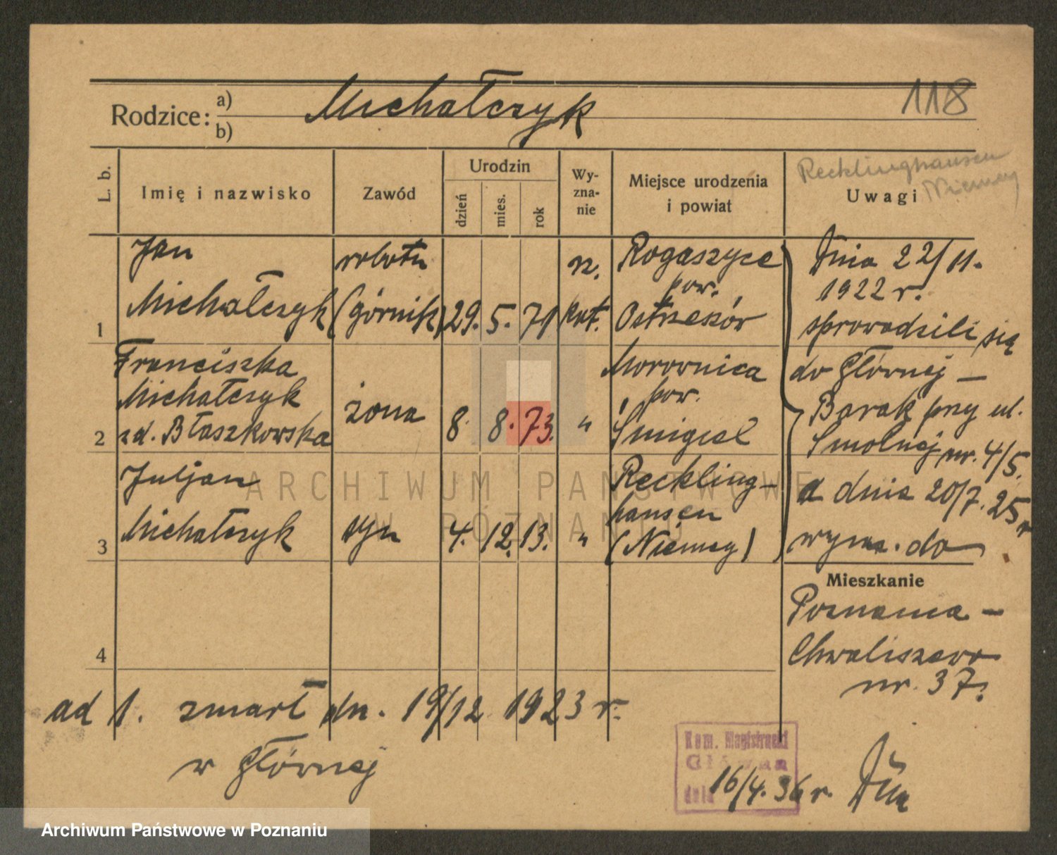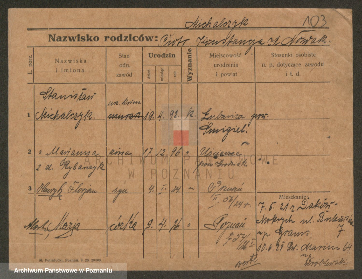 Michalczak zd. Dluzynska, Marie