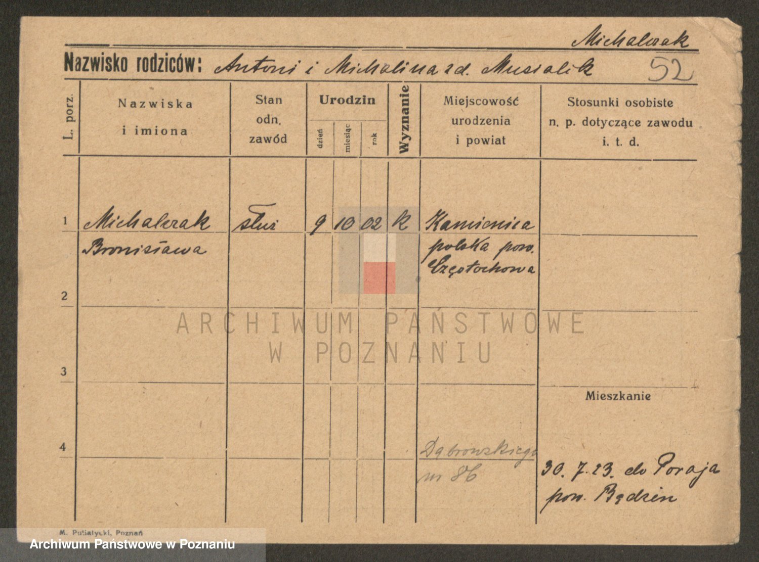 Michalczak zd. Dominiak, Stanisława