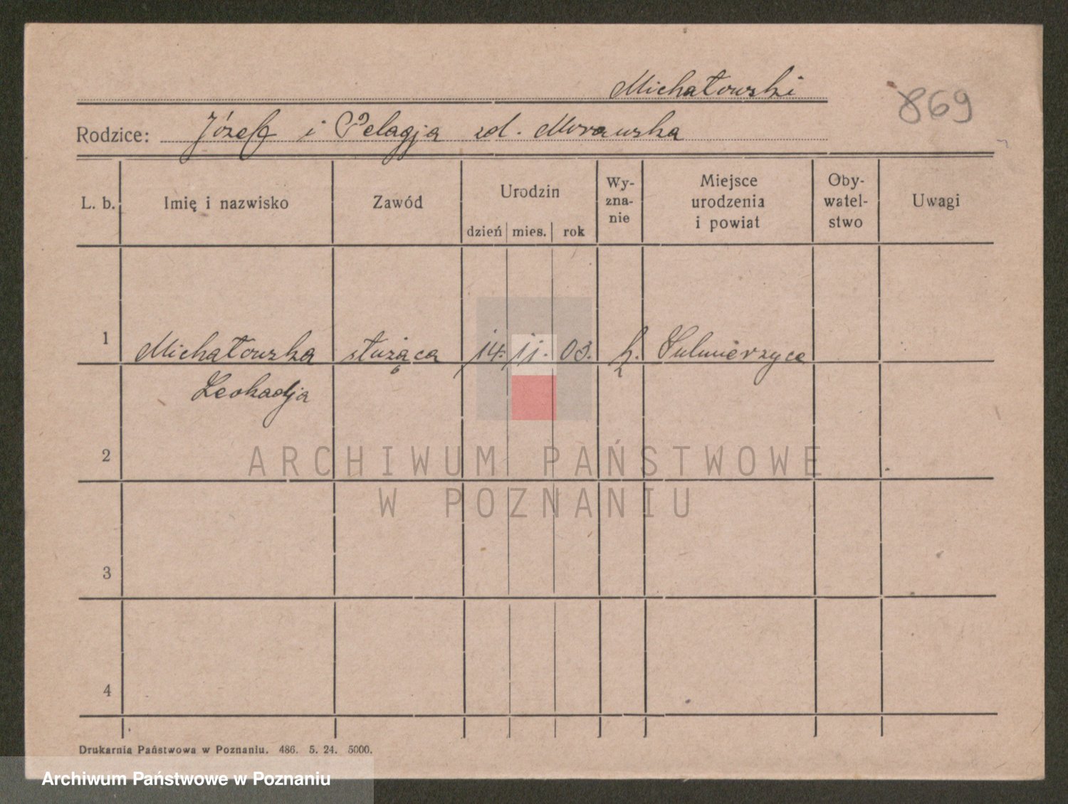 Michalczak zd. Napierała, Pelagja