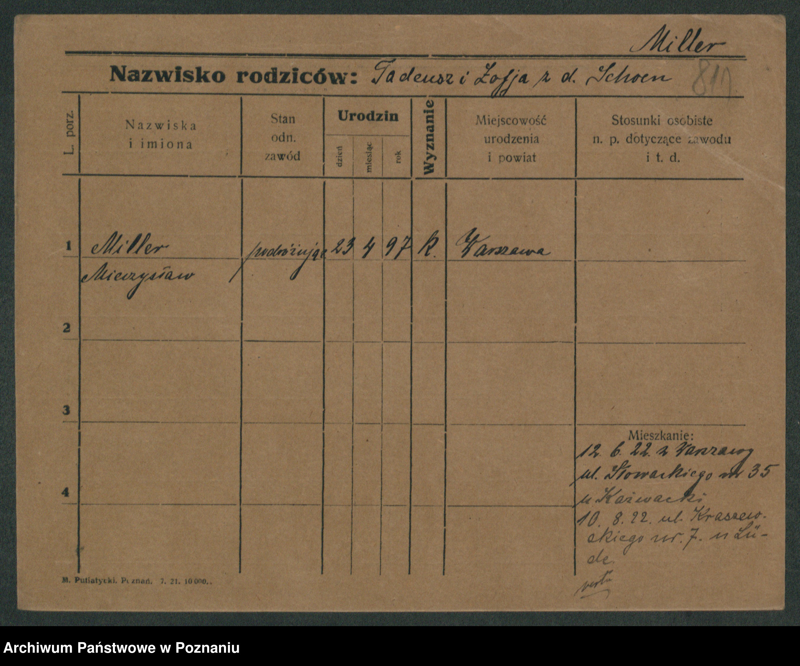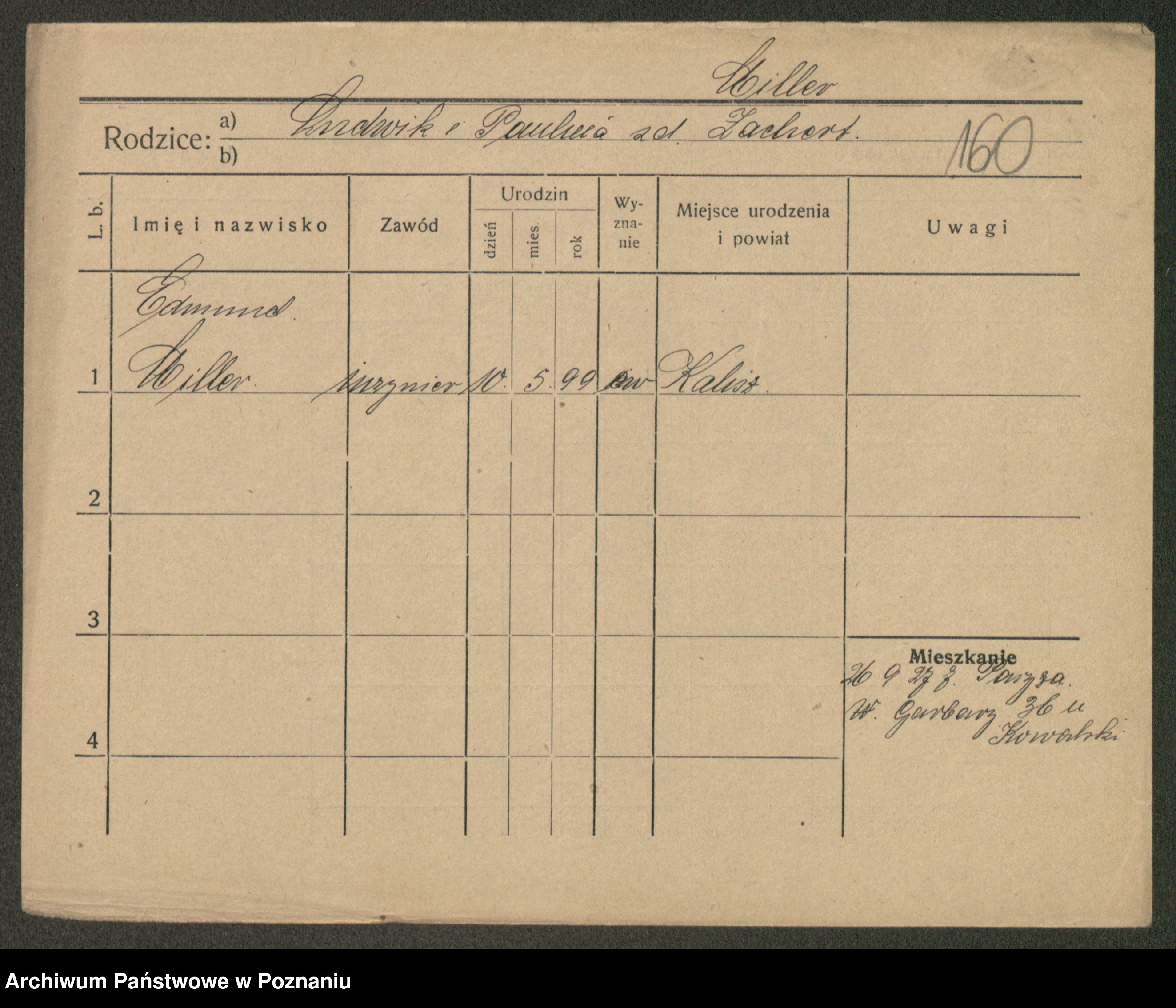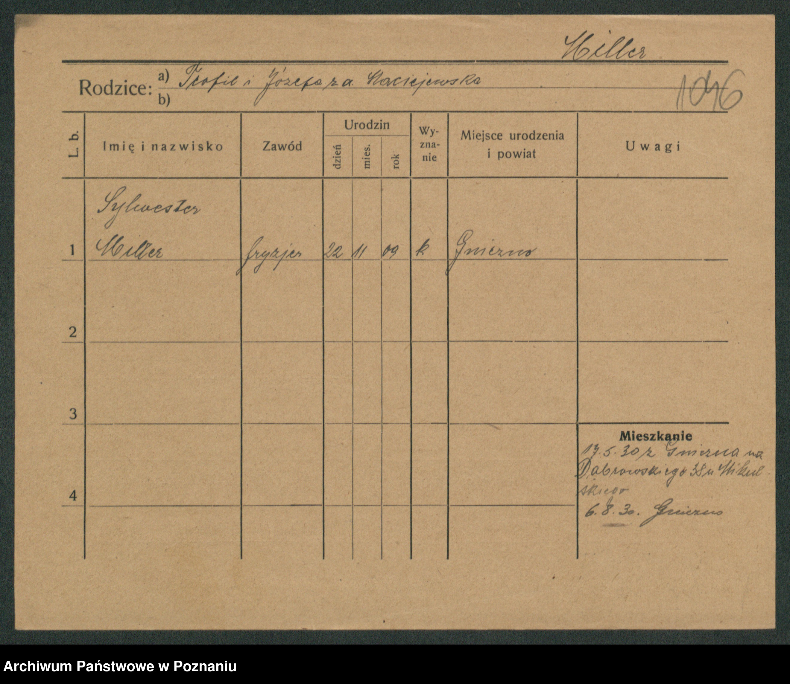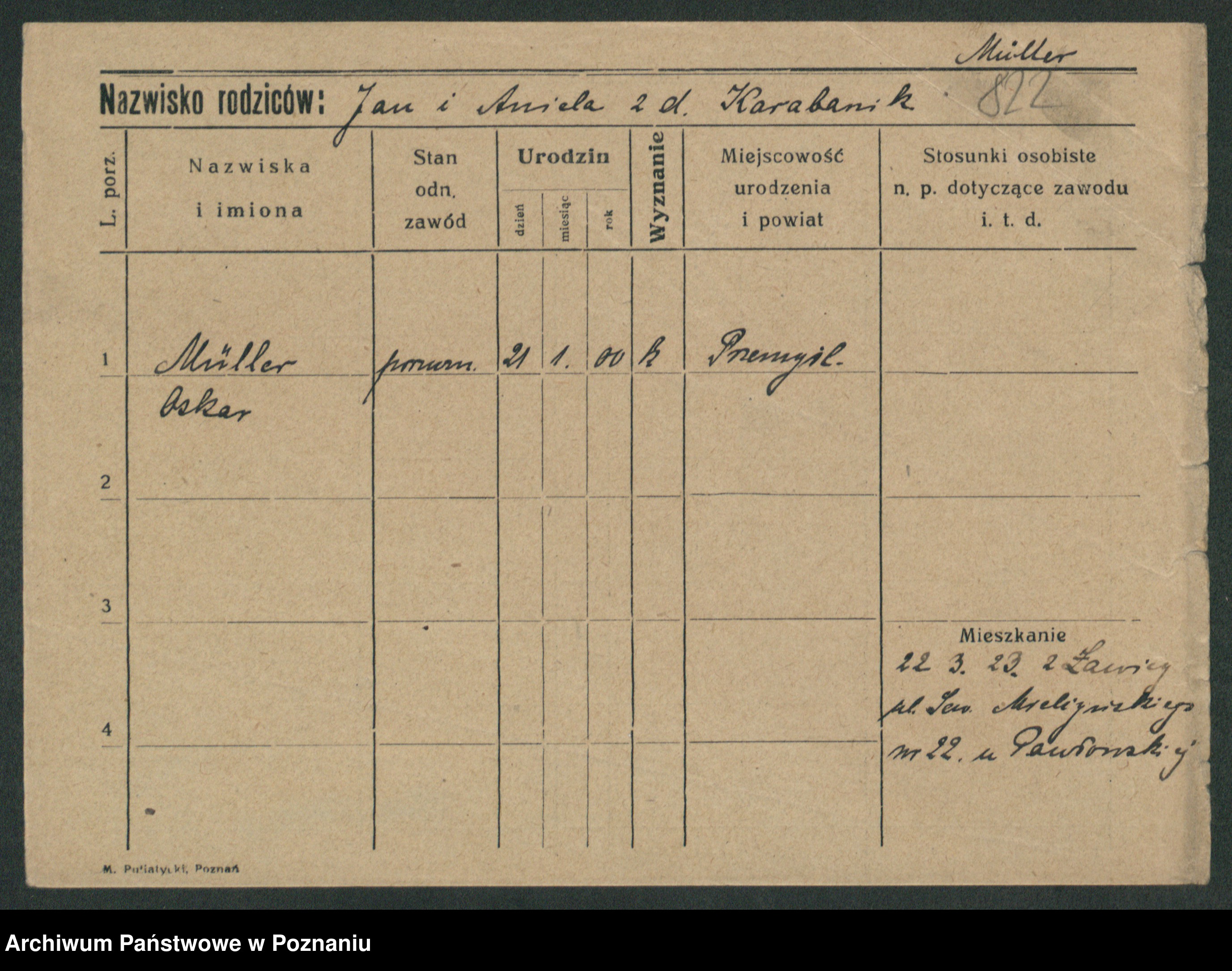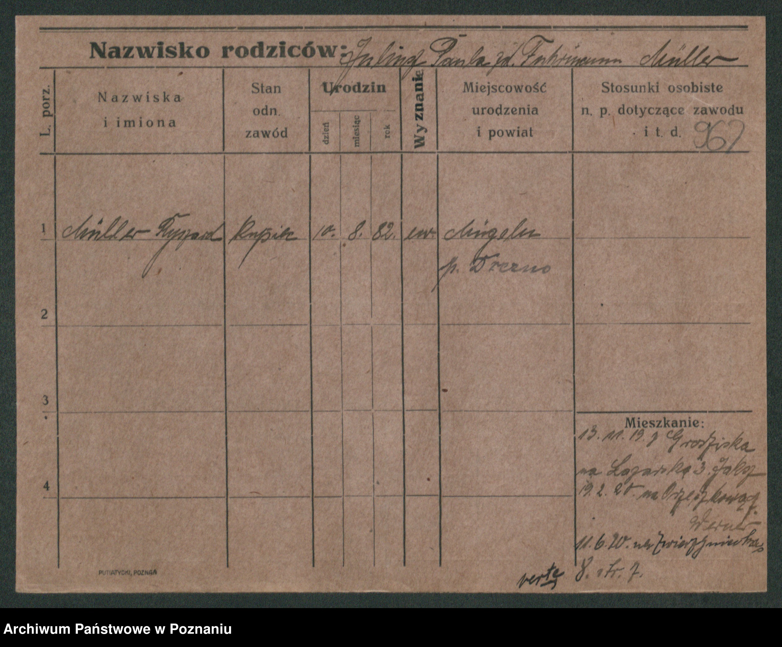 Podgląd karty osobowej dostępny jest po kliknięciu na nazwisko lub ikonkę karty. Można dokonywać powiększenia (ikony na górze) lub przechodzić między kolejnymi skanami (strzałki po bokach).