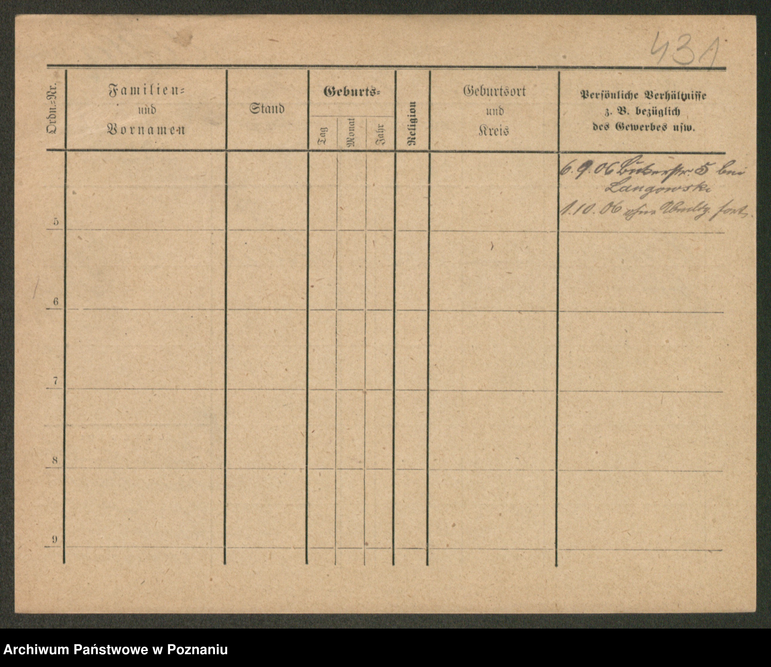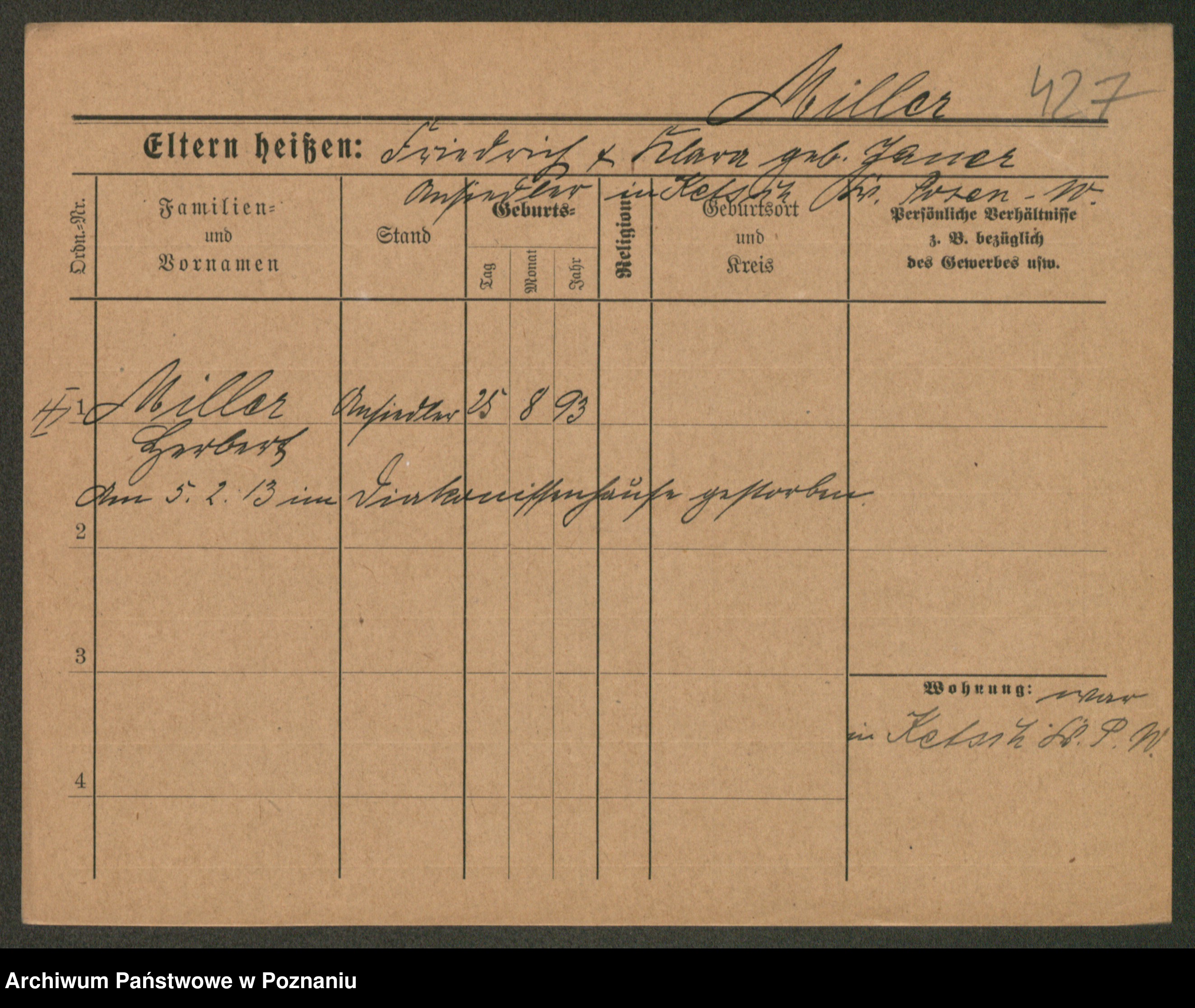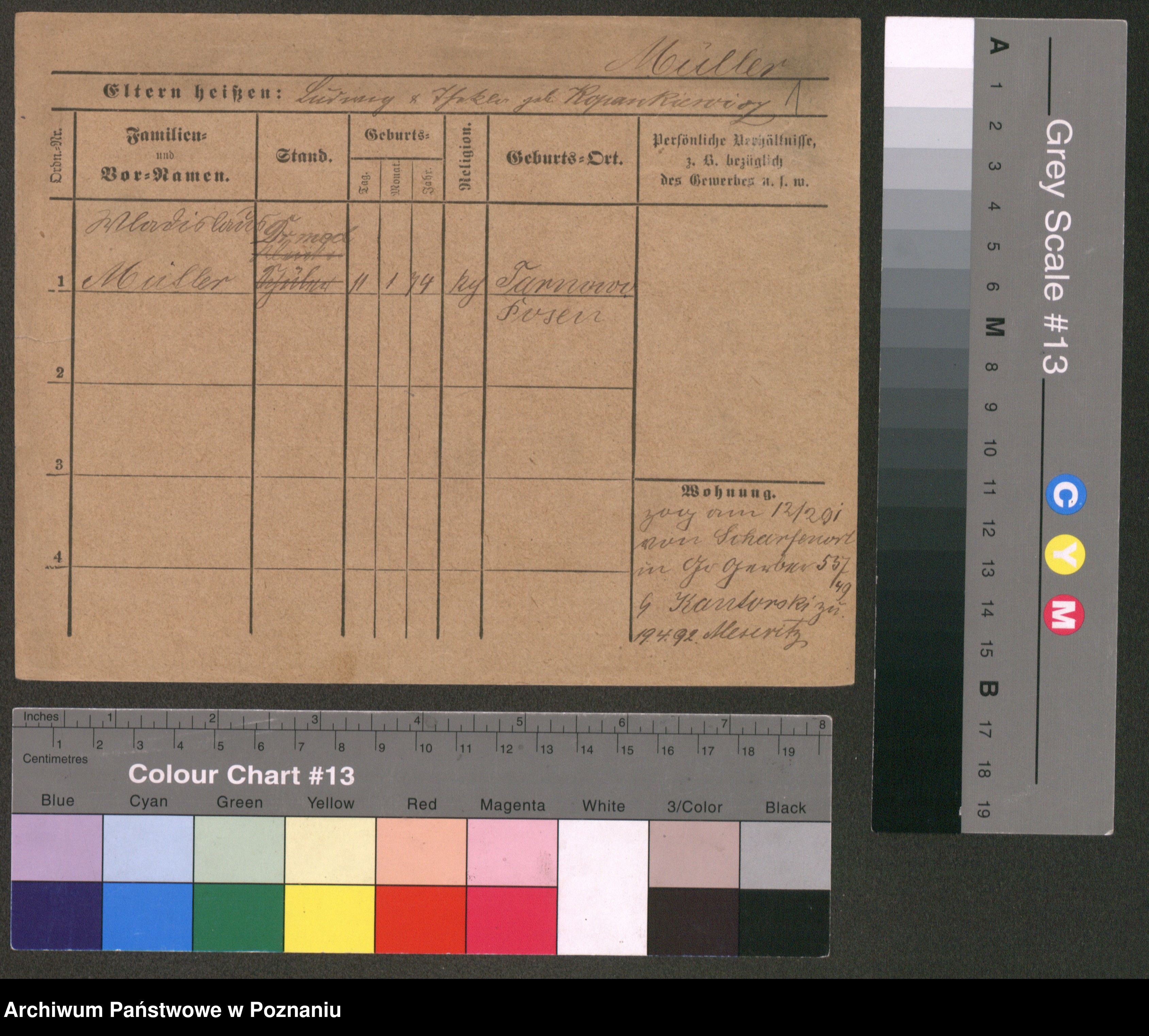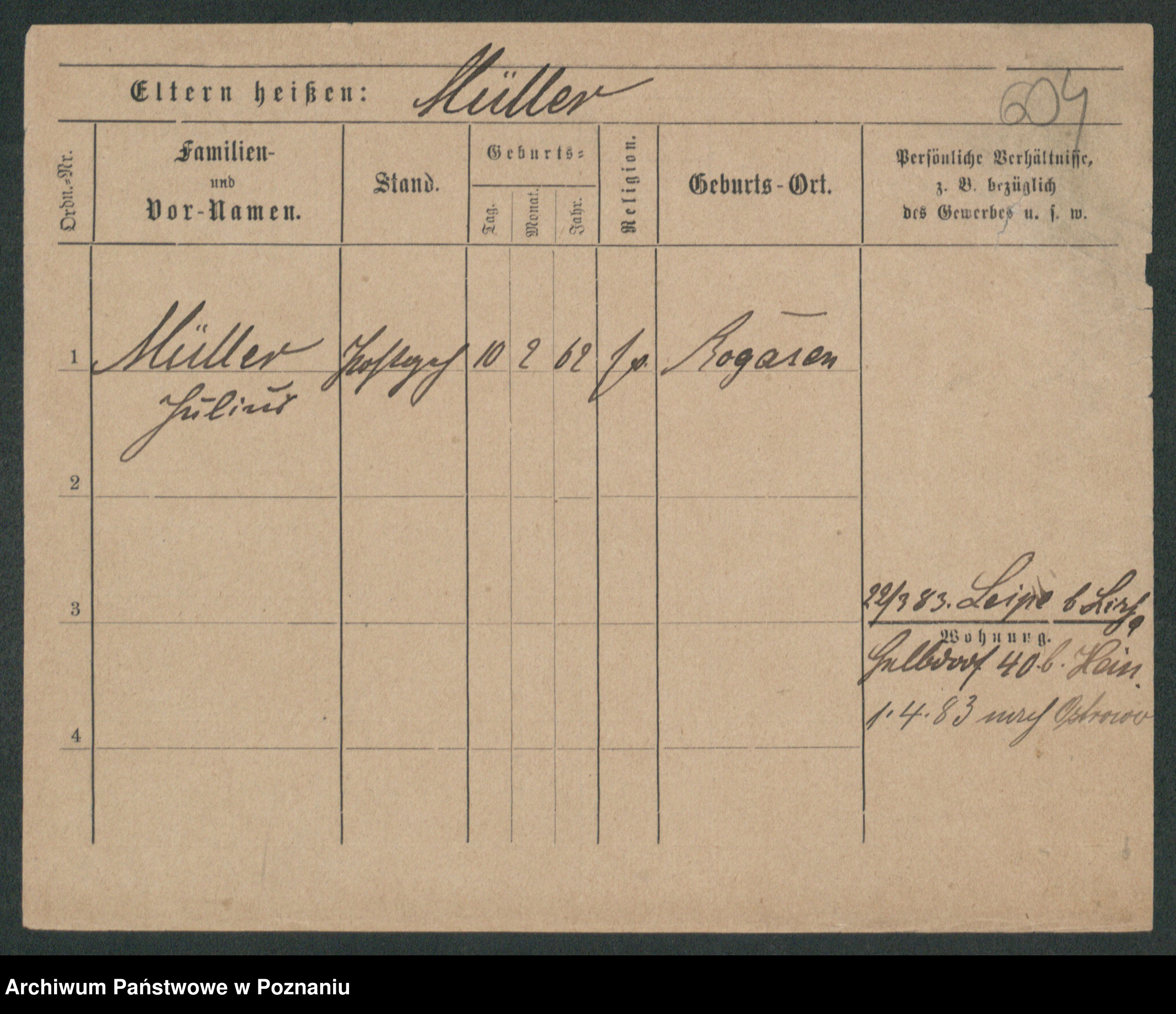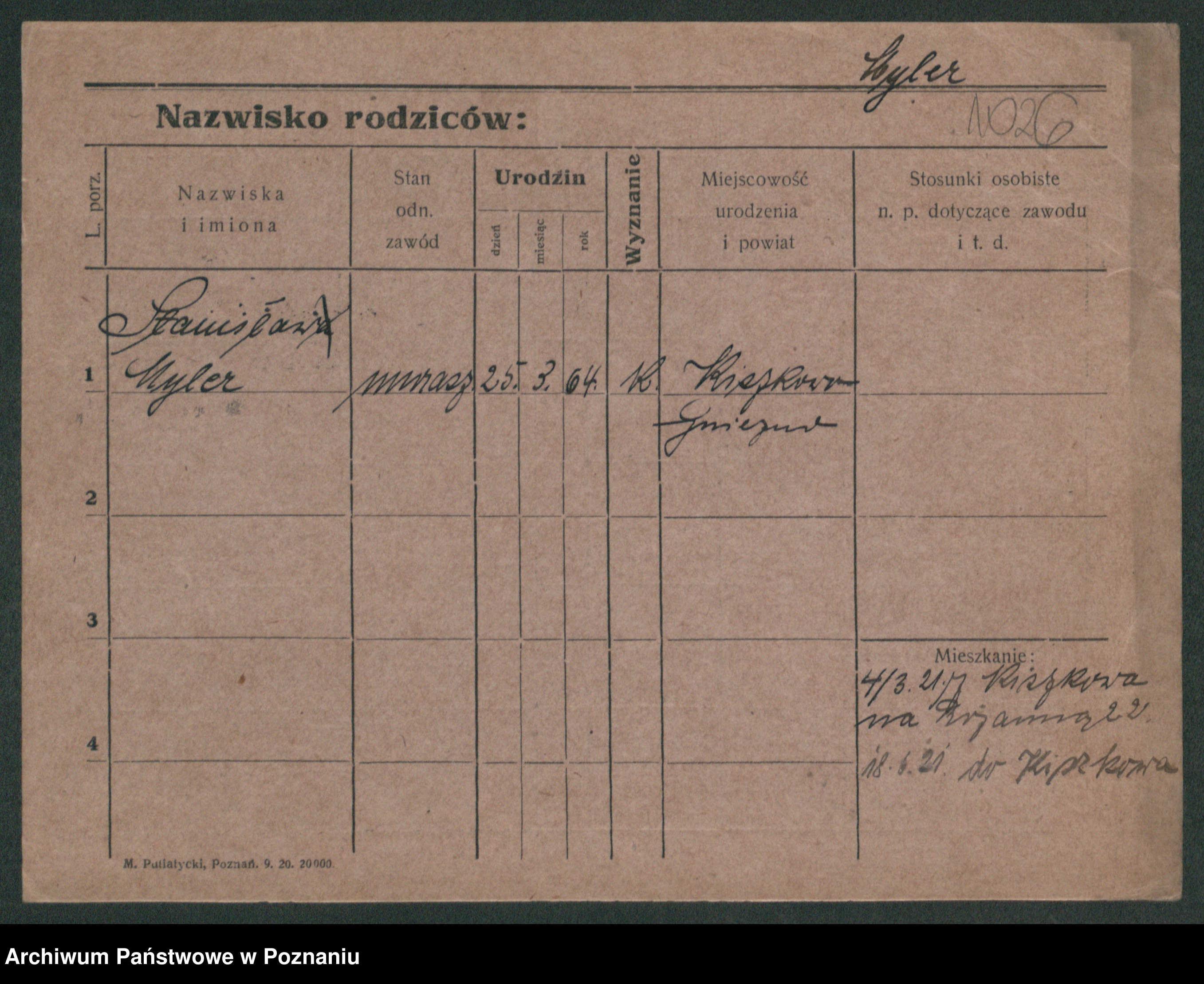 Podgląd karty osobowej dostępny jest po kliknięciu na nazwisko lub ikonkę karty. Można dokonywać powiększenia (ikony na górze) lub przechodzić między kolejnymi skanami (strzałki po bokach).