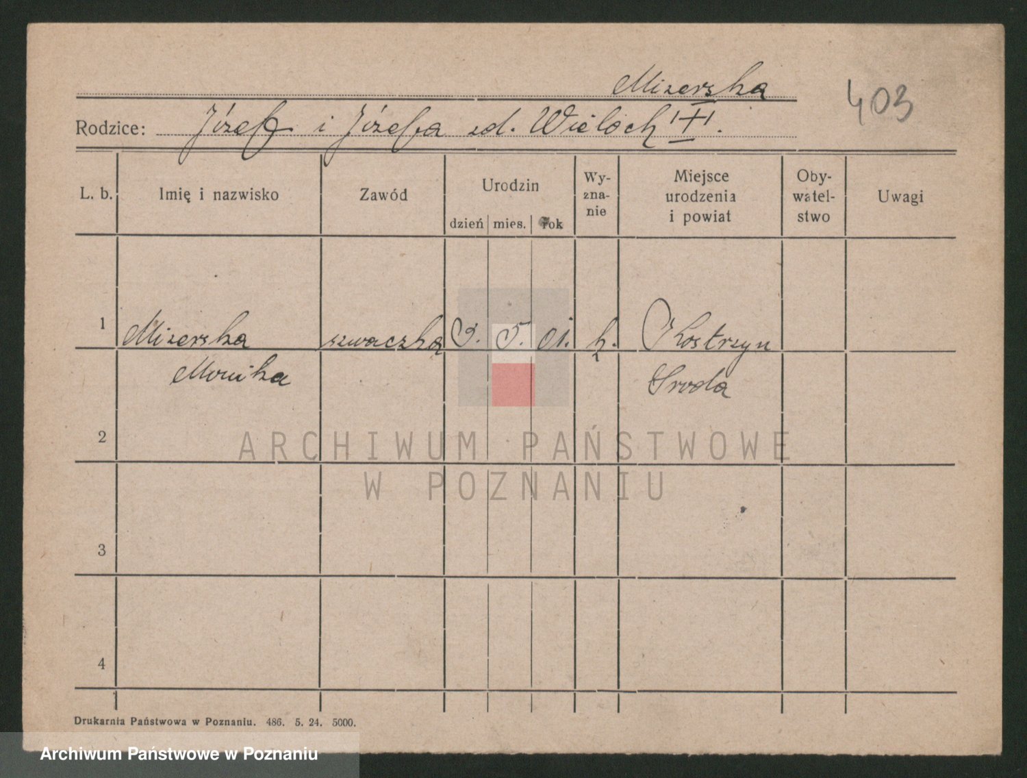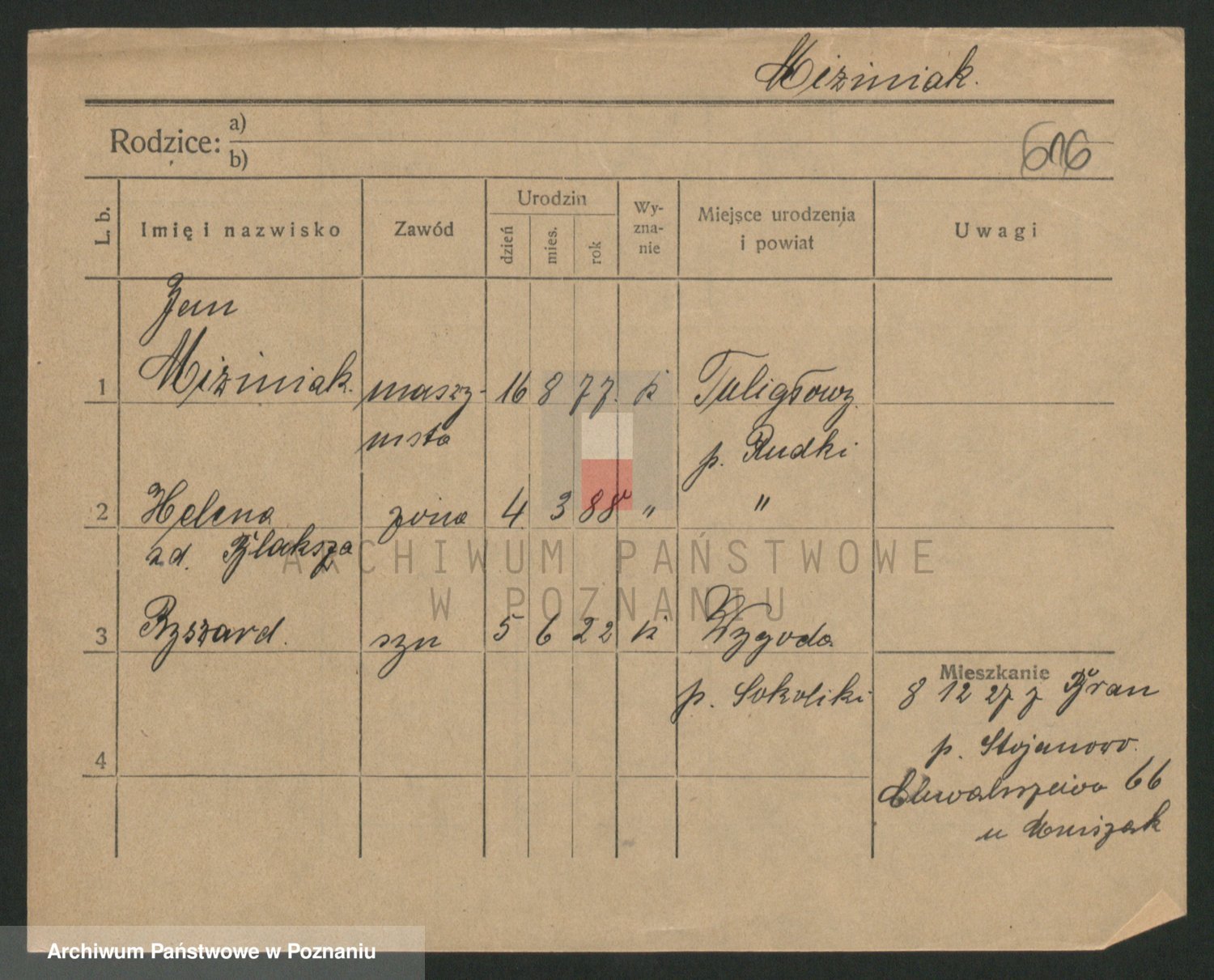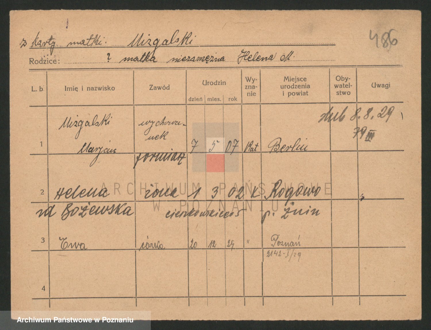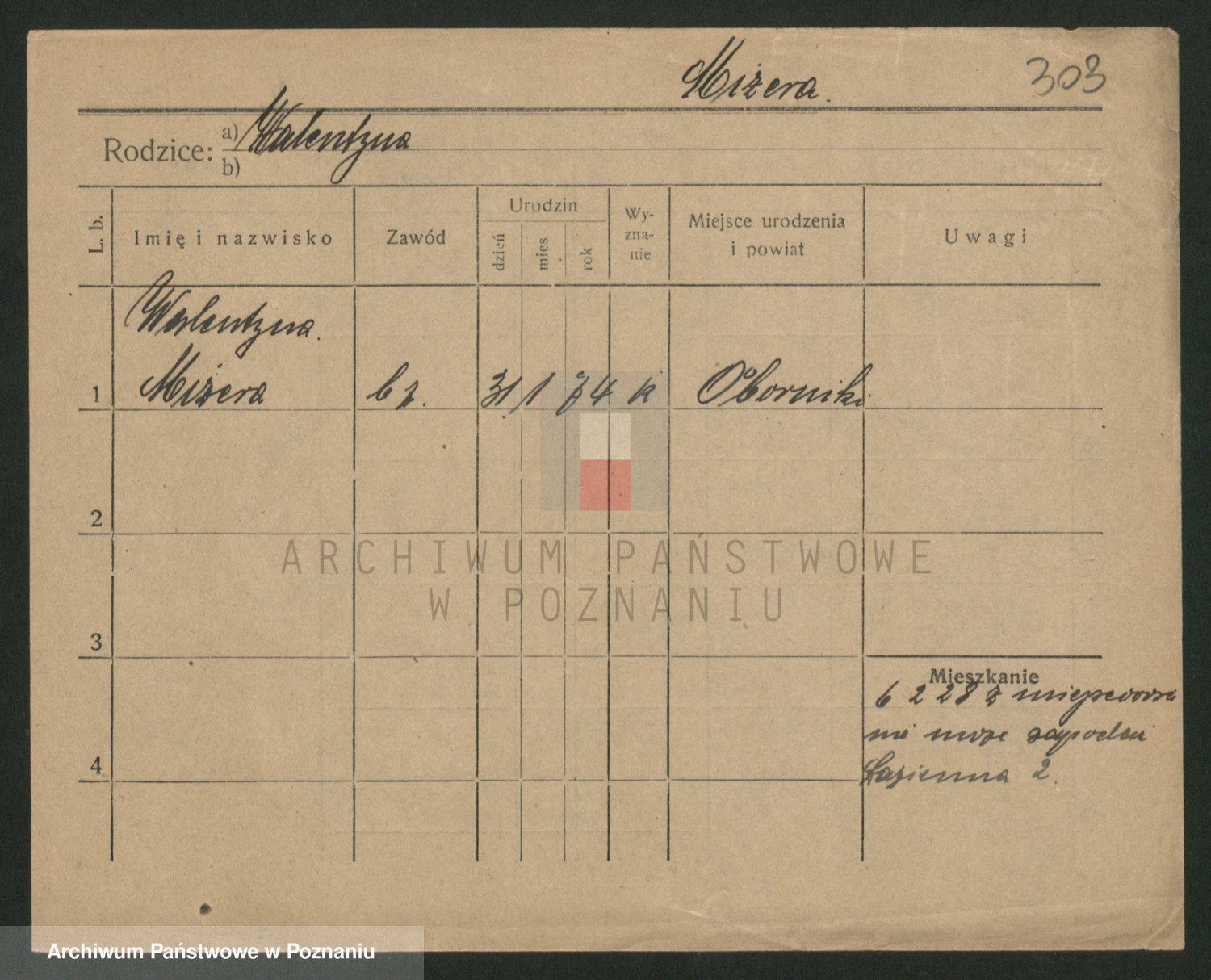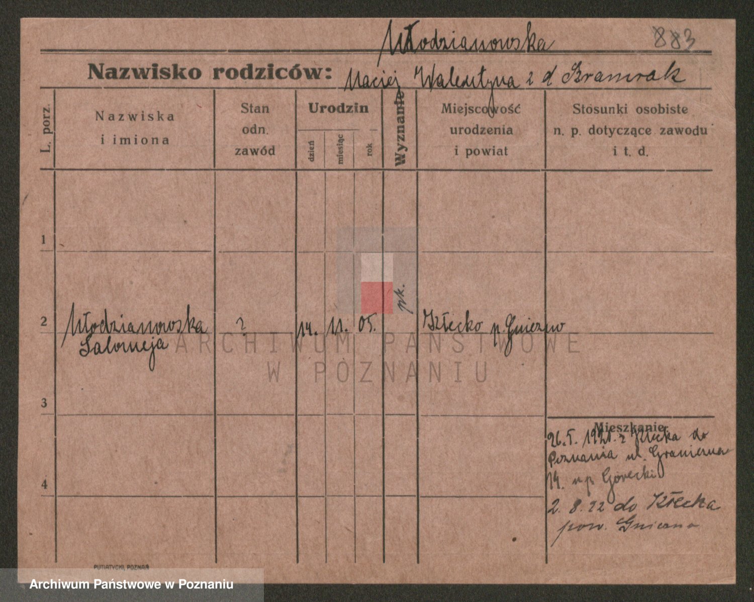 Podgląd karty osobowej dostępny jest po kliknięciu na nazwisko lub ikonkę karty. Można dokonywać powiększenia (ikony na górze) lub przechodzić między kolejnymi skanami (strzałki po bokach).