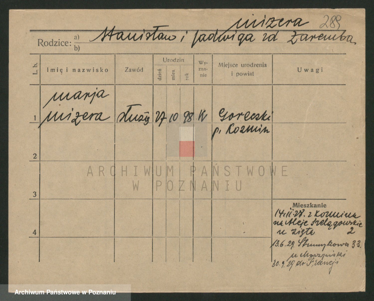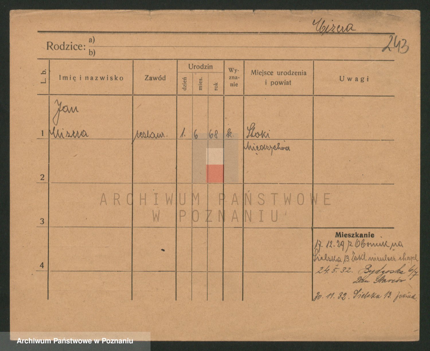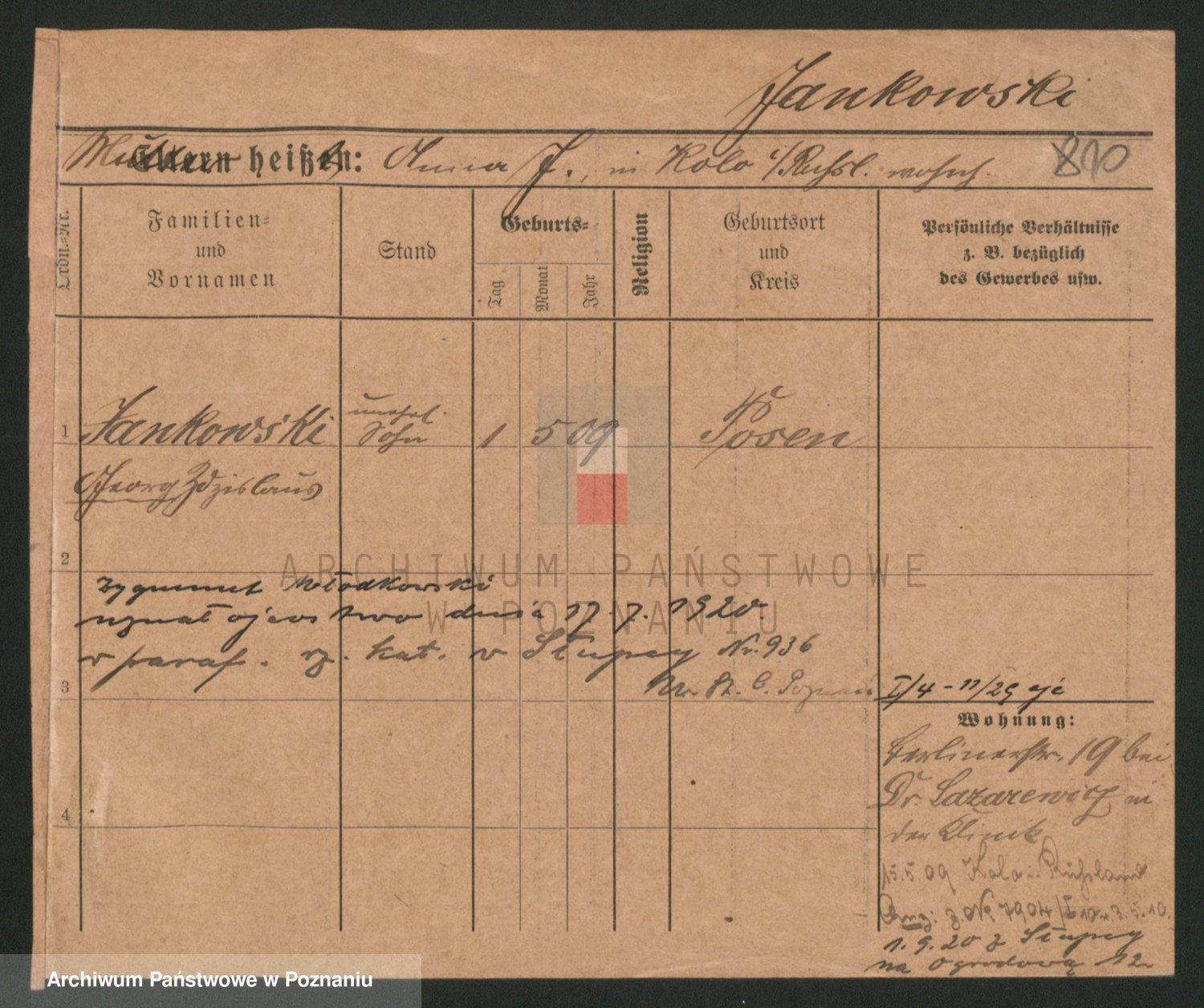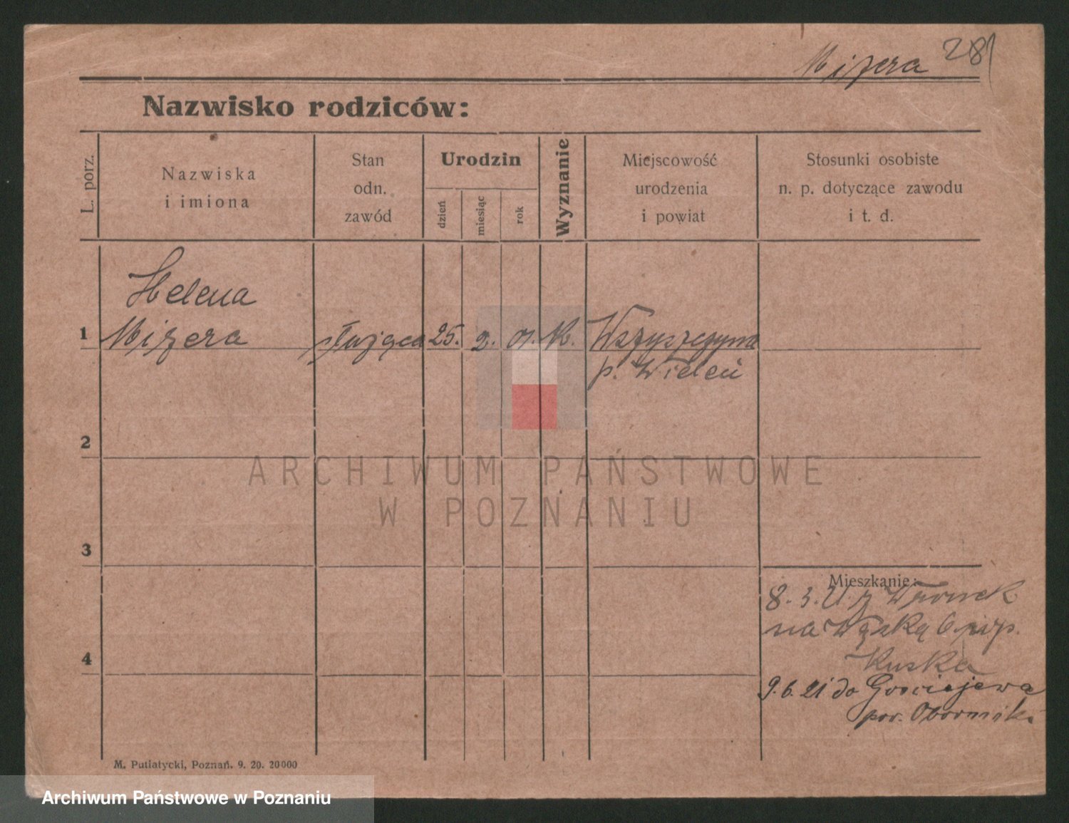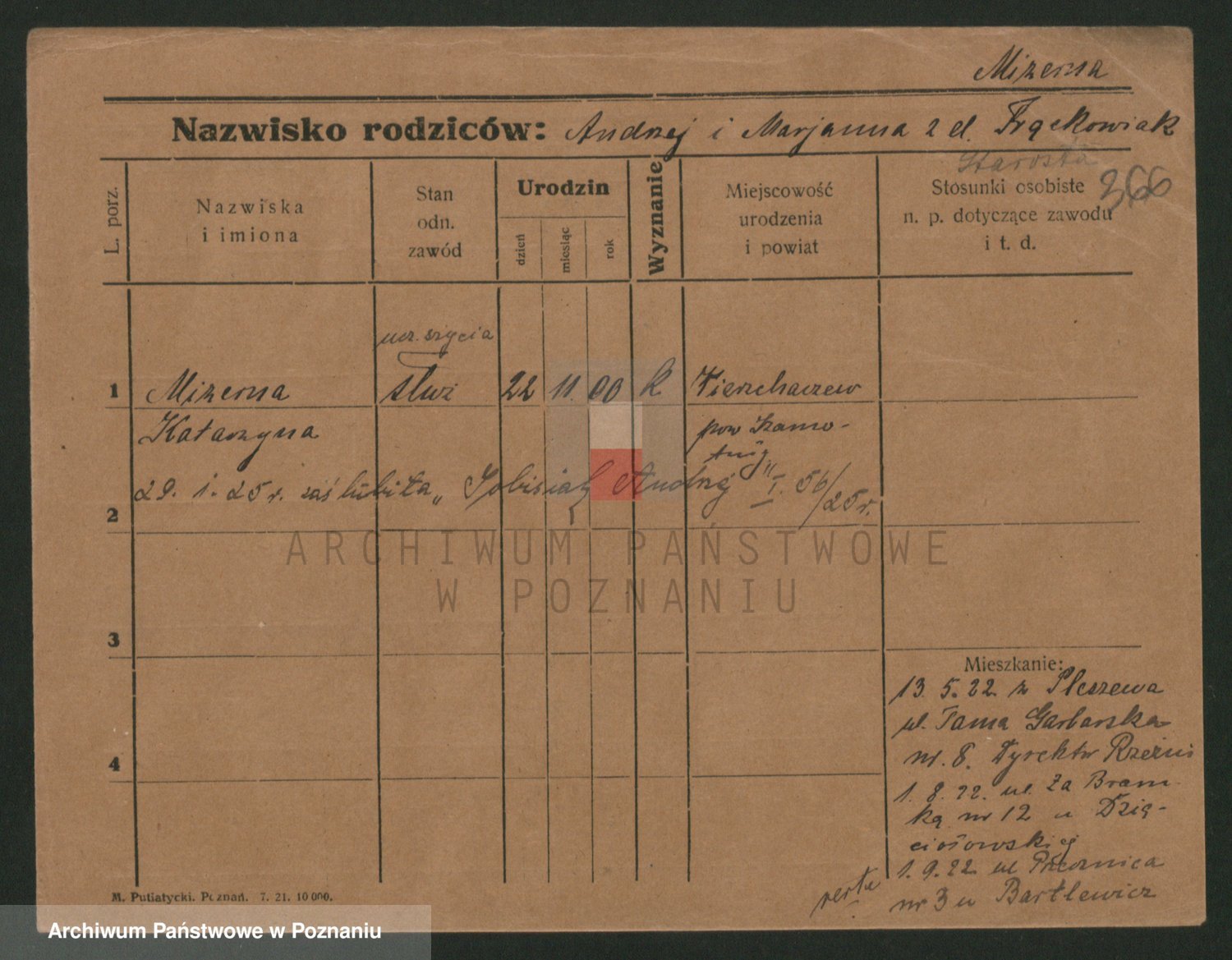 Podgląd karty osobowej dostępny jest po kliknięciu na nazwisko lub ikonkę karty. Można dokonywać powiększenia (ikony na górze) lub przechodzić między kolejnymi skanami (strzałki po bokach).