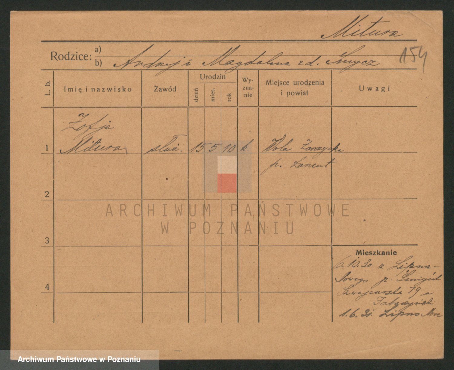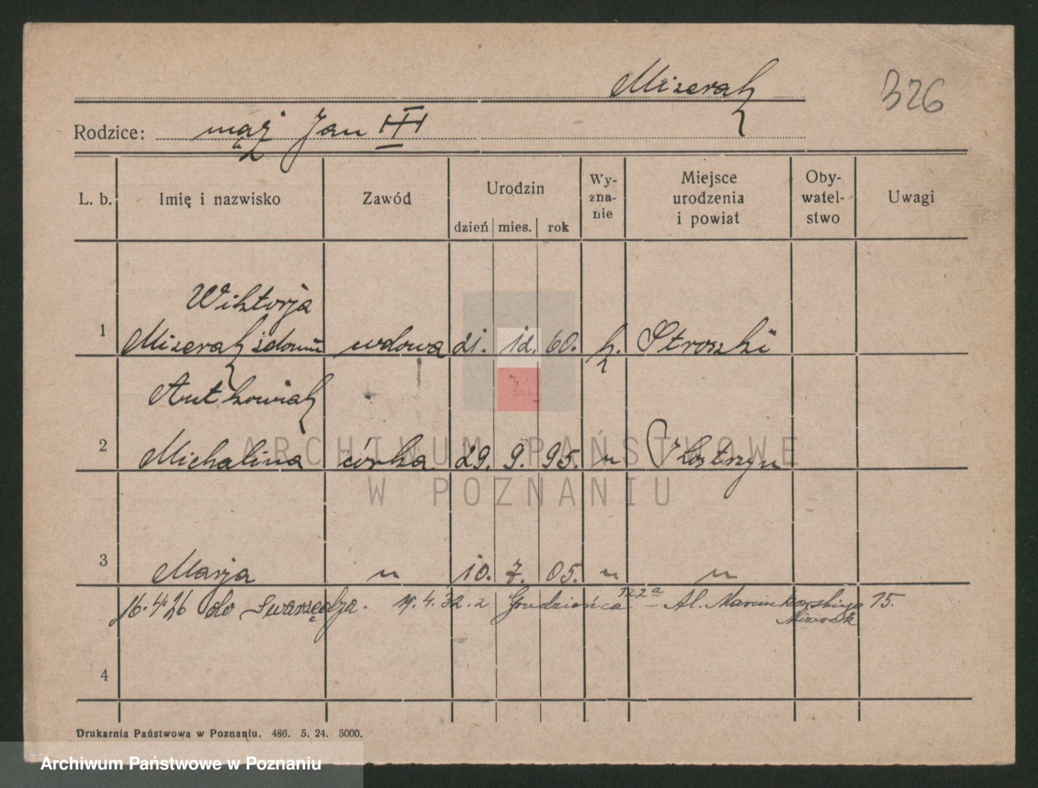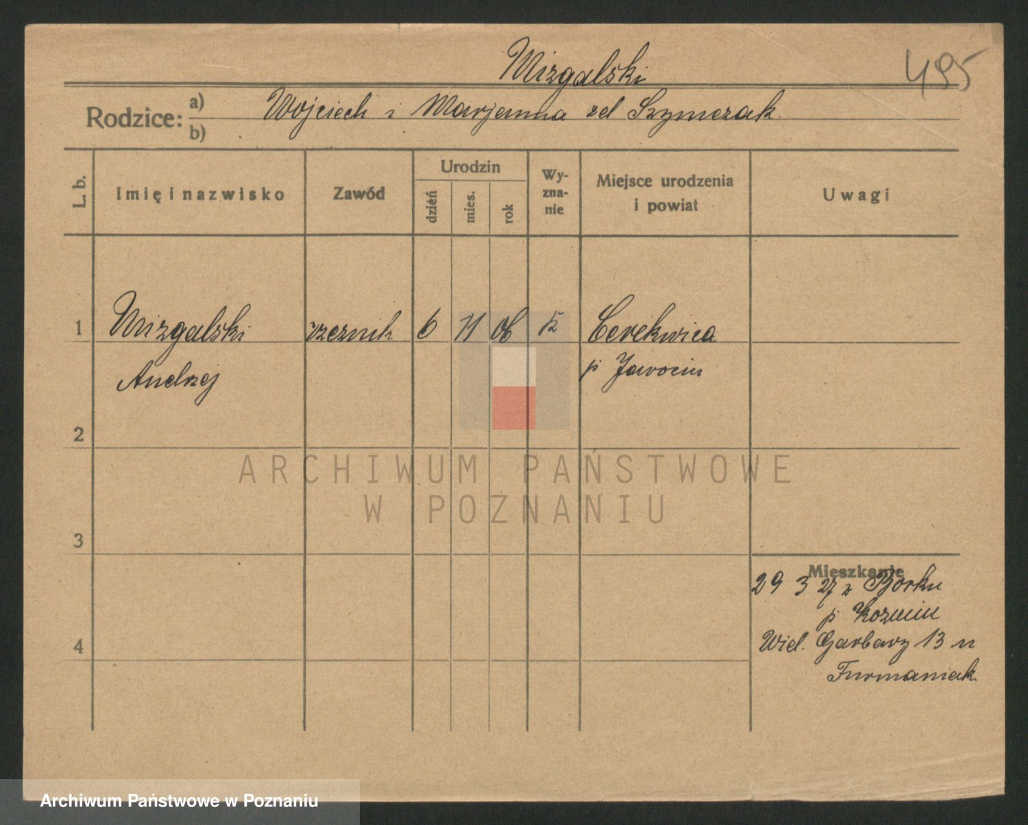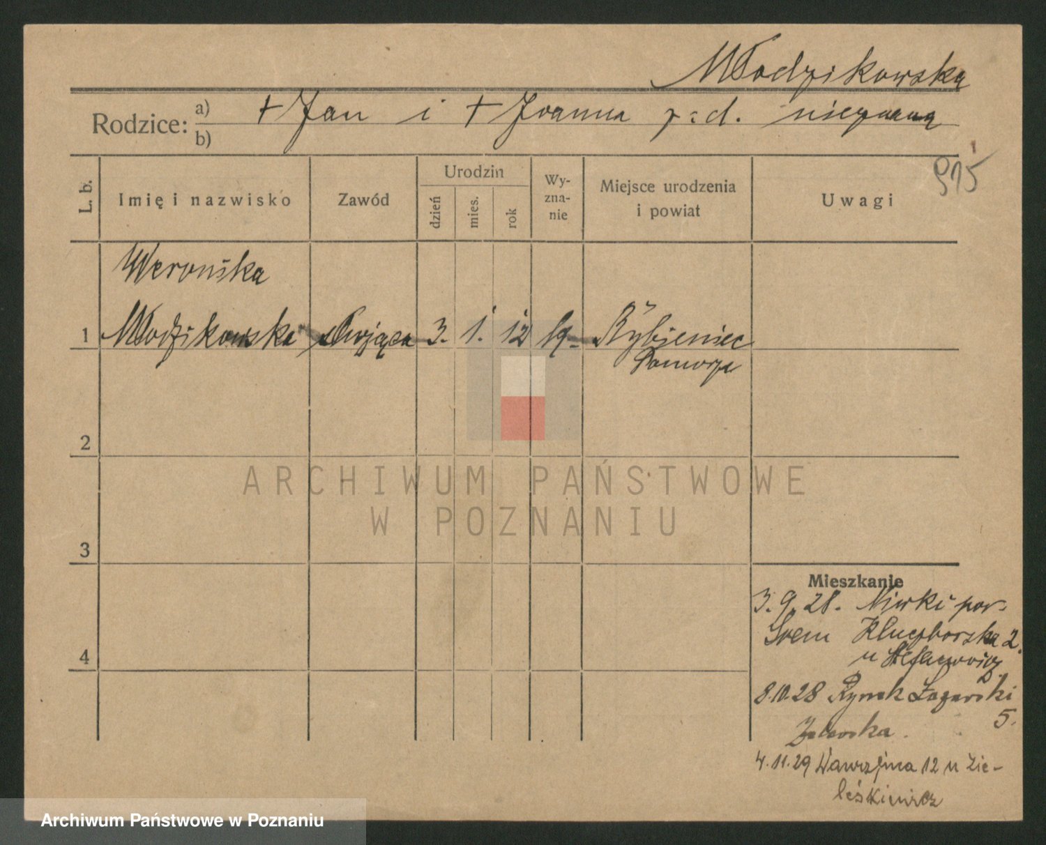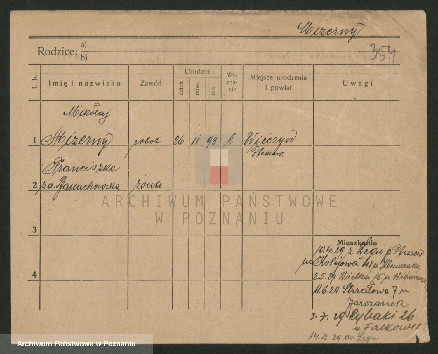 Podgląd karty osobowej dostępny jest po kliknięciu na nazwisko lub ikonkę karty. Można dokonywać powiększenia (ikony na górze) lub przechodzić między kolejnymi skanami (strzałki po bokach).