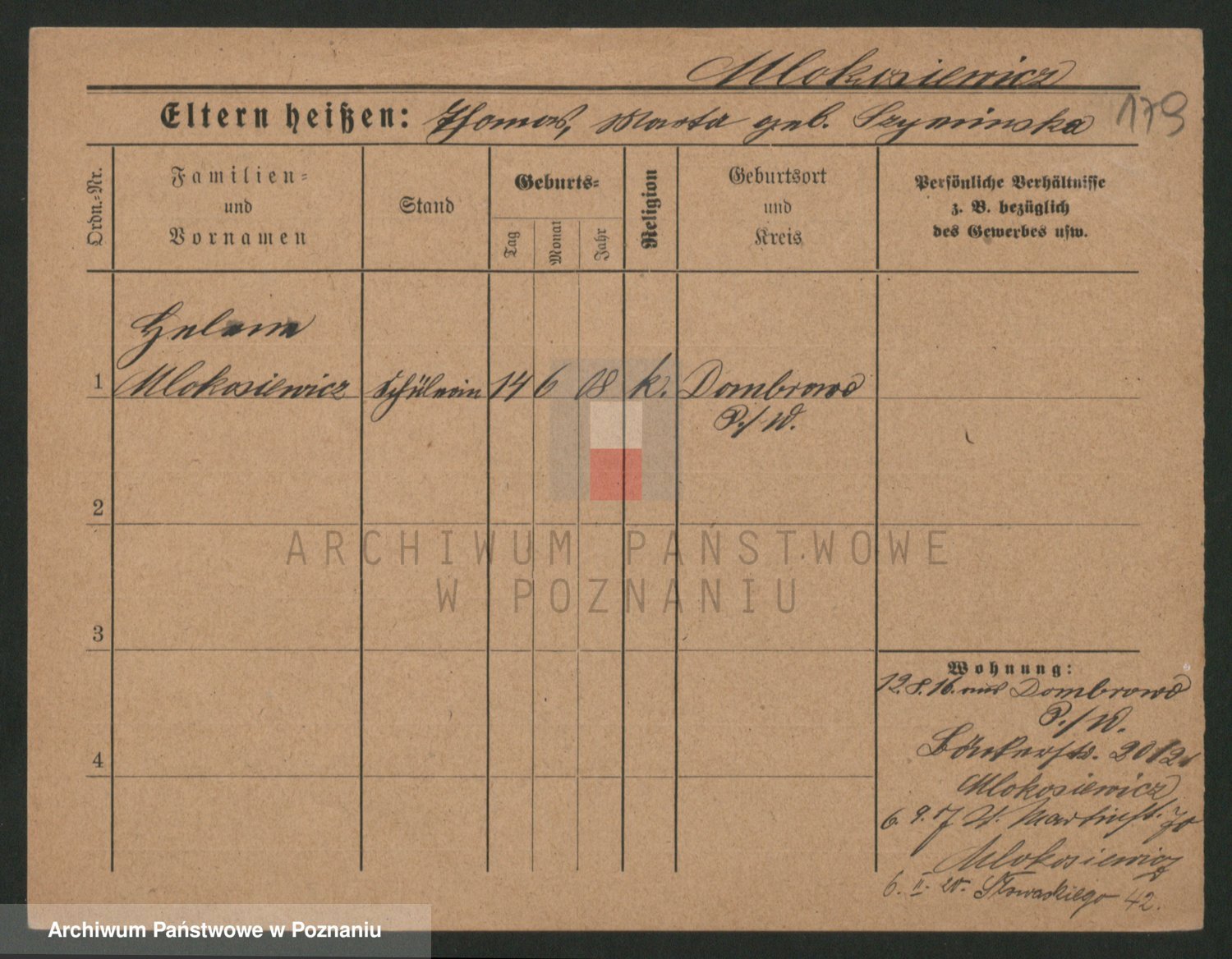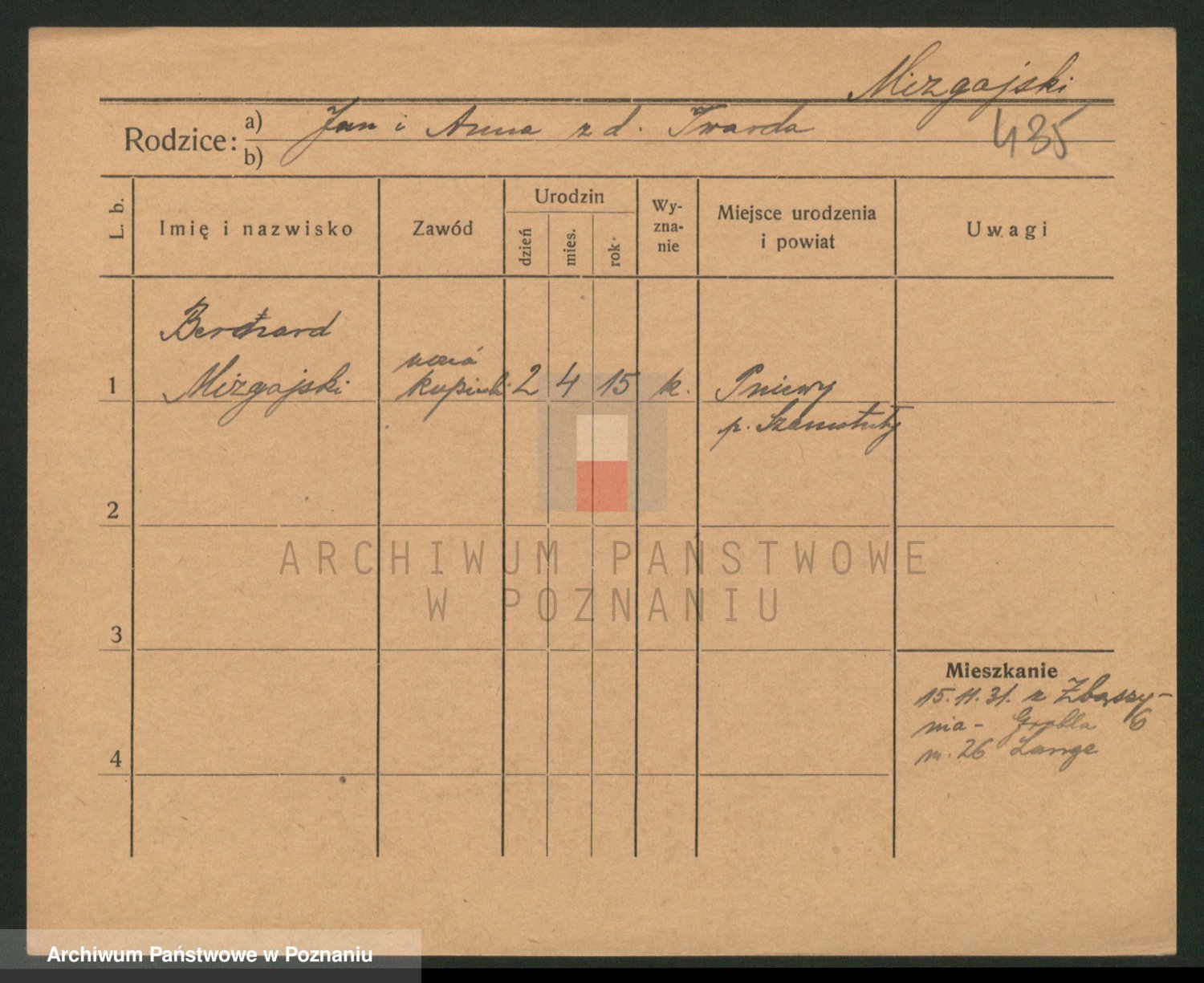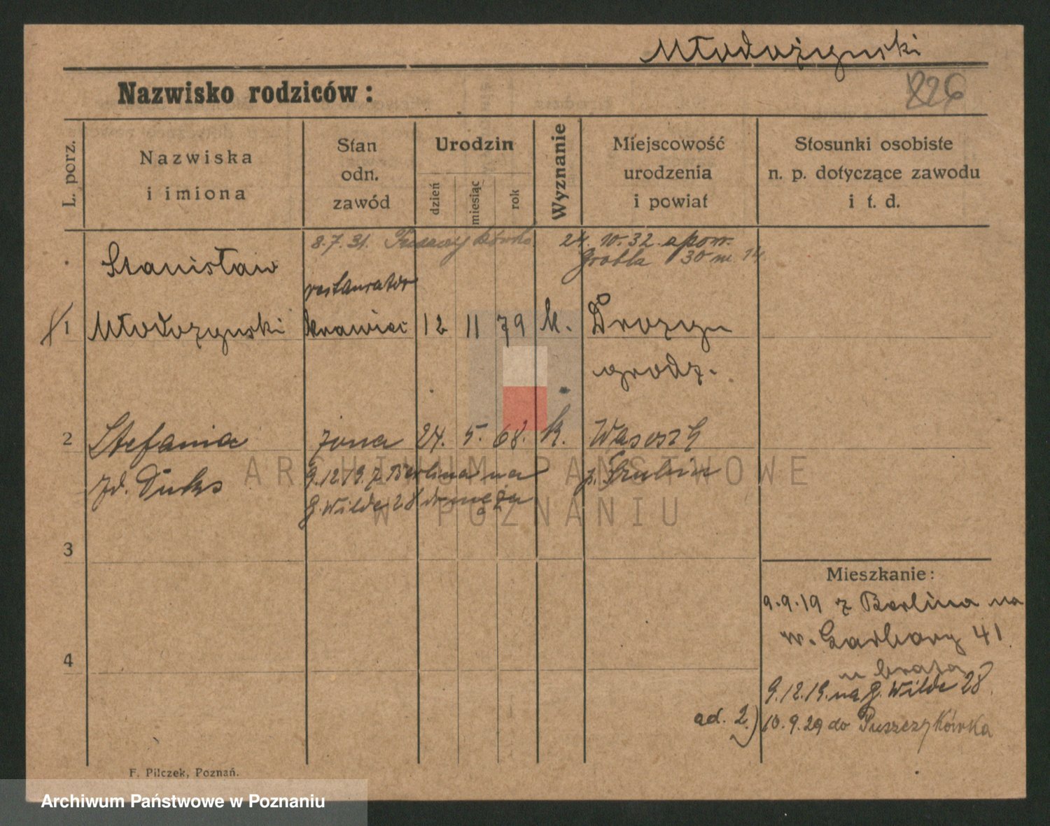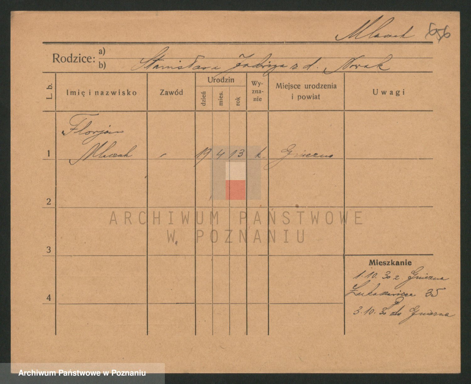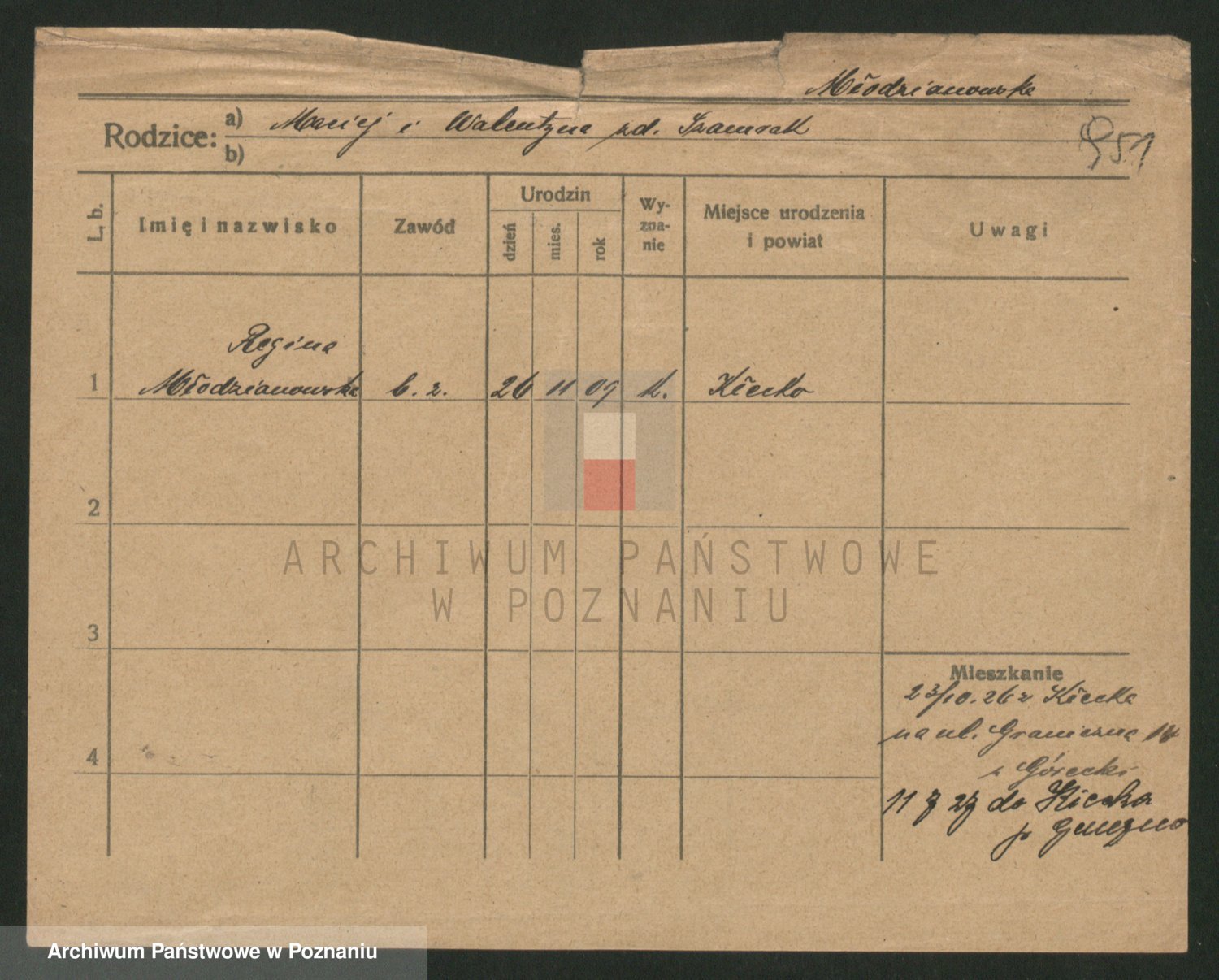 Podgląd karty osobowej dostępny jest po kliknięciu na nazwisko lub ikonkę karty. Można dokonywać powiększenia (ikony na górze) lub przechodzić między kolejnymi skanami (strzałki po bokach).