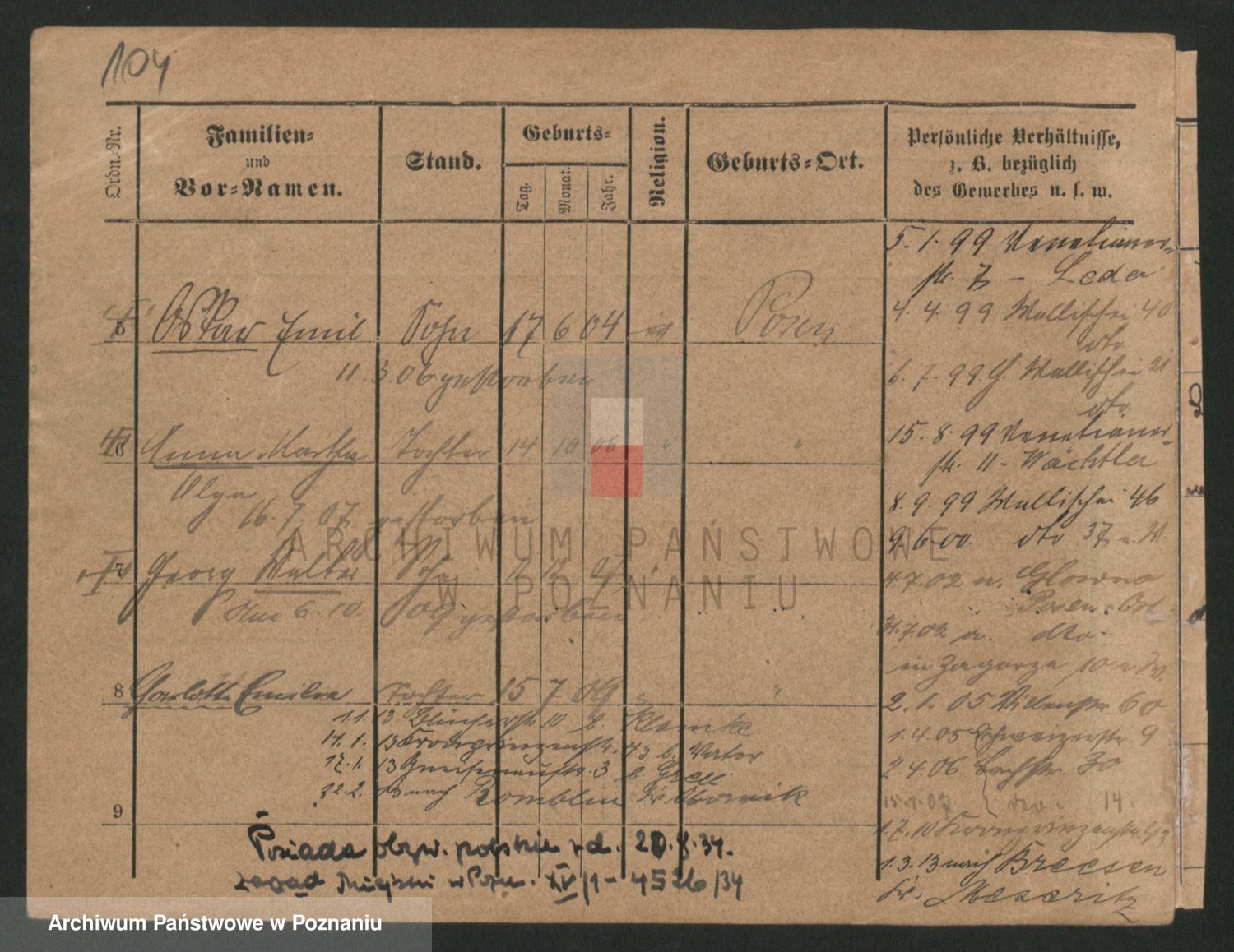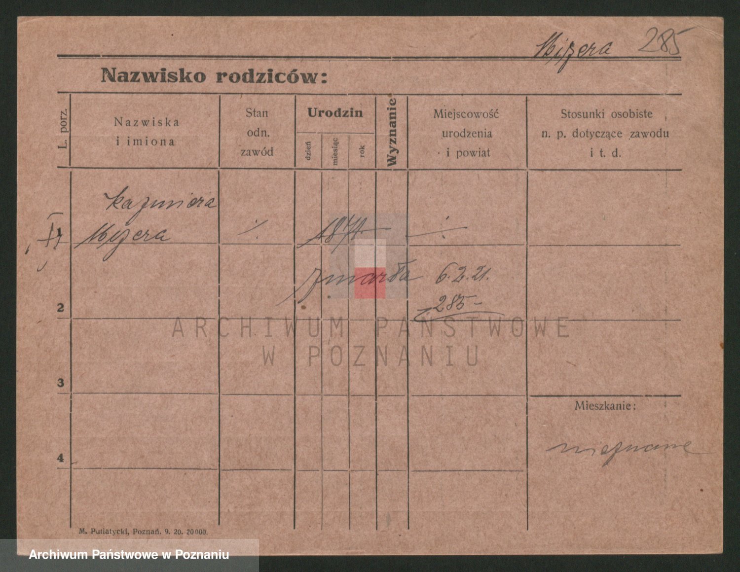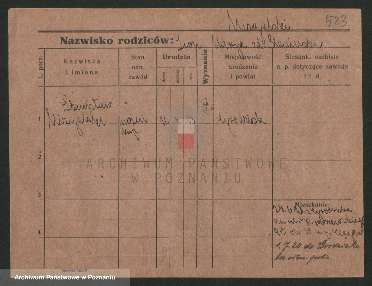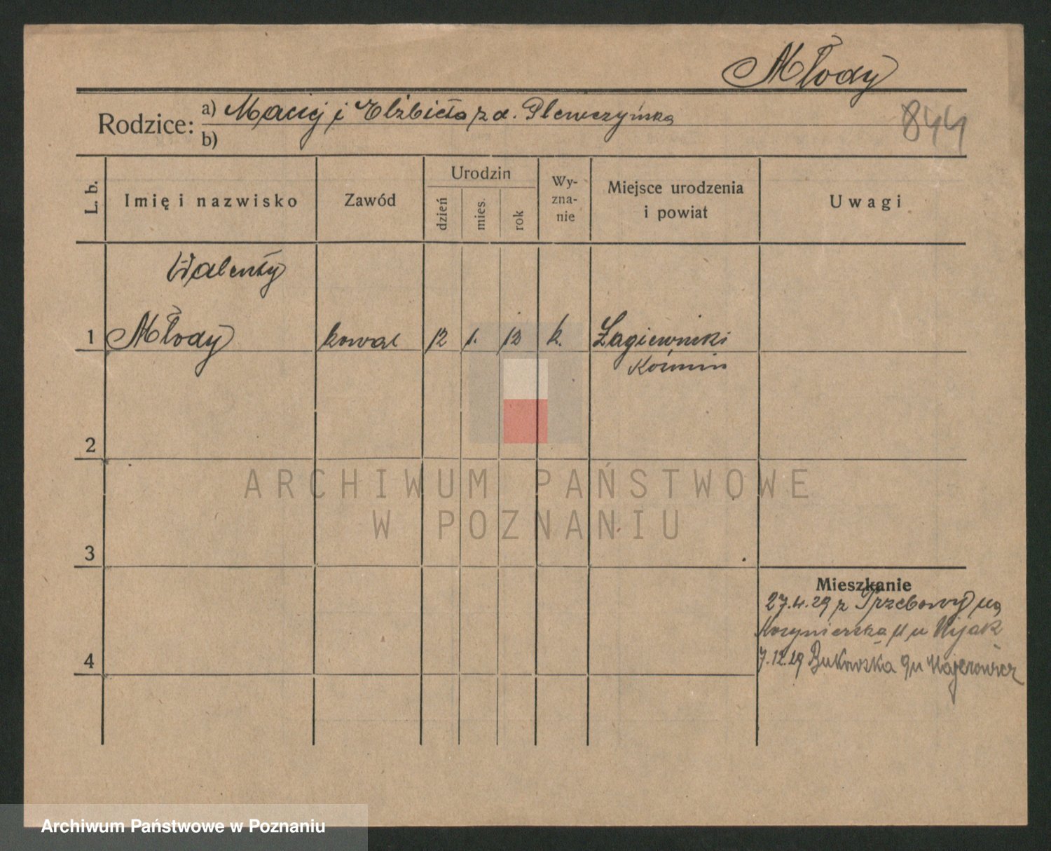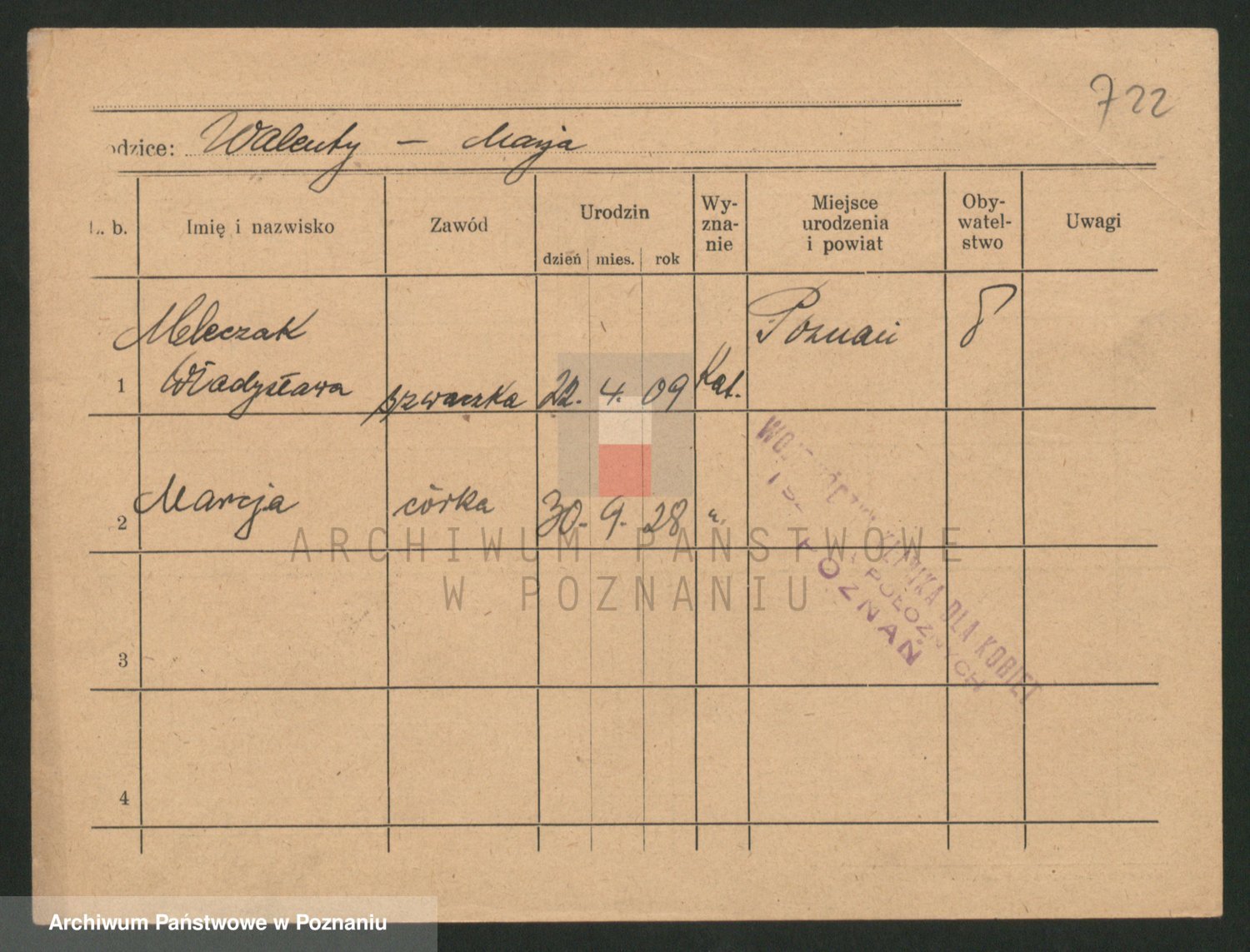 Podgląd karty osobowej dostępny jest po kliknięciu na nazwisko lub ikonkę karty. Można dokonywać powiększenia (ikony na górze) lub przechodzić między kolejnymi skanami (strzałki po bokach).