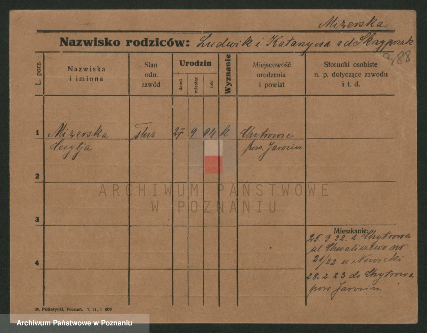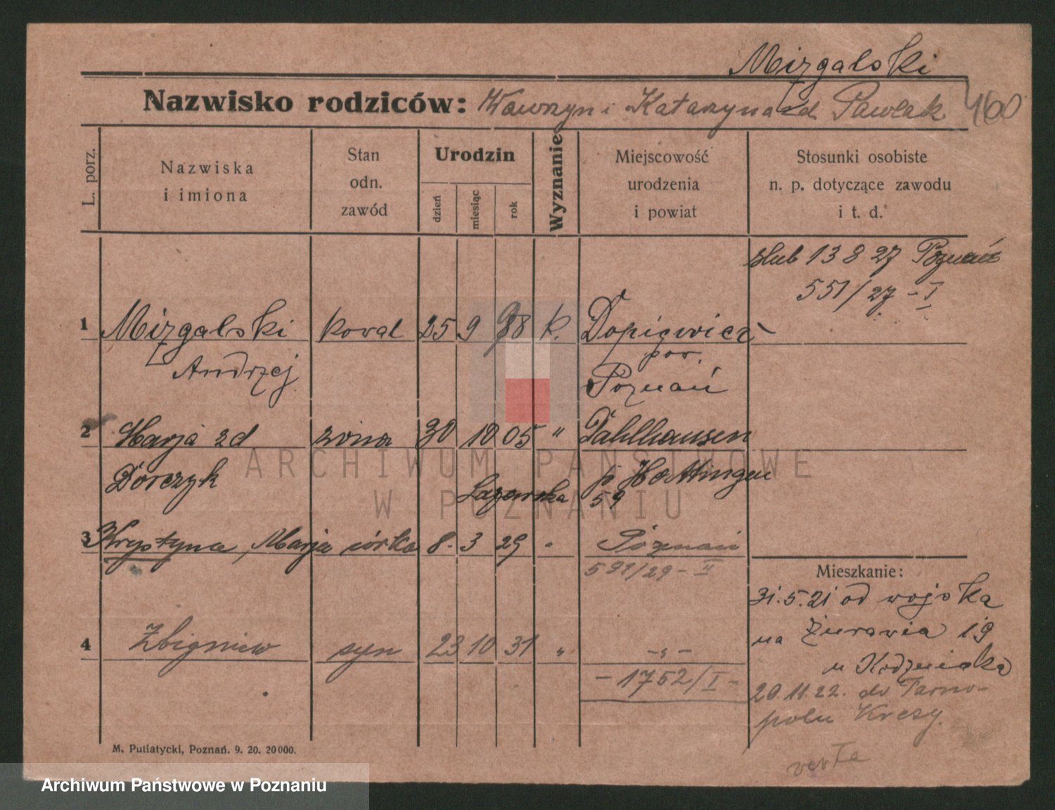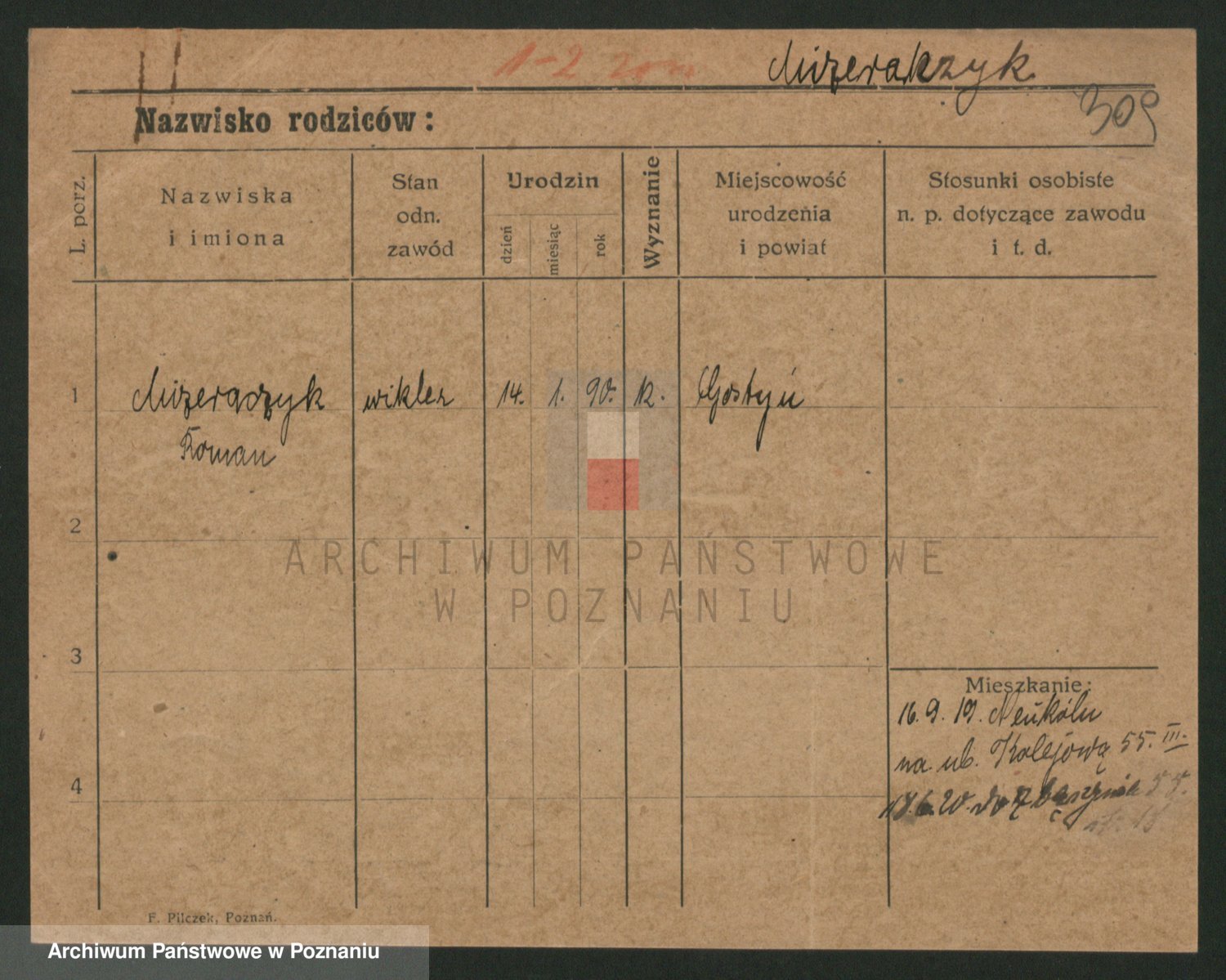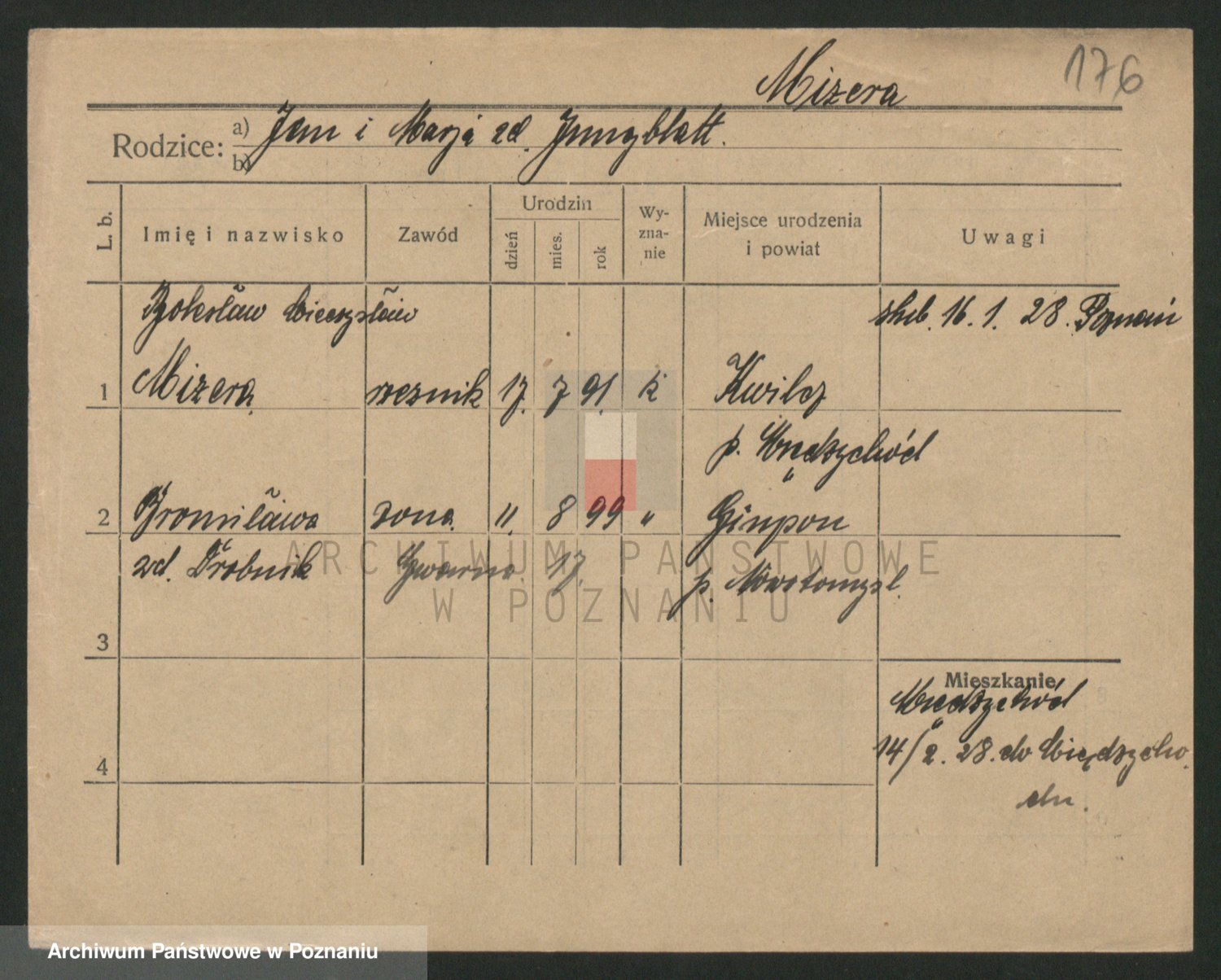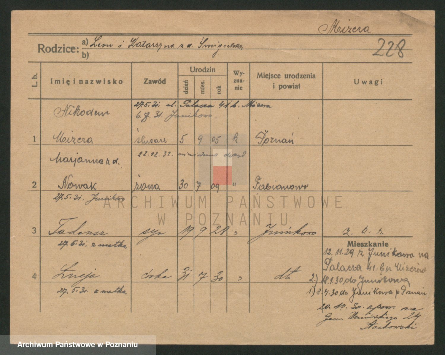 Podgląd karty osobowej dostępny jest po kliknięciu na nazwisko lub ikonkę karty. Można dokonywać powiększenia (ikony na górze) lub przechodzić między kolejnymi skanami (strzałki po bokach).