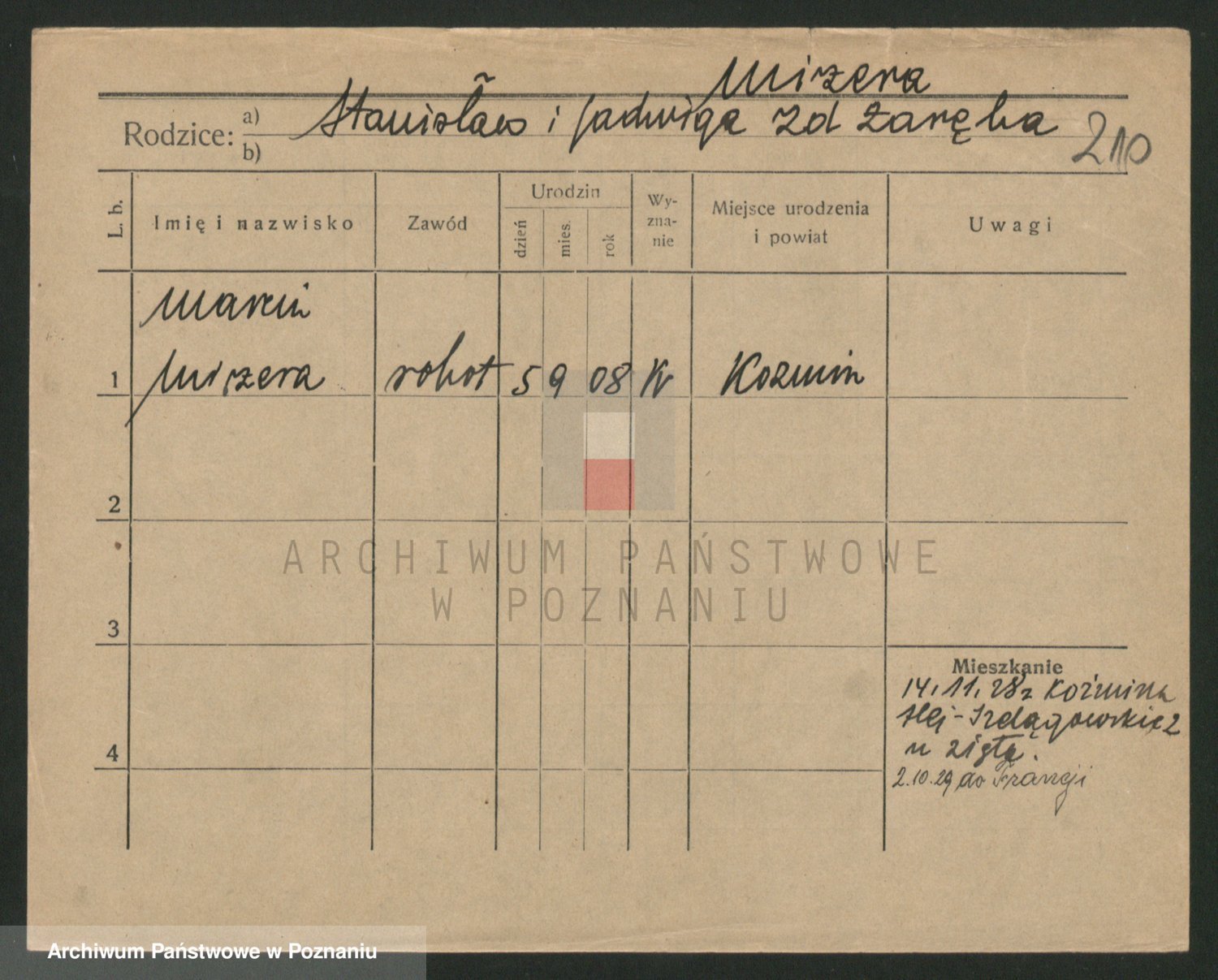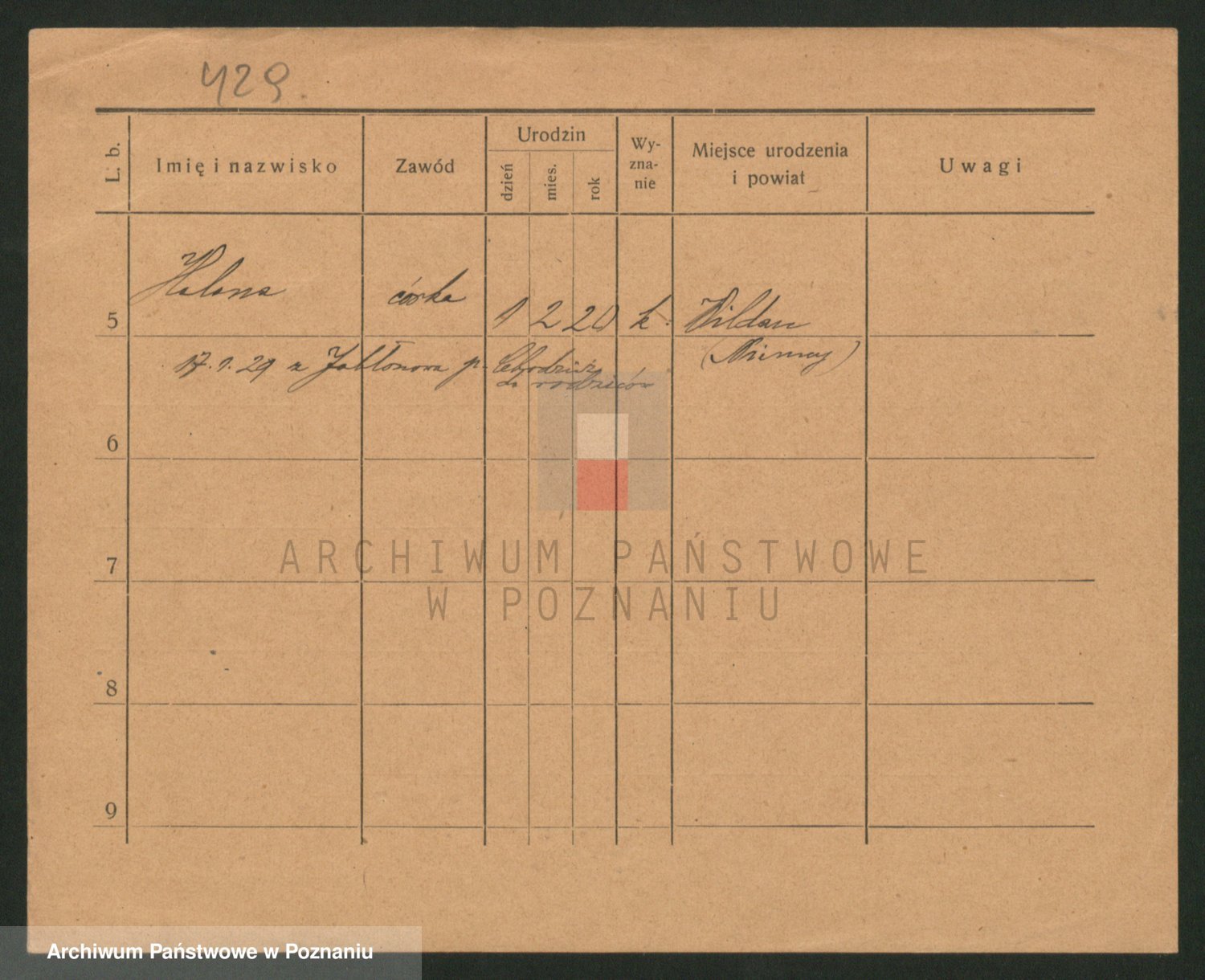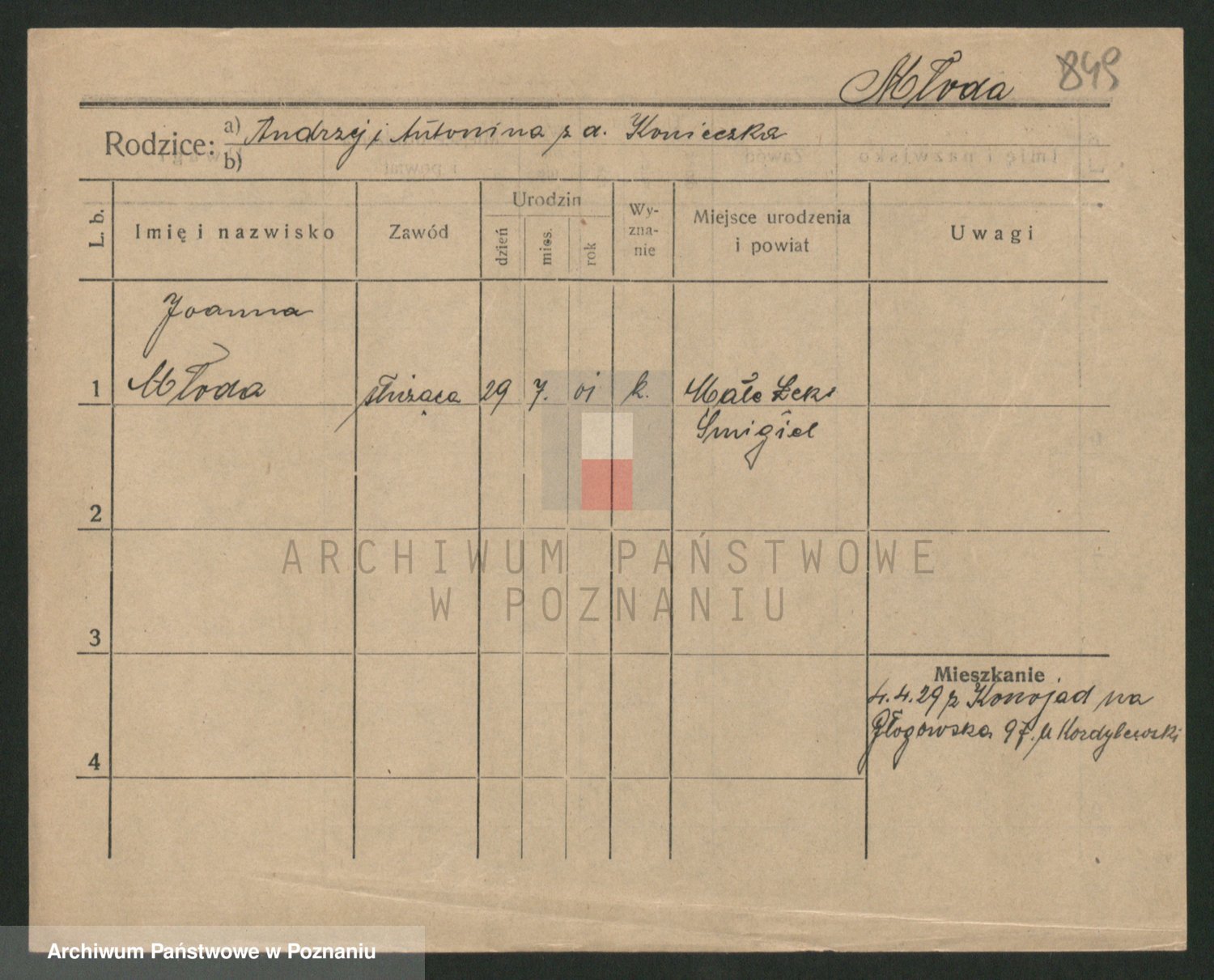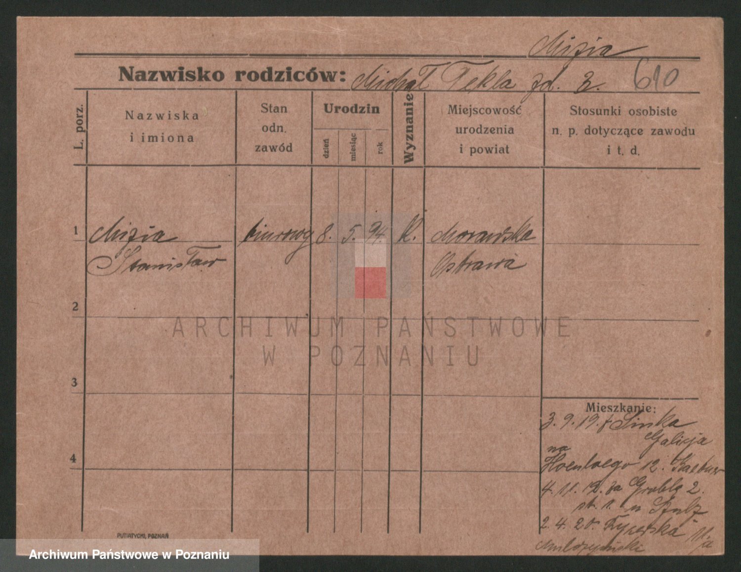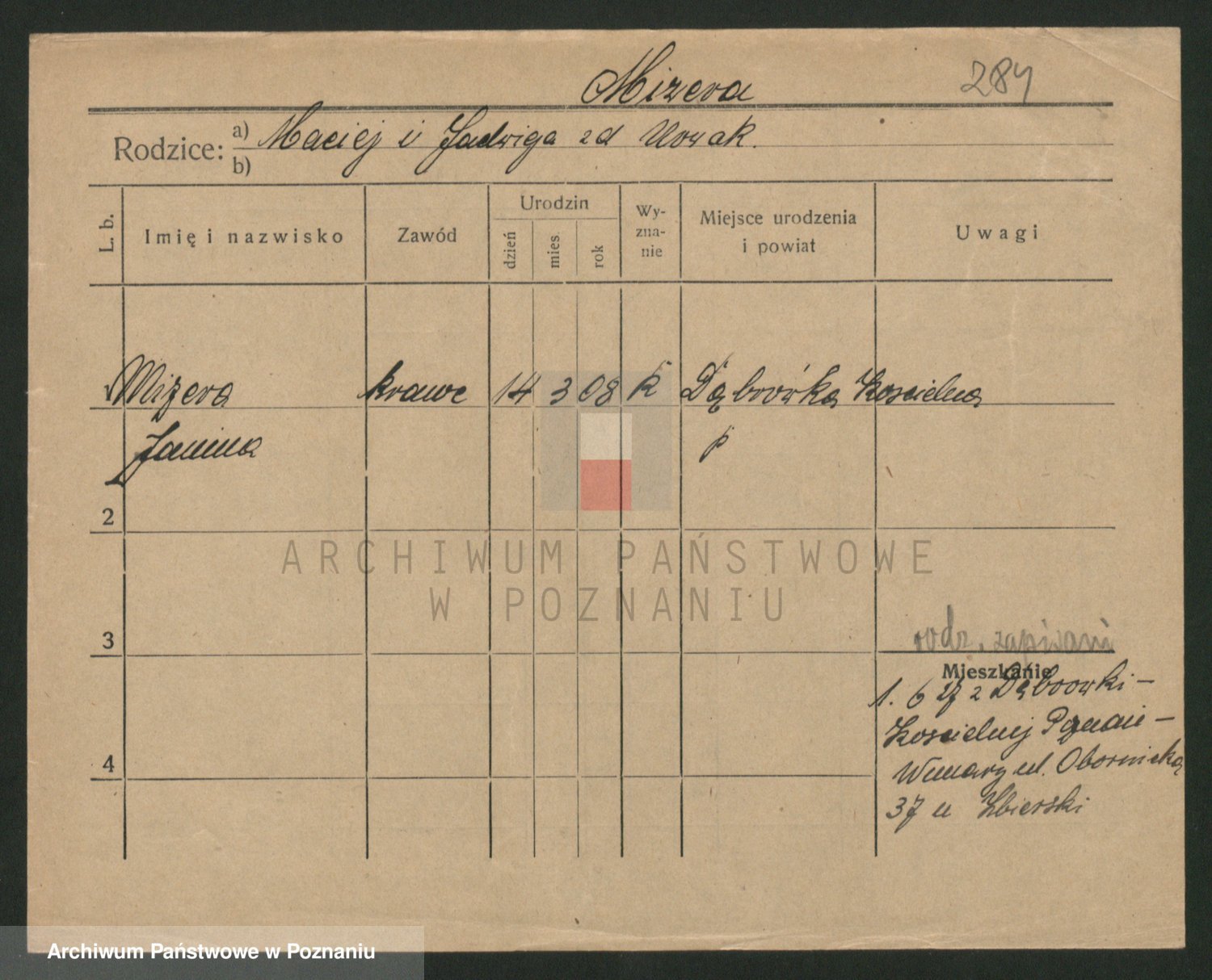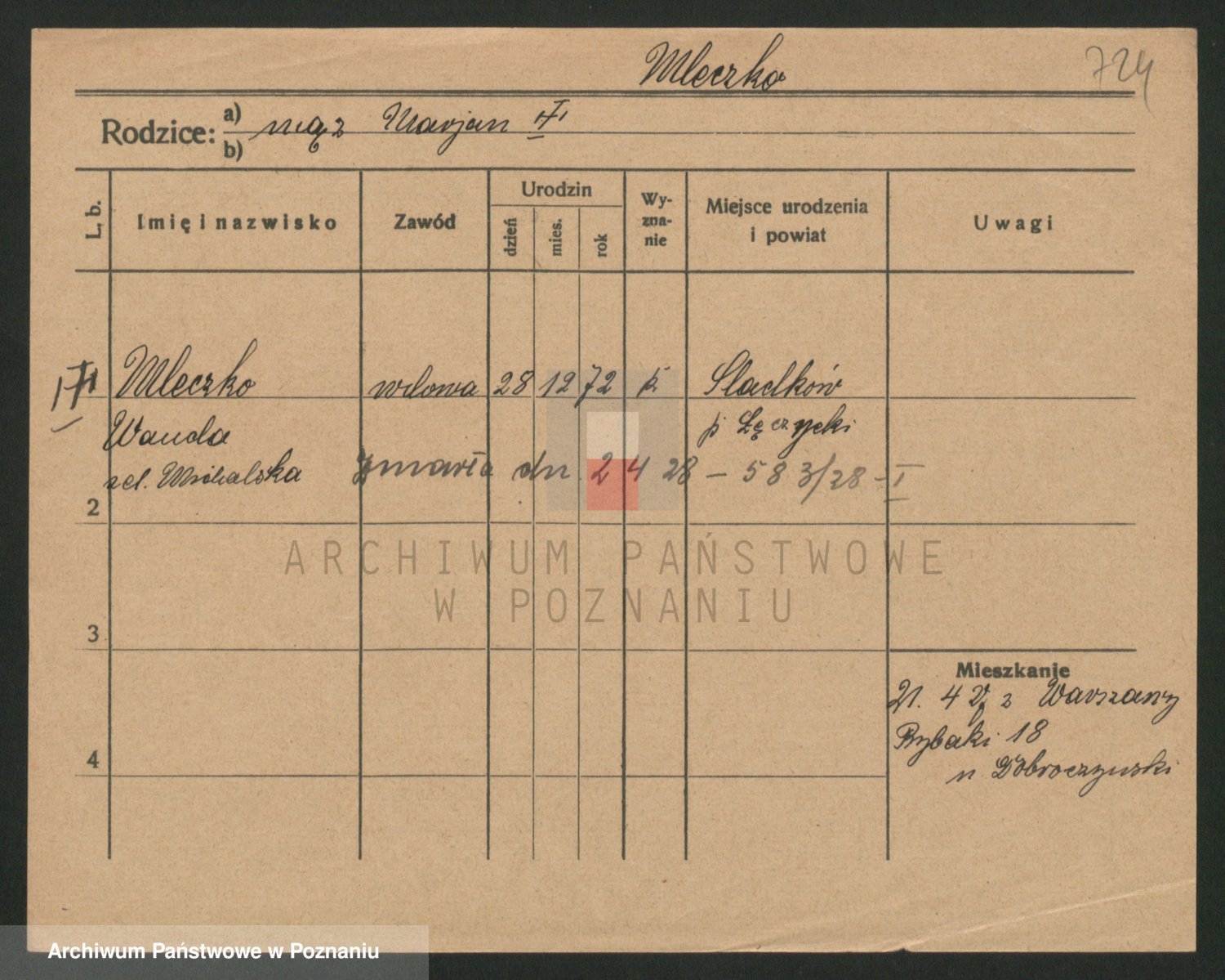 Podgląd karty osobowej dostępny jest po kliknięciu na nazwisko lub ikonkę karty. Można dokonywać powiększenia (ikony na górze) lub przechodzić między kolejnymi skanami (strzałki po bokach).